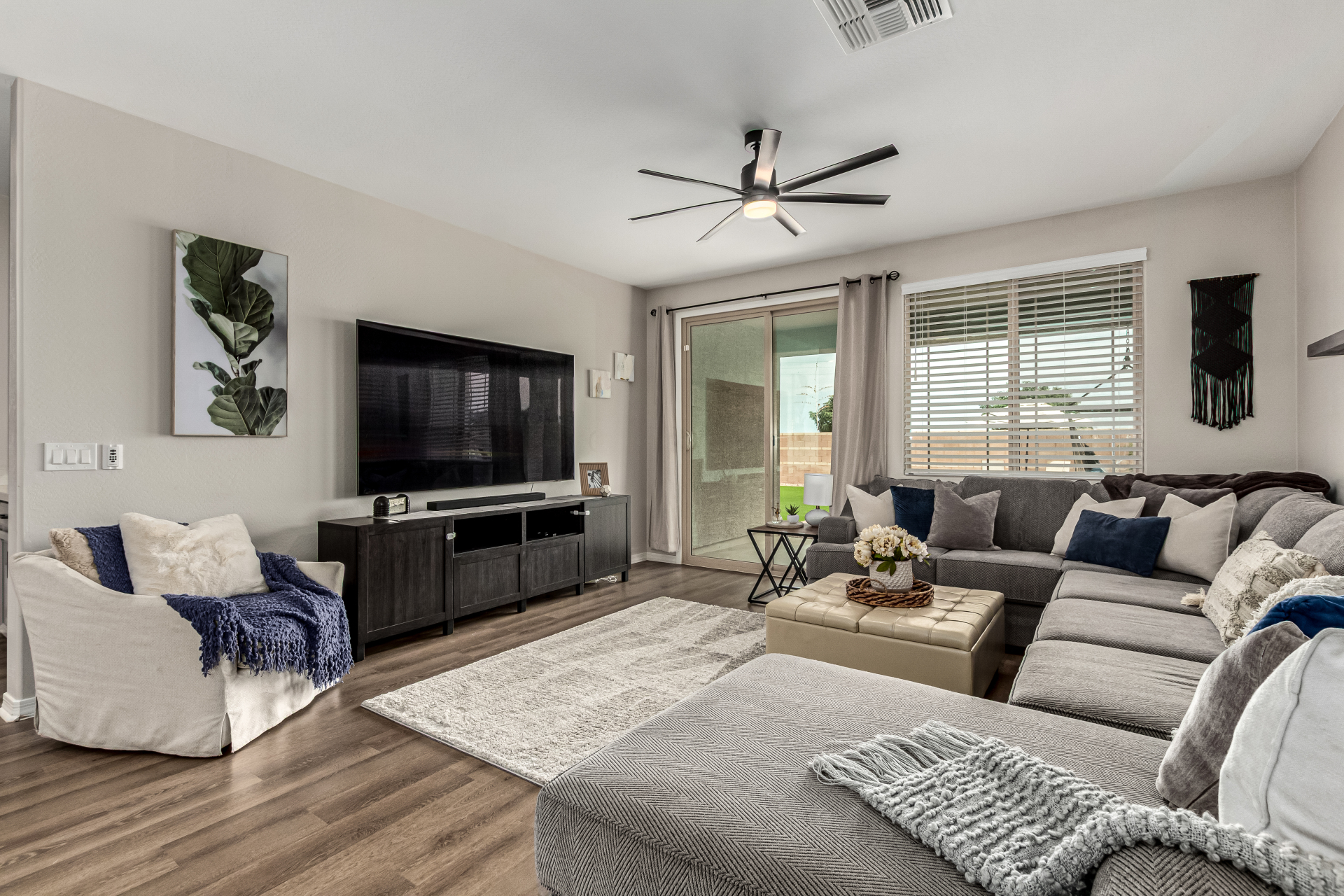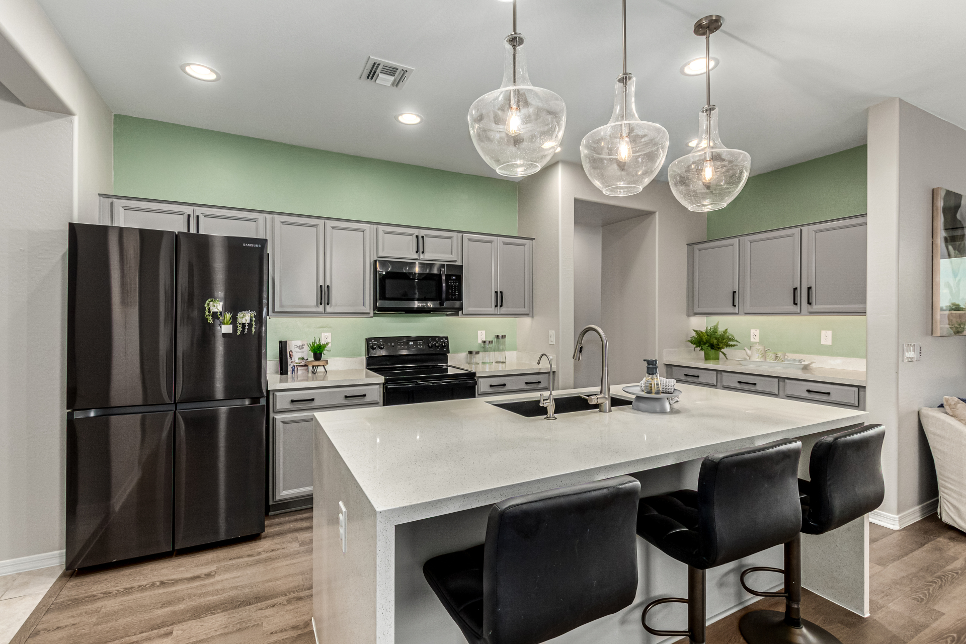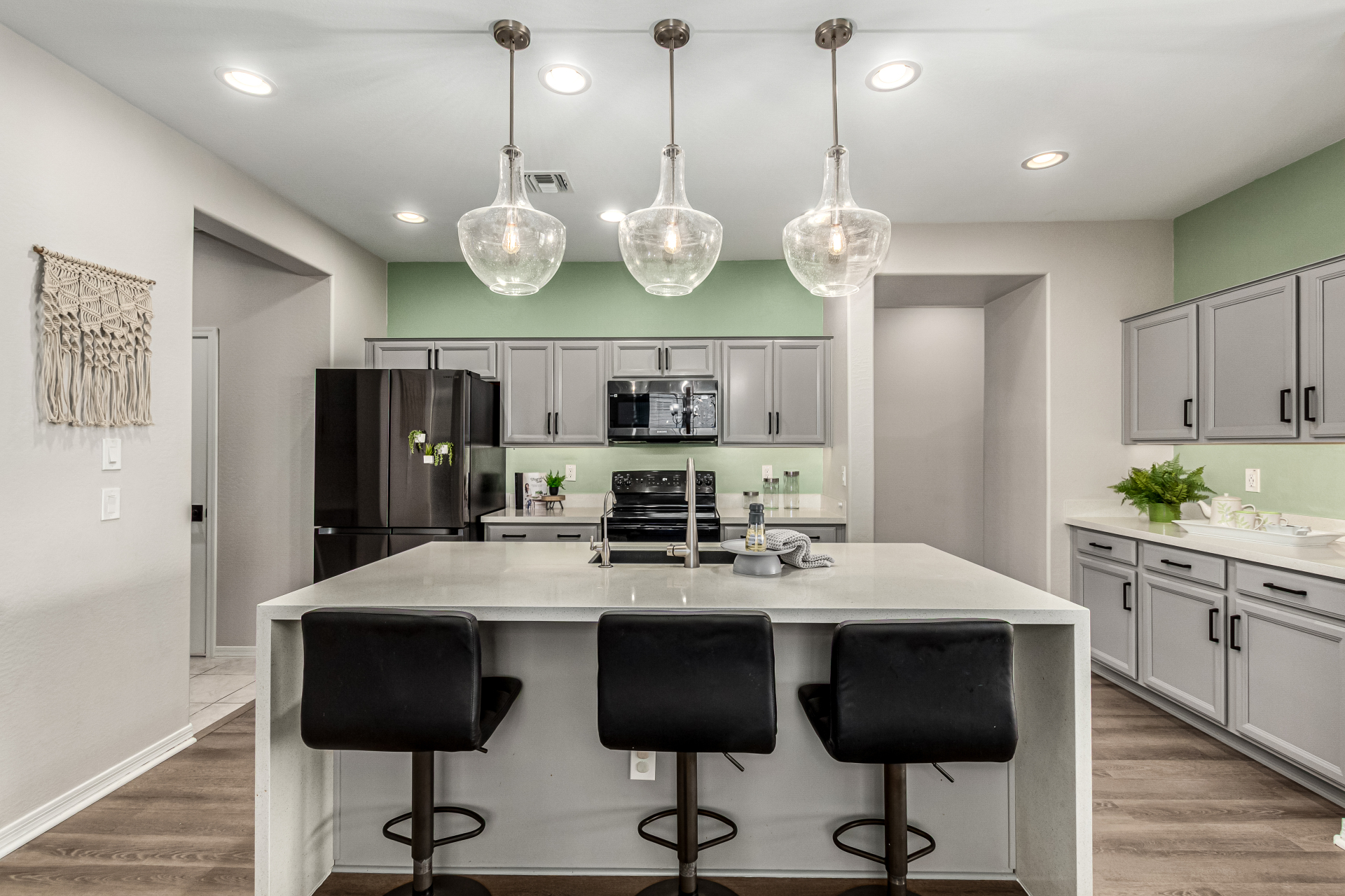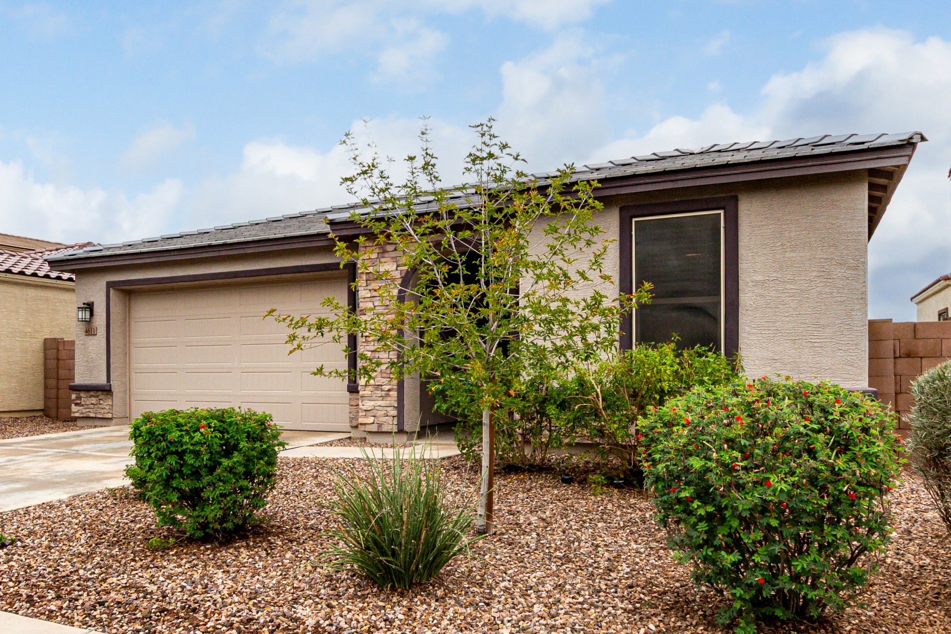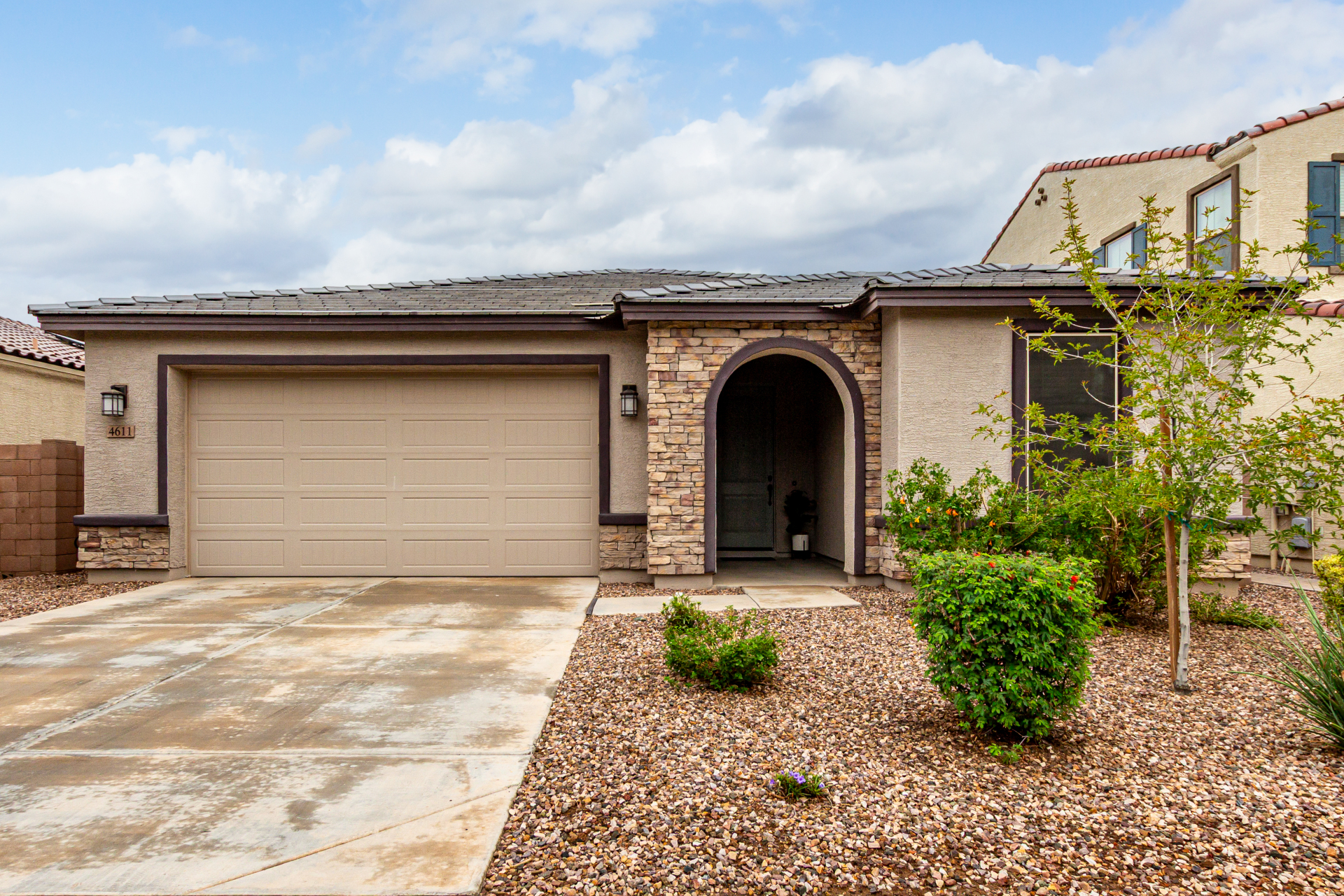 Start making memories in this charming Alamar beauty! Adorned with elegant stone accents and a 2-car garage, this home welcomes you into a cozy living room perfect for relaxing or entertaining. The open layout shines with wood-look floors and a dining area ready for your favorite meals. The kitchen is a dream featuring sparkling granite counters, stainless steel appliances, recessed lighting, ample cabinetry, and a center island with a breakfast bar. Retreat to the main bedroom complete with a private bath, dual sinks, and a walk-in closet. Out back, enjoy a covered patio and plenty of room for backyard barbecues or playtime under the sun. This one truly has it all!