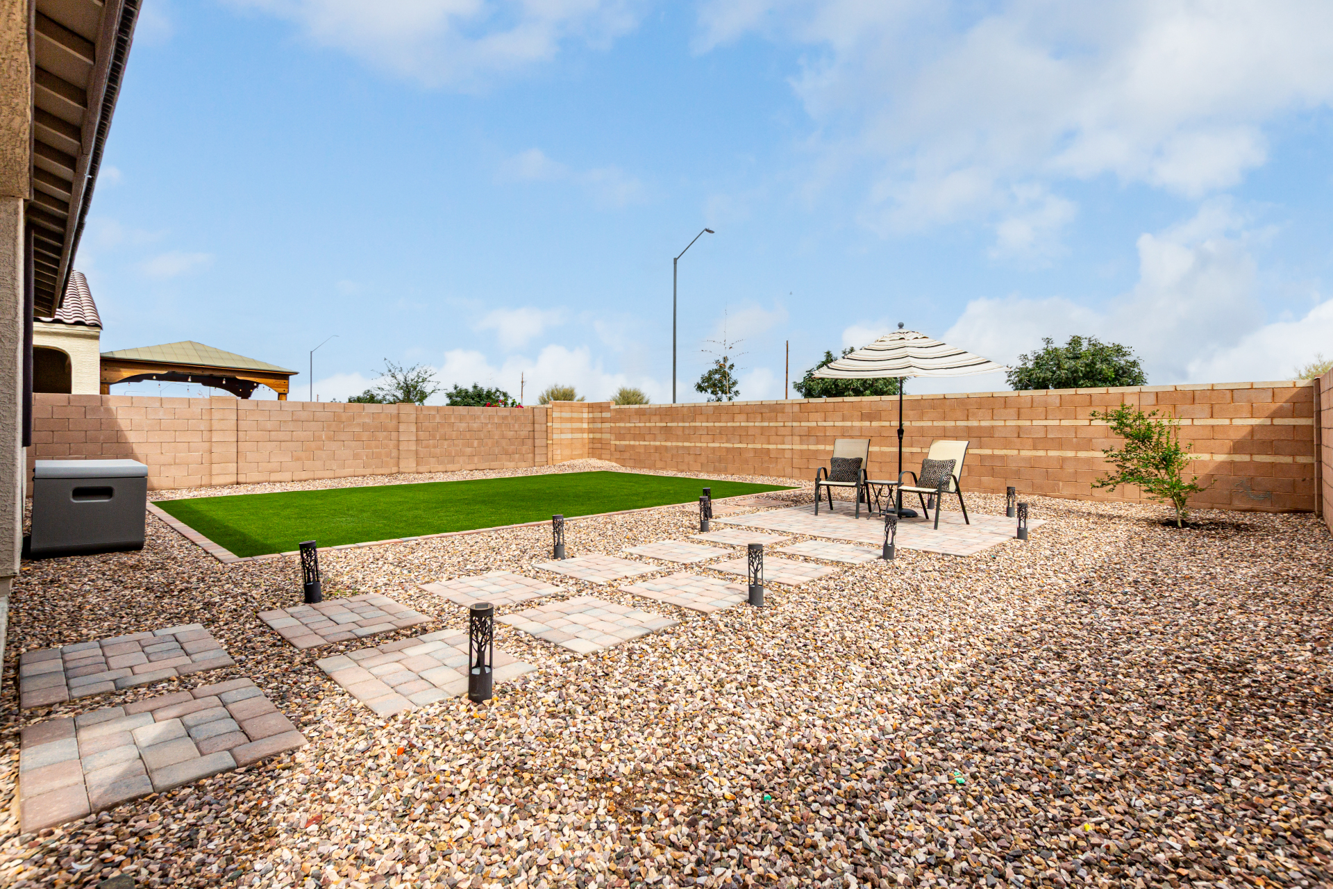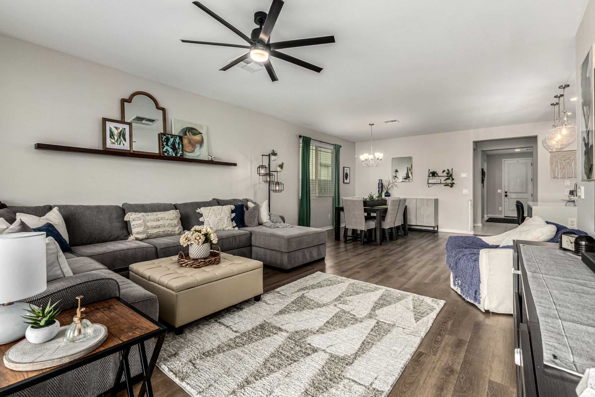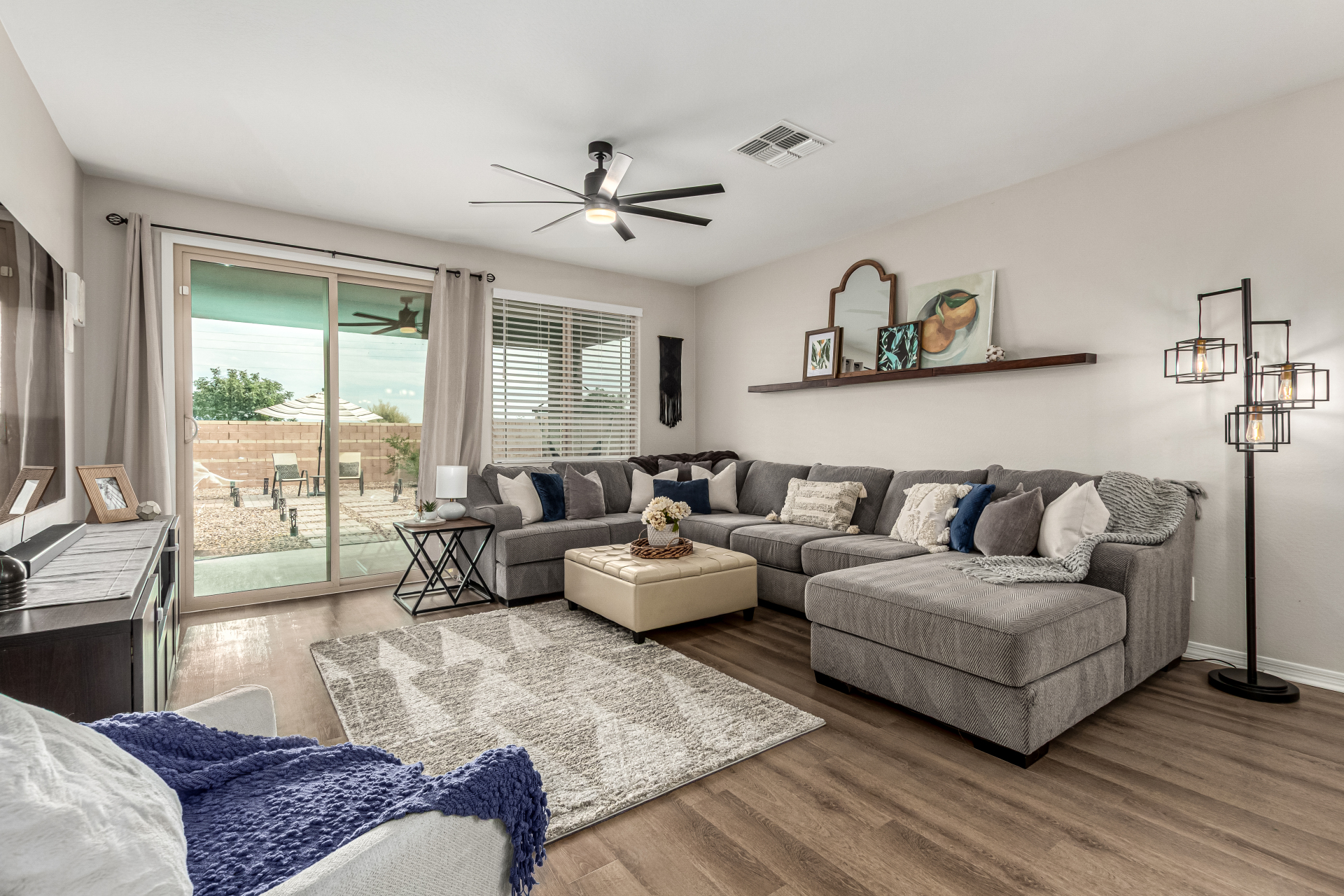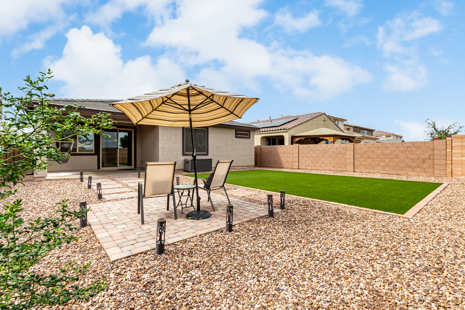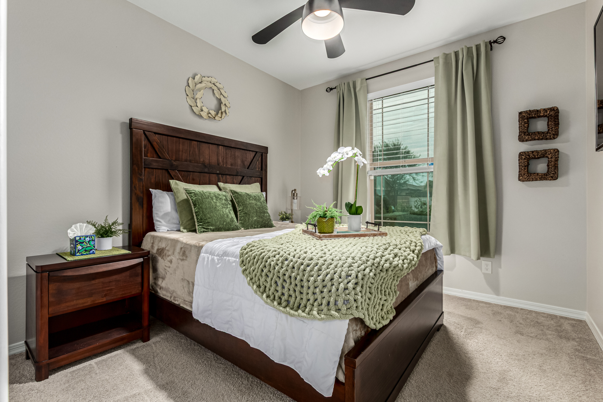 Start making memories in this charming Alamar beauty! Adorned with elegant stone accents and a 2-car garage, this home welcomes you into a cozy living room perfect for relaxing or entertaining. The open layout shines with wood-look floors and a dining area ready for your favorite meals. The kitchen is a dream featuring sparkling granite counters, stainless steel appliances, recessed lighting, ample cabinetry, and a center island with a breakfast bar. Retreat to the main bedroom complete with a private bath, dual sinks, and a walk-in closet. Out back, enjoy a covered patio and plenty of room for backyard barbecues or playtime under the sun. This one truly has it all!