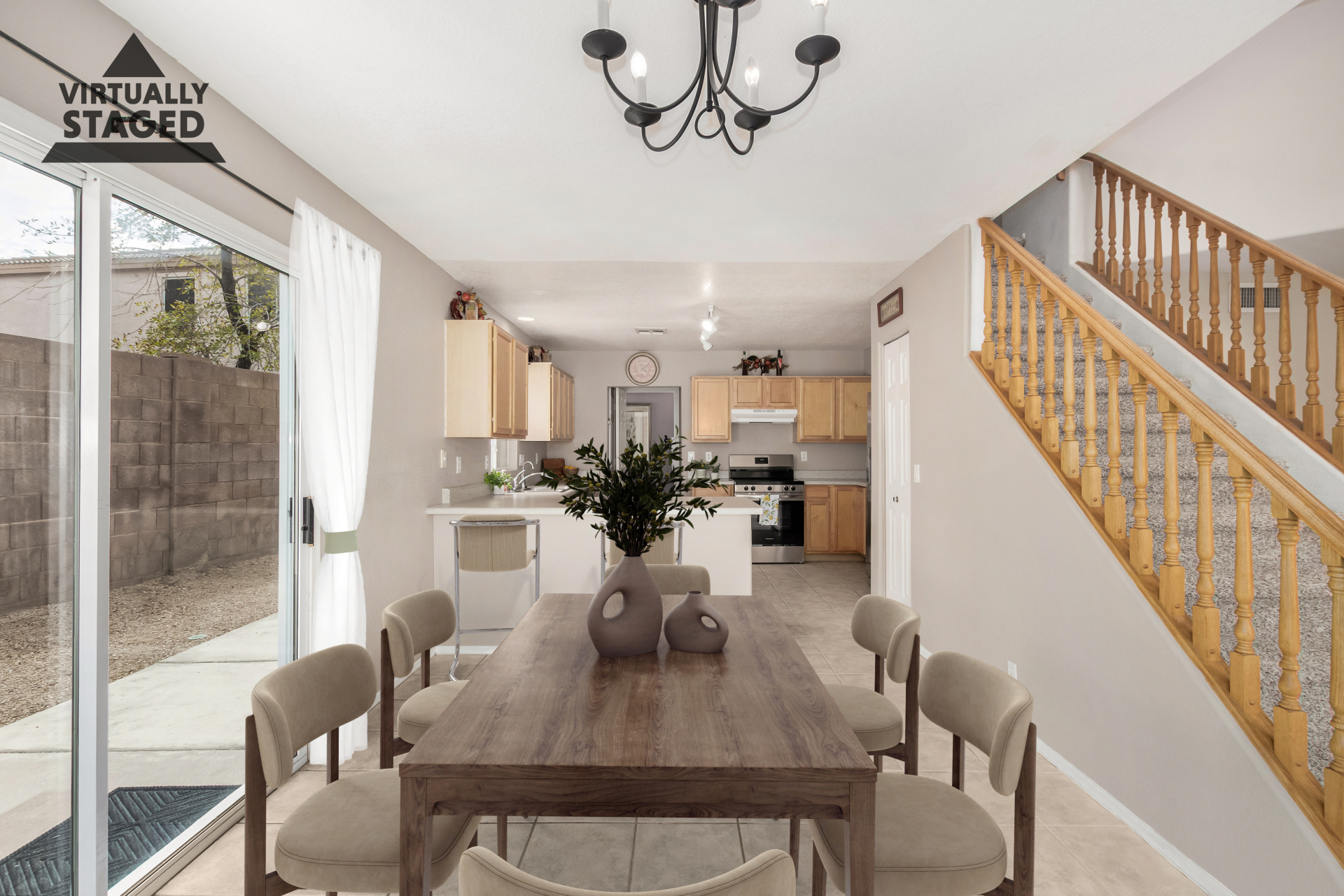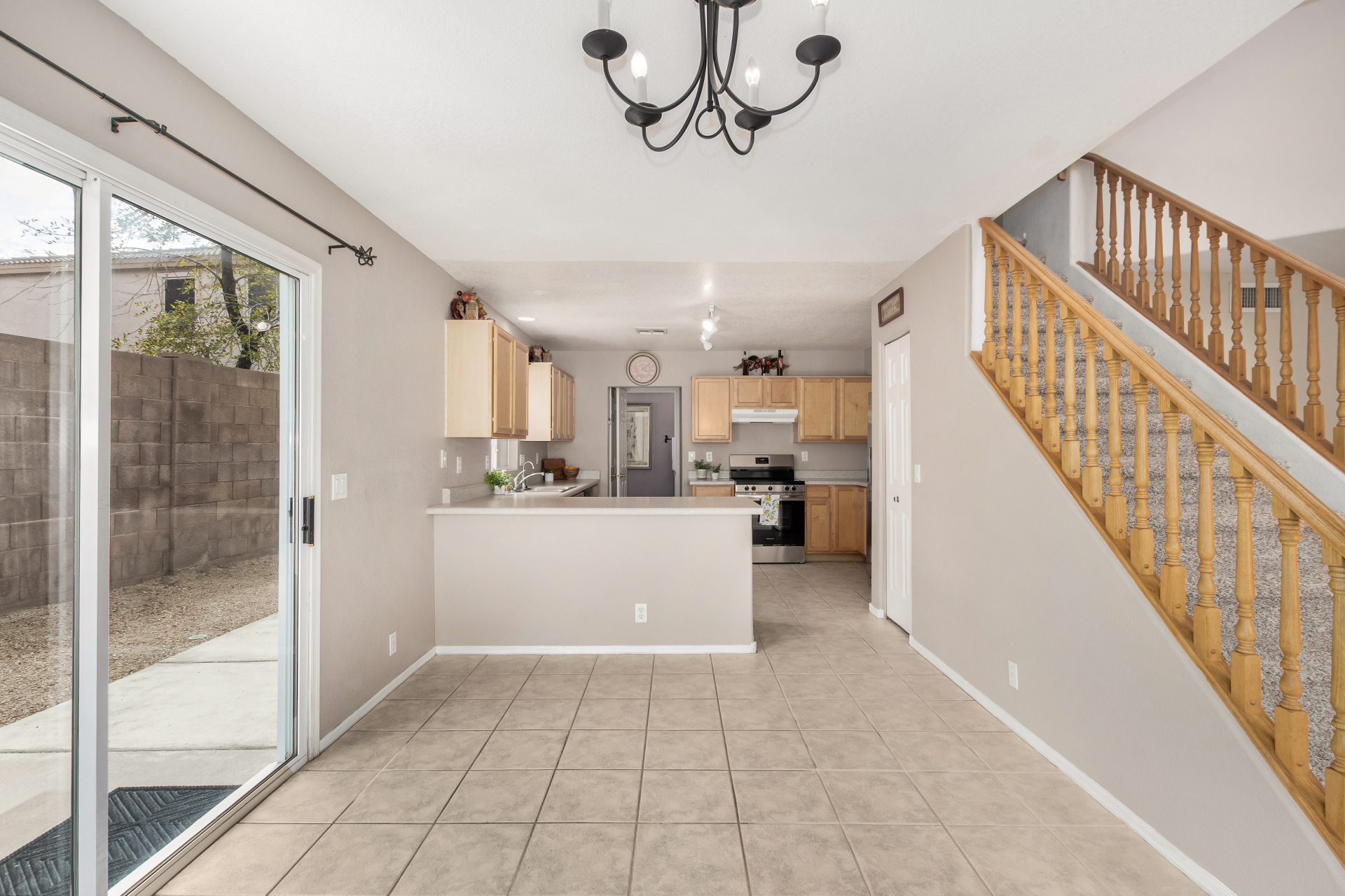 Welcome home to a gated community backing to a greenbelt! Home features a freshly painted exterior, a 2-car garage & easy-care front yard. Enter to see a spacious living room filled w/abundant natural light, neutral-tone tile flooring, & soothing paint colors. The delightful dining area flows seamlessly into a well-appointed kitchen boasting maple cabinets, SS appliances, a pantry, ample counters, & breakfast bar. A powder room adds convenience to the main level! Upstairs, you'll find new carpet throughout & a cozy loft ideal for a home office or reading nook. The primary is spacious & is ensuite w/dual sinks. Enjoy outdoor living in the easy-care backyard comprising a paved patio, view fence, & plenty of play space—plus no neighbors behind for added privacy. Must see!