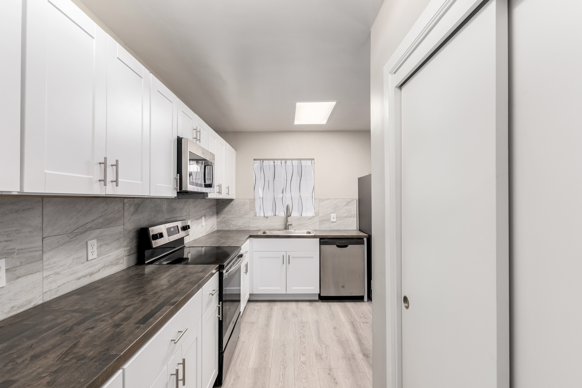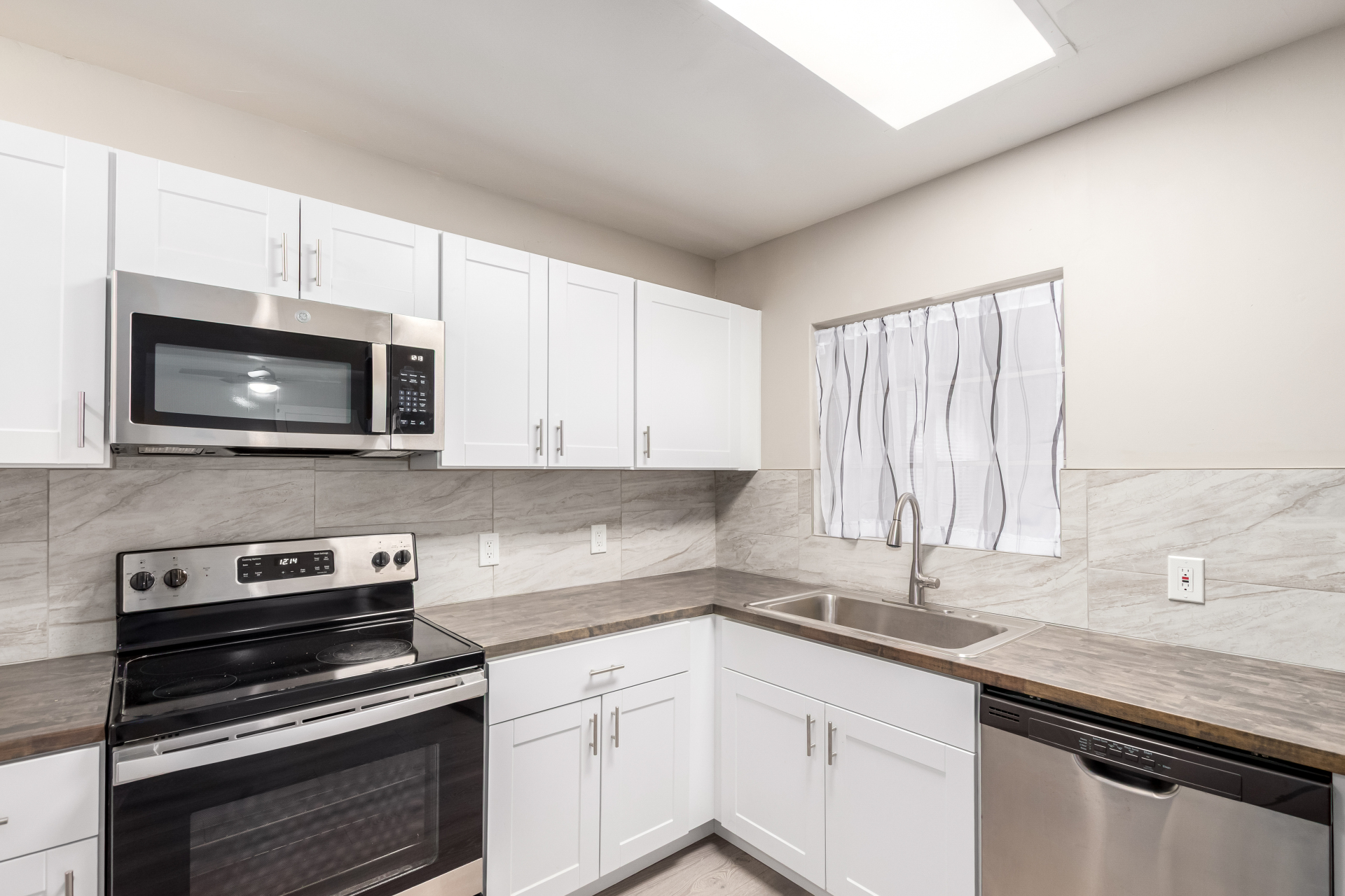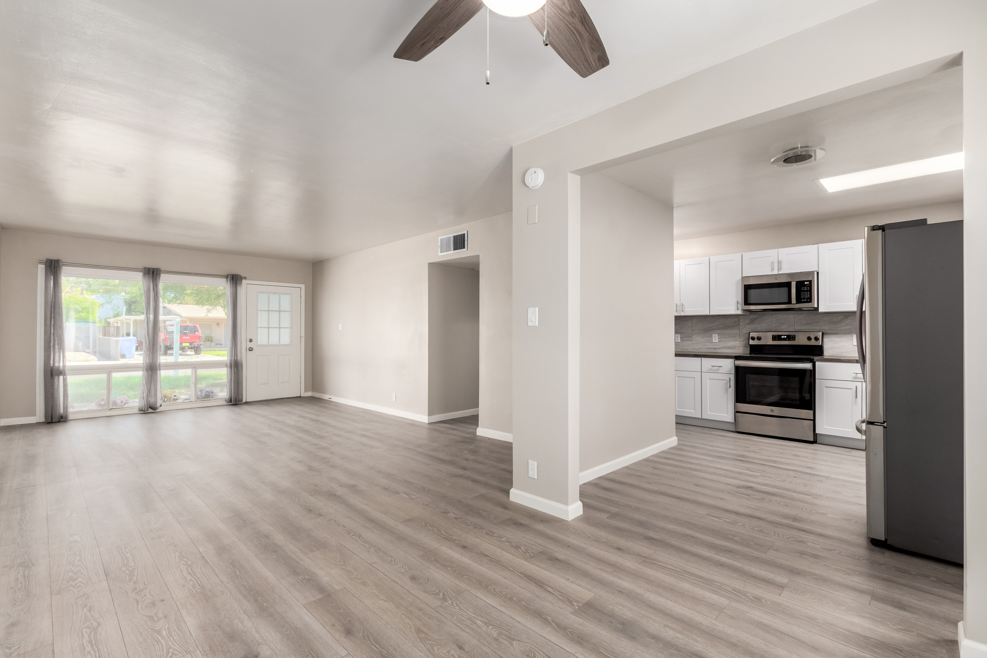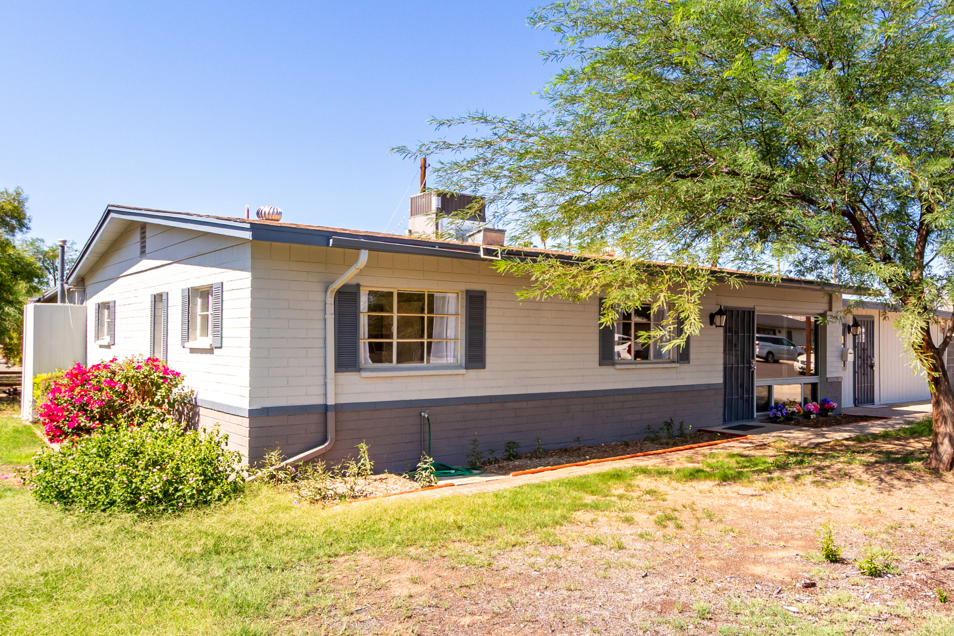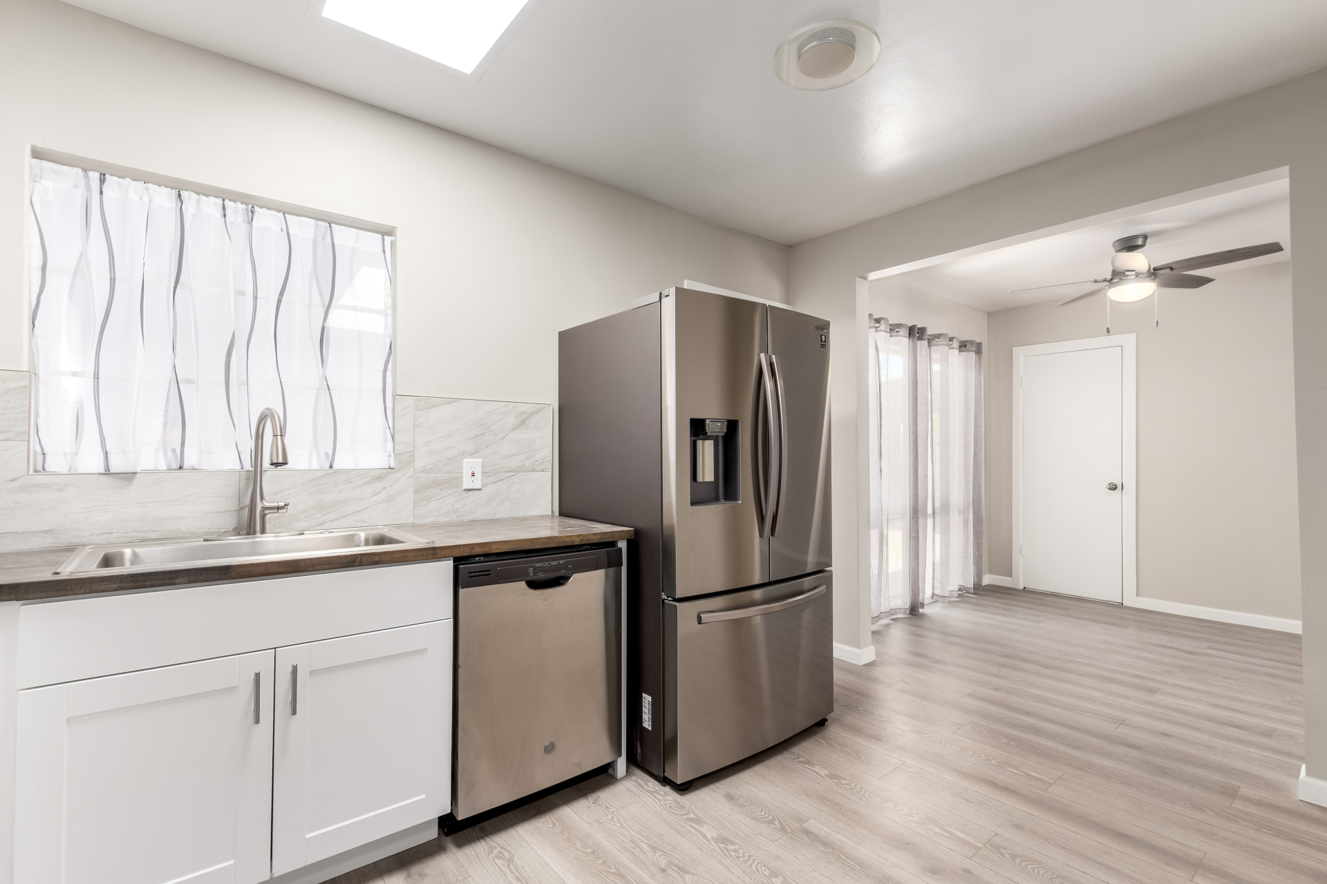 Take advantage of the fantastic opportunity to own this coveted corner lot property! This 3-bedroom home features an inviting living/dining room with a soothing palette and stylish wood-look flooring. The well-appointed kitchen comes with solid surface counters, white shaker cabinets, a handy pantry, and sleek stainless steel appliances. Spend enchanting evenings in the dedicated family room, boasting skylights for ample natural light and a free-standing fireplace for intimate moments. The main bedroom includes double built-in closets, a sitting room, and a private bathroom for added comfort. Spend quiet afternoons in the backyard, complete with a covered patio, pristine artificial turf, and a fenced pool for refreshing dips. Make it yours now!