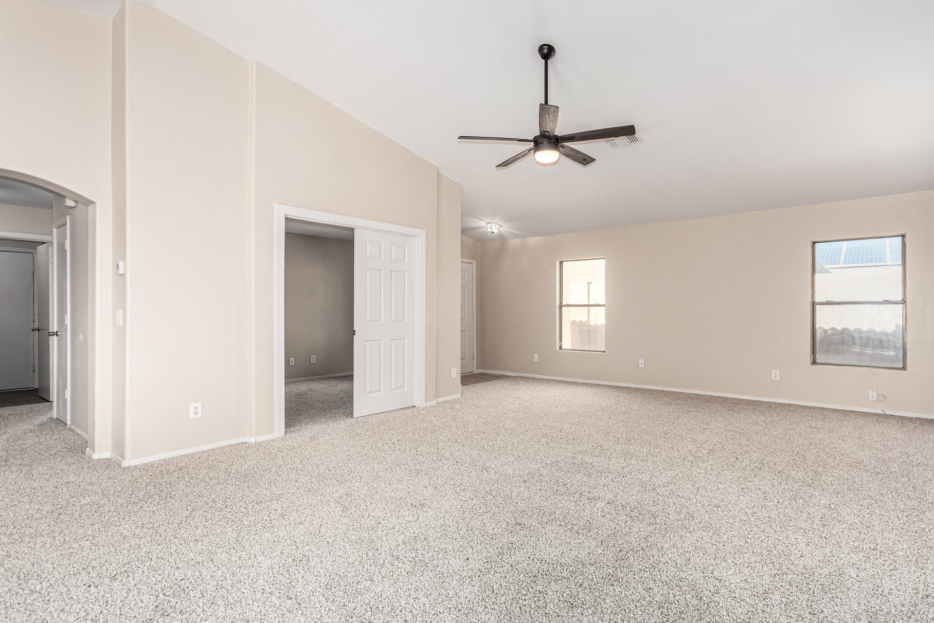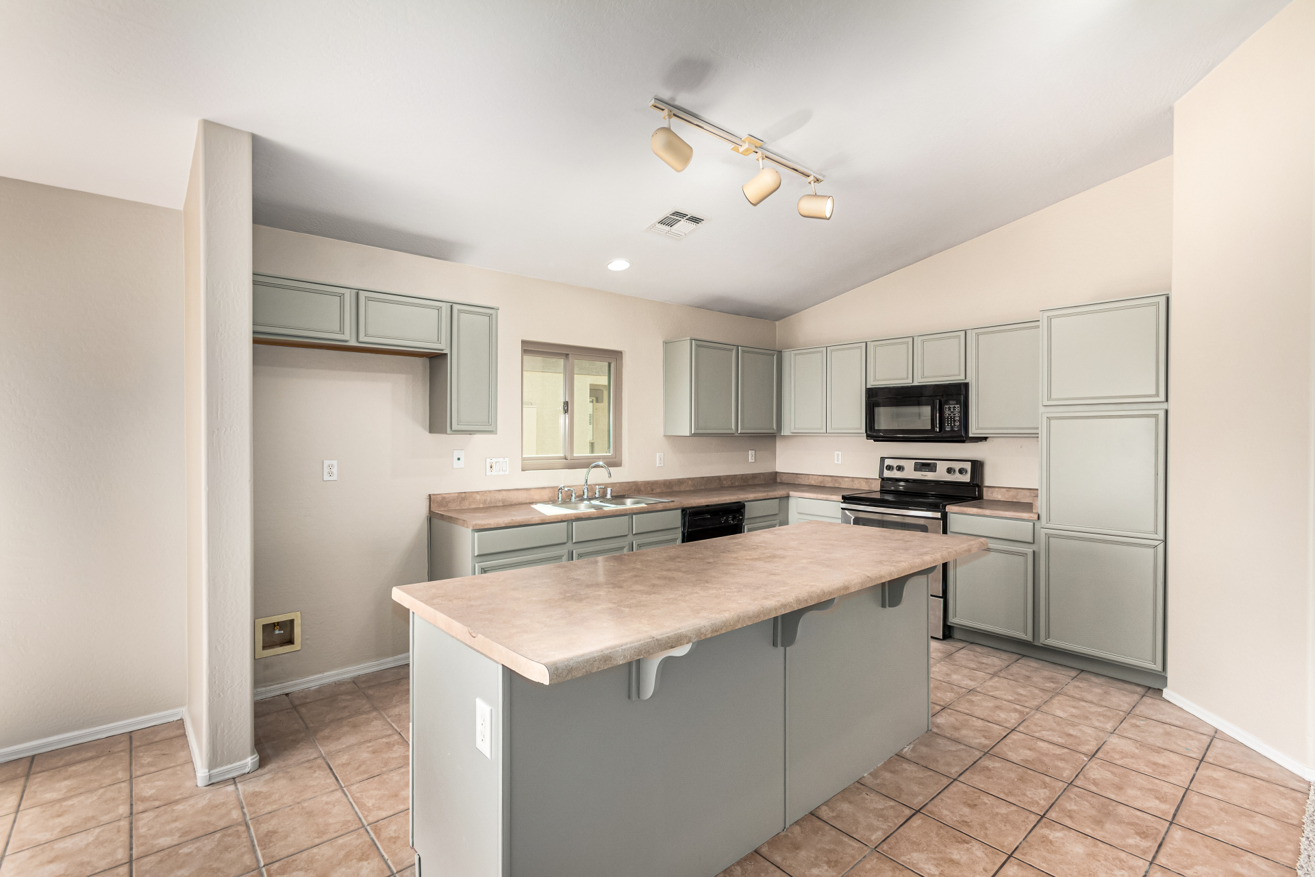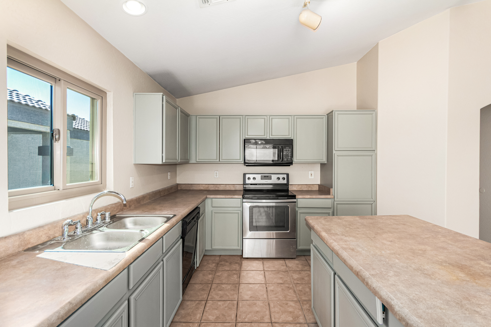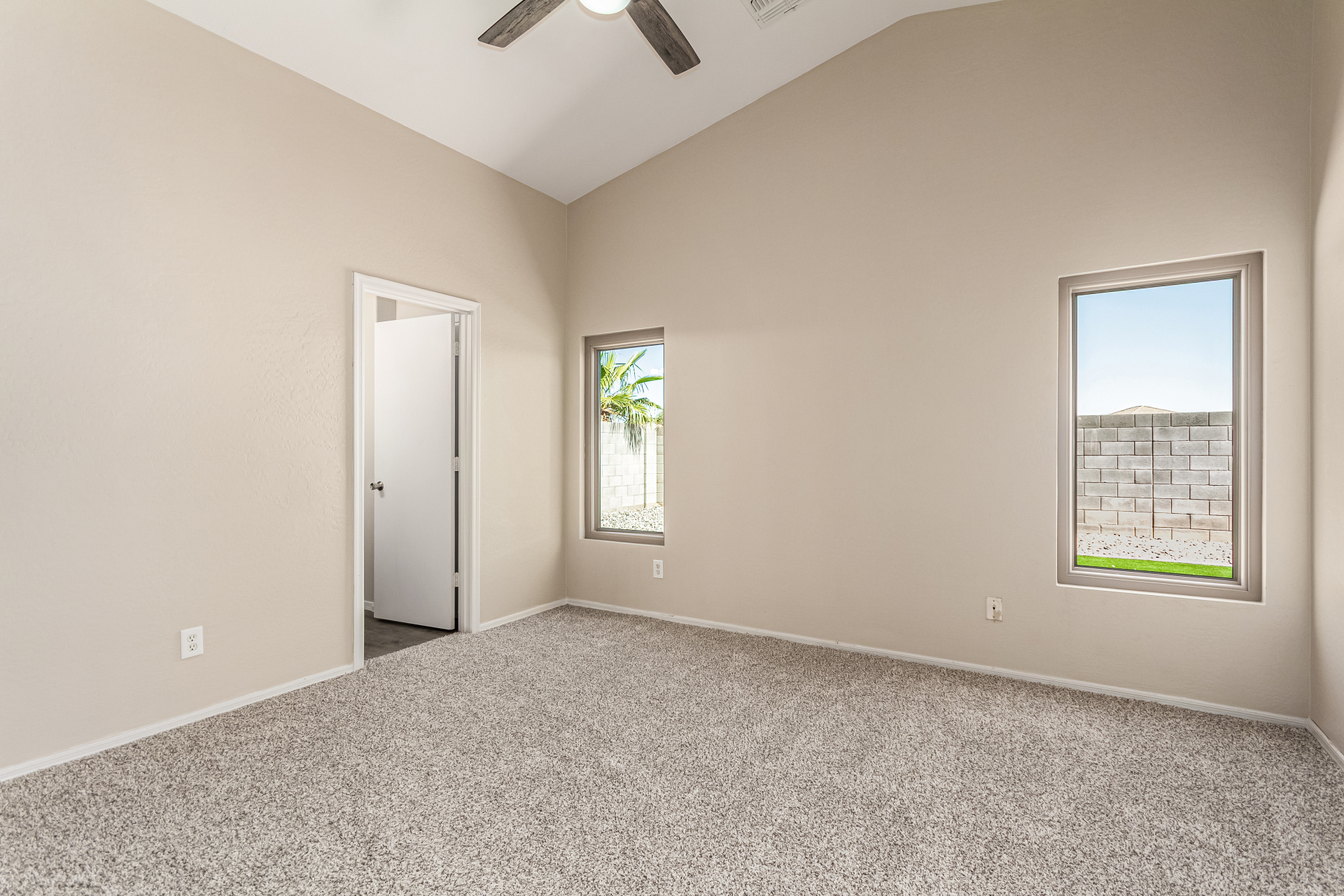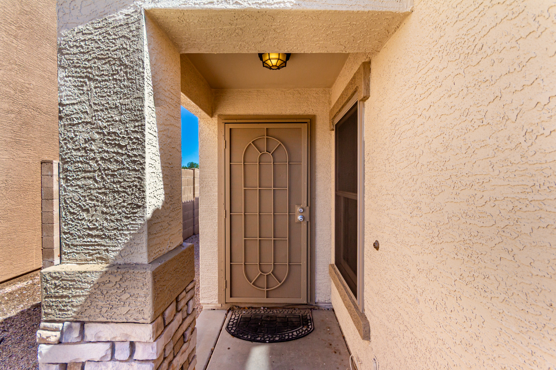 Welcome to this inviting residence! Showcasing a stone-accented façade, 2-car garage with extended driveway, and great curb appeal. Inside, the home features a spacious open layout with 3 bedrooms, 2 bathrooms, vaulted ceilings, neutral paint, and a cozy carpeted living area. A double-door den offers flexibility as a home office or potential 4th bedroom! The kitchen offers an island with breakfast bar, built-in appliances, ample counters, beautiful cabinetry, and track lighting. Split main bedroom ensures privacy with a walk-in closet and a bathroom. Both bathrooms are equipped with grab bars for added convenience and safety! The backyard is designed for relaxation and entertaining, featuring a covered patio, grassy area, and plenty of room for a pool, BBQ, or gazebo. Act now!