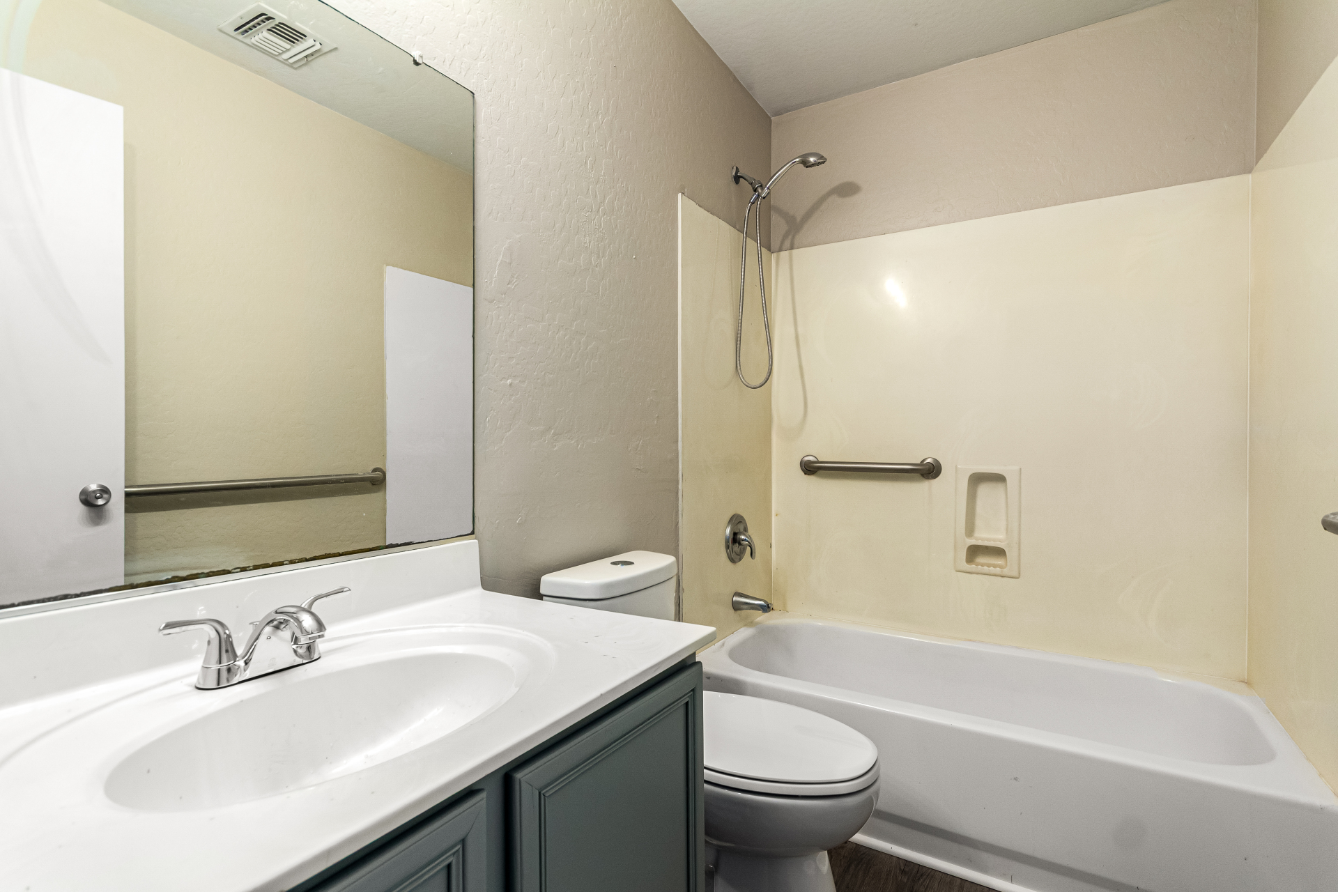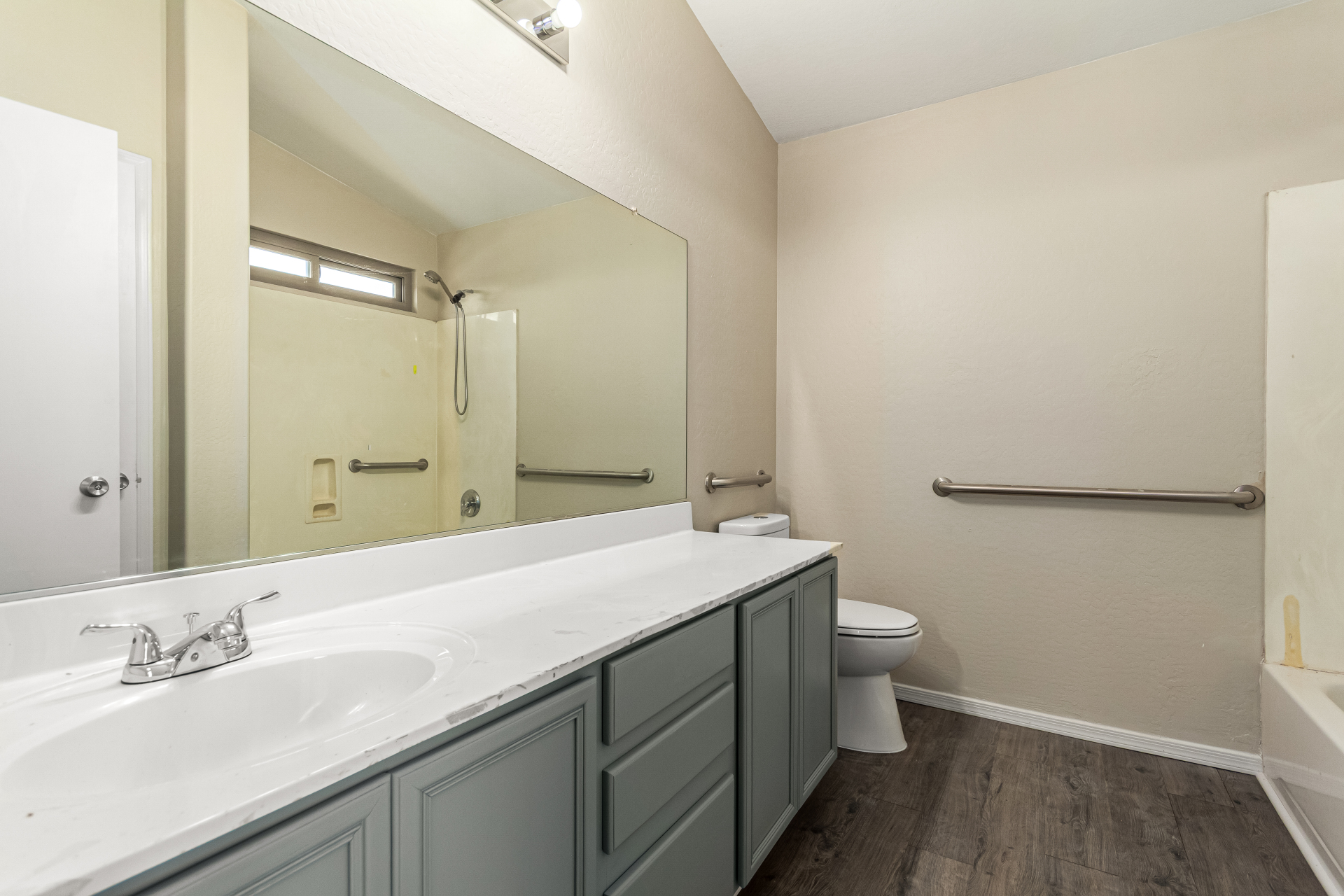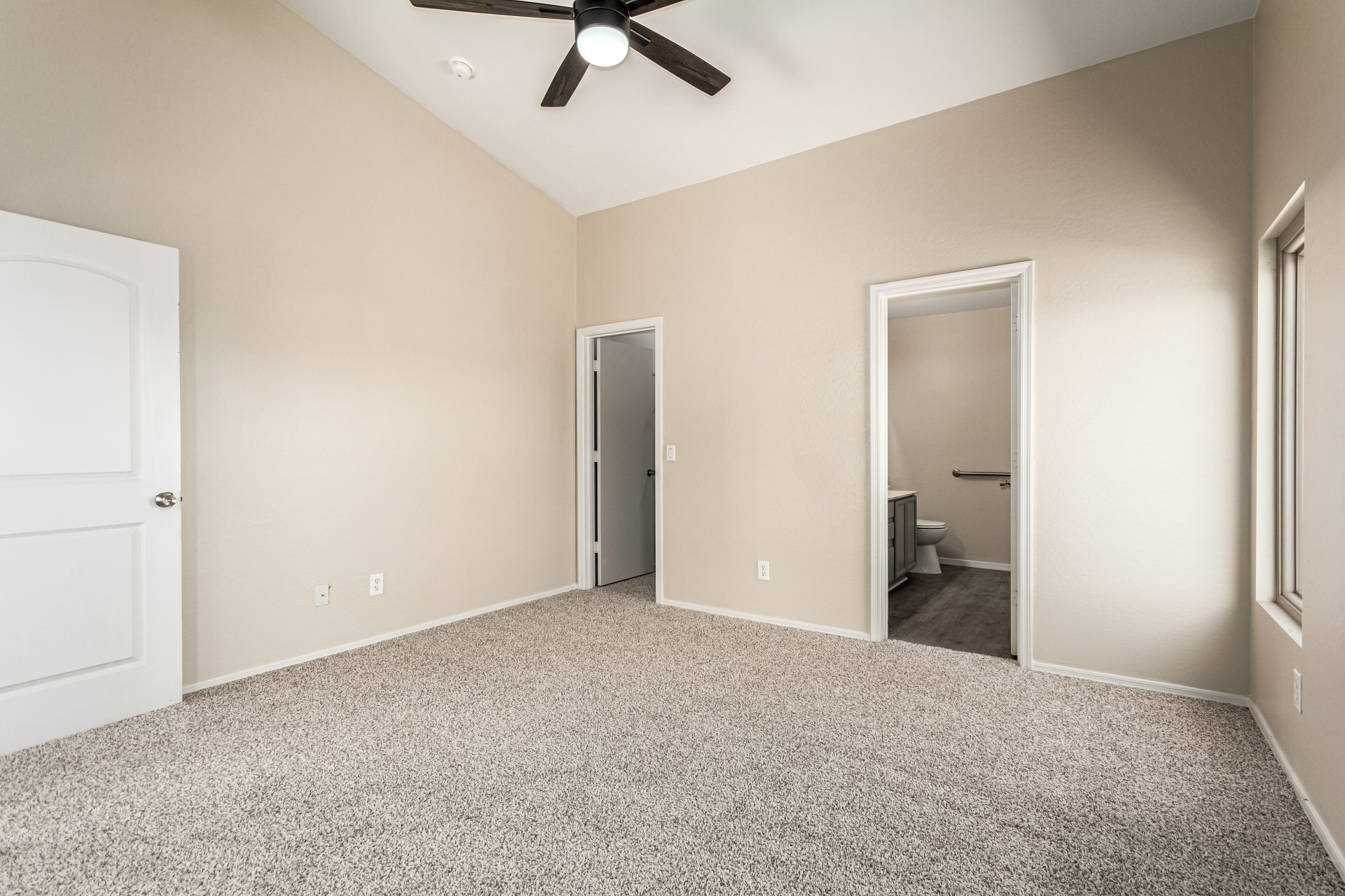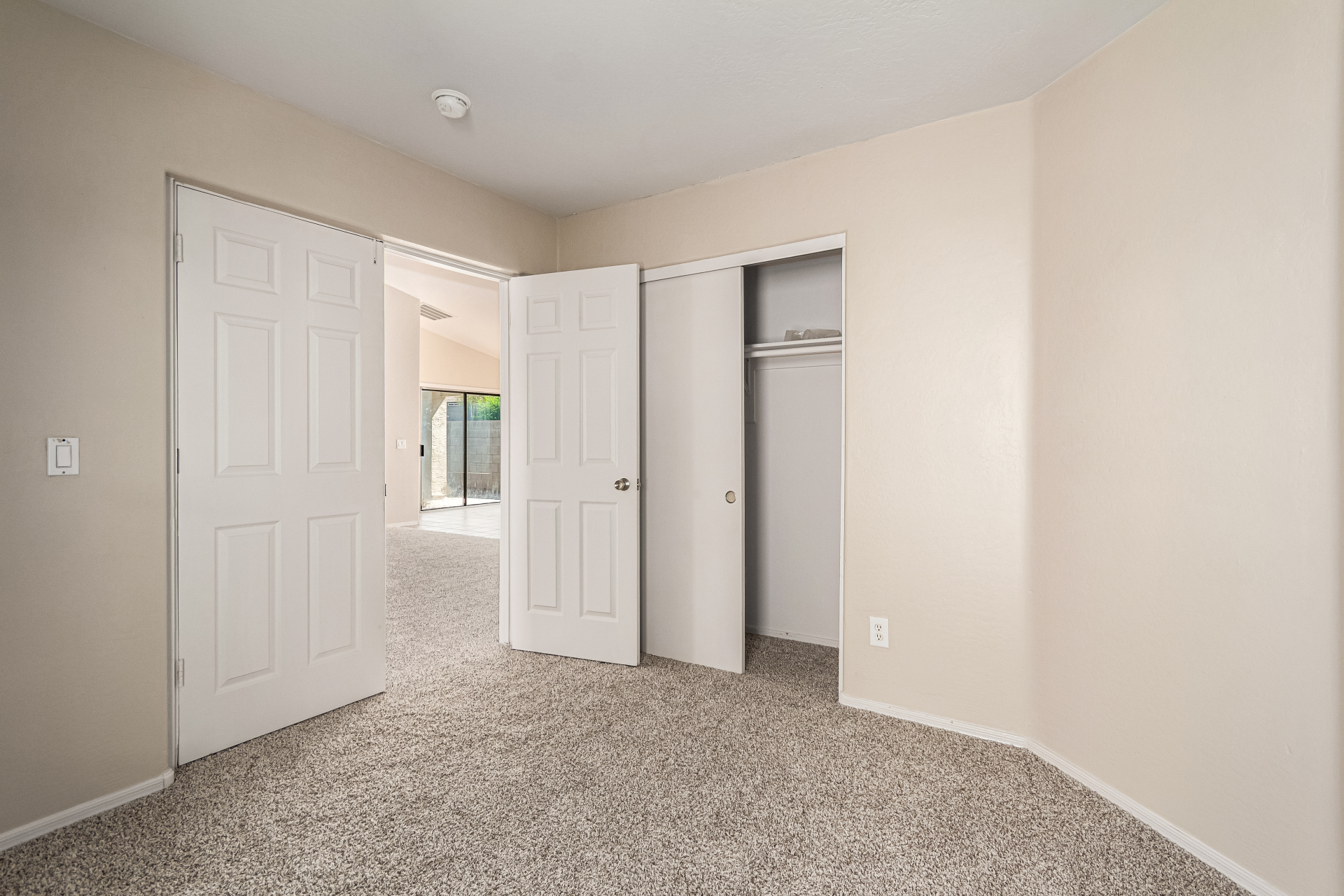 Welcome to this inviting residence! Showcasing a stone-accented façade, 2-car garage with extended driveway, and great curb appeal. Inside, the home features a spacious open layout with 3 bedrooms, 2 bathrooms, vaulted ceilings, neutral paint, and a cozy carpeted living area. A double-door den offers flexibility as a home office or potential 4th bedroom! The kitchen offers an island with breakfast bar, built-in appliances, ample counters, beautiful cabinetry, and track lighting. Split main bedroom ensures privacy with a walk-in closet and a bathroom. Both bathrooms are equipped with grab bars for added convenience and safety! The backyard is designed for relaxation and entertaining, featuring a covered patio, grassy area, and plenty of room for a pool, BBQ, or gazebo. Act now!