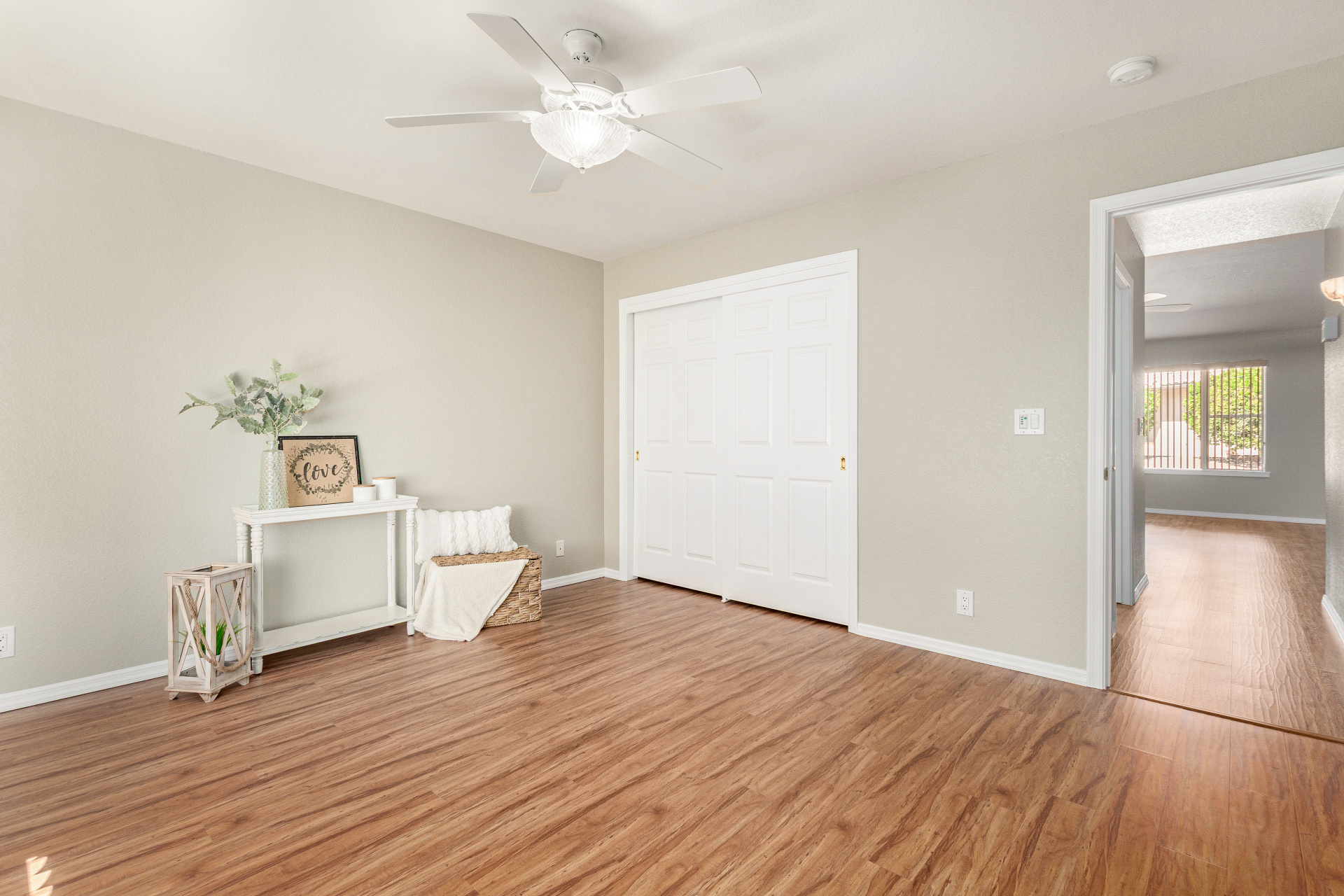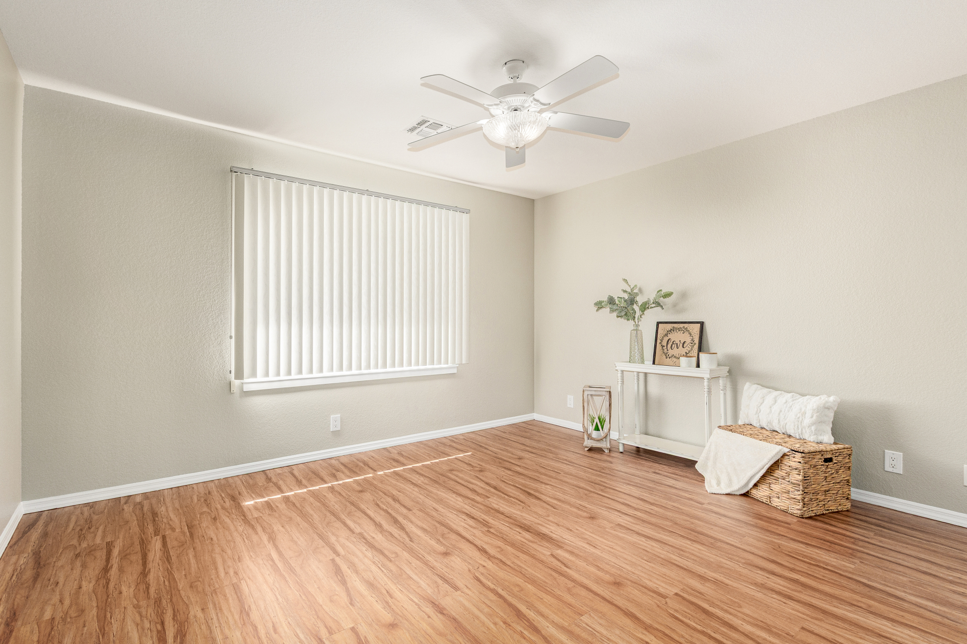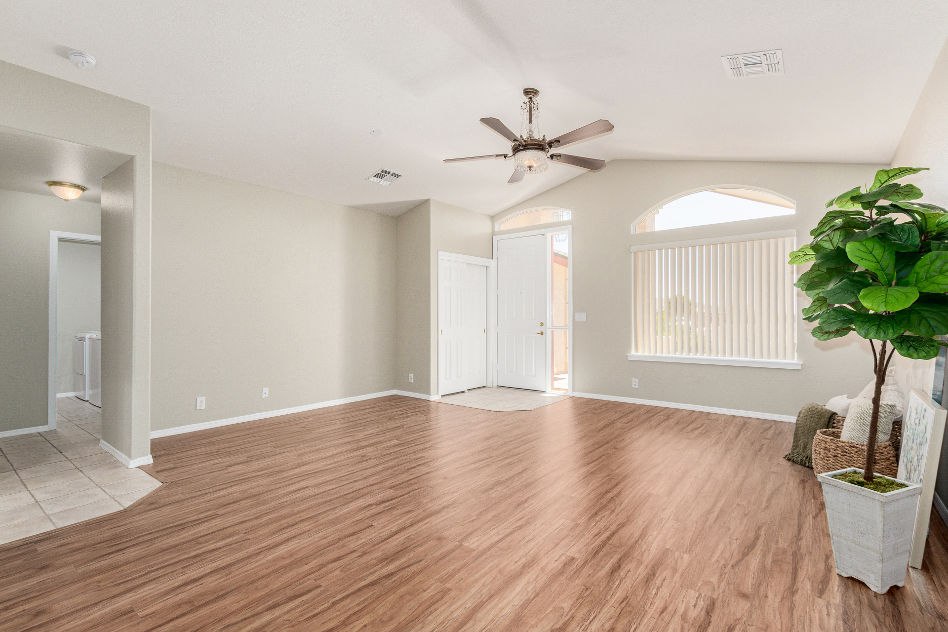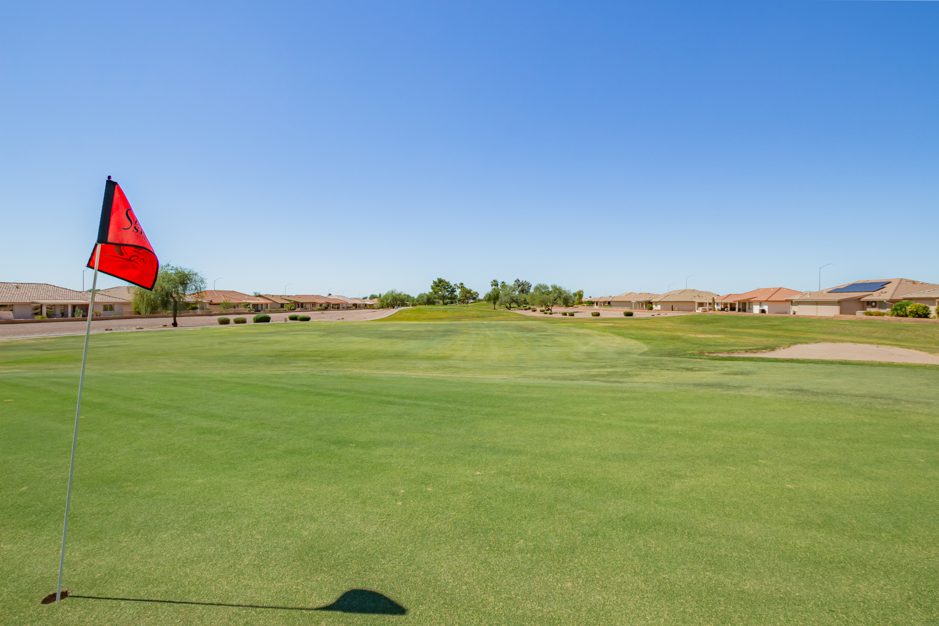 Prepare to be amazed by this absolute beauty, this fabulous home showcases! Upgraded interior boasts clean lines that promote a modern feel, enhanced by fresh paint, a blend of wood-look & tile flooring, ceiling fans, and vaulted ceilings. Entertain guests in the inviting living room and large great room filled with lots of natural light. The kitchen comes with recessed lighting, abundant white cabinets, built-in appliances, quartz counters, and a two-tier breakfast bar. Head to the main retreat, offering a private ensuite with dual sinks, soaking tub, and a walk-in closet. Enjoy the golf course view from the serene backyard, complete with a covered patio. Community amenities elevate your lifestyle with tennis courts, clubhouse, swimming pool, spa, and more. Act now before it's gone!
