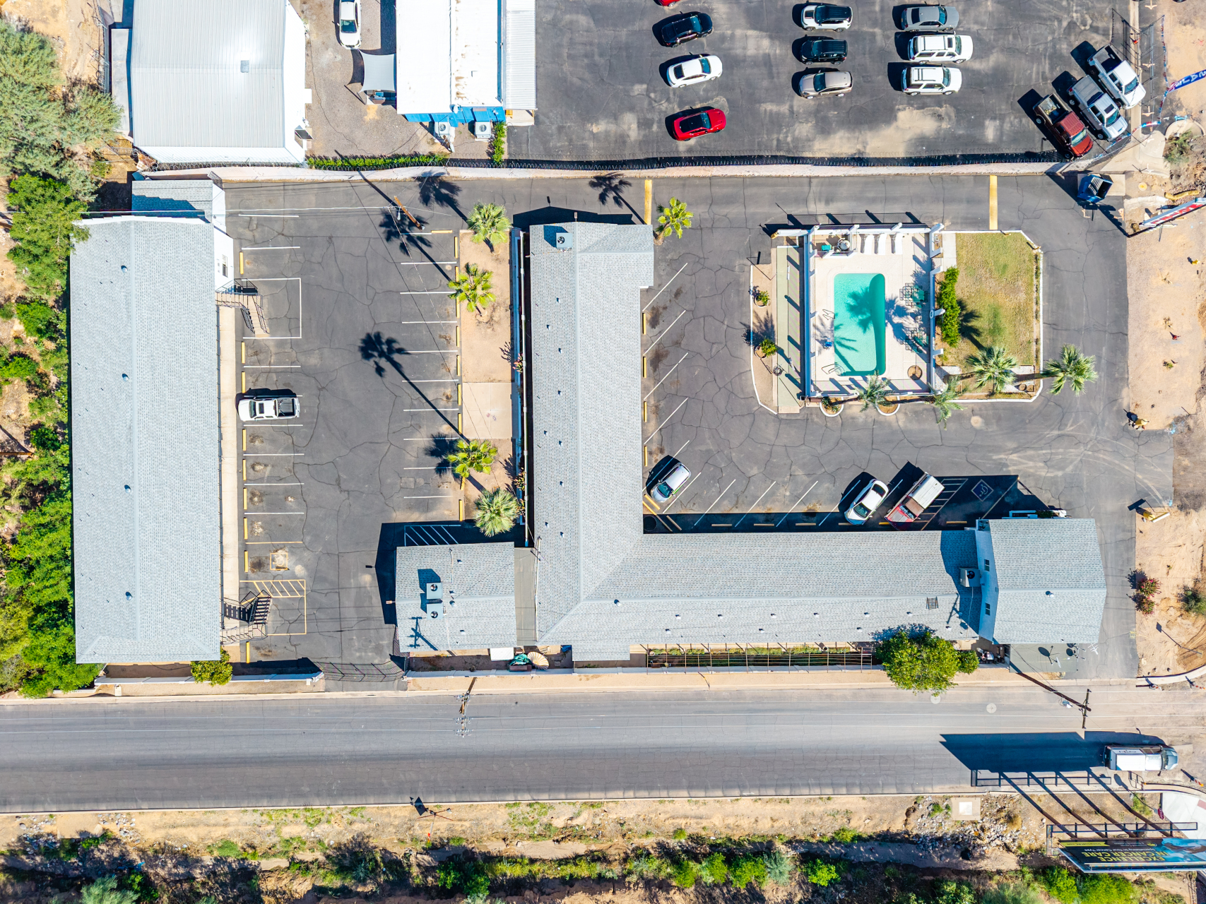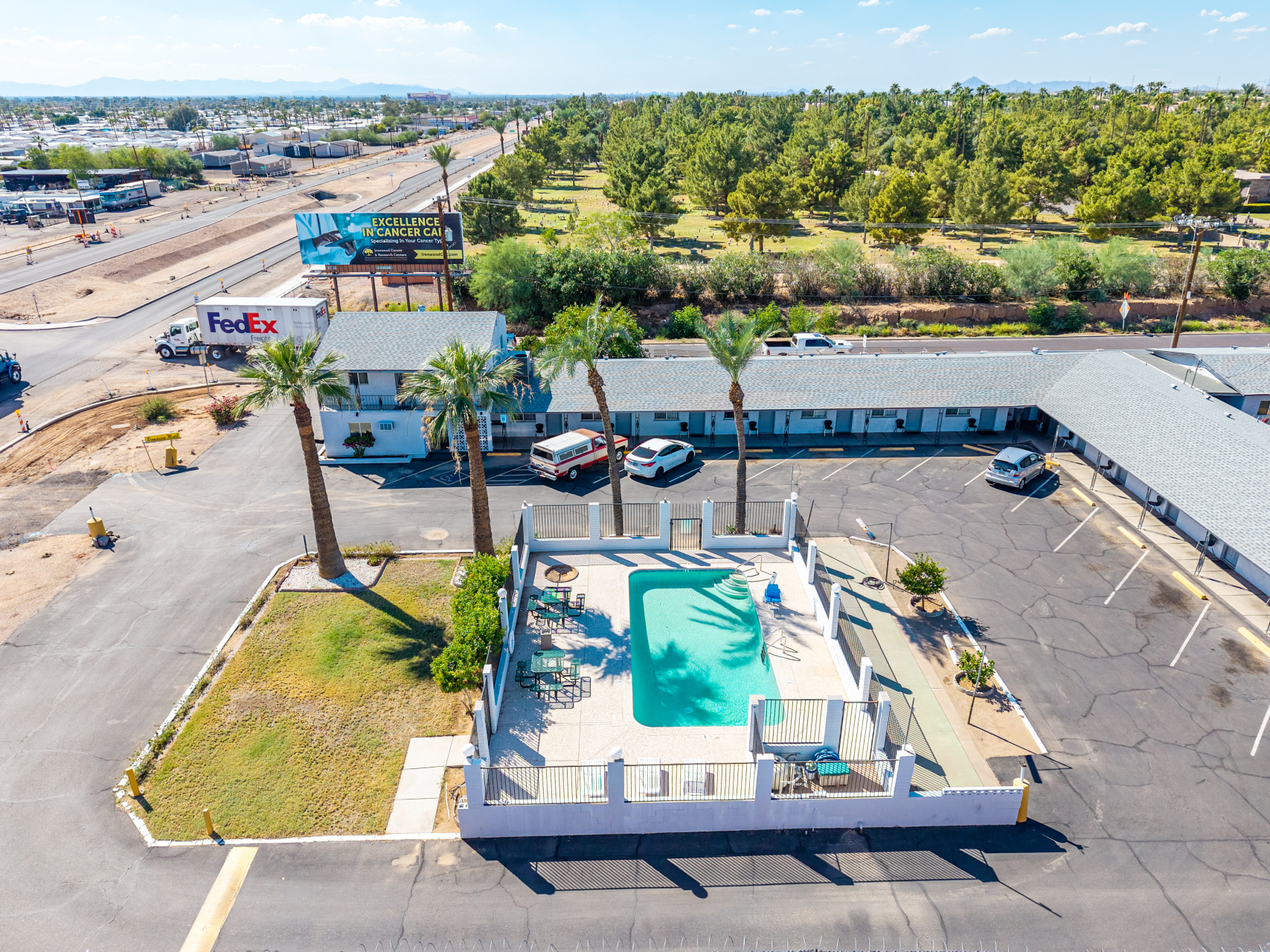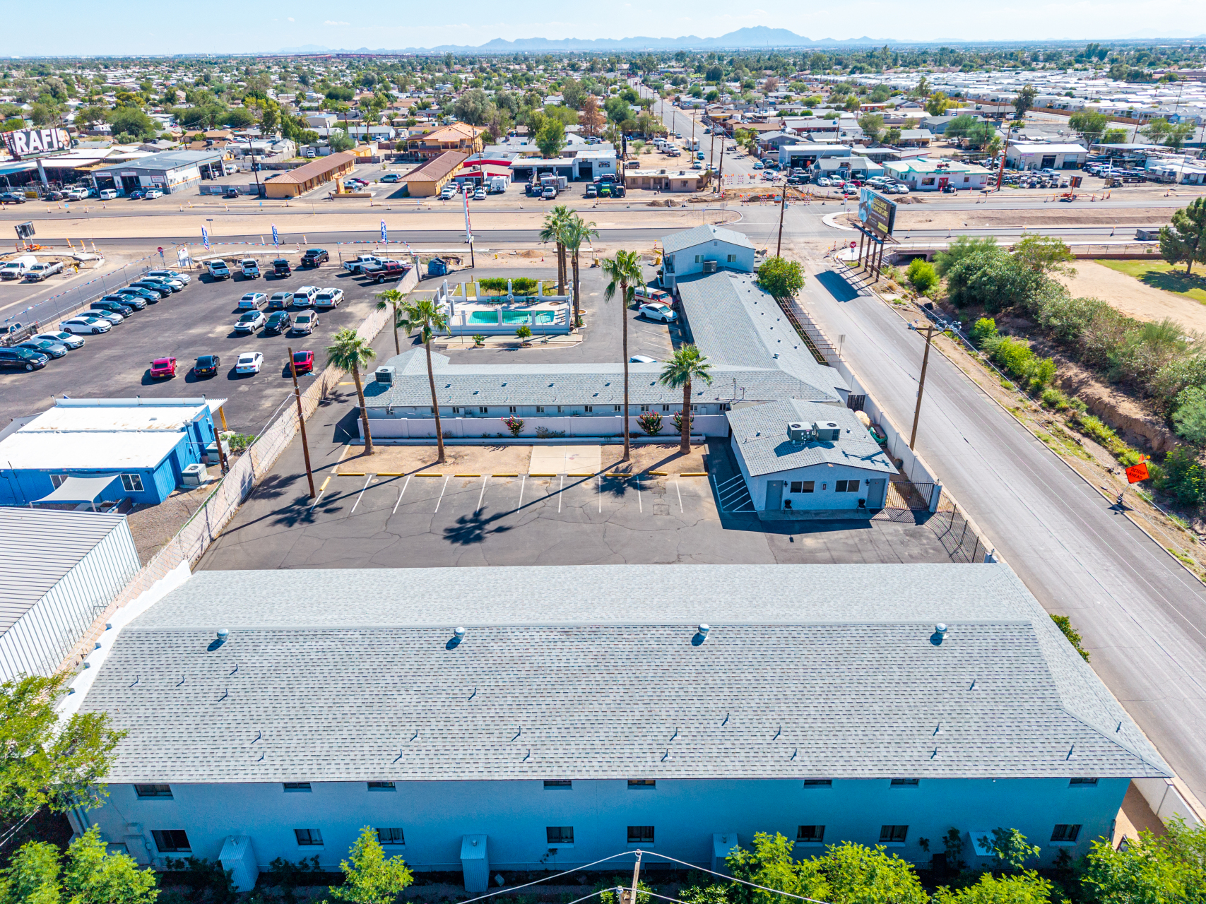 Welcome to the Broadview Motel, a well-maintained hospitality property situated on the NE corner of Main Street and 80th Street with excellent dual street frontage. This property is located within a Maricopa County island (not City of Mesa jurisdiction), offering flexibility and strong upside potential. Property Highlights: Lot Size: Approx. .94 acres (326' x 124') Buildings: 2 total — North building (2-story), South building (single-story) Guest Rooms: 32 total: Mix of studio units, studios with kitchenettes, and one-bedroom units with kitchenettes Manager's Quarters: Spacious 2-story residence featuring 3 bedrooms, 2.5 baths, a great room, full electric kitchen, in-kitchen dining, and large outdoor gas kitchenRecent Recent Upgrades & Condition $65,000 pool renovations 2024