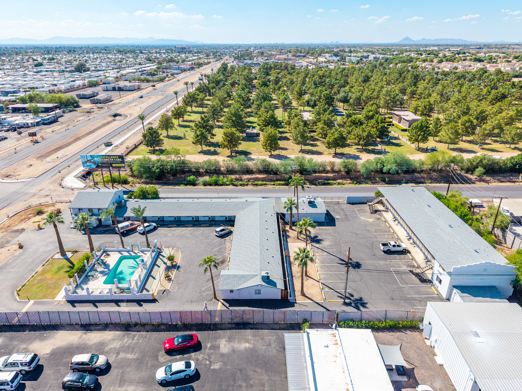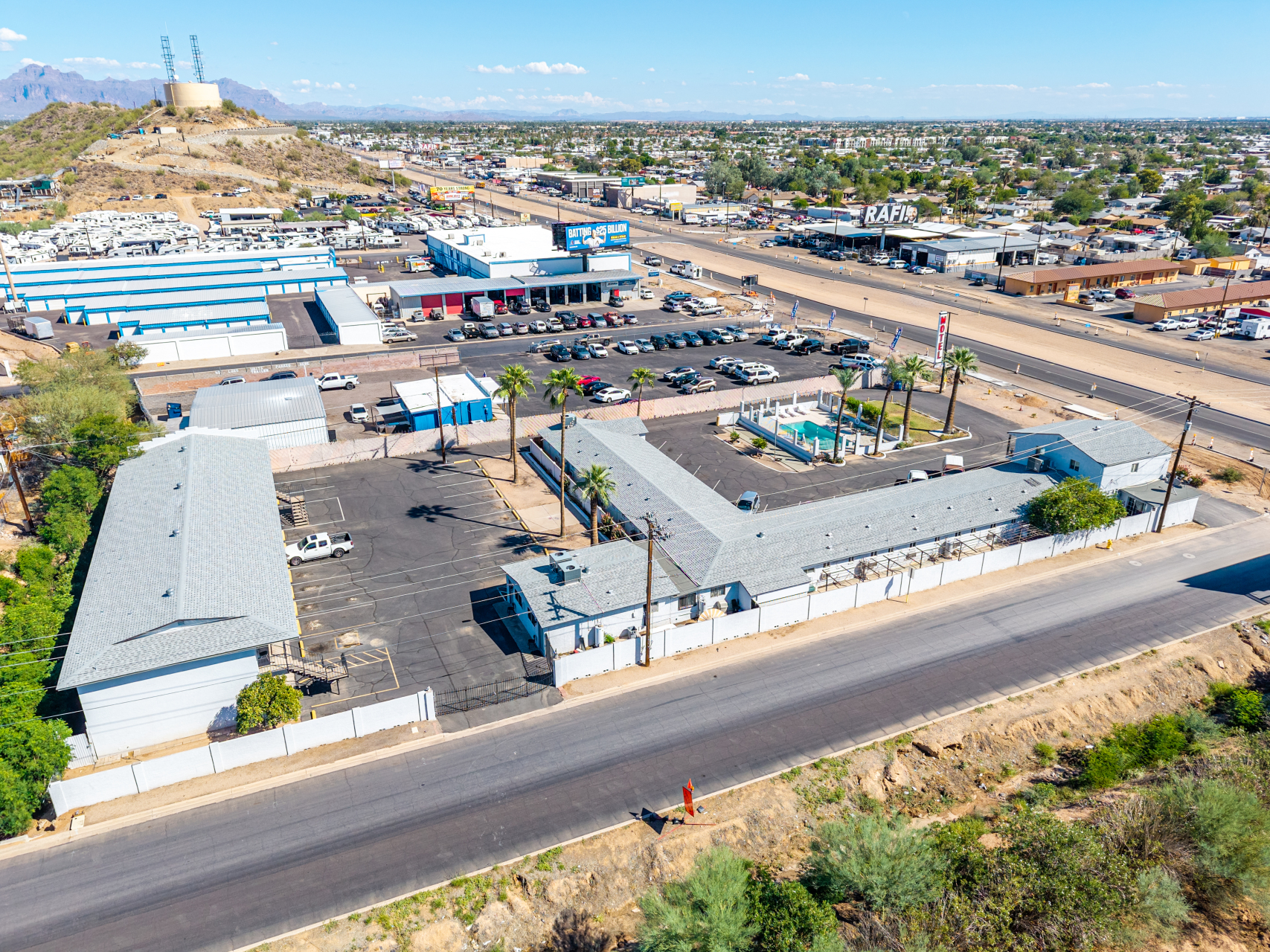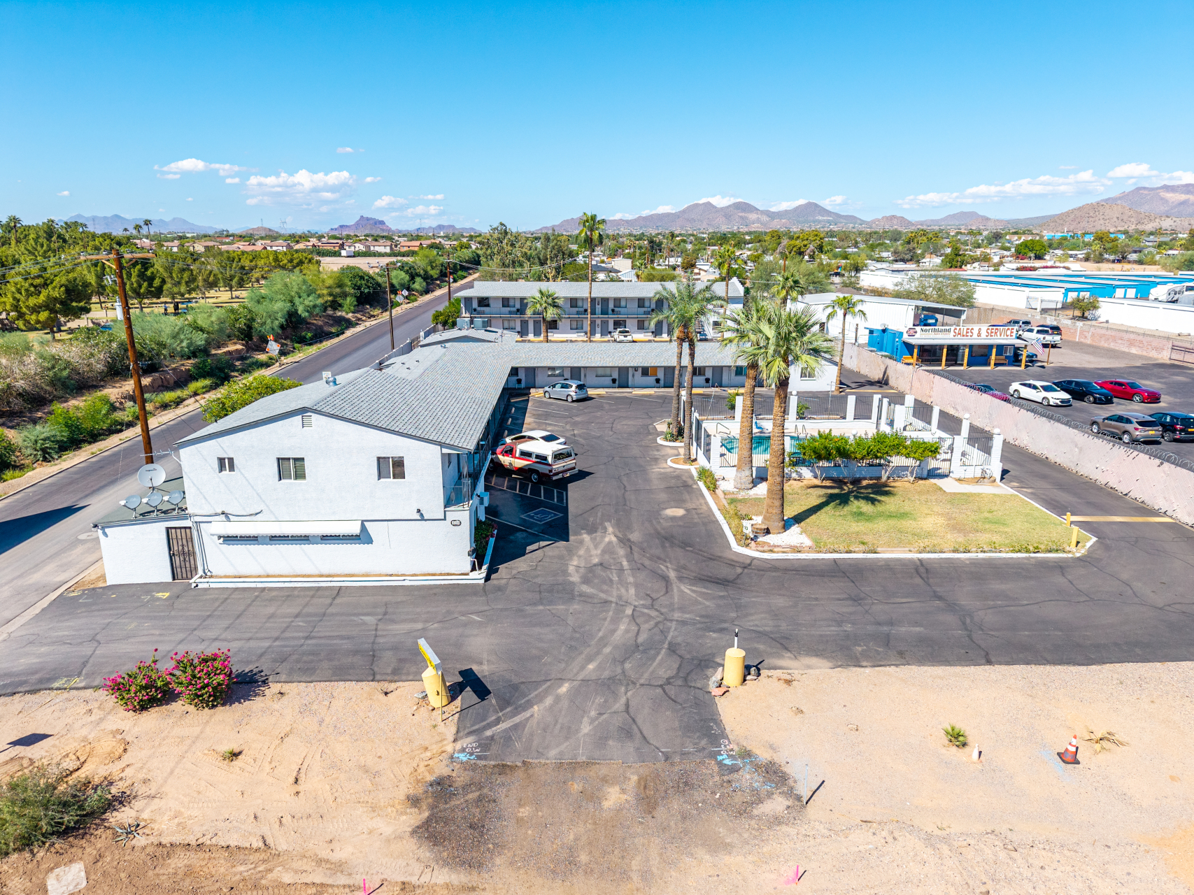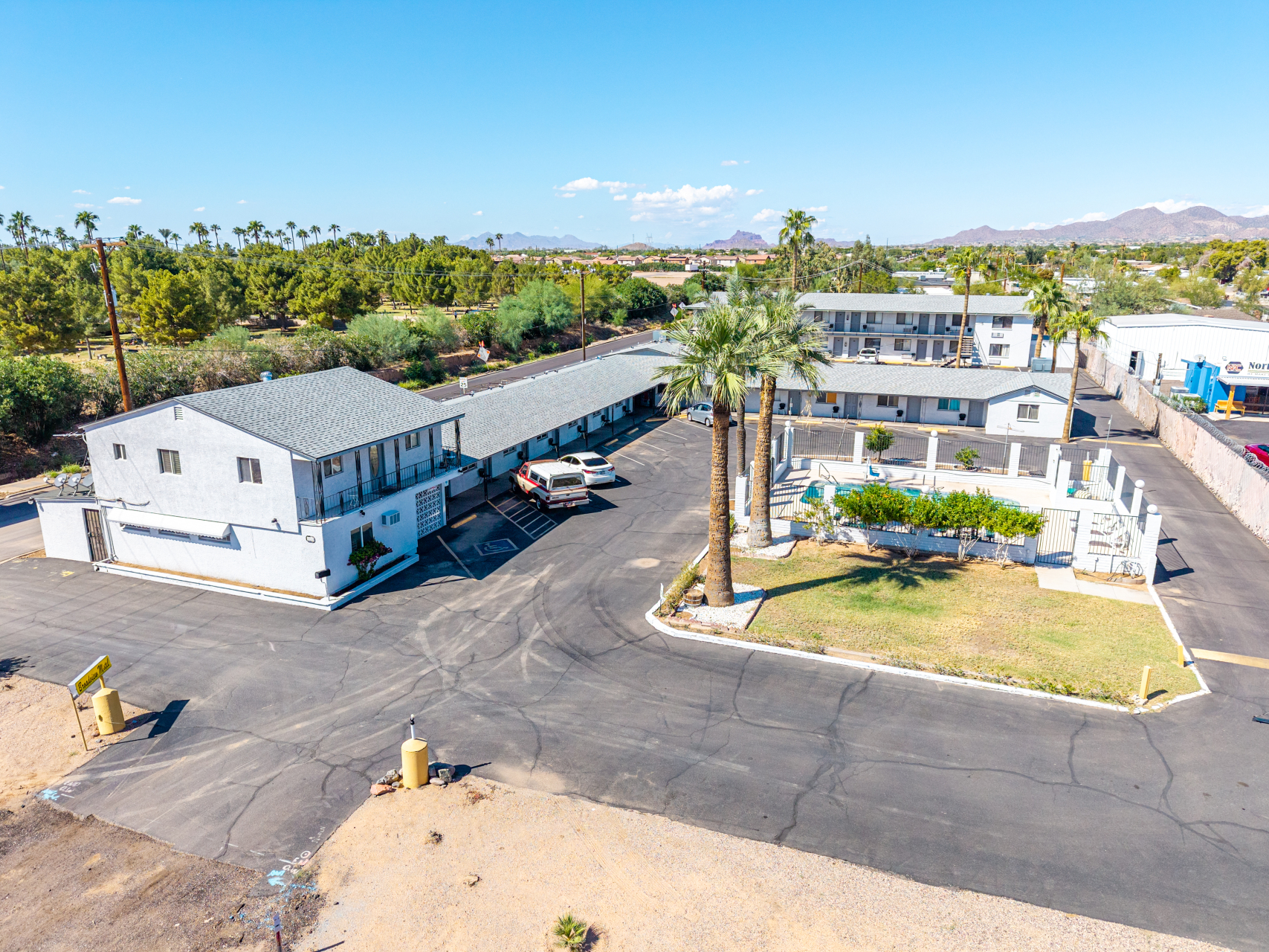 Welcome to the Broadview Motel, a well-maintained hospitality property situated on the NE corner of Main Street and 80th Street with excellent dual street frontage. This property is located within a Maricopa County island (not City of Mesa jurisdiction), offering flexibility and strong upside potential. Property Highlights: Lot Size: Approx. .94 acres (326' x 124') Buildings: 2 total — North building (2-story), South building (single-story) Guest Rooms: 32 total: Mix of studio units, studios with kitchenettes, and one-bedroom units with kitchenettes Manager's Quarters: Spacious 2-story residence featuring 3 bedrooms, 2.5 baths, a great room, full electric kitchen, in-kitchen dining, and large outdoor gas kitchenRecent Recent Upgrades & Condition $65,000 pool renovations 2024