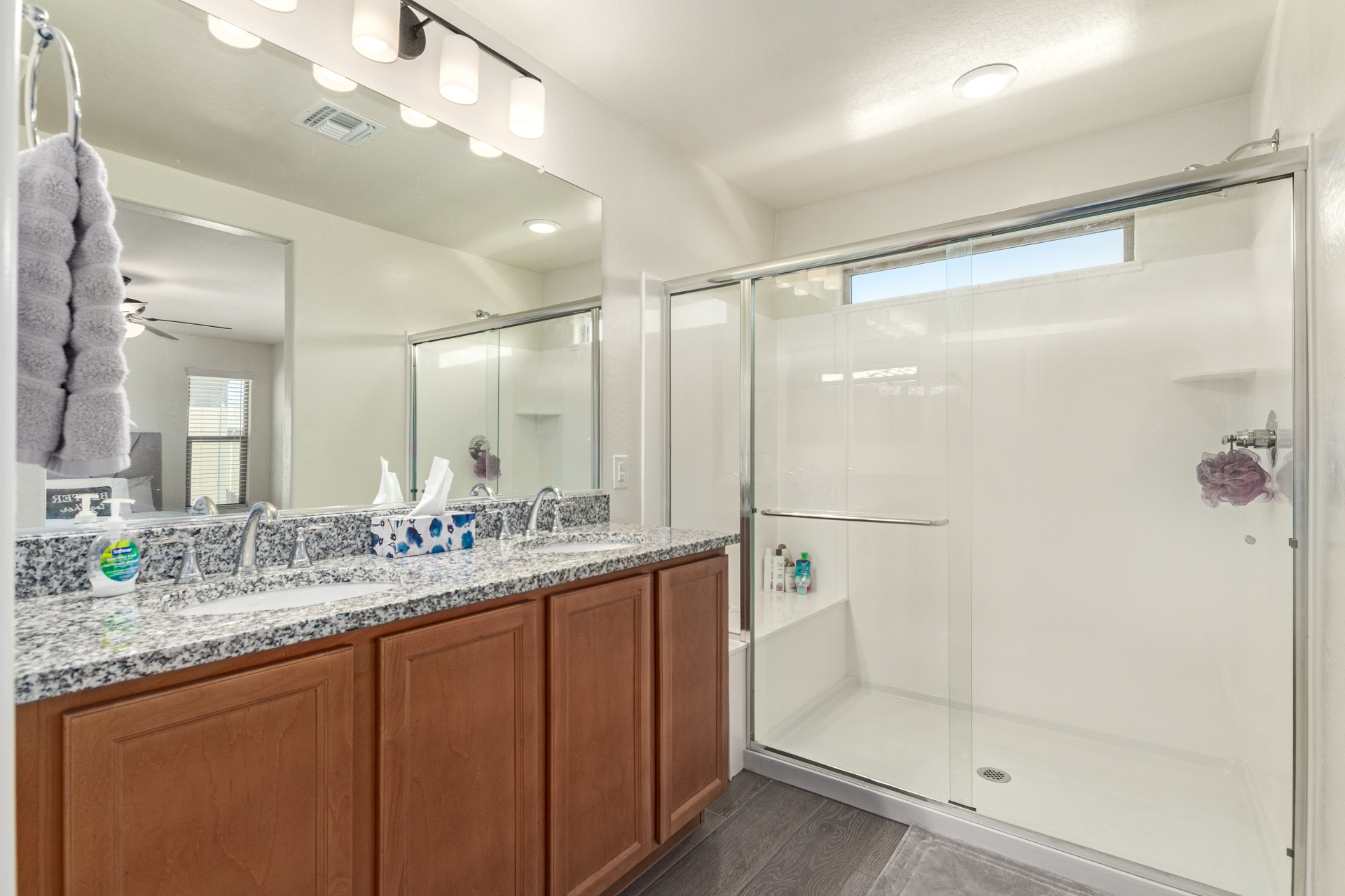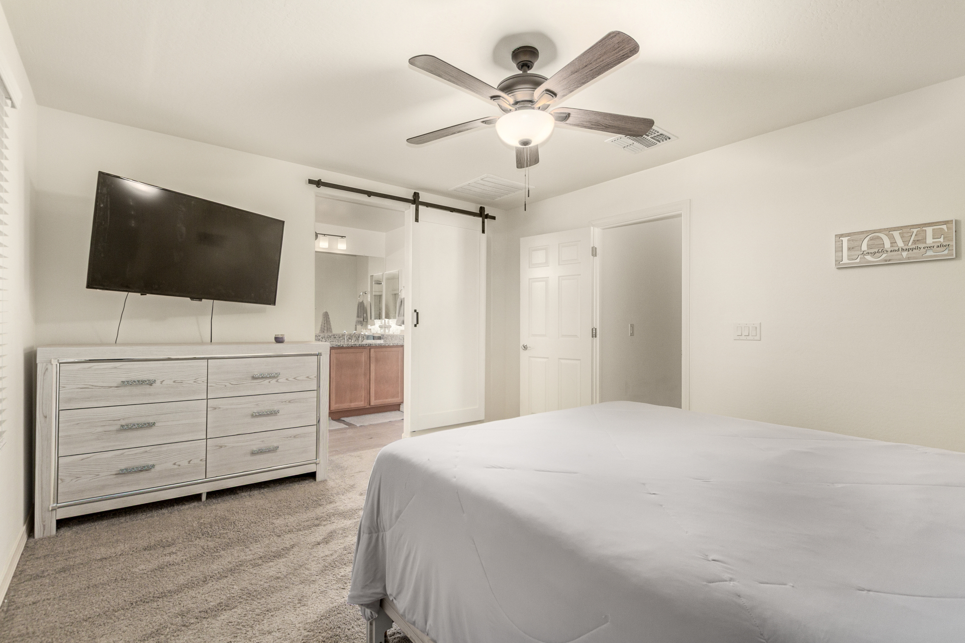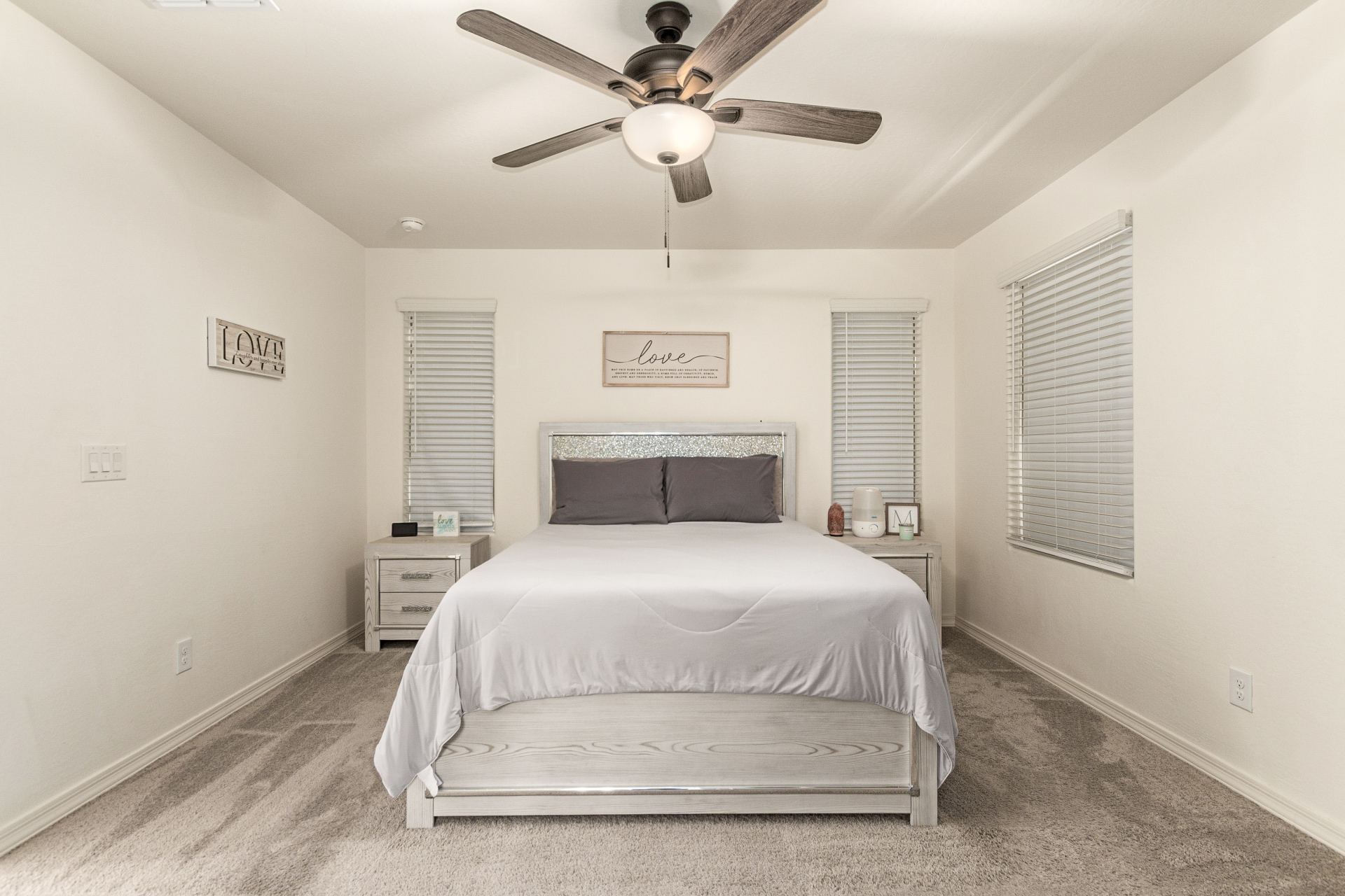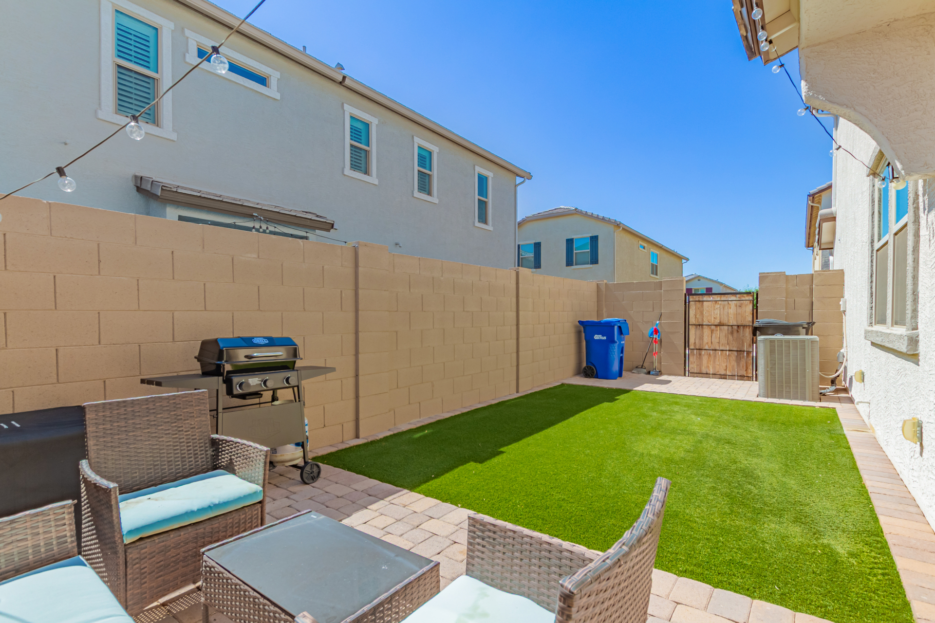 You don't want to miss this lovely two-story home in Heritage Crossing! Discover all the charm inside, featuring wood-look flooring, tons of natural light, sliding doors to the patio, and stylish neutral tones. Whip up your favorite meals in the pristine culinary space, equipped with white cabinetry, granite countertops, stainless steel appliances, and an island with a breakfast bar, for those casual conversations over quick meals. The main bedroom is a true retreat, adding extra comfort with carpeting underfoot, a walk-in closet, and a bathroom with double sinks. Enjoy delicious BBQ with your loved ones in the patio, complete with a lush lawn and a seating area with pavers, perfect for entertaining. Visit the community's pool, walking path, and playground for fun times! Welcome home!
