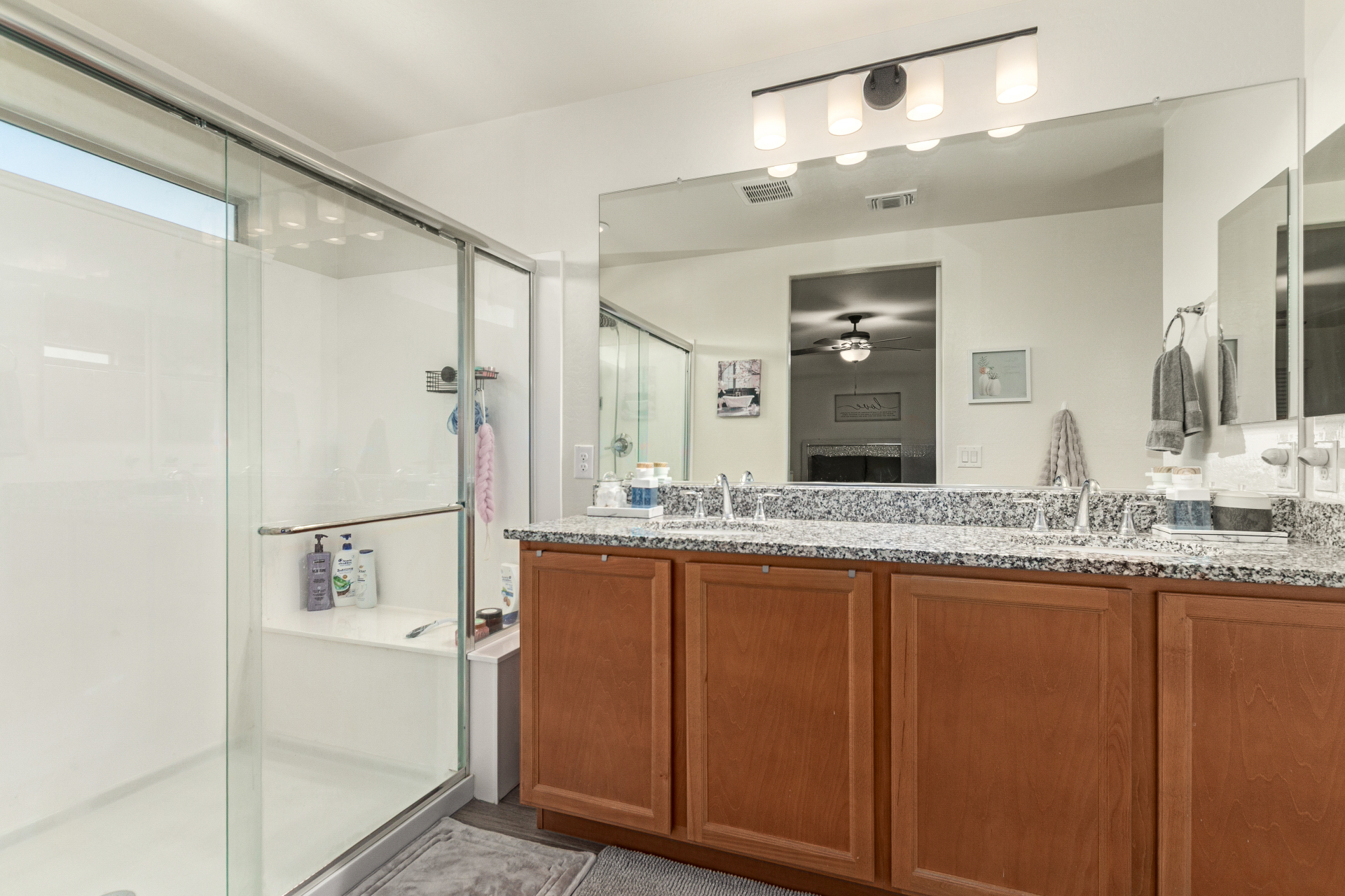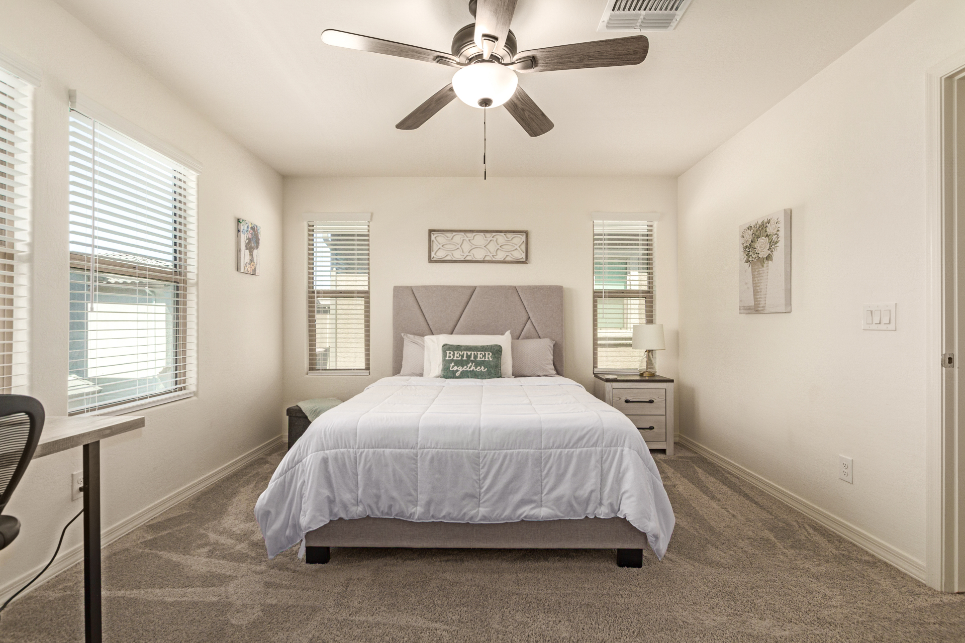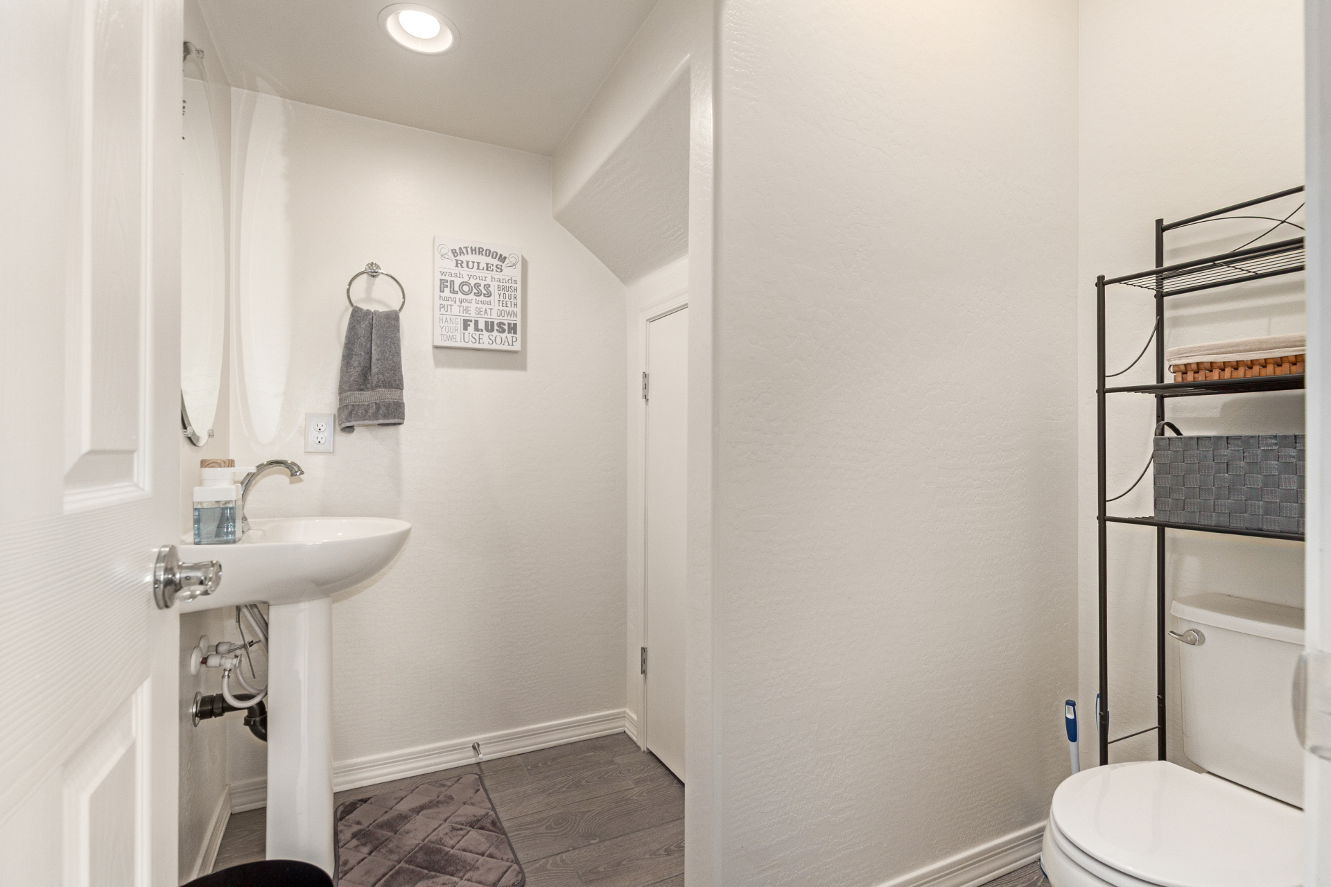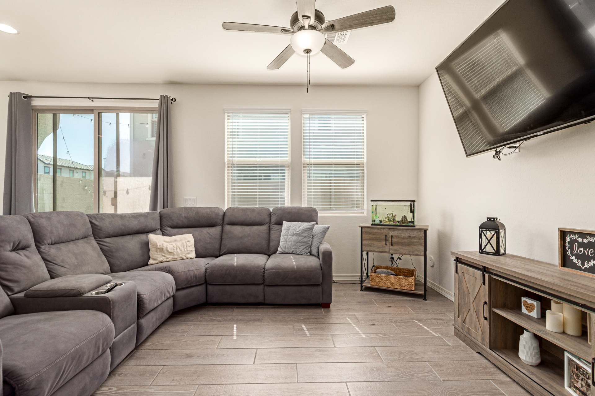You don't want to miss this lovely two-story home in Heritage Crossing! Discover all the charm inside, featuring wood-look flooring, tons of natural light, sliding doors to the patio, and stylish neutral tones. Whip up your favorite meals in the pristine culinary space, equipped with white cabinetry, granite countertops, stainless steel appliances, and an island with a breakfast bar, for those casual conversations over quick meals. The main bedroom is a true retreat, adding extra comfort with carpeting underfoot, a walk-in closet, and a bathroom with double sinks. Enjoy delicious BBQ with your loved ones in the patio, complete with a lush lawn and a seating area with pavers, perfect for entertaining. Visit the community's pool, walking path, and playground for fun times! Welcome home!
