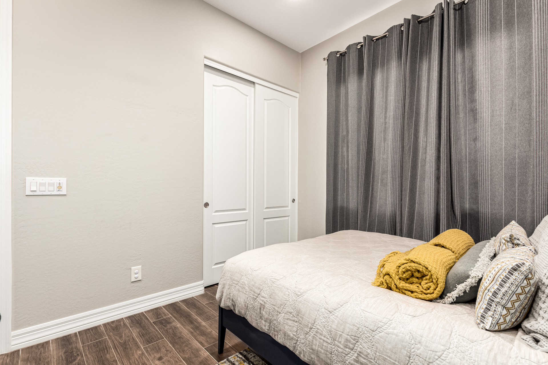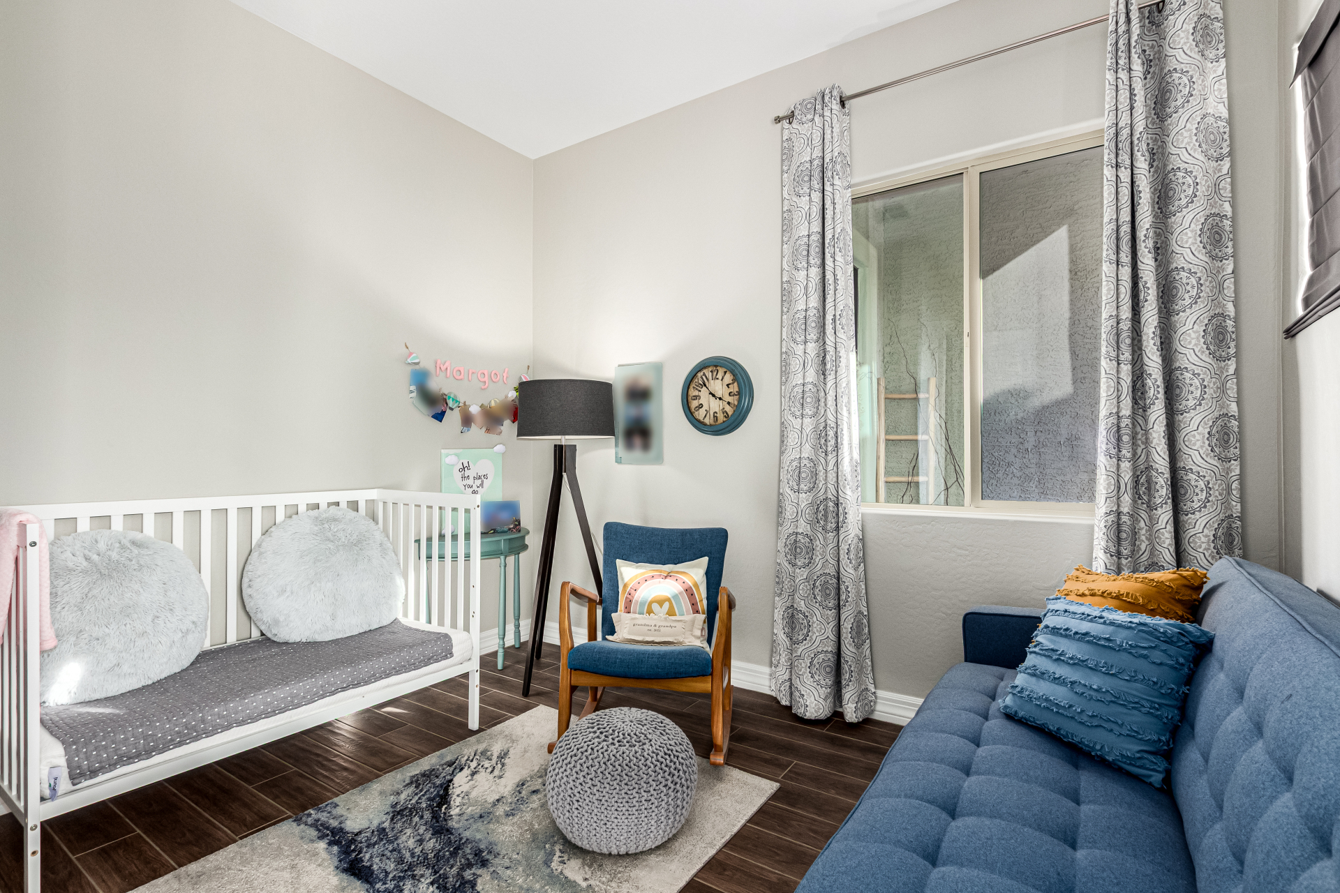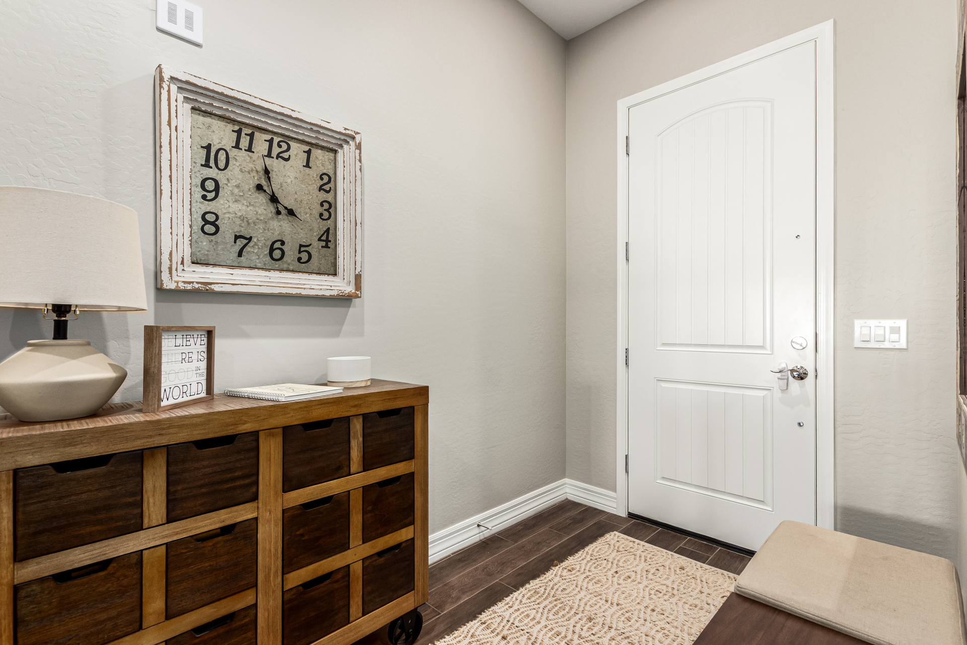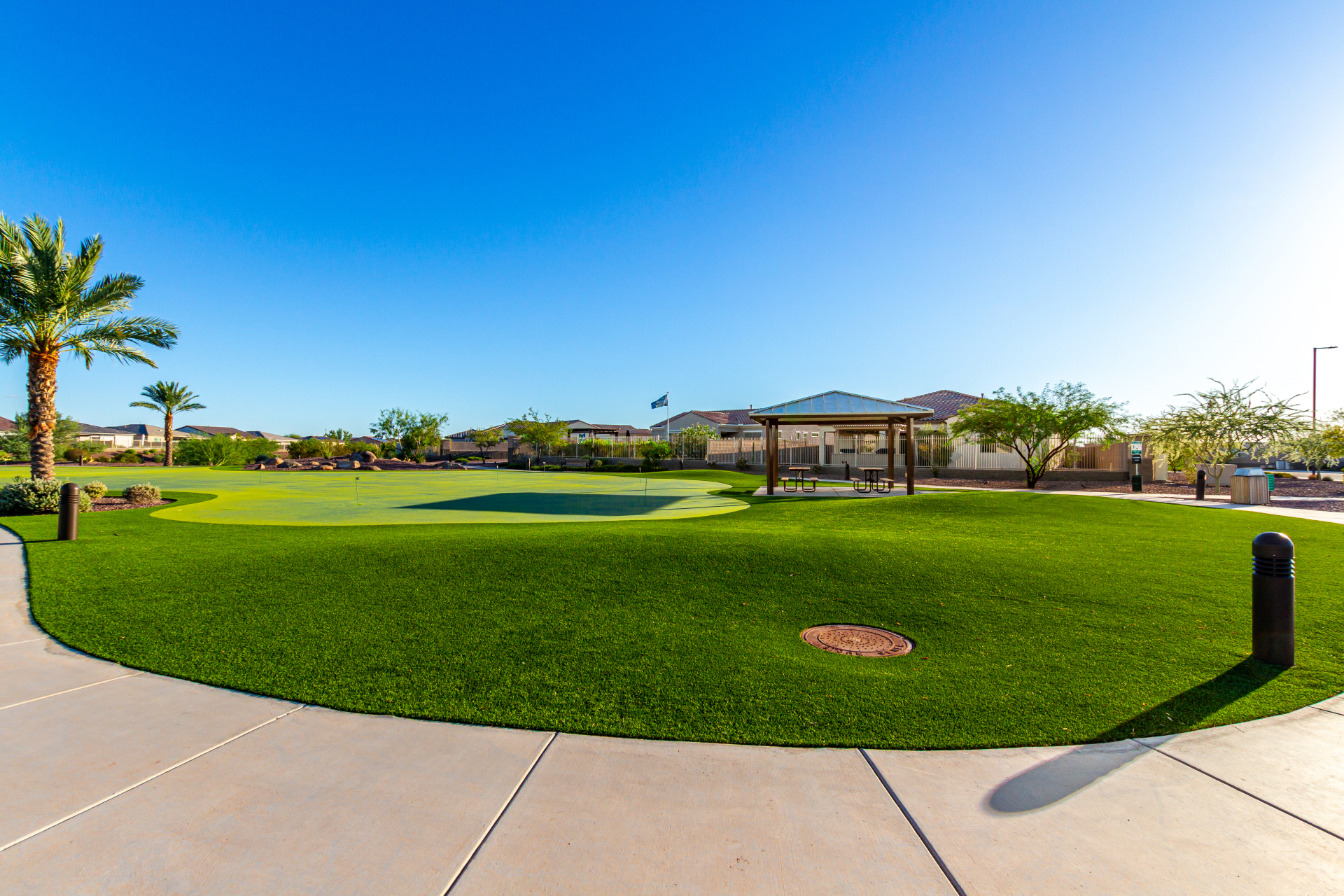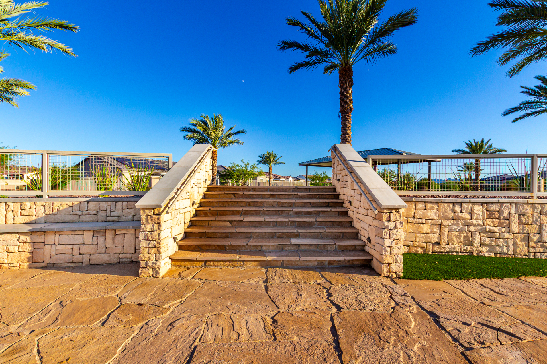 Find your ideal retirement haven in the 55+ gated Community of CantaMia! This gorgeous waterfront home sits on a corner lot, adjacent to a common area - no direct neighbors behind & on one side. It offers 3 beds, 3 baths, desert landscape, & a 2-car garage w/paver driveway. The interior exudes elegance with 10 ft ceilings, tons of natural light, neutral palette, & wood-look tile floors t/out. Excellent floor plan featuring a formal living room and a desirable great room with surround sound & sliding doors to the back. The gourmet kitchen boasts SS appliances w/cooktop gas, granite counters & backsplash, a walk-in pantry, recessed lighting, ample cabinetry w/crown molding, and an island w/breakfast bar. The main bedroom has outdoor access and an ensuite with two vanities & a walk-in closet