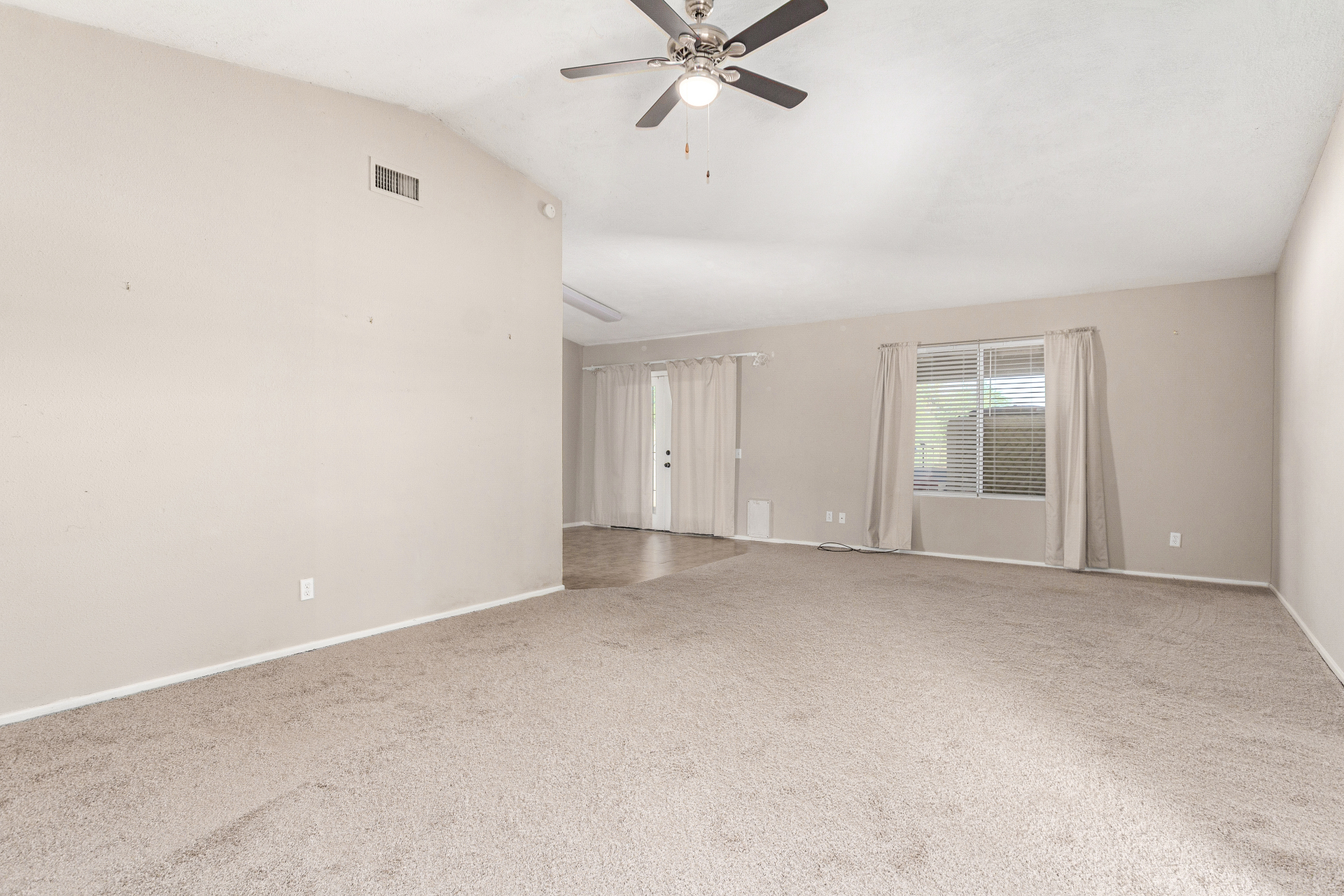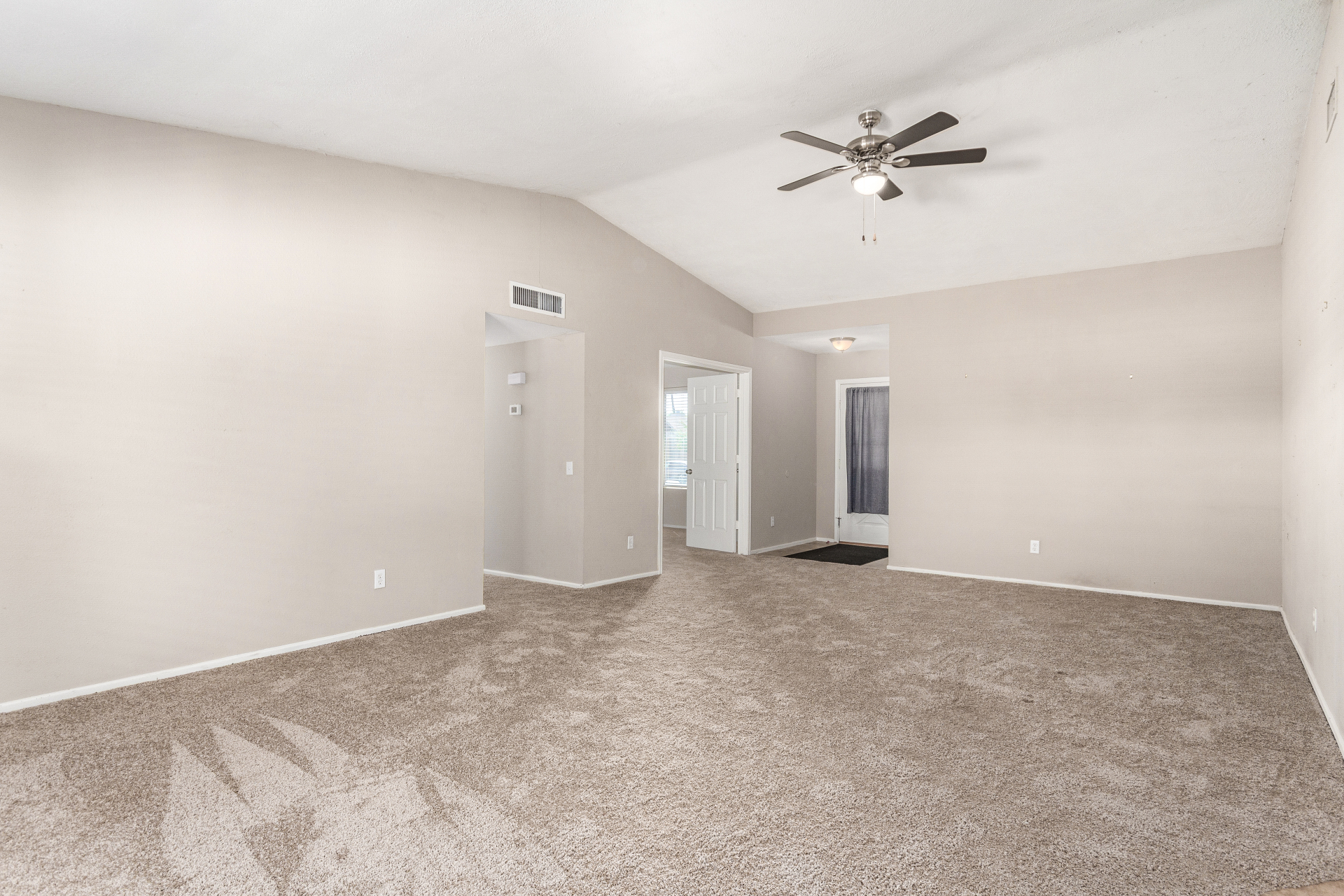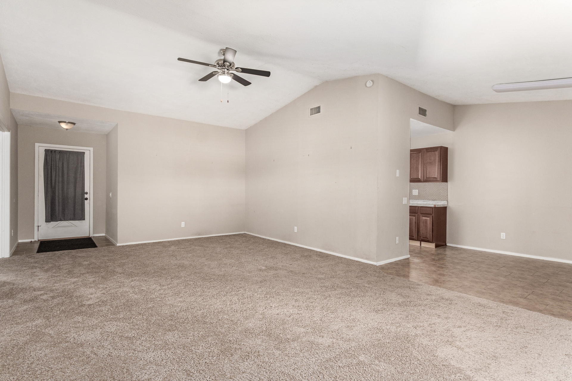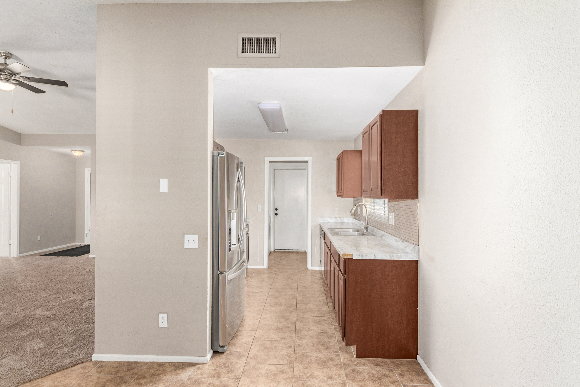 Look NO further! Comfort meets convenience in this delightful 3-bedroom home with a 2-car garage! Inside, you will find an inviting living room filled with lots of natural light and features vaulted ceilings, plush carpet, and neutral paint throughout. Adjacent to it is the dining area where French doors open to the back patio for easy indoor-outdoor living. Spotless kitchen comes with tile backsplash, plenty of cabinet space, and built-in appliances, making meal prep a breeze. Double doors reveal the large primary bedroom, offering direct outdoor access, a mirrored door closet, and a private bathroom with dual sinks. Enjoy relaxing under the covered patio with your favorite beverage. Hurry! A deal like this won't last long!
