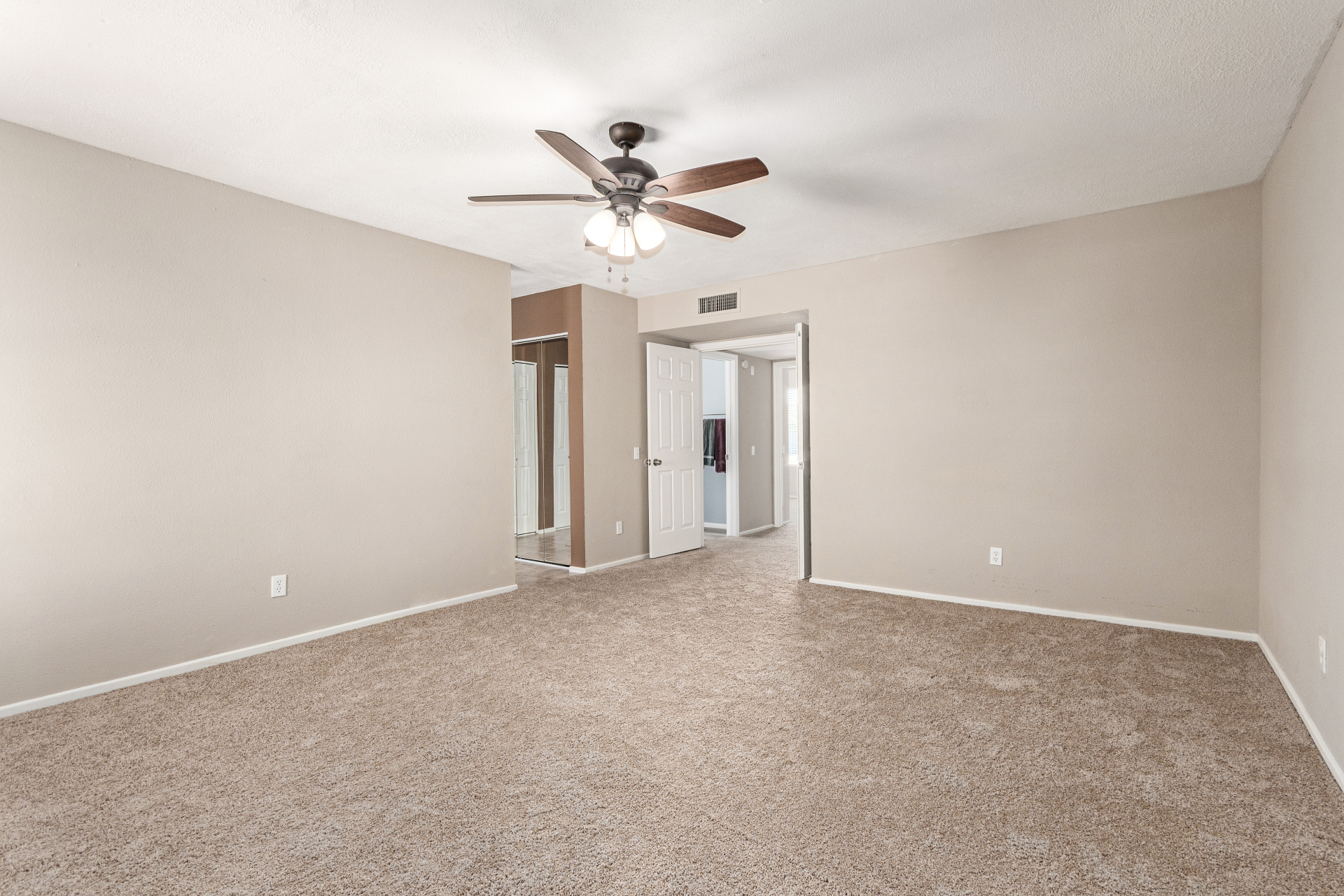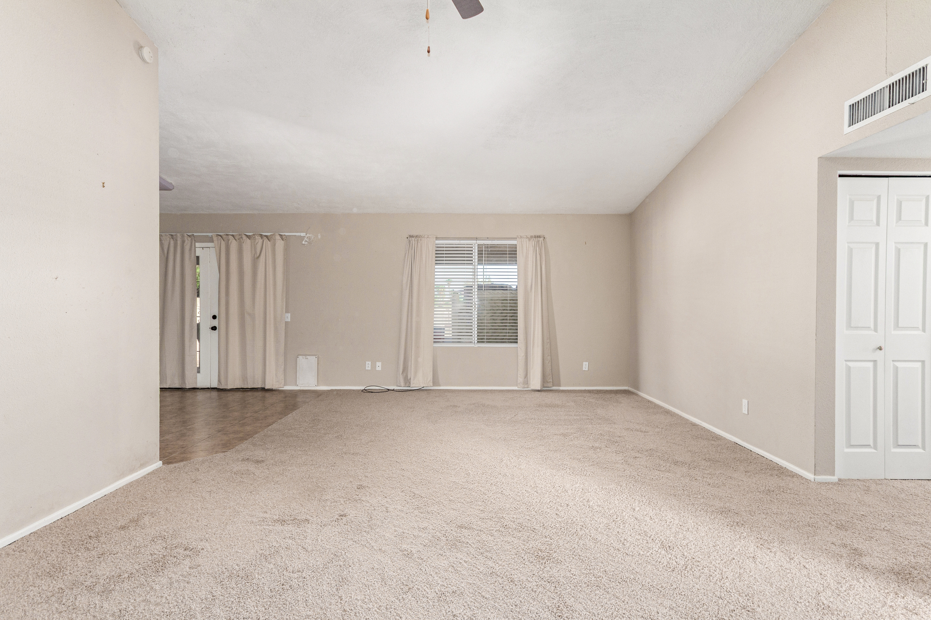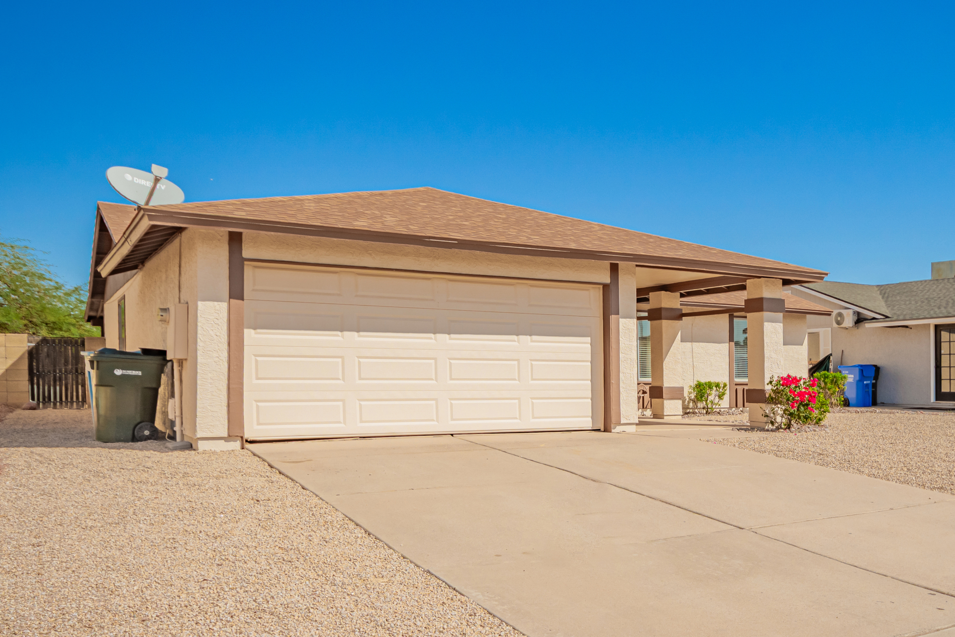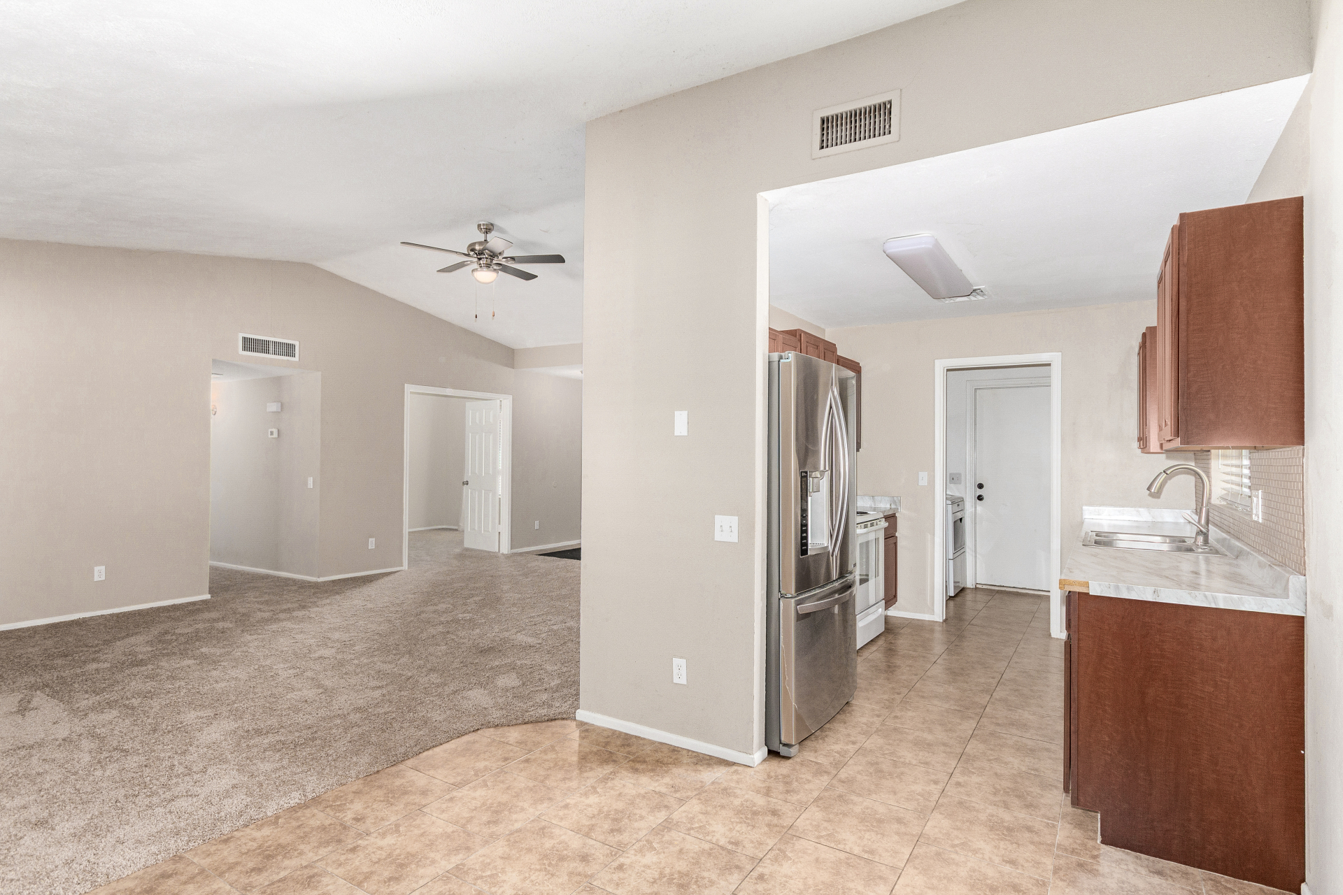 Look NO further! Comfort meets convenience in this delightful 3-bedroom home with a 2-car garage! Inside, you will find an inviting living room filled with lots of natural light and features vaulted ceilings, plush carpet, and neutral paint throughout. Adjacent to it is the dining area where French doors open to the back patio for easy indoor-outdoor living. Spotless kitchen comes with tile backsplash, plenty of cabinet space, and built-in appliances, making meal prep a breeze. Double doors reveal the large primary bedroom, offering direct outdoor access, a mirrored door closet, and a private bathroom with dual sinks. Enjoy relaxing under the covered patio with your favorite beverage. Hurry! A deal like this won't last long!