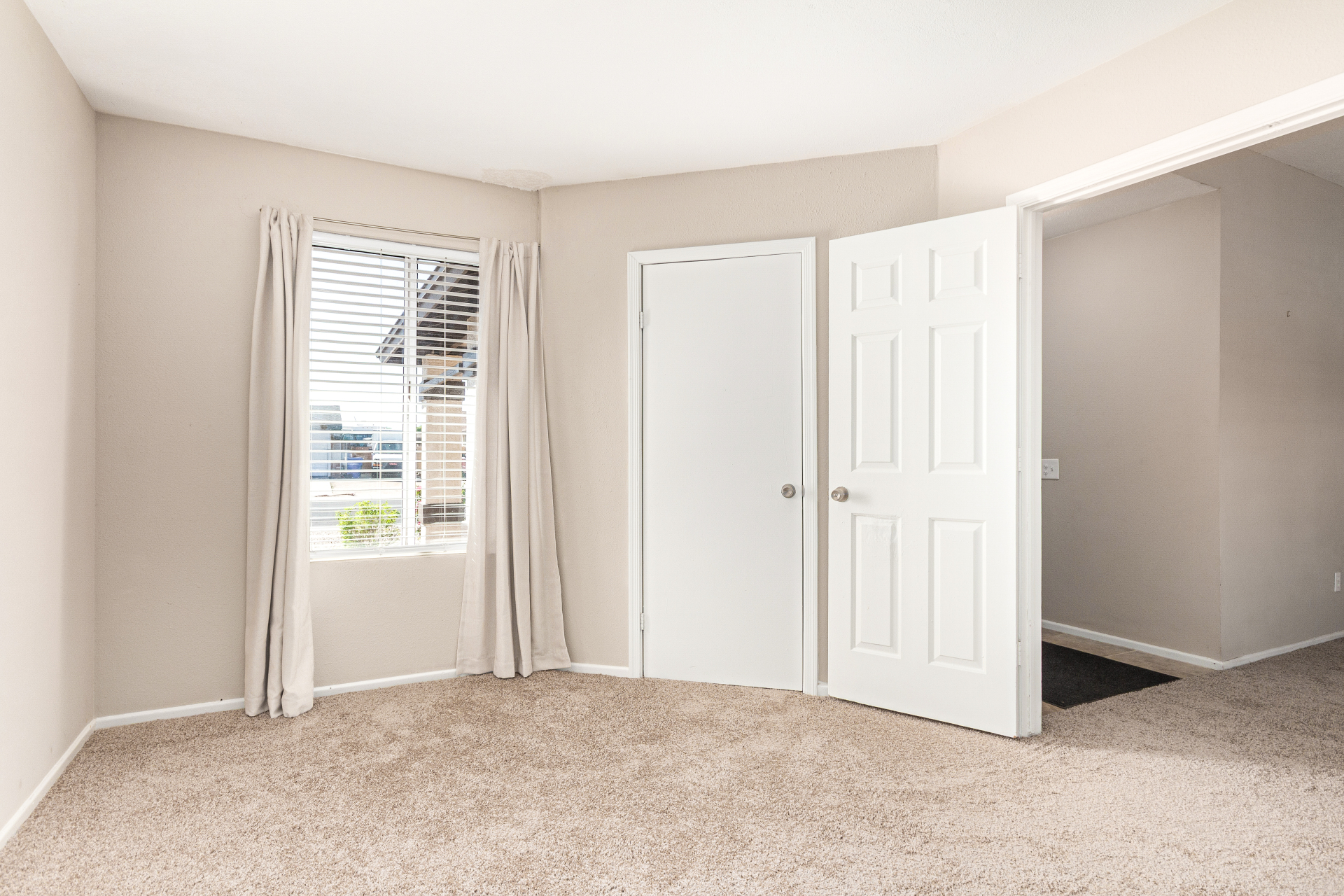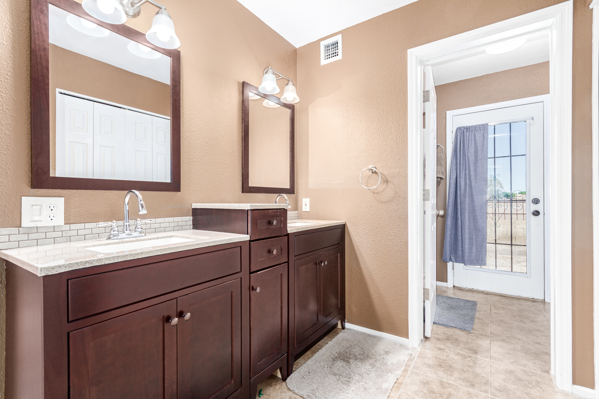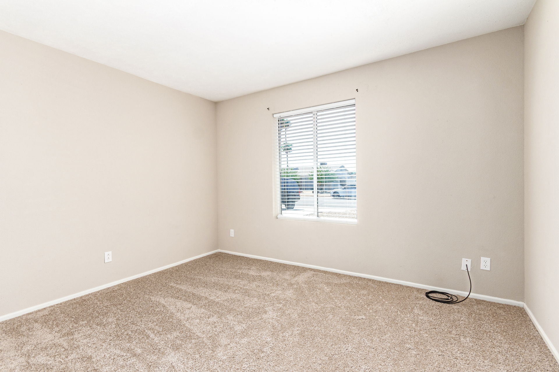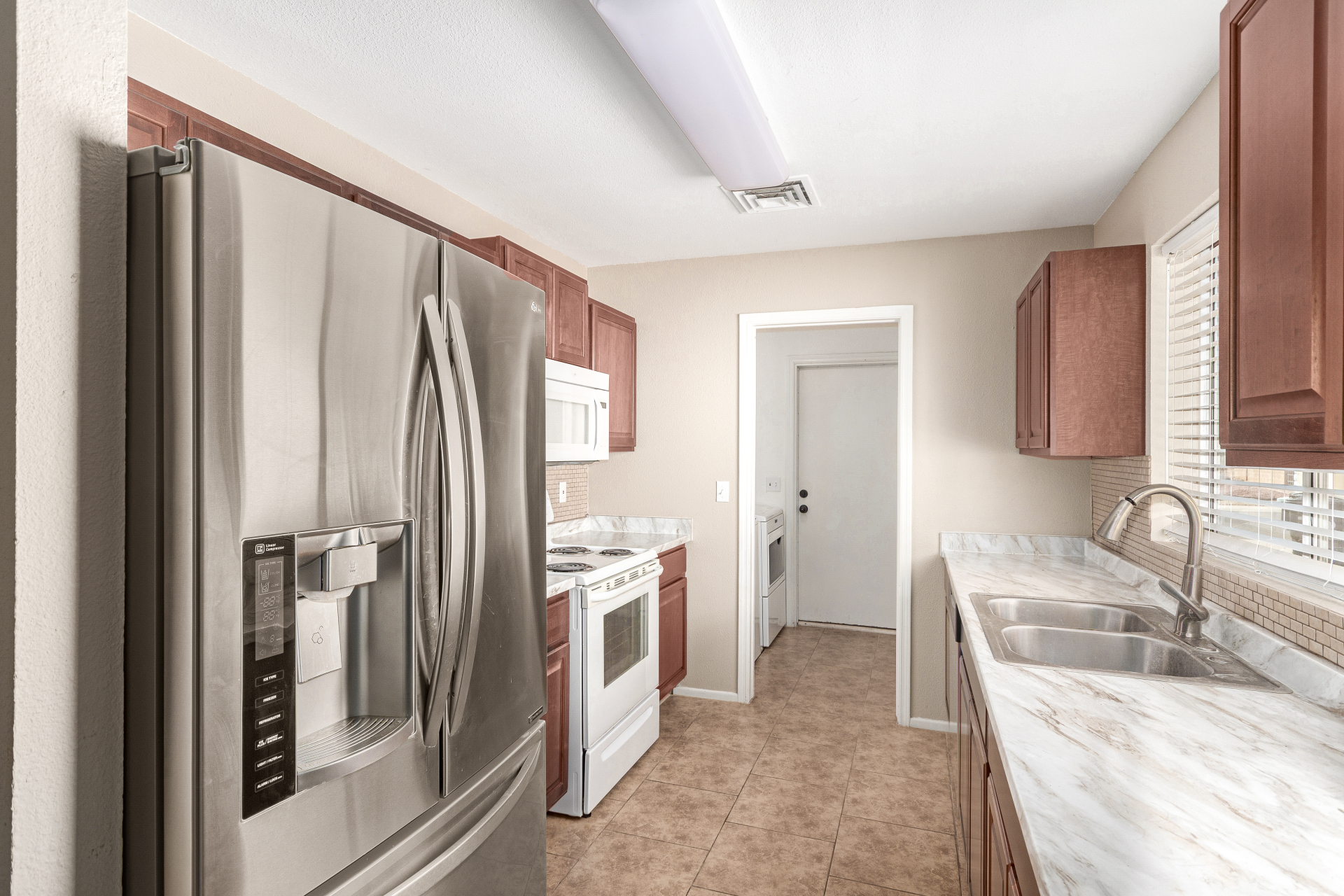 Look NO further! Comfort meets convenience in this delightful 3-bedroom home with a 2-car garage! Inside, you will find an inviting living room filled with lots of natural light and features vaulted ceilings, plush carpet, and neutral paint throughout. Adjacent to it is the dining area where French doors open to the back patio for easy indoor-outdoor living. Spotless kitchen comes with tile backsplash, plenty of cabinet space, and built-in appliances, making meal prep a breeze. Double doors reveal the large primary bedroom, offering direct outdoor access, a mirrored door closet, and a private bathroom with dual sinks. Enjoy relaxing under the covered patio with your favorite beverage. Hurry! A deal like this won't last long!