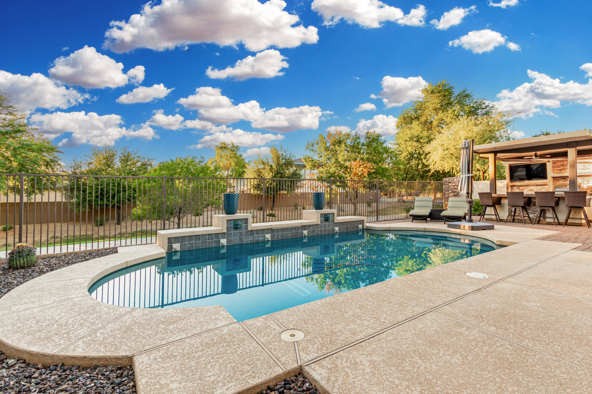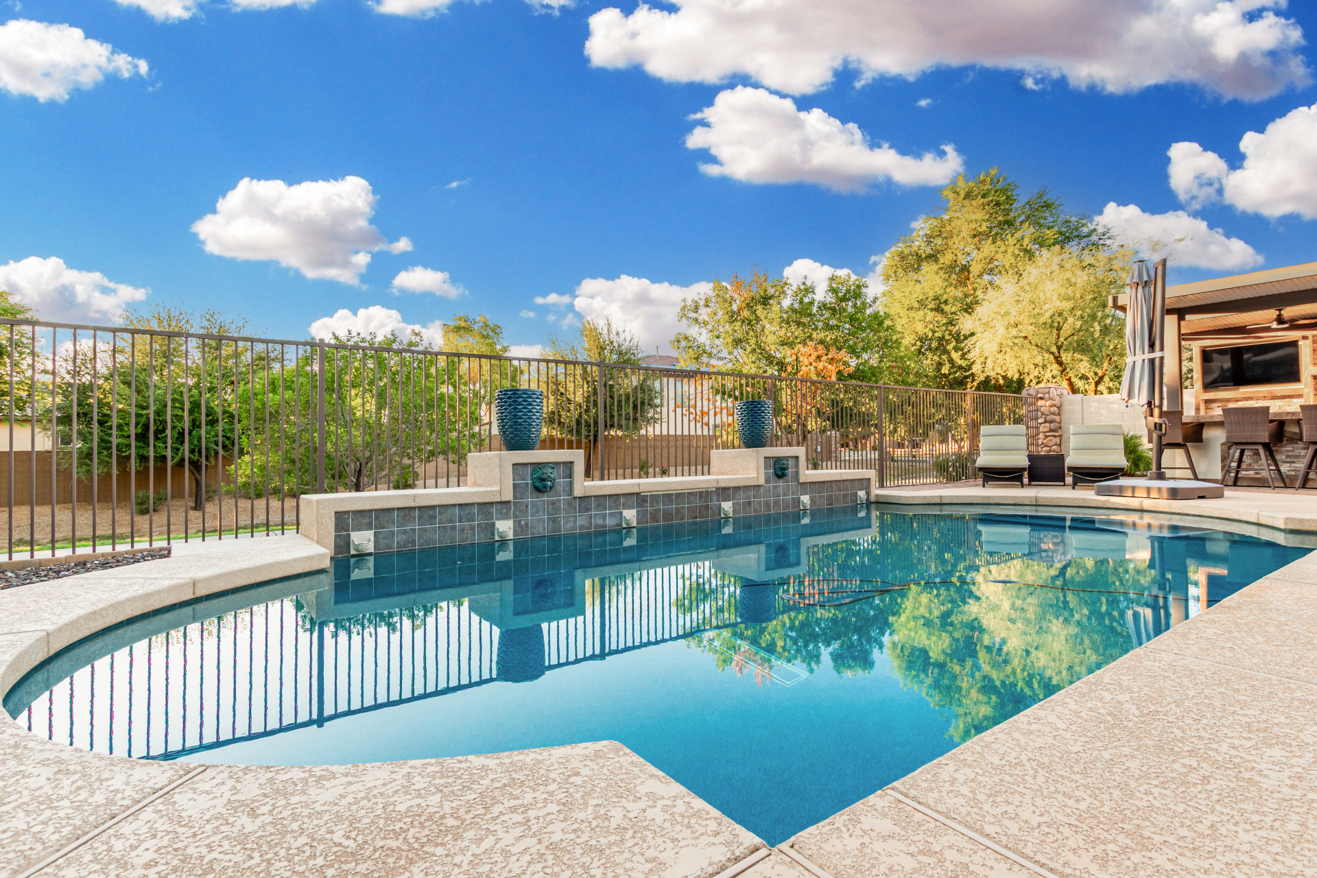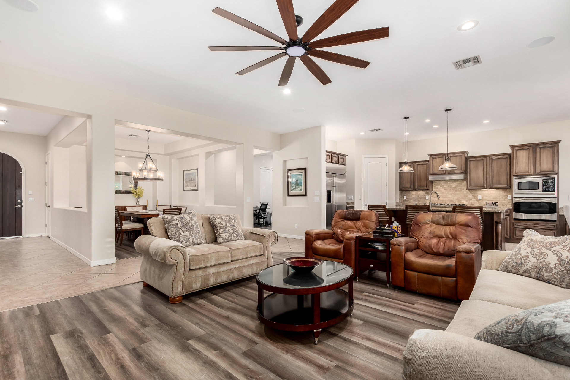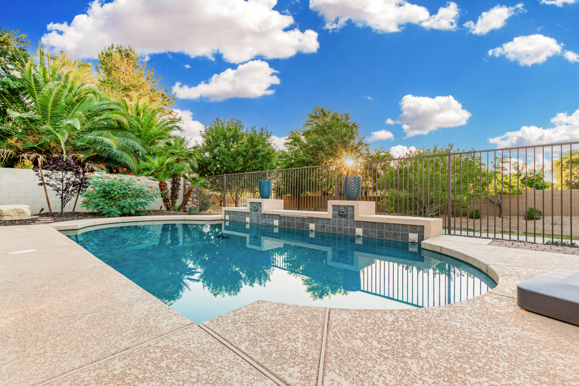 Welcome to Old Stone Ranch, South Chandler's premier lake community, where timeless design and refined Arizona living come together. This exceptional Shea Homes 'Loyola' floor plan is highly sought-after for its functionality, beauty, and rare feature of two master suites, offering flexibility for multi-generational living, private guest accommodations, or an ideal work-from-home retreat. Inside, the home exudes Santa Barbara-inspired architecture with a model-like interior showcasing upgraded finishes throughout. The open great room and chef's kitchen complete with granite countertops, stainless steel appliances, and an oversized island create the perfect space for entertaining. Both master suites include spacious walk-in closets and spa-like ensuite bathrooms, while additional bedrooms and living spaces ensure comfort for all.