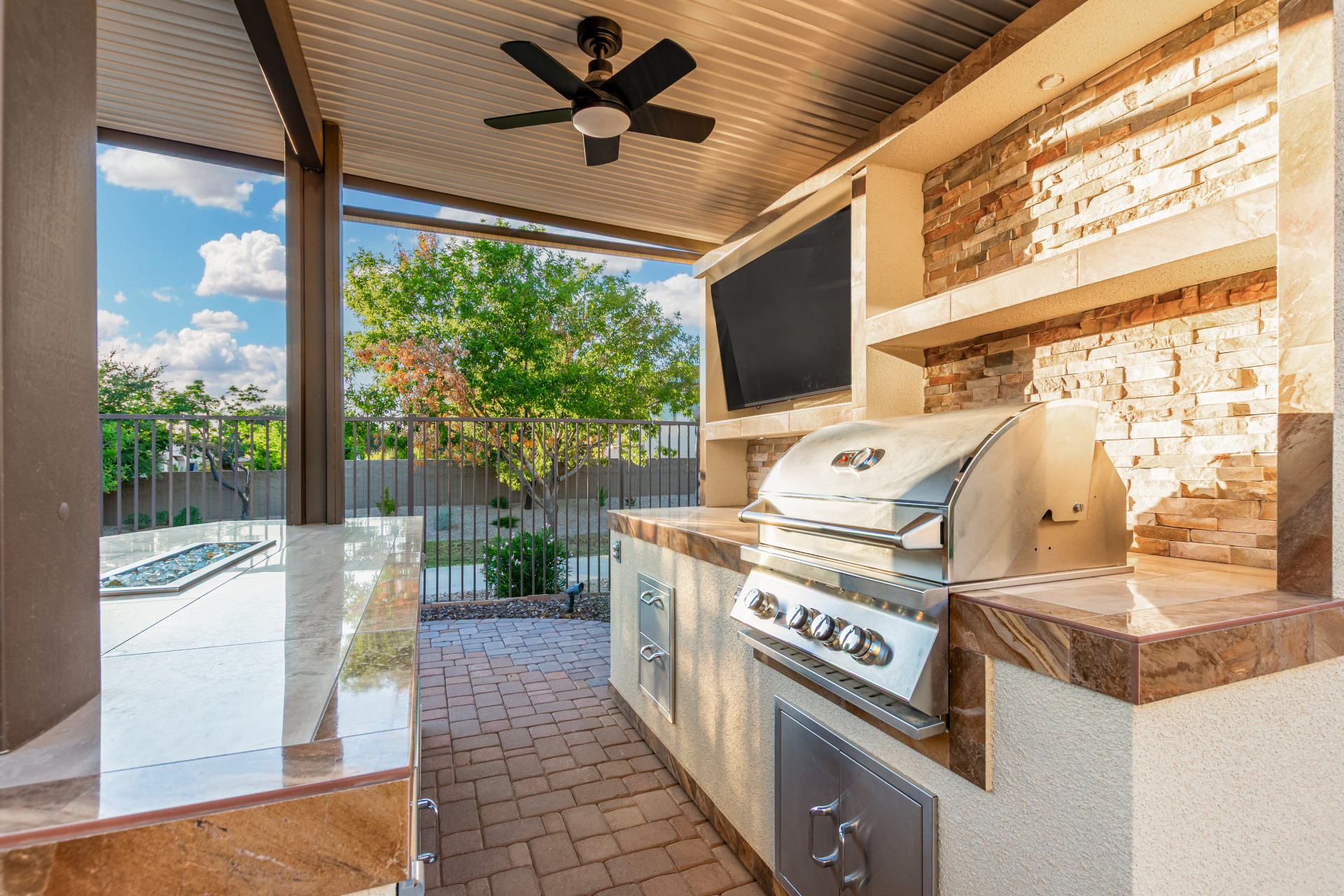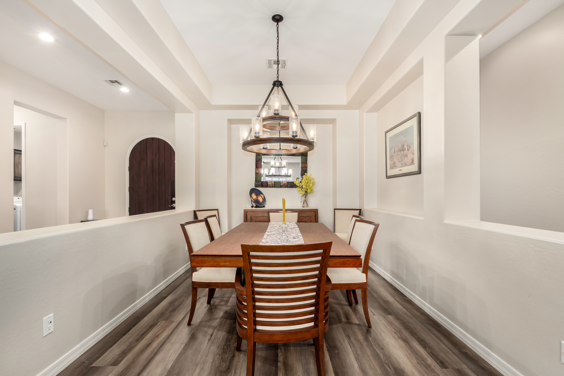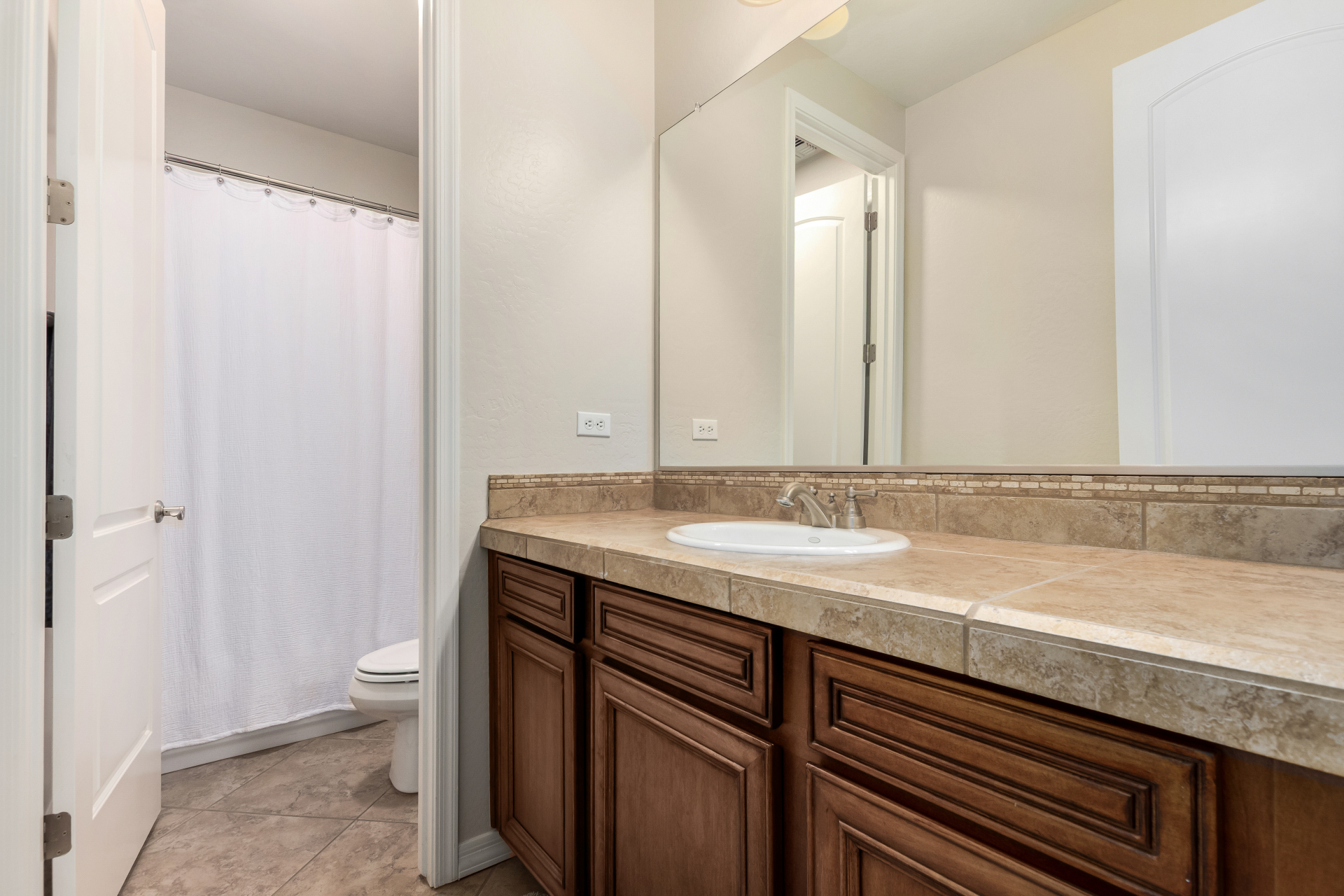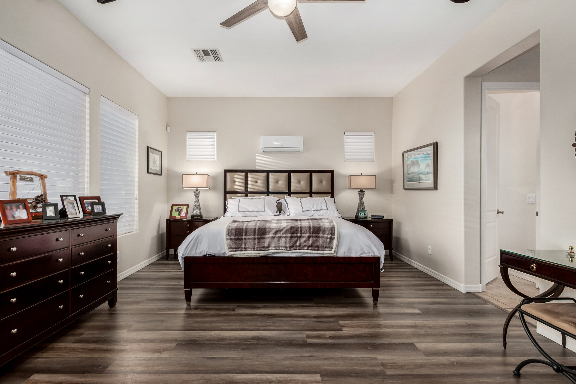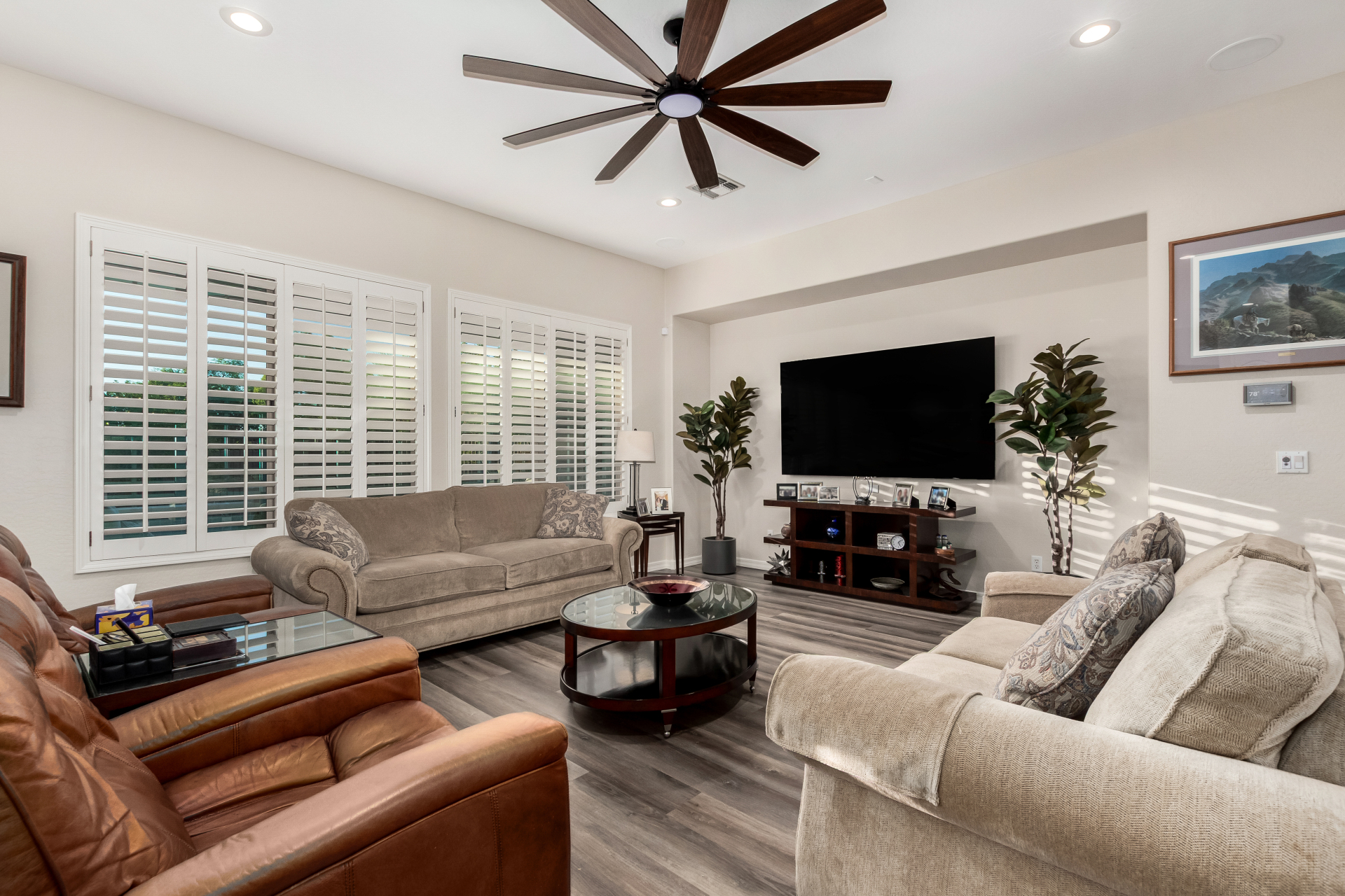 Welcome to Old Stone Ranch, South Chandler's premier lake community, where timeless design and refined Arizona living come together. This exceptional Shea Homes 'Loyola' floor plan is highly sought-after for its functionality, beauty, and rare feature of two master suites, offering flexibility for multi-generational living, private guest accommodations, or an ideal work-from-home retreat. Inside, the home exudes Santa Barbara-inspired architecture with a model-like interior showcasing upgraded finishes throughout. The open great room and chef's kitchen complete with granite countertops, stainless steel appliances, and an oversized island create the perfect space for entertaining. Both master suites include spacious walk-in closets and spa-like ensuite bathrooms, while additional bedrooms and living spaces ensure comfort for all.