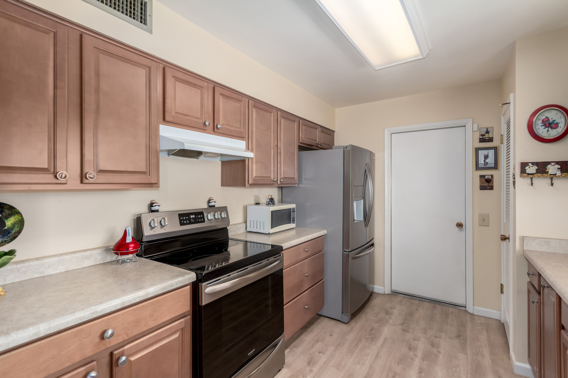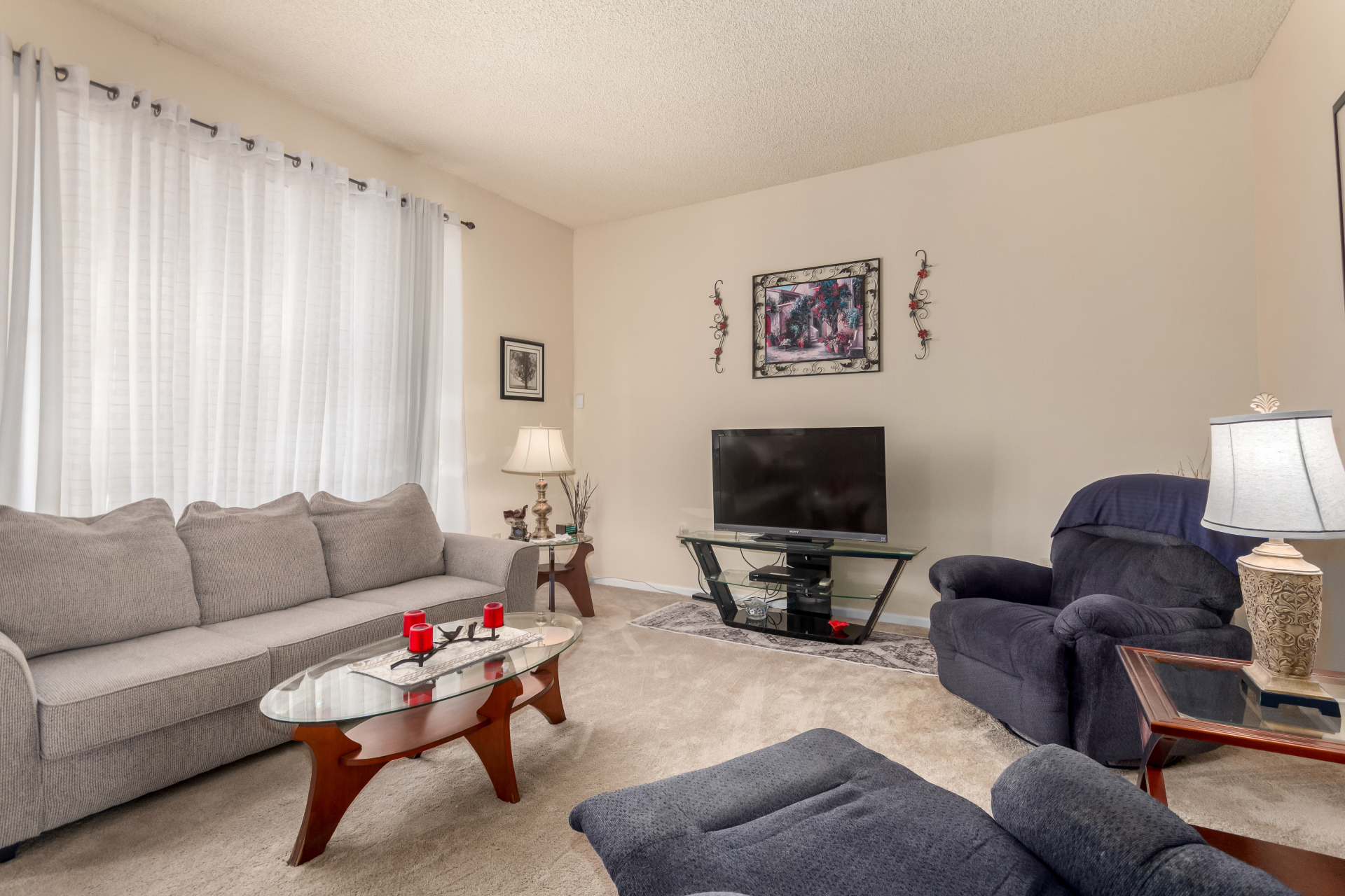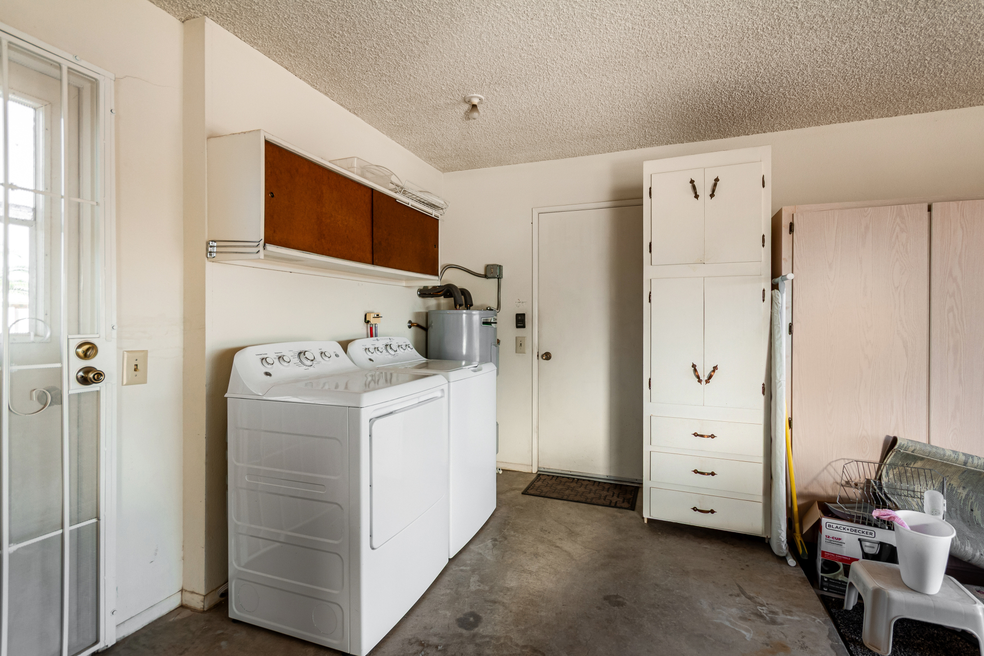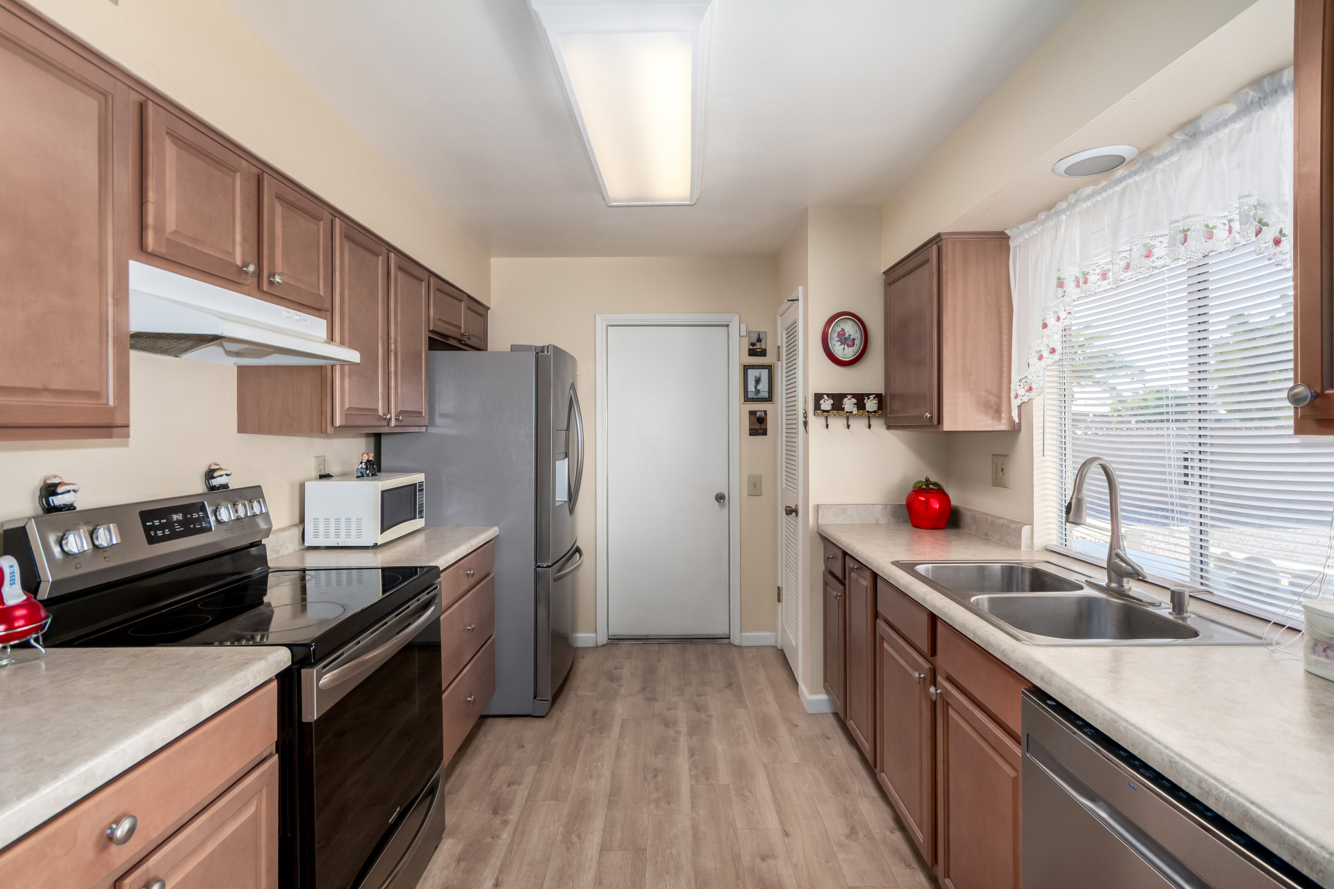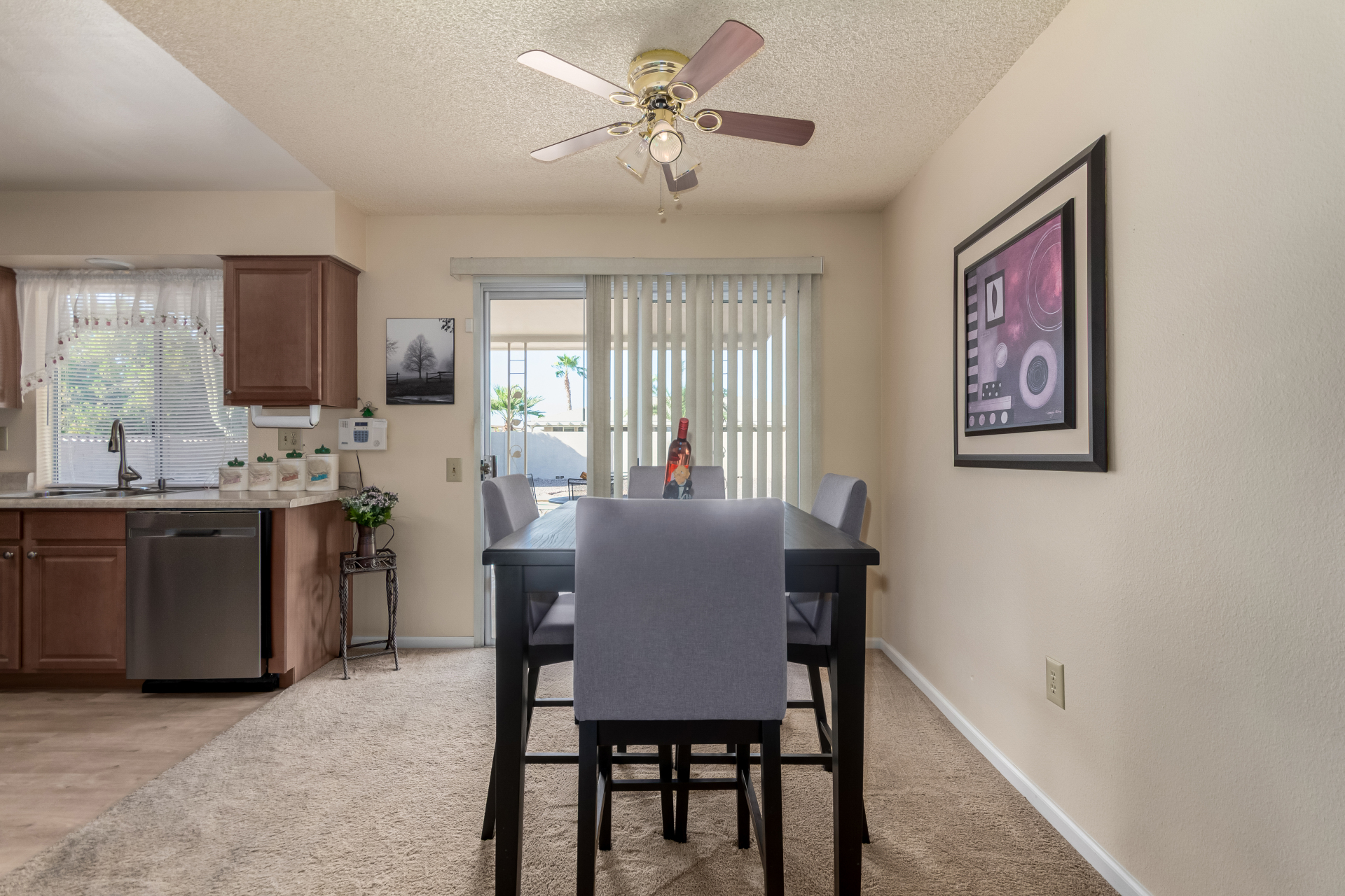This lovely Sun City home is light & bright with an open concept feel living room & dining area. Cozy kitchen includes built-in appliances, frig, pantry & two nice oversized bedrooms. Attractive desert landscape front & back for low maintenance upkeep. Large private backyard w/covered patio & mature trees. 2 car garage is extended with storage cabinets, washer/dryer hook up & service door leading to back yard. Enjoy the vibrant Sun City 55+ lifestyle for year round living or winter retreat. Amenities include multiple recreation centers for swimming, tennis, fitness rooms and golf courses. Great location to Hwy Loop 101, various shopping, restaurants, entertainment & sports venues, near to hospitals & clinics. Low property taxes are a bonus!