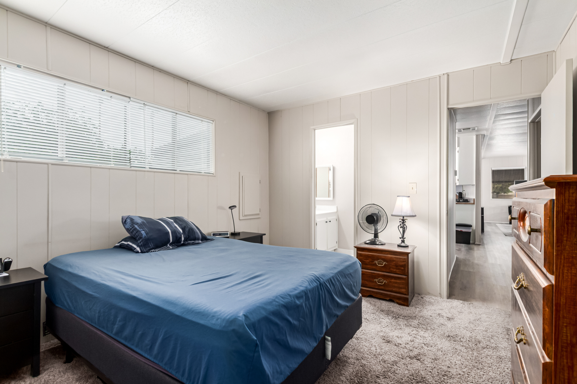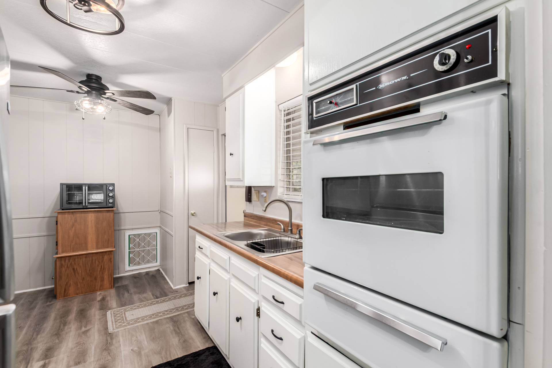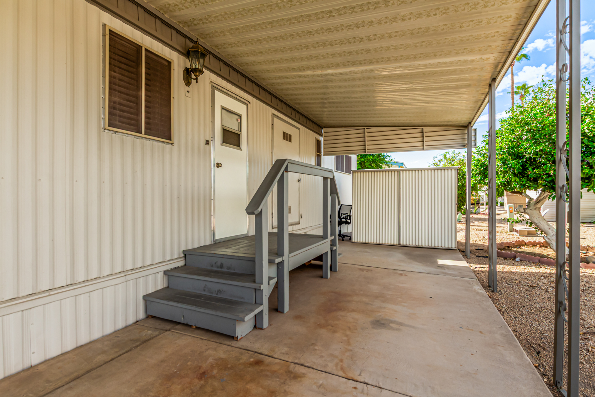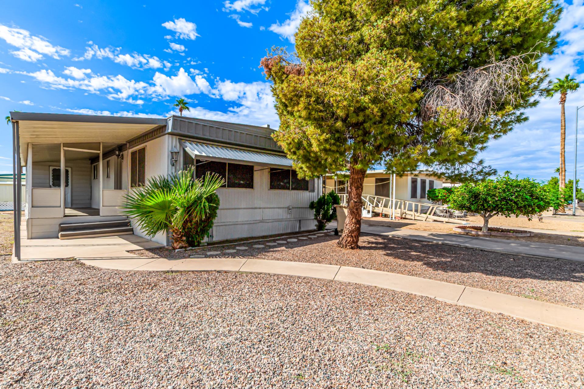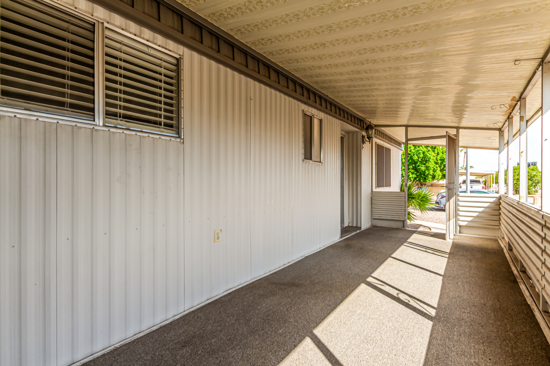 Discover this adorable manufactured home in the sought-after Friendly Village of Orangewood! Offering 2 bedrooms, 2 bathrooms, and convenient carport parking. Inside, you'll find spacious living areas with wood-look flooring, large windows for abundant natural light, and neutral colors that go with any decor. The galley-style kitchen features ample cabinetry and counter space, as well as built-in appliances for a seamless cooking experience. The main bedroom is a true retreat, complete with a closet and a private ensuite for convenience. Enjoy your morning coffee on the covered patio and don't forget to visit this welcoming adult community's features, including the pool, spa, golf, media room, and clubhouse! Hurry up, this gem won't last!