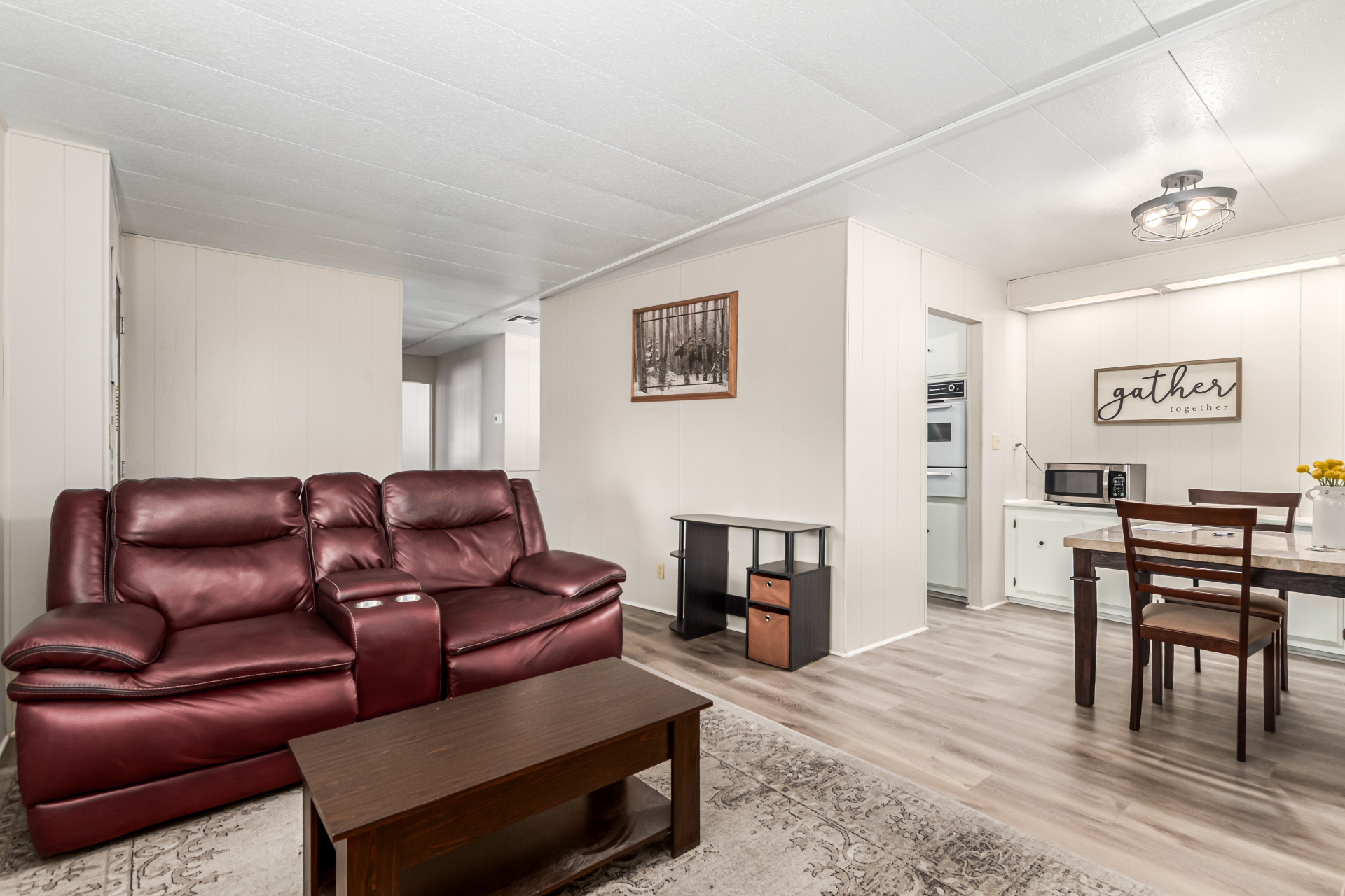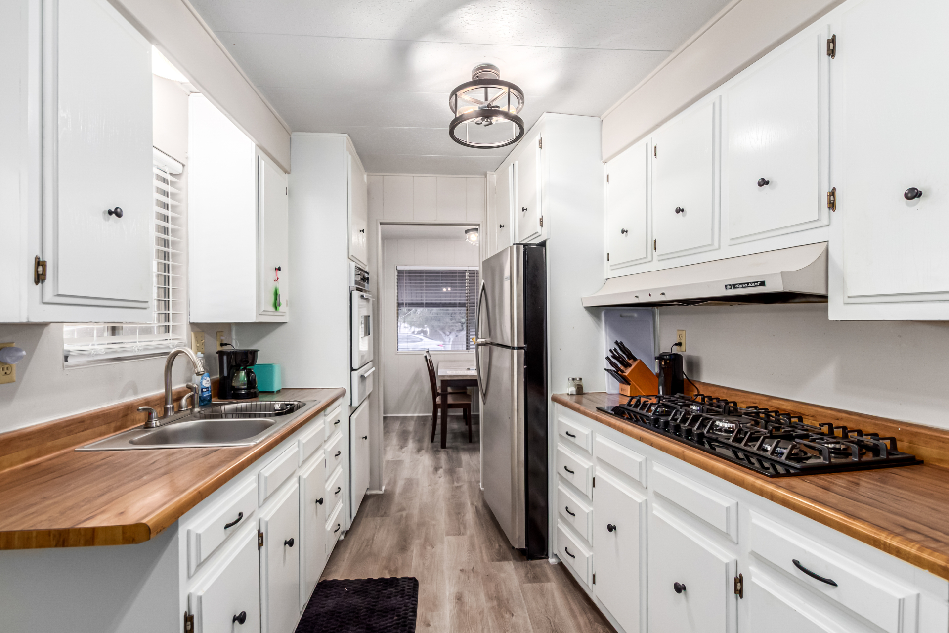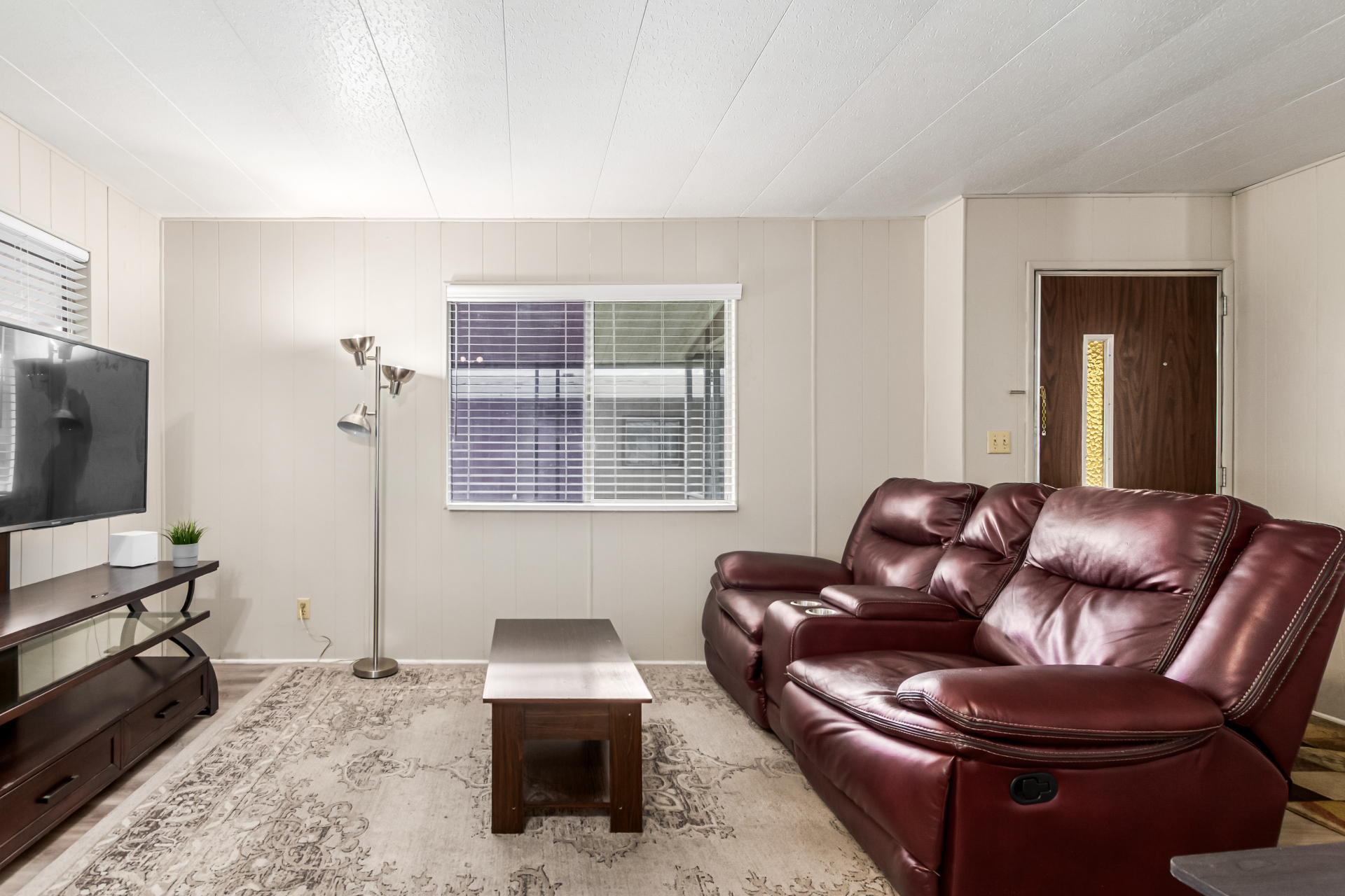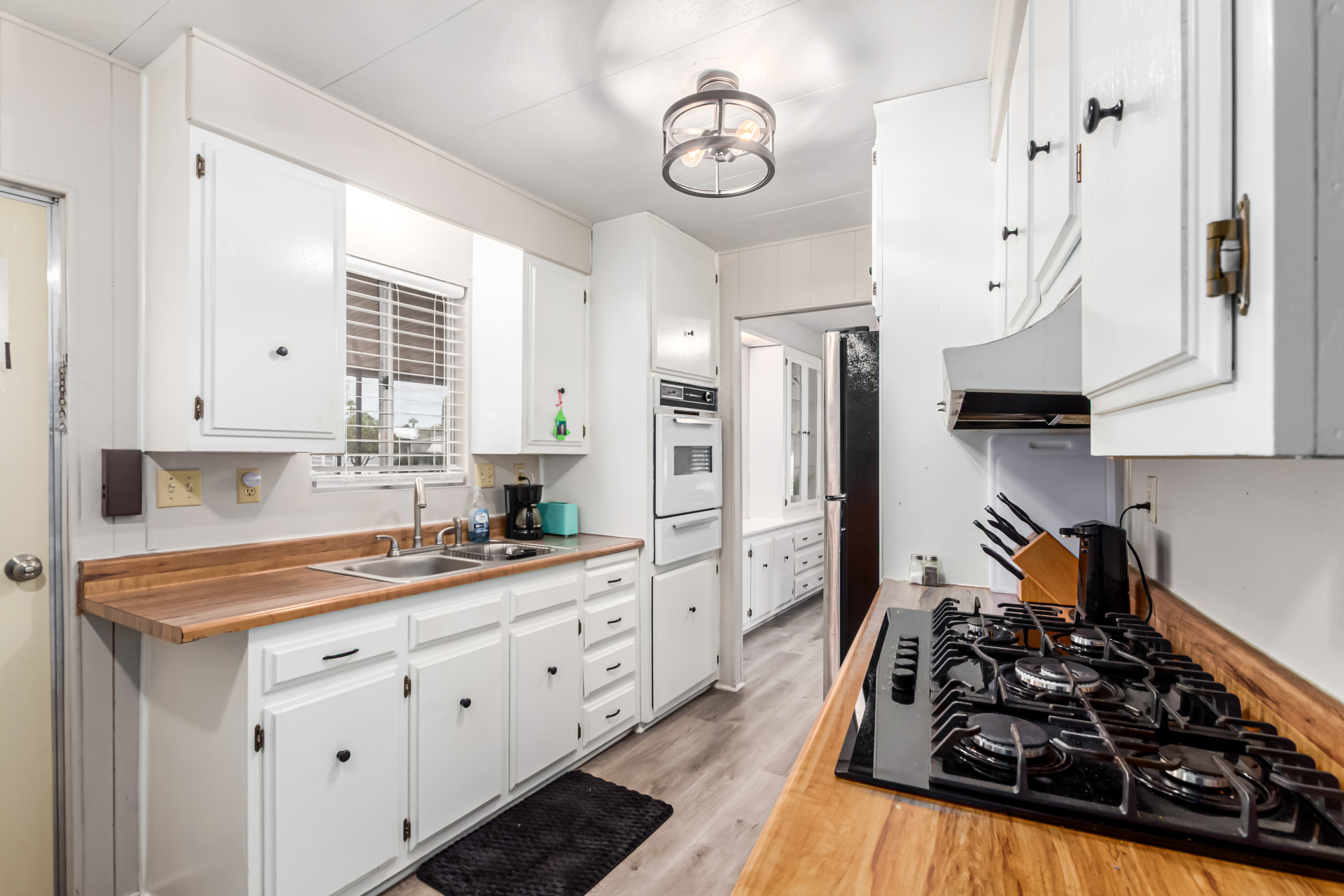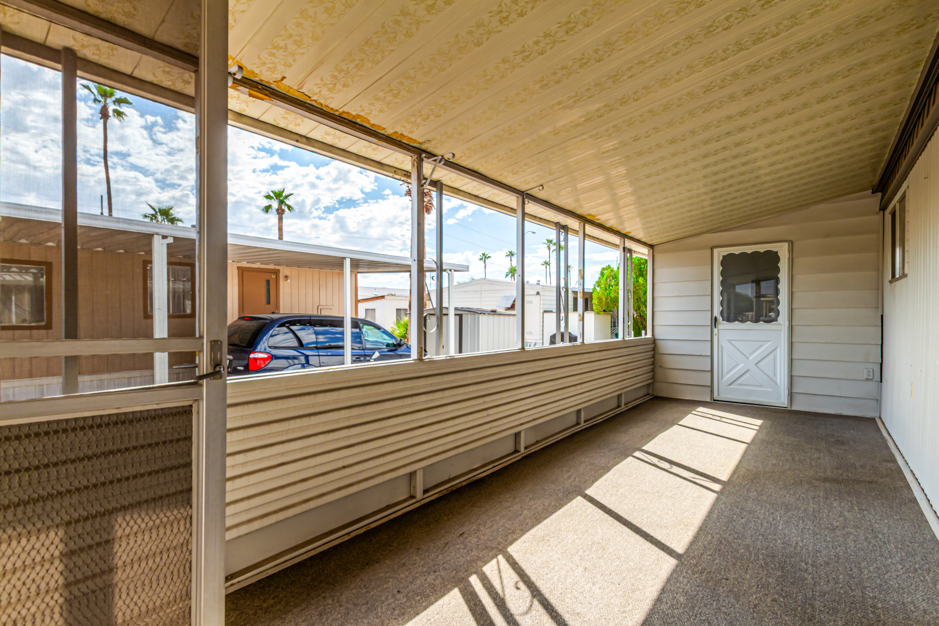 Discover this adorable manufactured home in the sought-after Friendly Village of Orangewood! Offering 2 bedrooms, 2 bathrooms, and convenient carport parking. Inside, you'll find spacious living areas with wood-look flooring, large windows for abundant natural light, and neutral colors that go with any decor. The galley-style kitchen features ample cabinetry and counter space, as well as built-in appliances for a seamless cooking experience. The main bedroom is a true retreat, complete with a closet and a private ensuite for convenience. Enjoy your morning coffee on the covered patio and don't forget to visit this welcoming adult community's features, including the pool, spa, golf, media room, and clubhouse! Hurry up, this gem won't last!