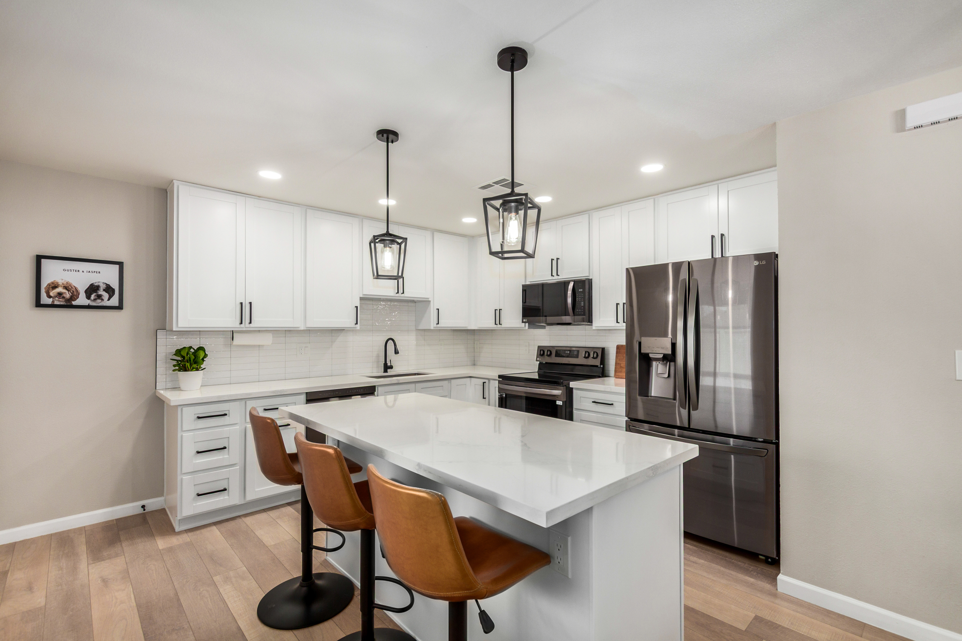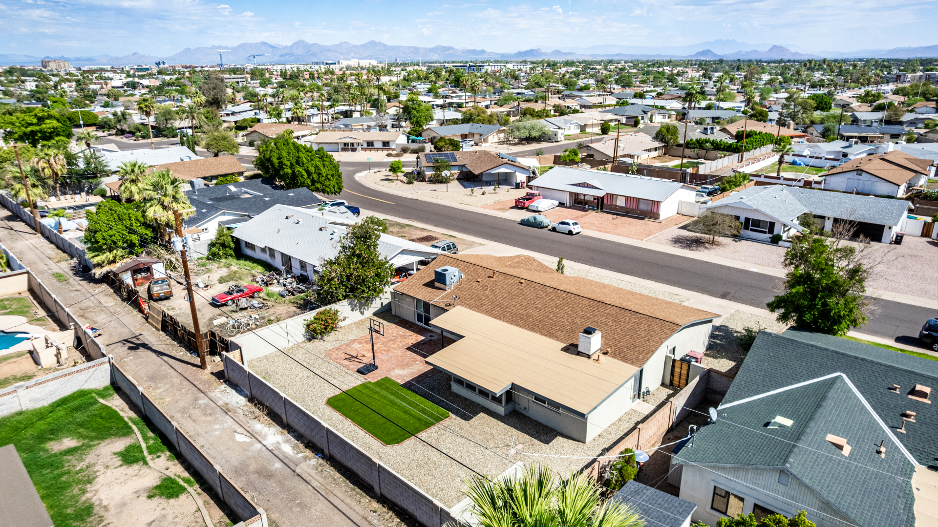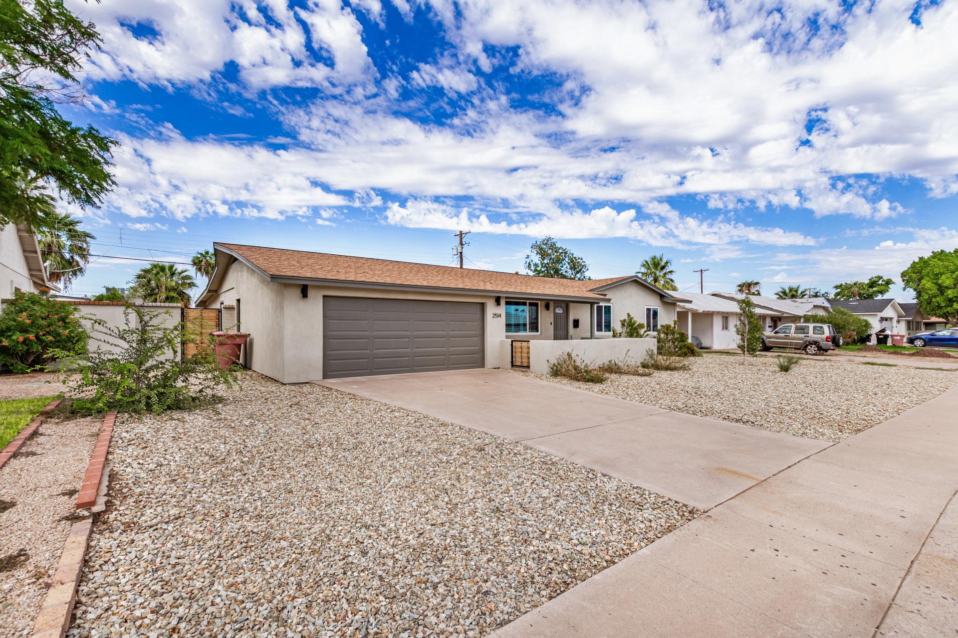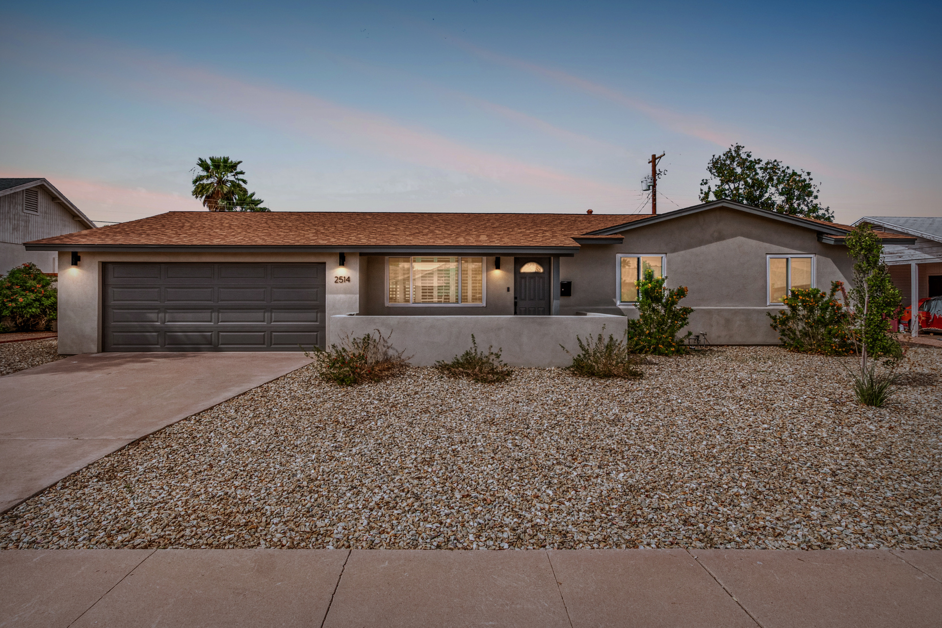 Where modern style meets timeless Scottsdale living! This updated South Scottsdale home offers newer interior and exterior paint, luxury plank flooring, lighting and hardware, and a reimagined kitchen with 42'' shaker cabinets, quartz counters, black stainless appliances, stylish backsplash, and a large island with electrical. Bathrooms feature vanities, fixtures, and tiled surrounds. Enjoy the screened-in Arizona room, extended brick patio, turf, patio roof, gates, and landscaping. Minutes to Old Town, shopping, dining, hospital, and Loop 101. Move-in ready perfection!