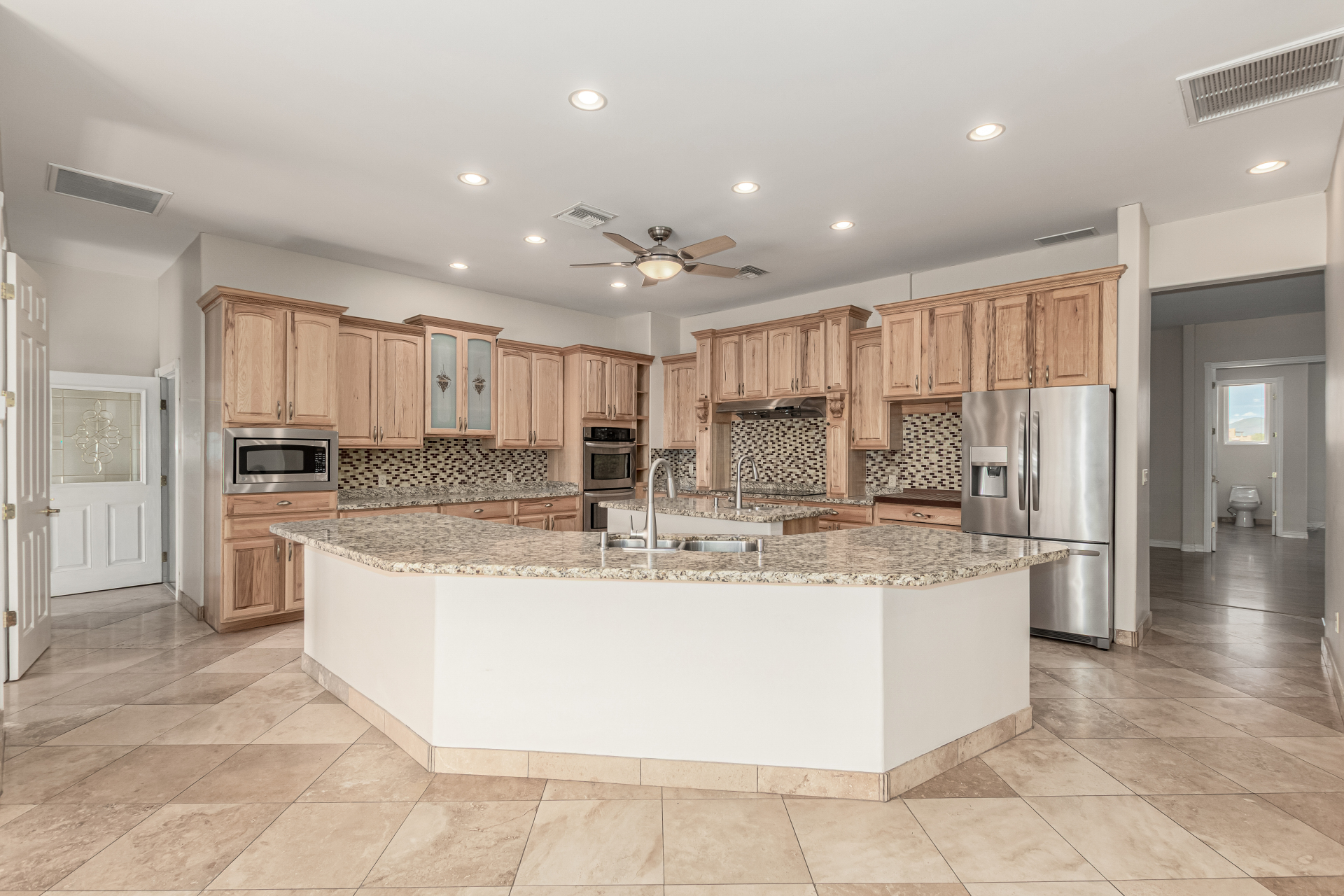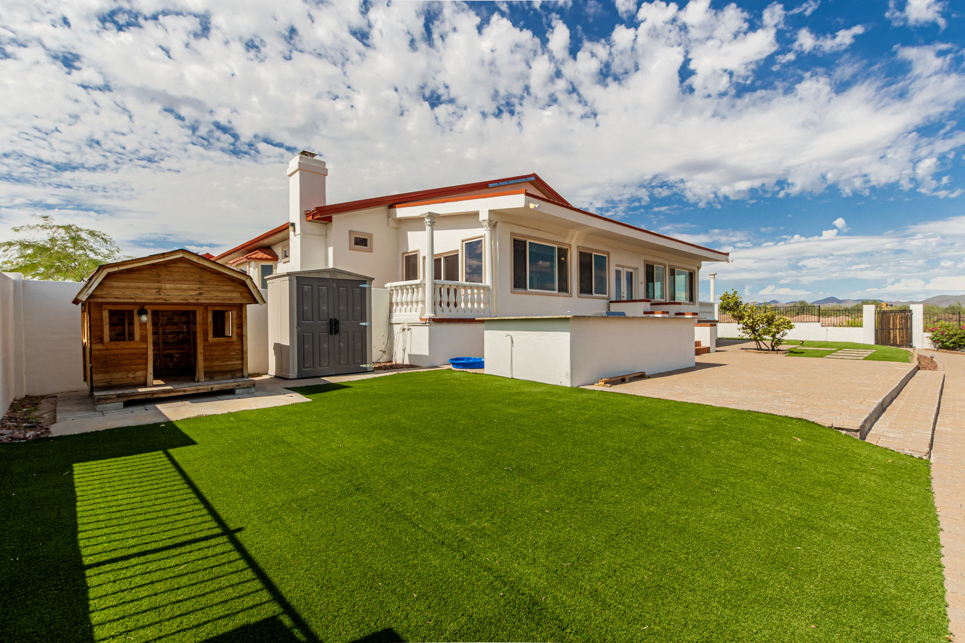 Stunning home on 1.25 acres with panoramic mountain views! This unique property offers up to 6,800 square feet of living space, including an expansive recently finished basement with private entrance. Step inside through a charming courtyard and into a thoughtfully designed layout featuring 4 spacious bedrooms, multiple living and dining areas, and a chef's kitchen with two islands and a massive walk-in pantry—perfect for entertaining and everyday comfort. Newly remodeled backyard is your personal retreat, boasting a gazebo, outdoor fireplace, built-in BBQ, artificial turf, and breathtaking views in every direction. Energy efficient home with owned solar panels. Plus a 3.5 car epoxied garage!