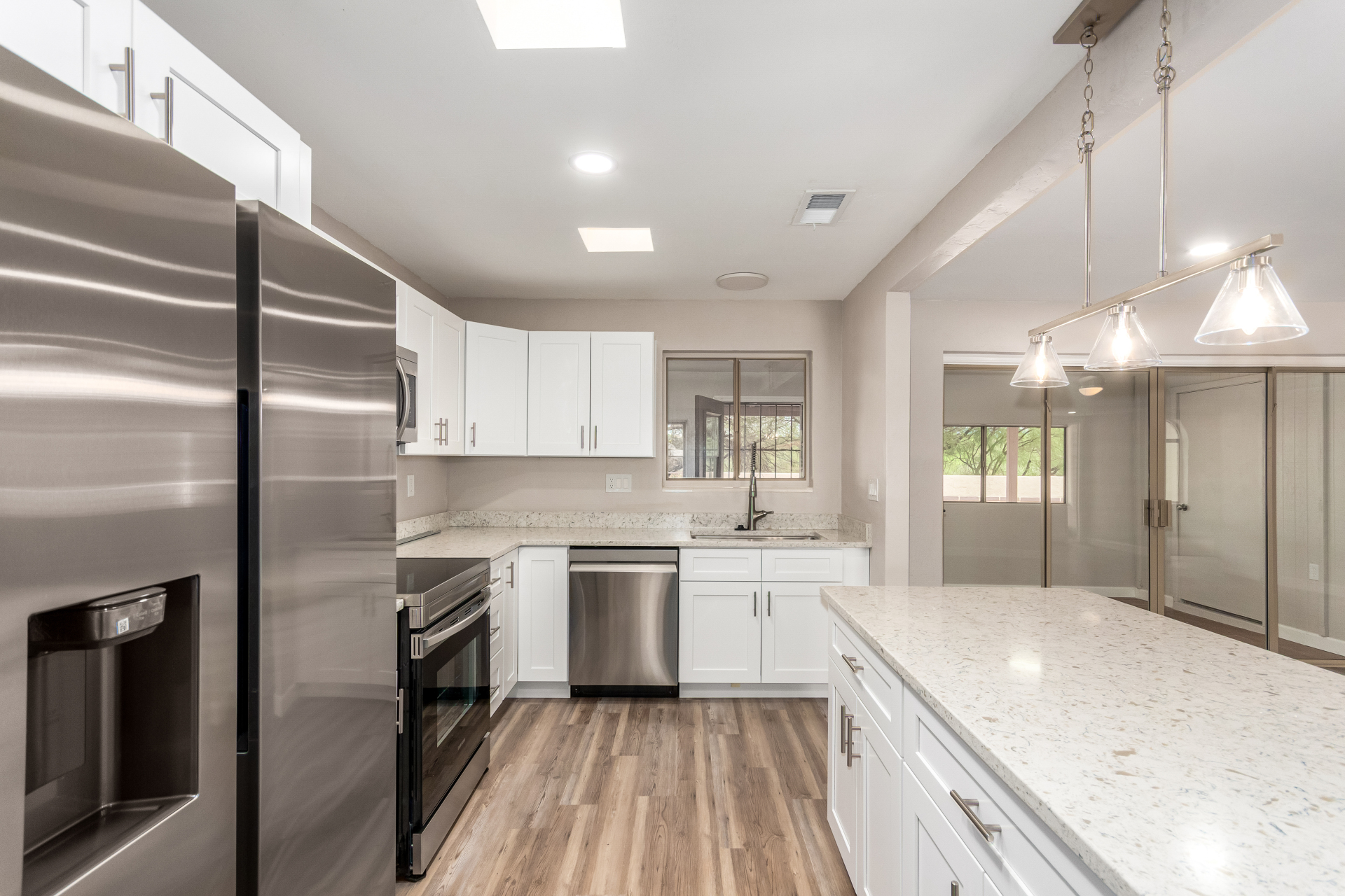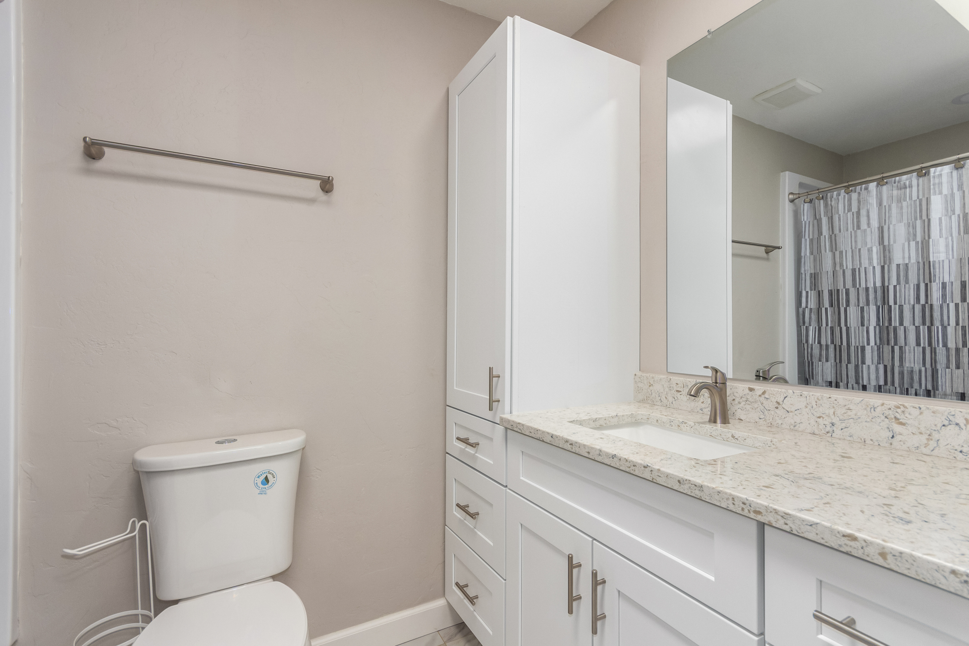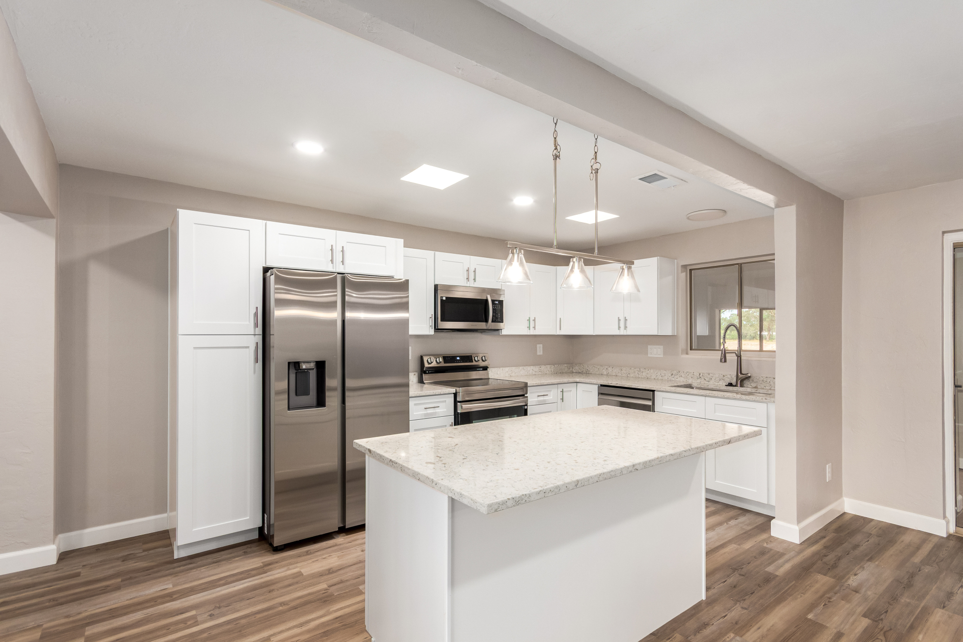 Enjoy practical and low-maintenance living in this gorgeous 2-bedroom/2-bathroom condo! Let the charming courtyard invite you to take a look inside, where you'll find a bright & open layout perfect for entertaining and relaxation, featuring wood-look flooring, recessed lighting, and neutral paint that complements any decor. Whip up your favorite dishes in the pristine kitchen, equipped with shaker cabinets, granite countertops, stainless steel appliances & an island with a breakfast bar, perfect for quick meals. The serene main bedroom hosts a bathroom & a closet. The sizable laundry room provides extra storage space. The backyard is complete with a cozy covered patio perfect for morning coffee and a nice space for weekend grills and peaceful evenings! What's not to love? Make it yours!
