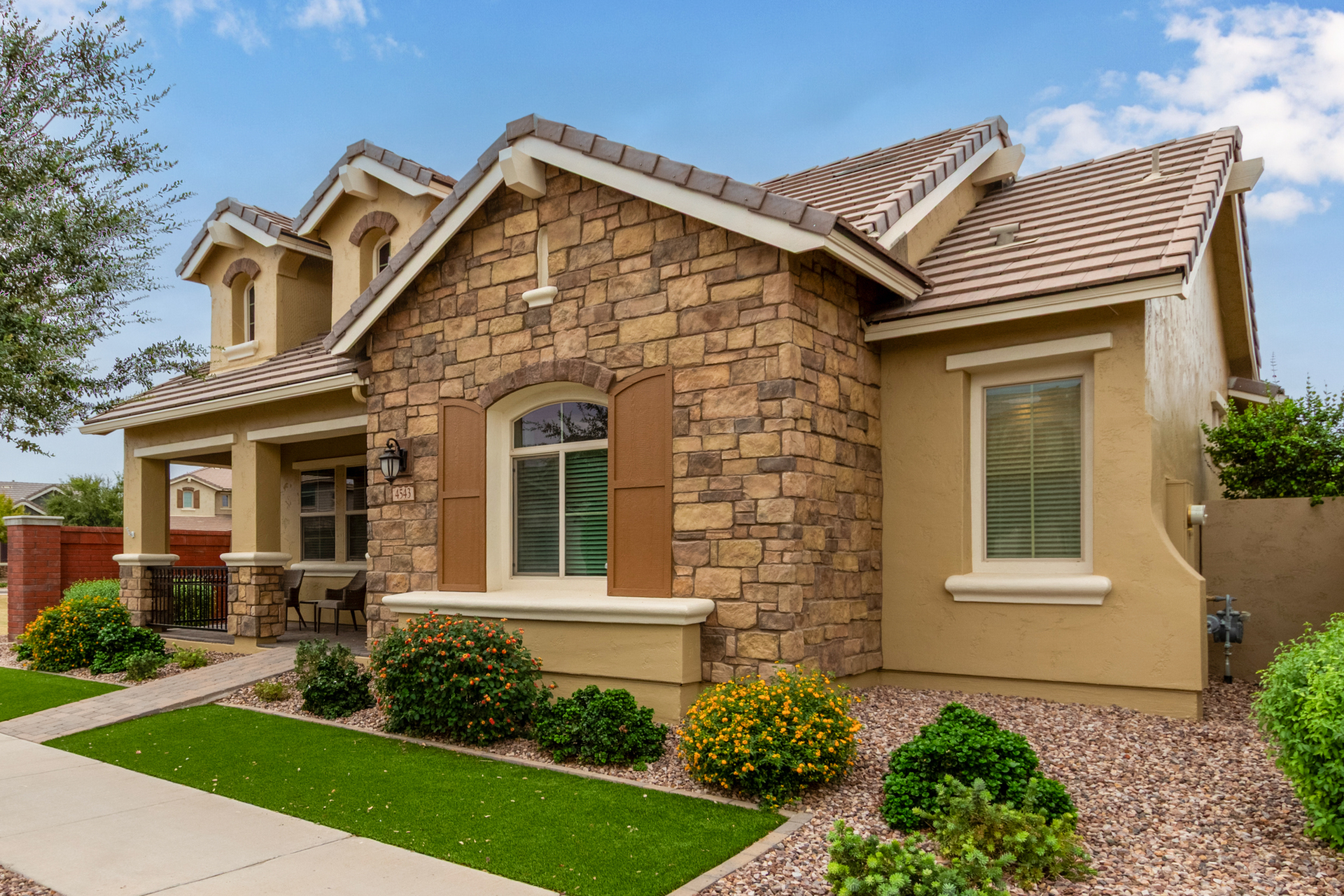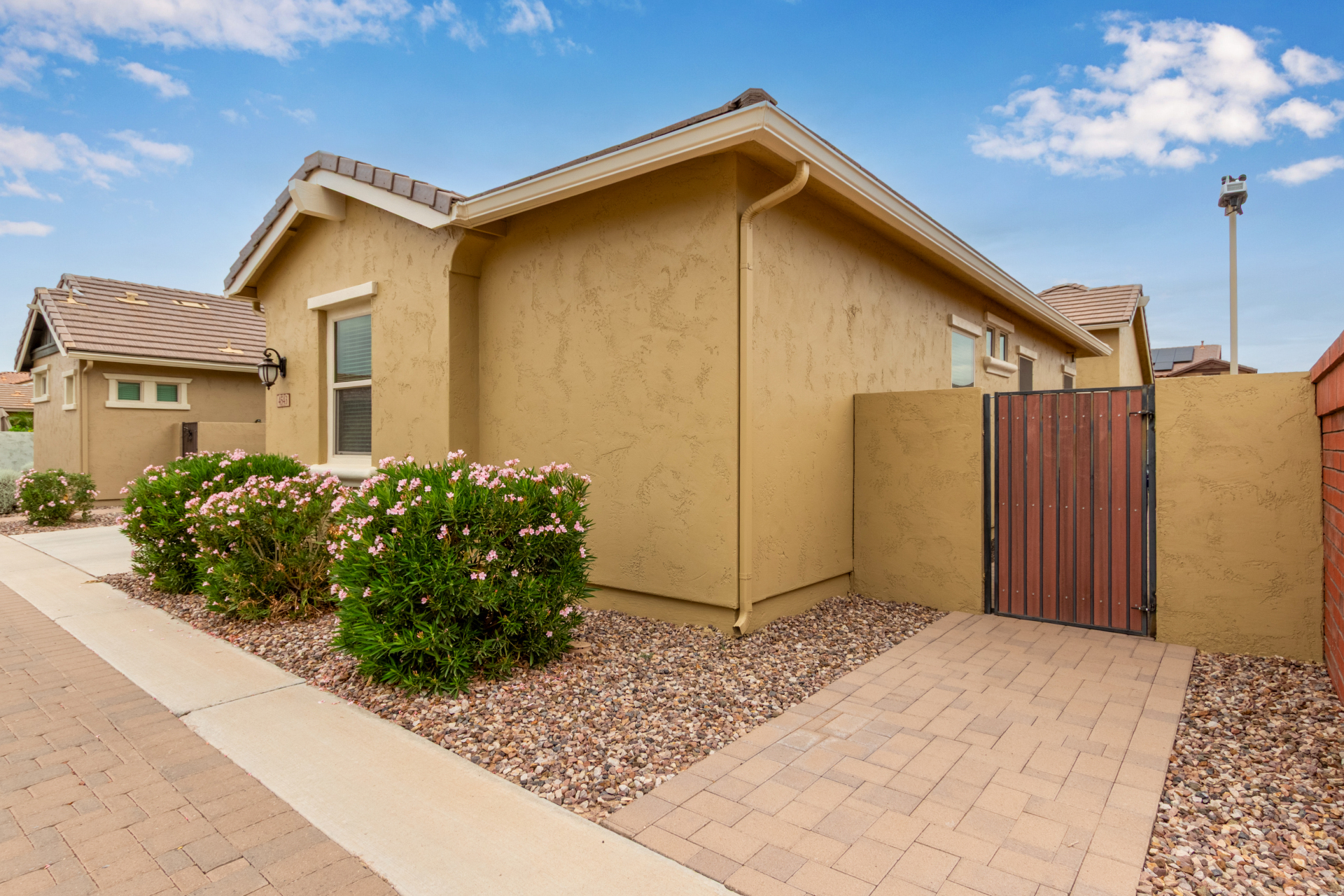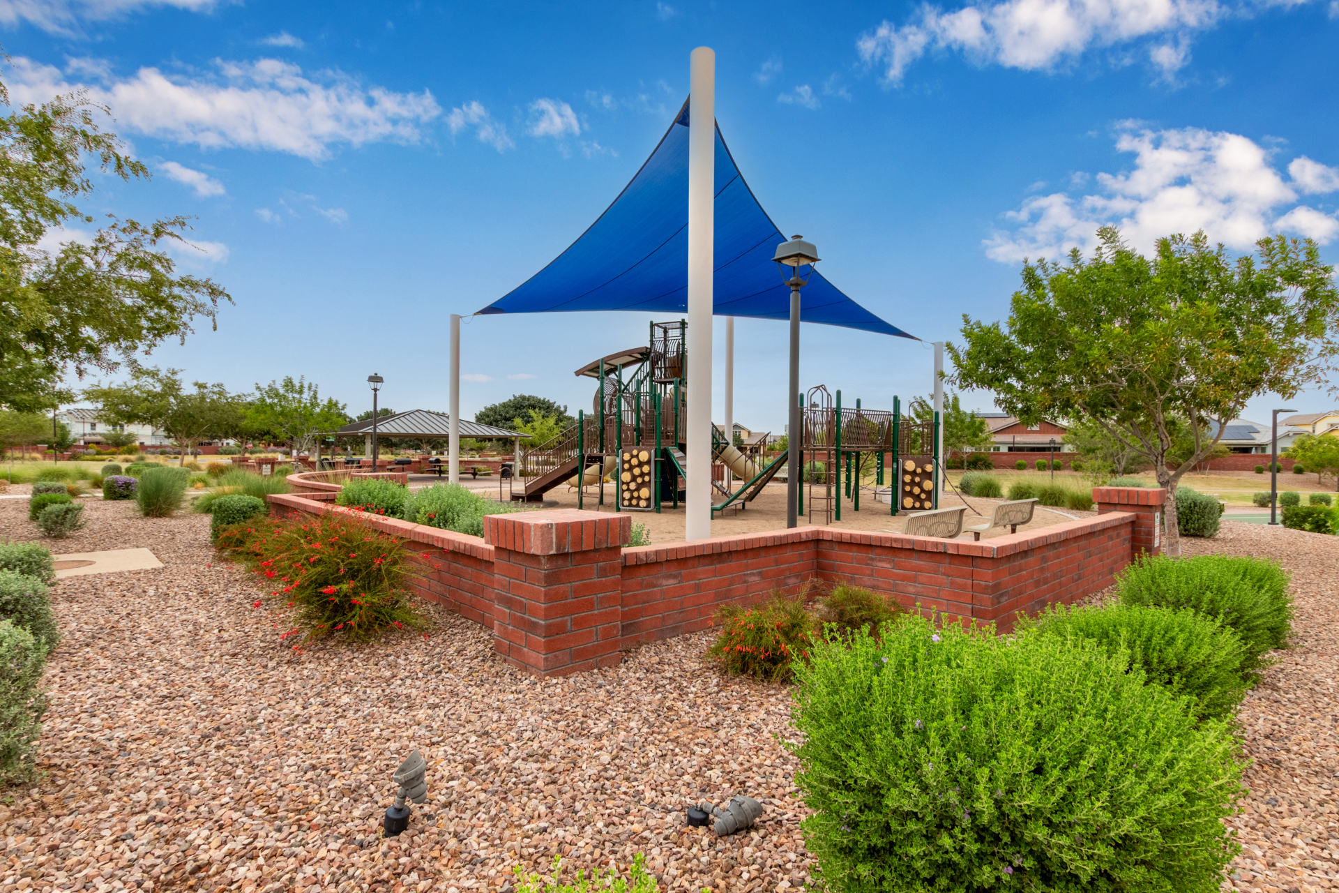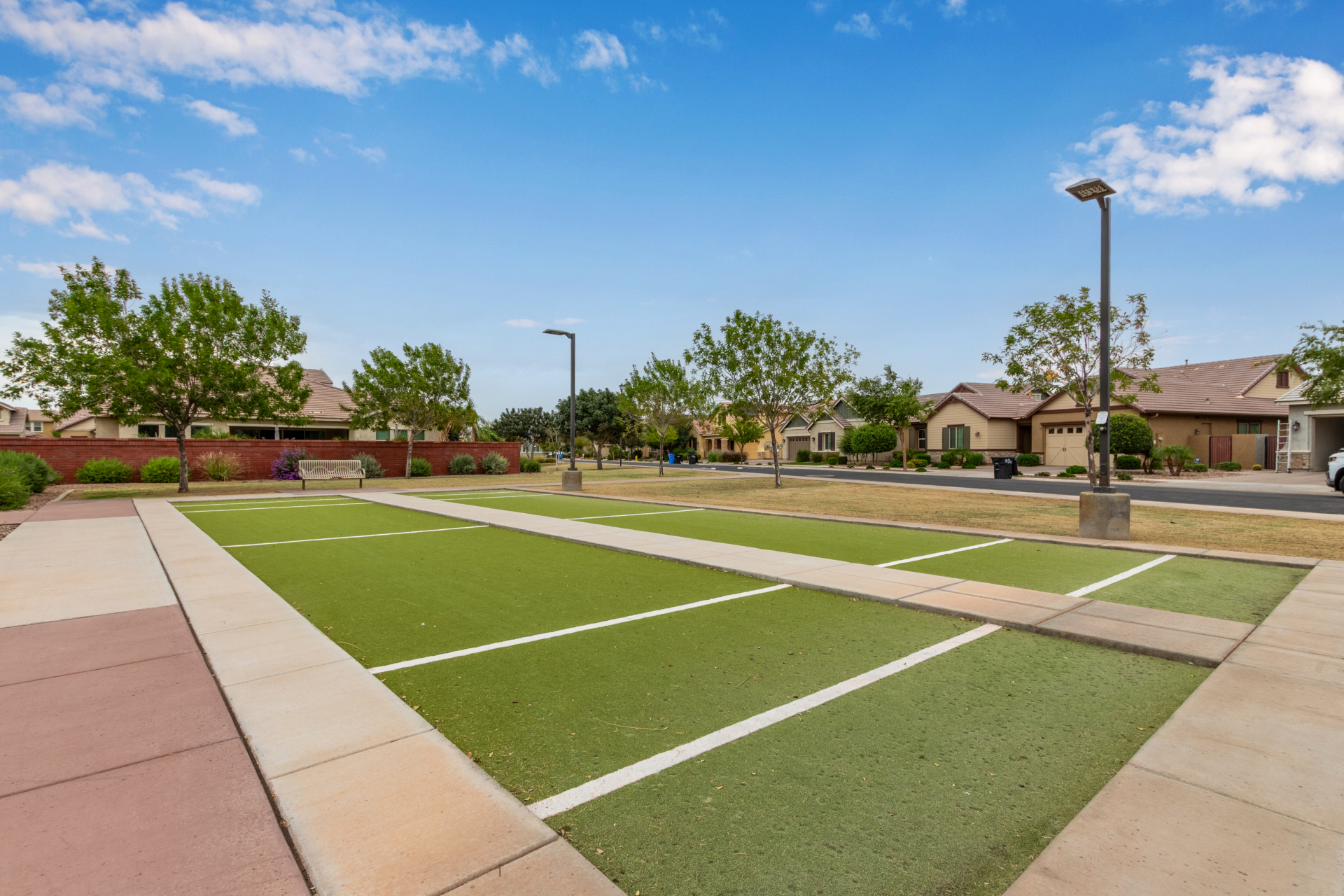 Welcome home to this move-in-ready home in one of Gilberts most desirable communities. This 3 bedroom 2 bathroom 2 car garage home with a den offers upgrades galore. From the 10ft ceilings and upgraded wood plank tiles to the granite counter tops and stainless steel appliances in the gourmet kitchen this home leaves you wanting for nothing. Other upgrades include r/o system, water softner, automated sun screens on the large covered patio, large kitchen island, subway tile kitchen backsplash, plenty of cabinets, artificial turf in the frontyard is maintained by the hoa, backyard has artificial turf and pavers. The communities amenities include pools, playgrounds, basketball courts, bocce ball courts and a cornhole court.