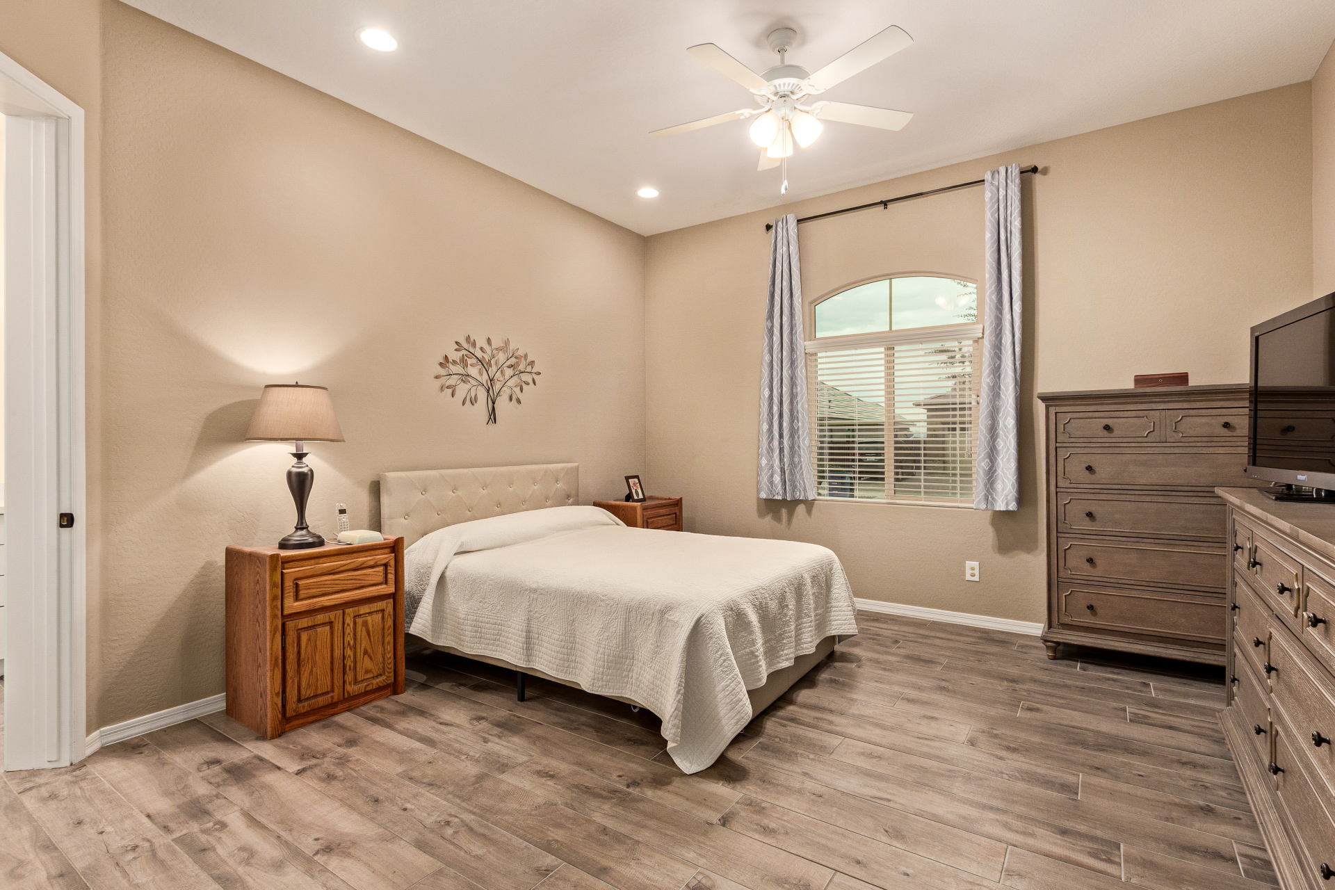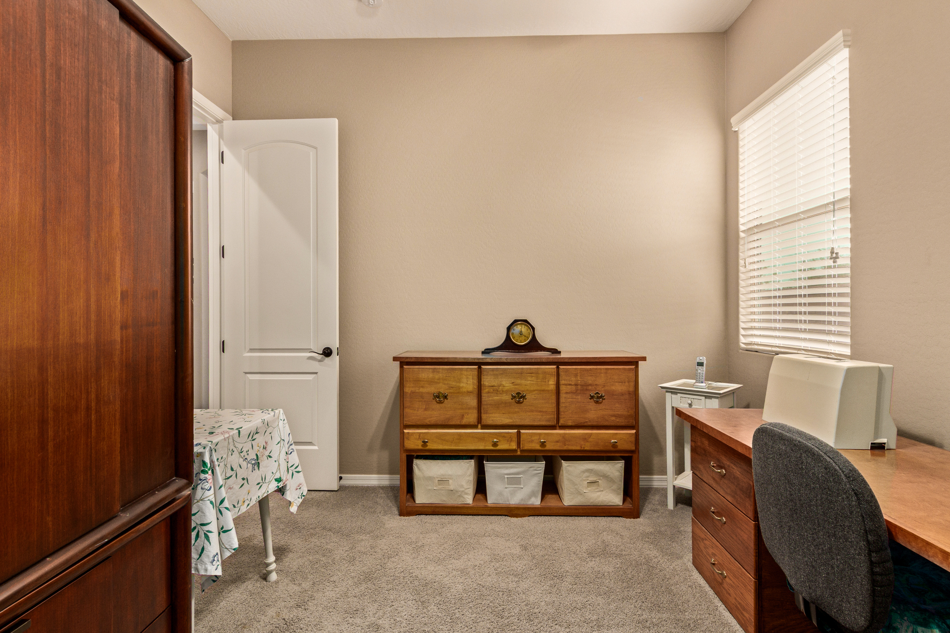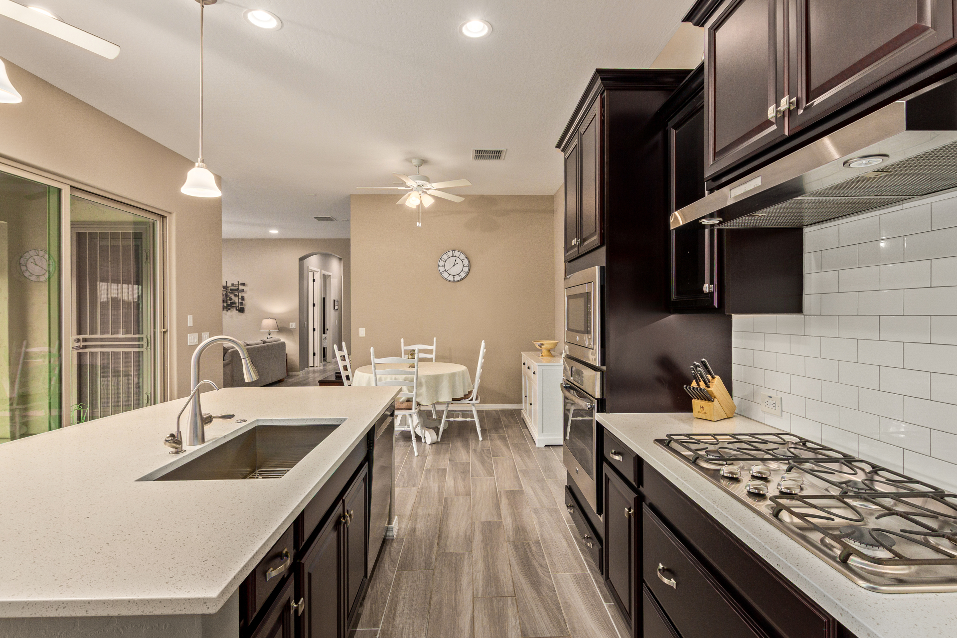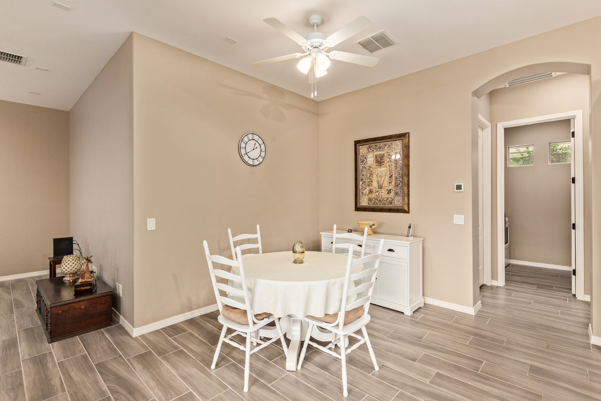 Welcome home to this move-in-ready home in one of Gilberts most desirable communities. This 3 bedroom 2 bathroom 2 car garage home with a den offers upgrades galore. From the 10ft ceilings and upgraded wood plank tiles to the granite counter tops and stainless steel appliances in the gourmet kitchen this home leaves you wanting for nothing. Other upgrades include r/o system, water softner, automated sun screens on the large covered patio, large kitchen island, subway tile kitchen backsplash, plenty of cabinets, artificial turf in the frontyard is maintained by the hoa, backyard has artificial turf and pavers. The communities amenities include pools, playgrounds, basketball courts, bocce ball courts and a cornhole court.