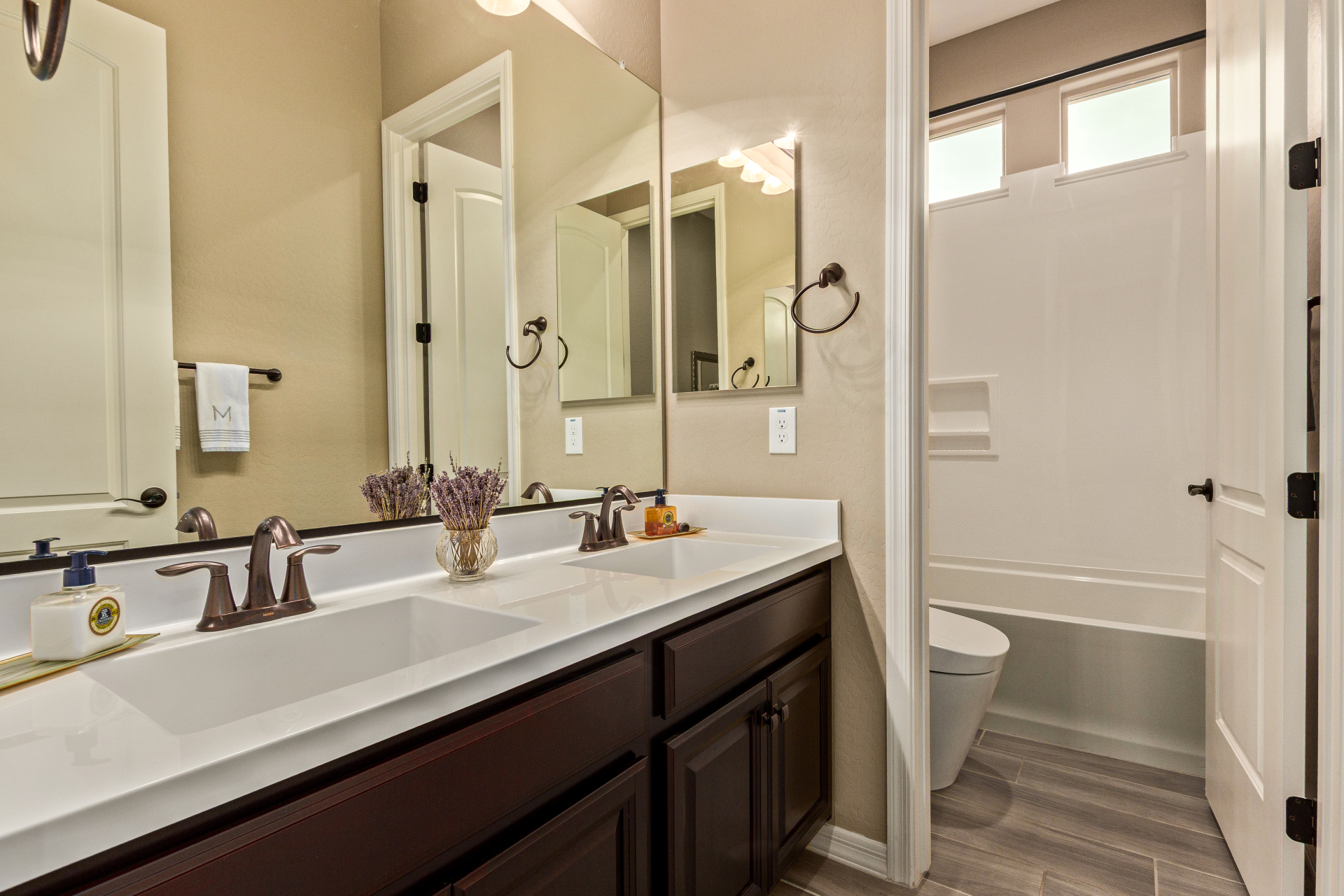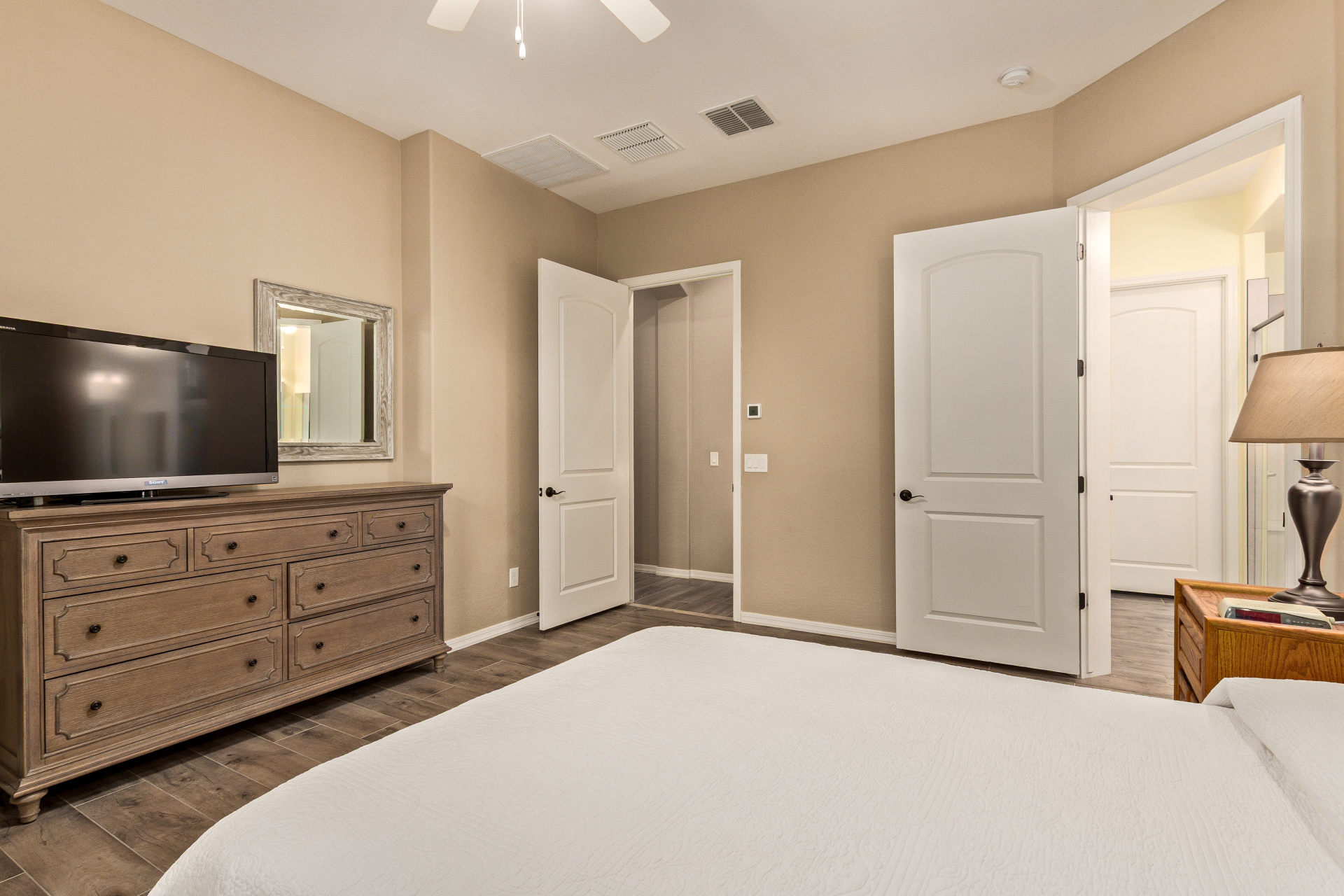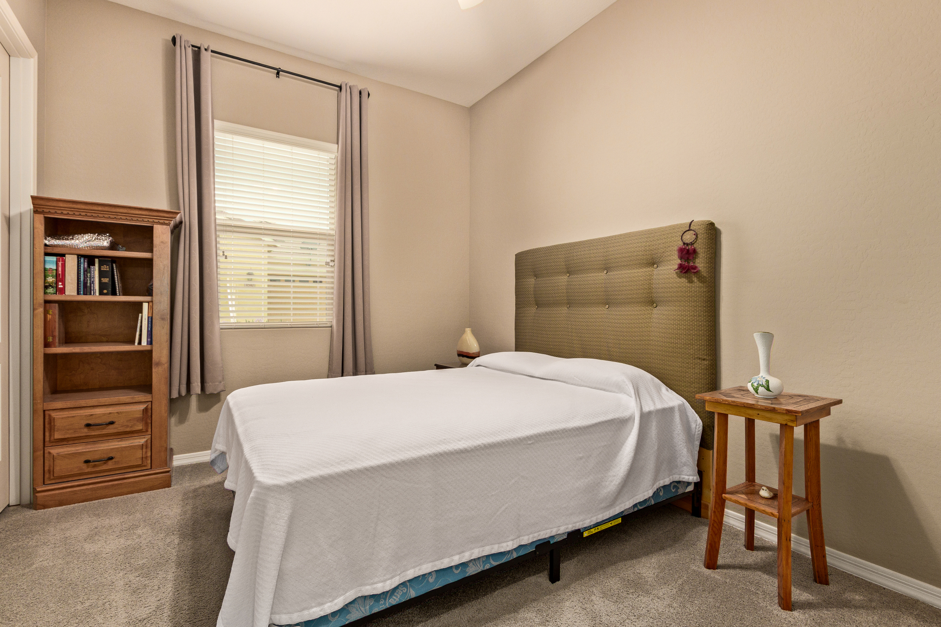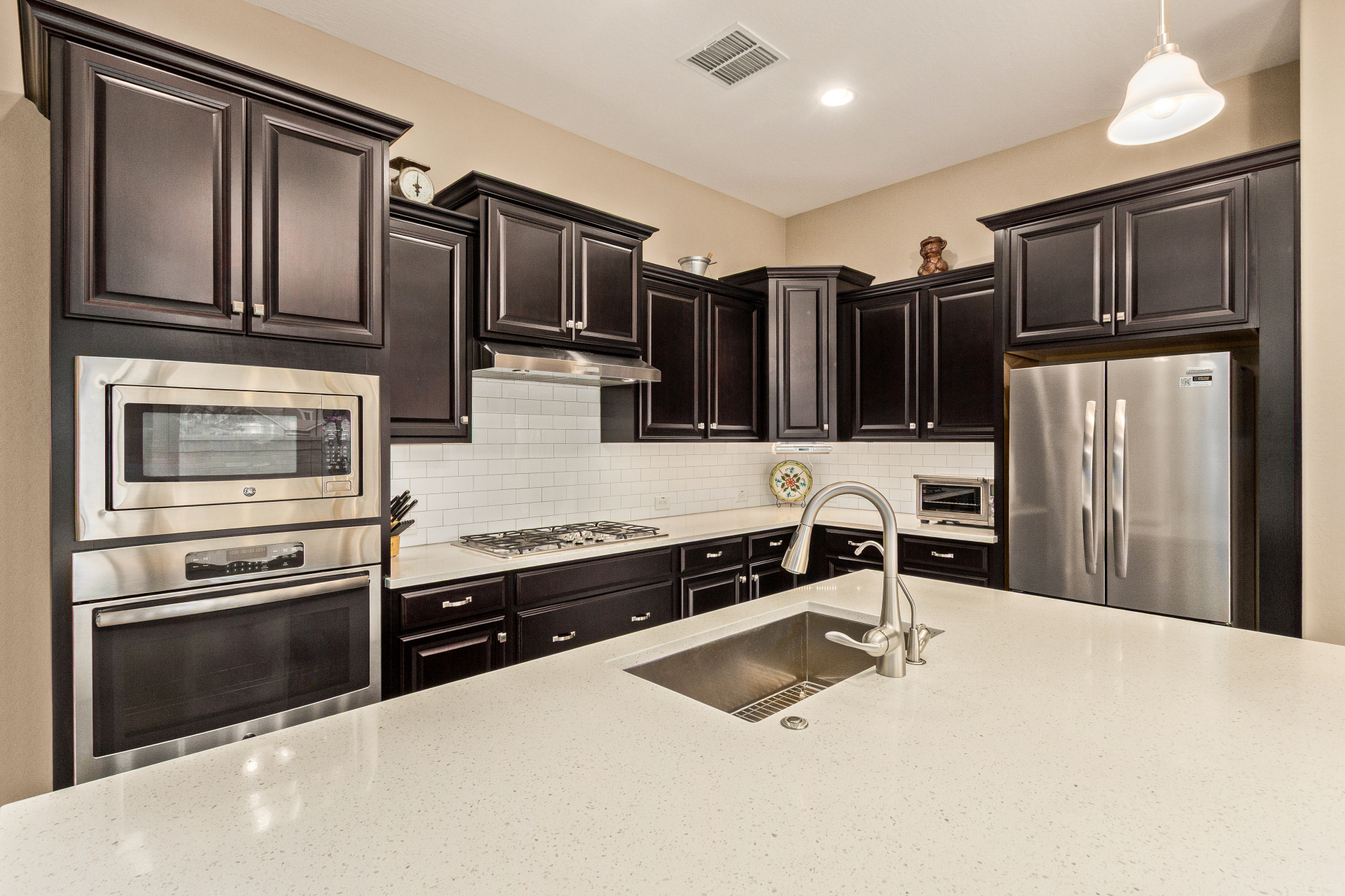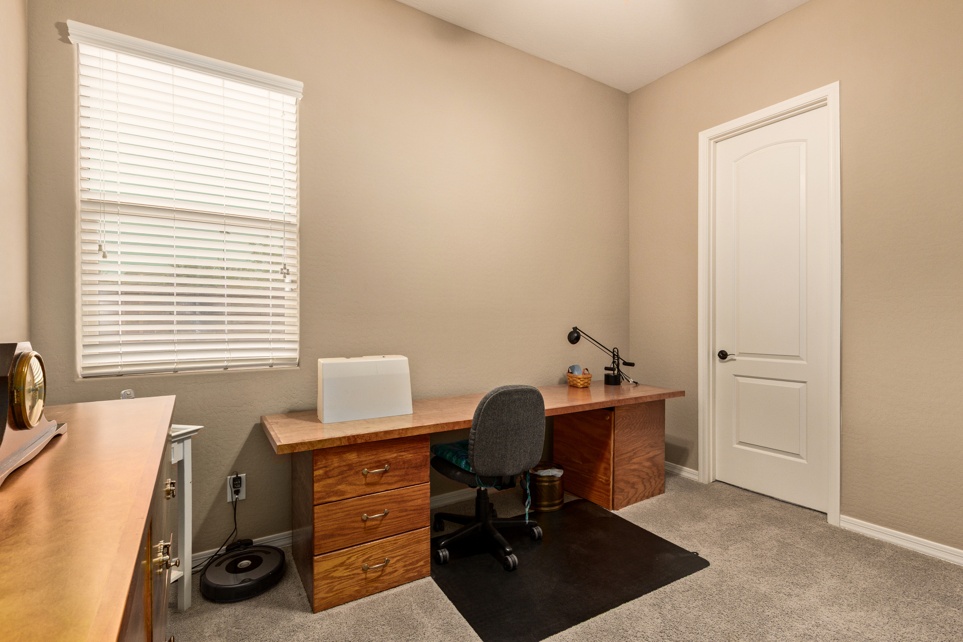 Welcome home to this move-in-ready home in one of Gilberts most desirable communities. This 3 bedroom 2 bathroom 2 car garage home with a den offers upgrades galore. From the 10ft ceilings and upgraded wood plank tiles to the granite counter tops and stainless steel appliances in the gourmet kitchen this home leaves you wanting for nothing. Other upgrades include r/o system, water softner, automated sun screens on the large covered patio, large kitchen island, subway tile kitchen backsplash, plenty of cabinets, artificial turf in the frontyard is maintained by the hoa, backyard has artificial turf and pavers. The communities amenities include pools, playgrounds, basketball courts, bocce ball courts and a cornhole court.