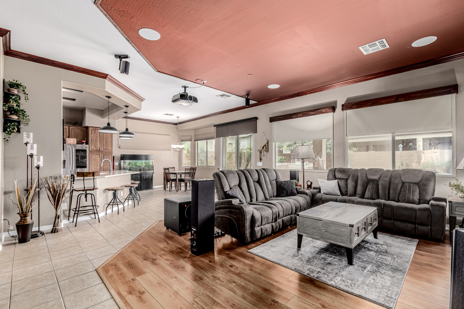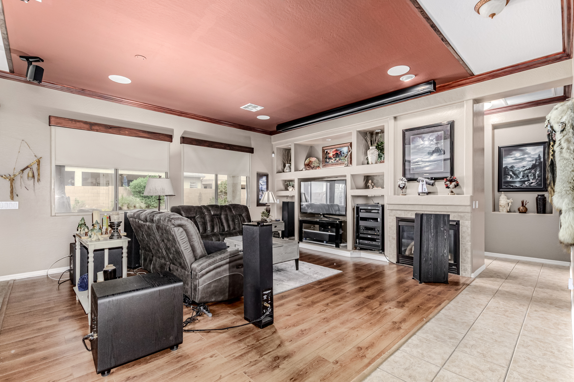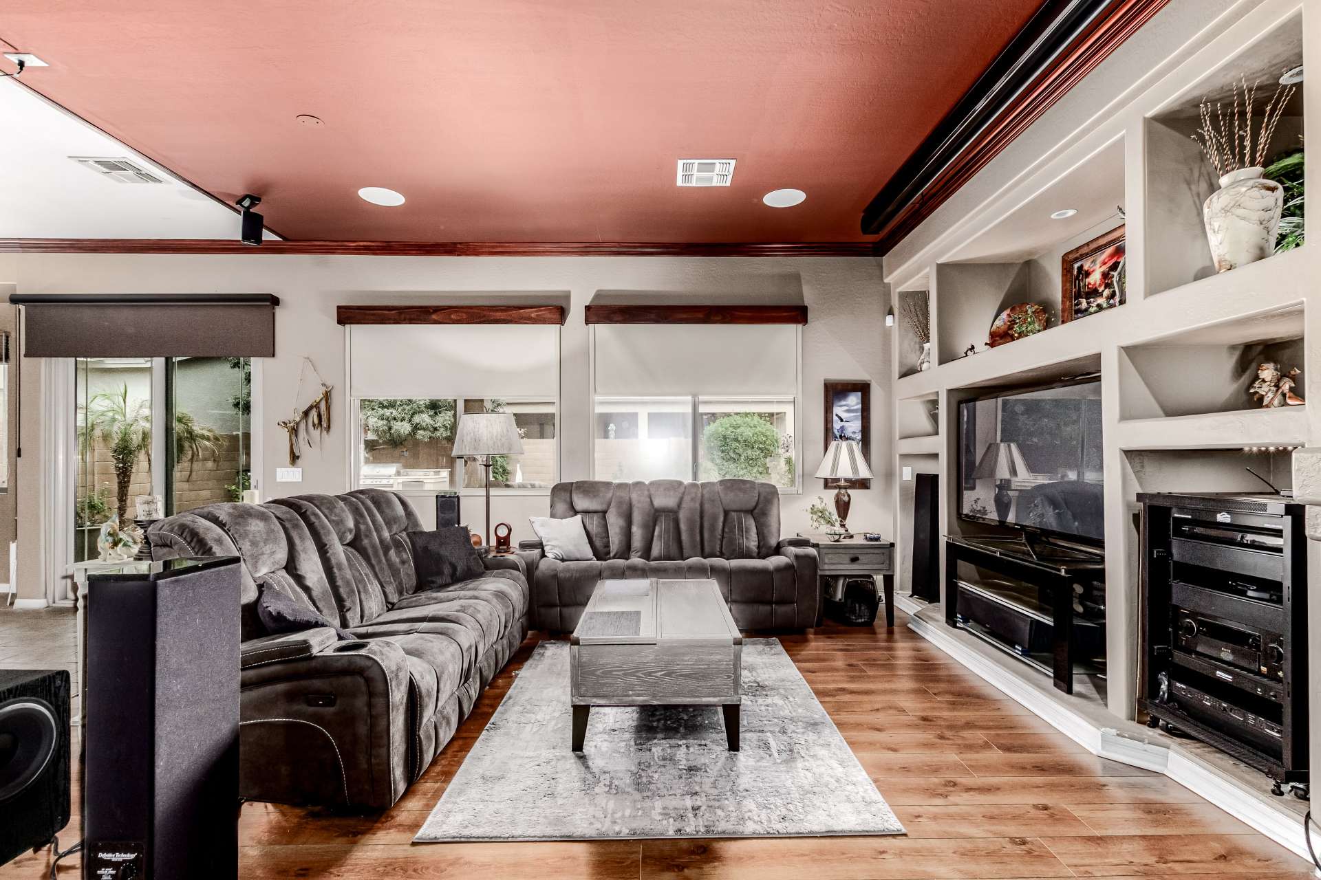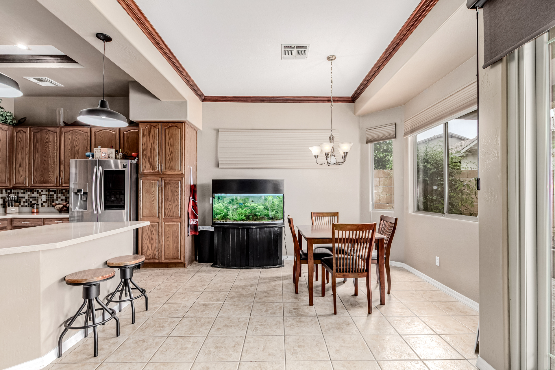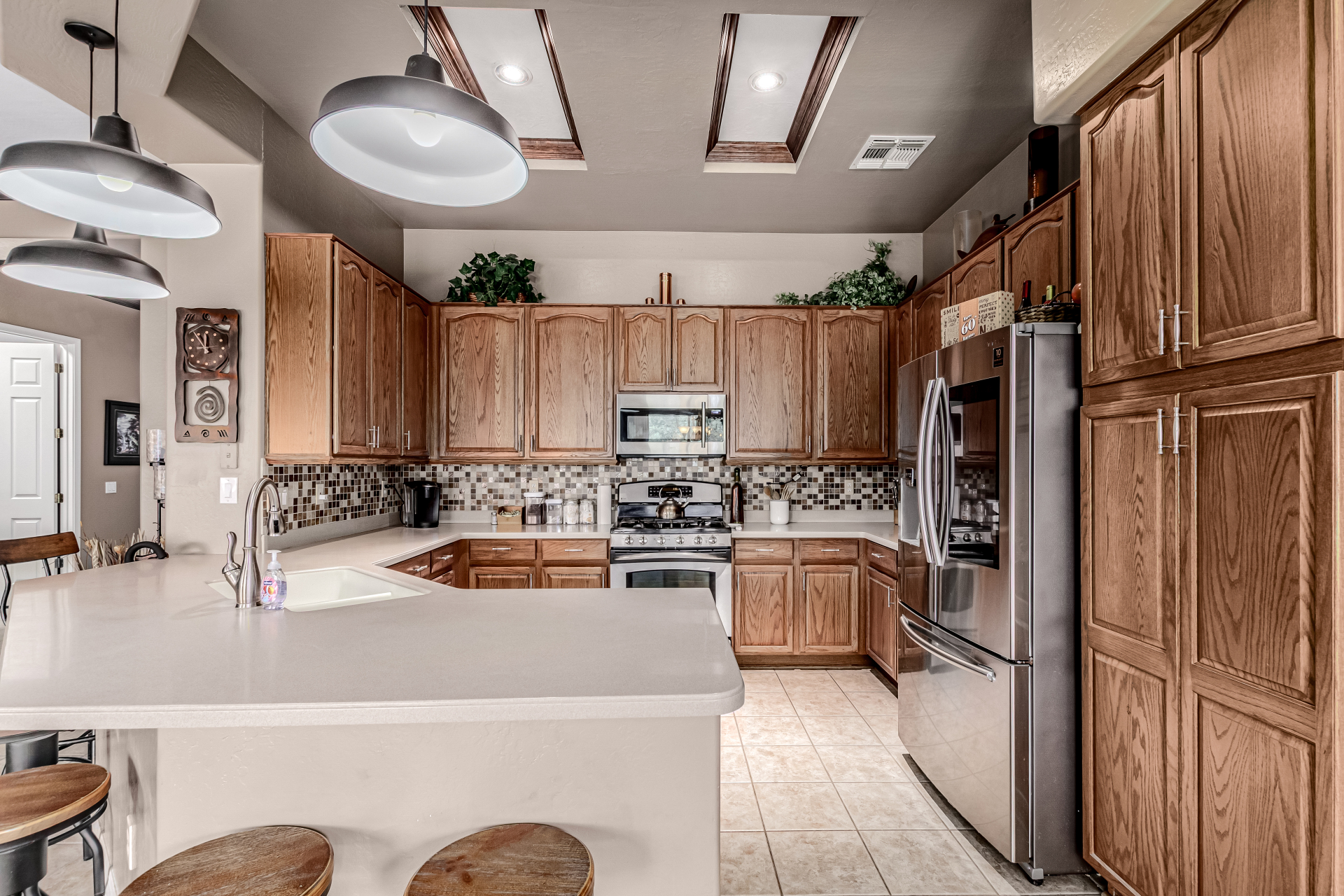 Beautiful 3-bed, 2-bath with POOL in Bell West Ranch! Sits on a cul-de-sac, adjacent to a common area. A manicured desert landscape & a 3-car garage w/cabinetry are just the beginning. The fabulous interior features designer paint, layered crown molding, tons of natural light, wood & tile flooring in common areas, and carpet in bedrooms. You'll love the seamlessly flowing open layout paired with a media center & sliding doors to the back! The impressive kitchen boasts SS appliances, Corian counters, ample wood cabinetry, mosaic tile backsplash, & a breakfast bar. The large main bedroom has an ensuite with dual vessel sinks, separate tub/shower, & a walk-in closet. Enjoy the backyard oasis with a paver-covered patio, built-in BBQ, & a sparkling pool! Solar Panels are added perks. Just WOW!