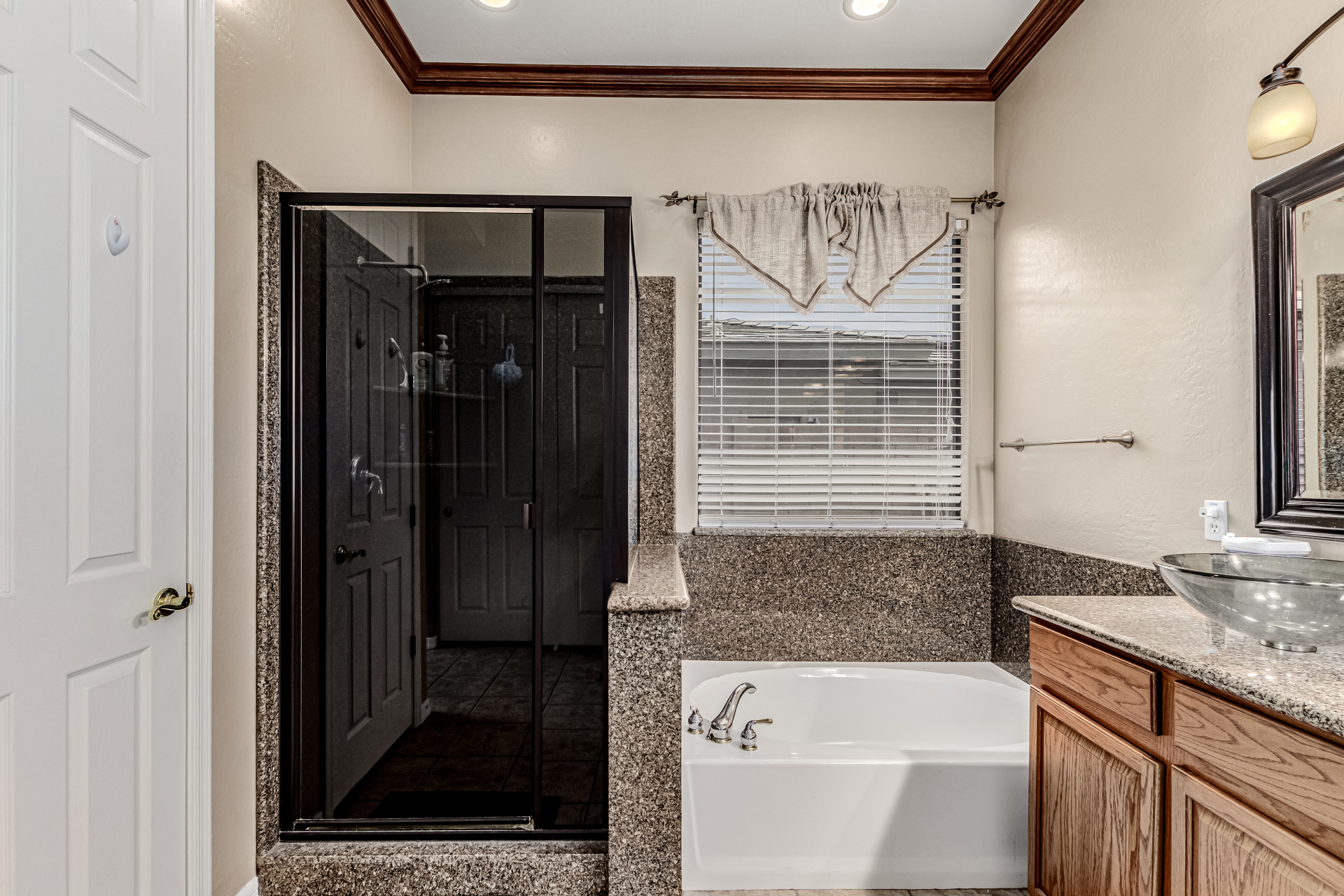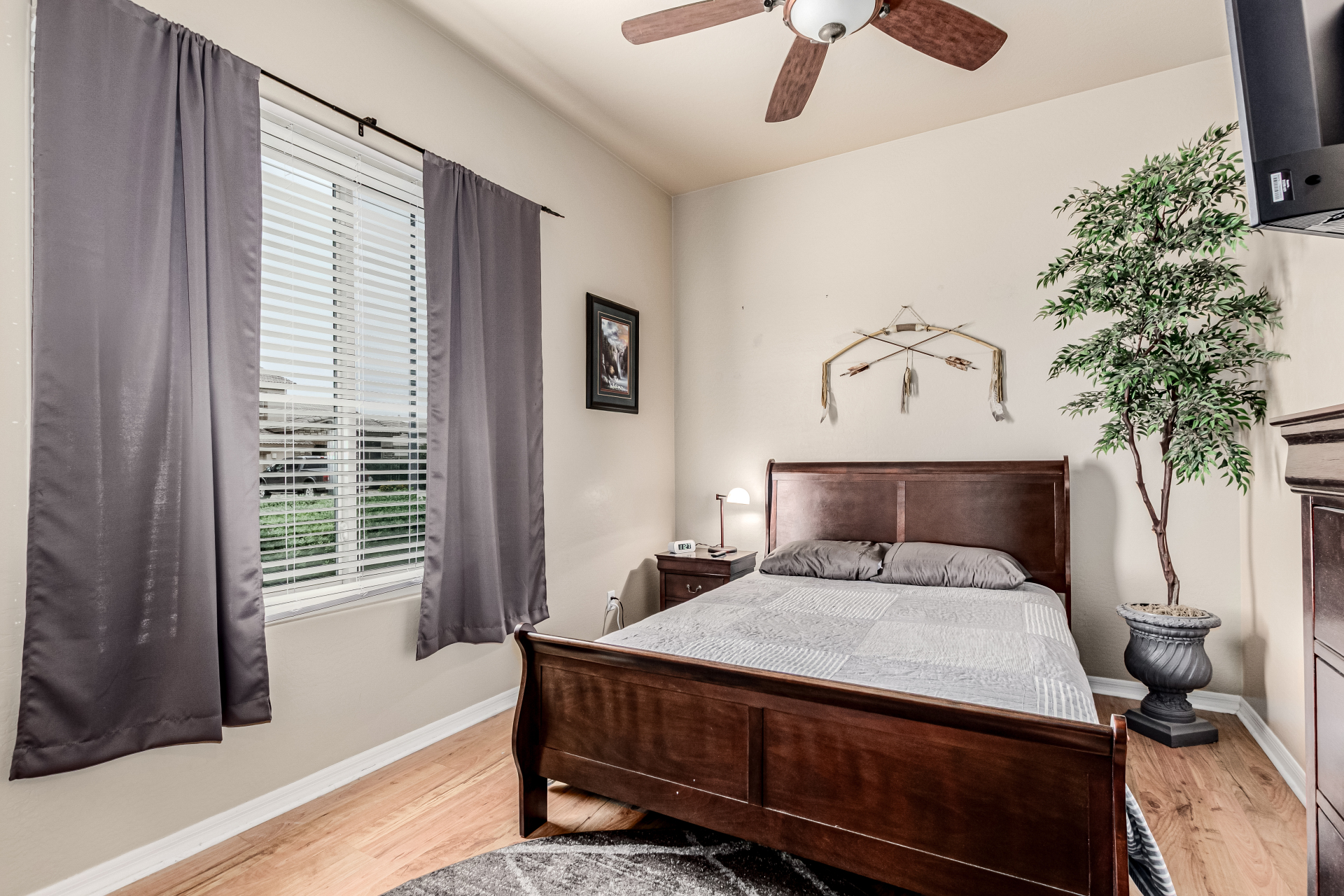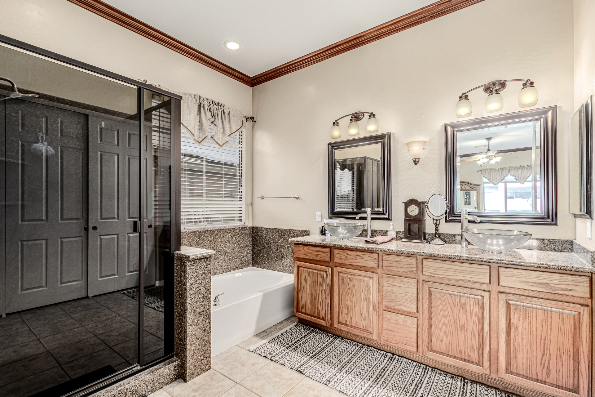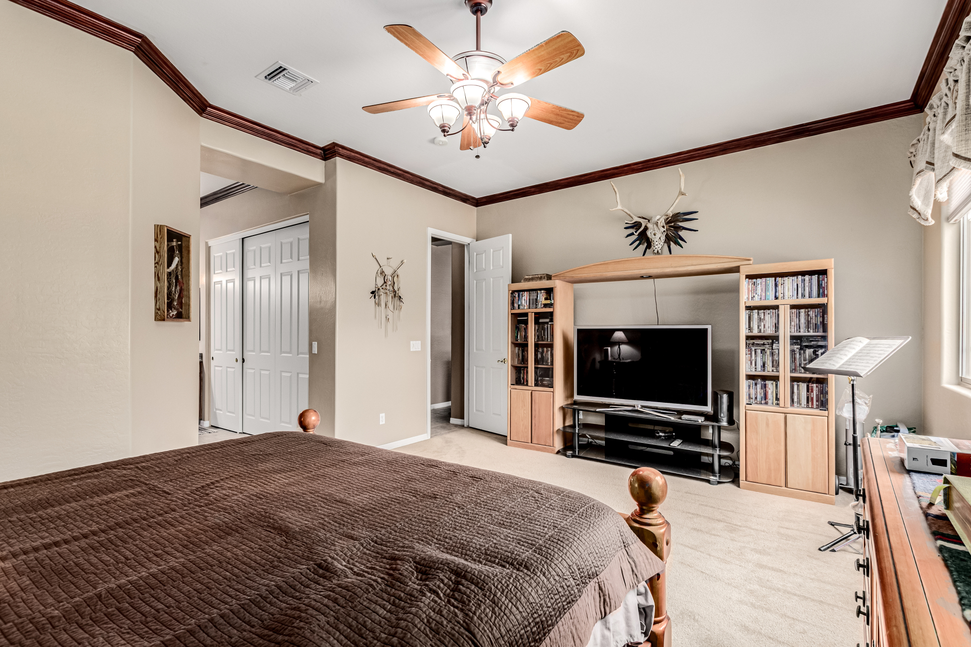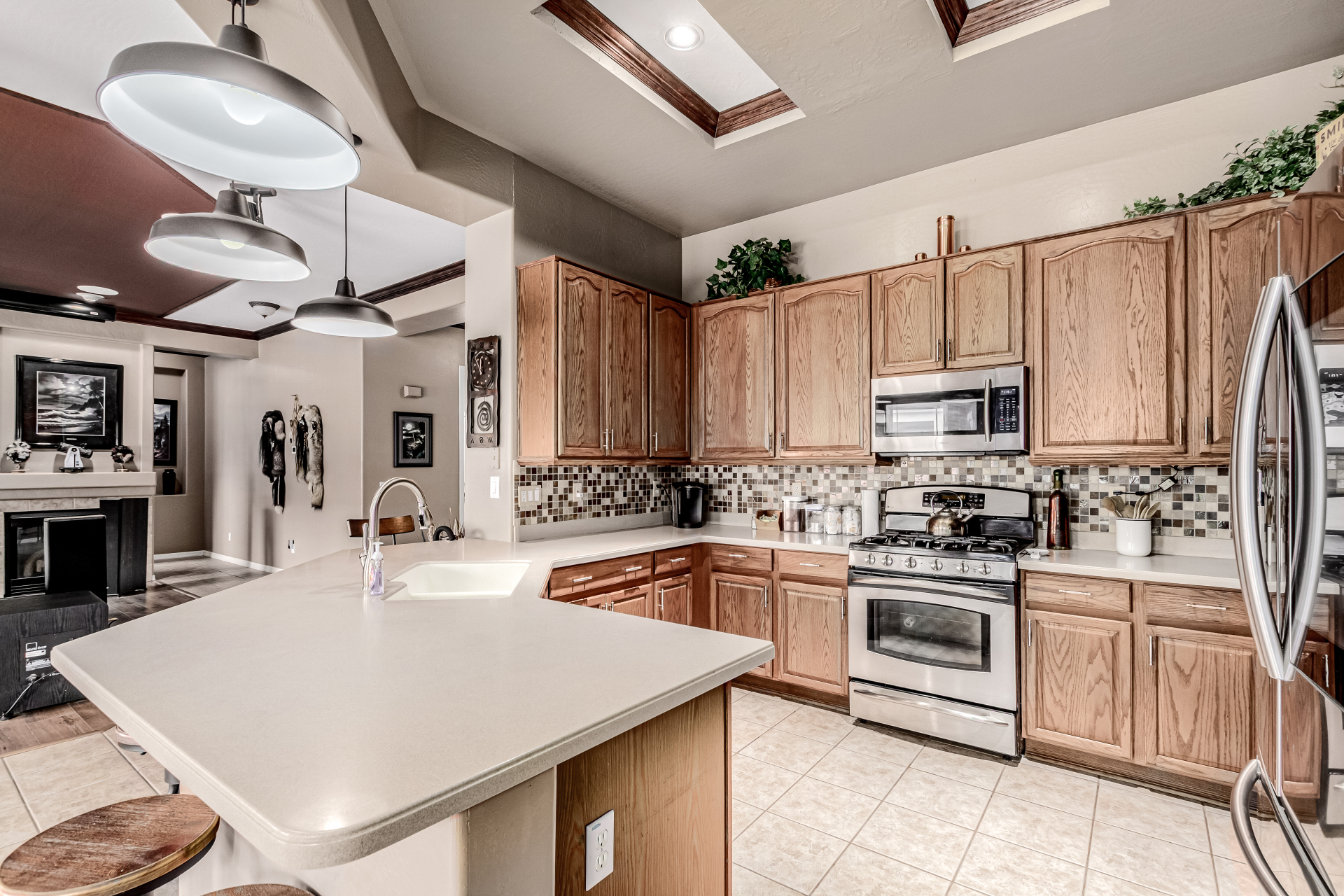 Beautiful 3-bed, 2-bath with POOL in Bell West Ranch! Sits on a cul-de-sac, adjacent to a common area. A manicured desert landscape & a 3-car garage w/cabinetry are just the beginning. The fabulous interior features designer paint, layered crown molding, tons of natural light, wood & tile flooring in common areas, and carpet in bedrooms. You'll love the seamlessly flowing open layout paired with a media center & sliding doors to the back! The impressive kitchen boasts SS appliances, Corian counters, ample wood cabinetry, mosaic tile backsplash, & a breakfast bar. The large main bedroom has an ensuite with dual vessel sinks, separate tub/shower, & a walk-in closet. Enjoy the backyard oasis with a paver-covered patio, built-in BBQ, & a sparkling pool! Solar Panels are added perks. Just WOW!