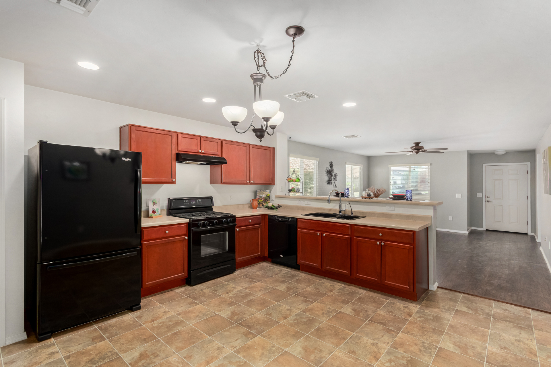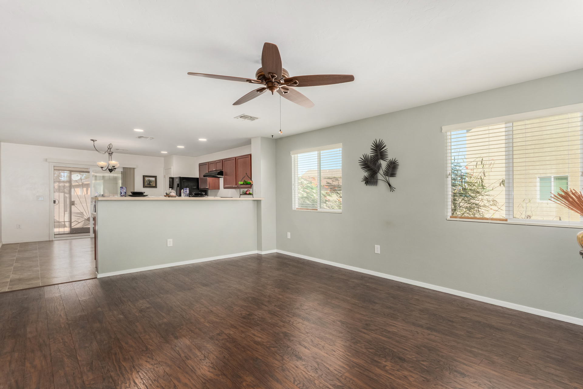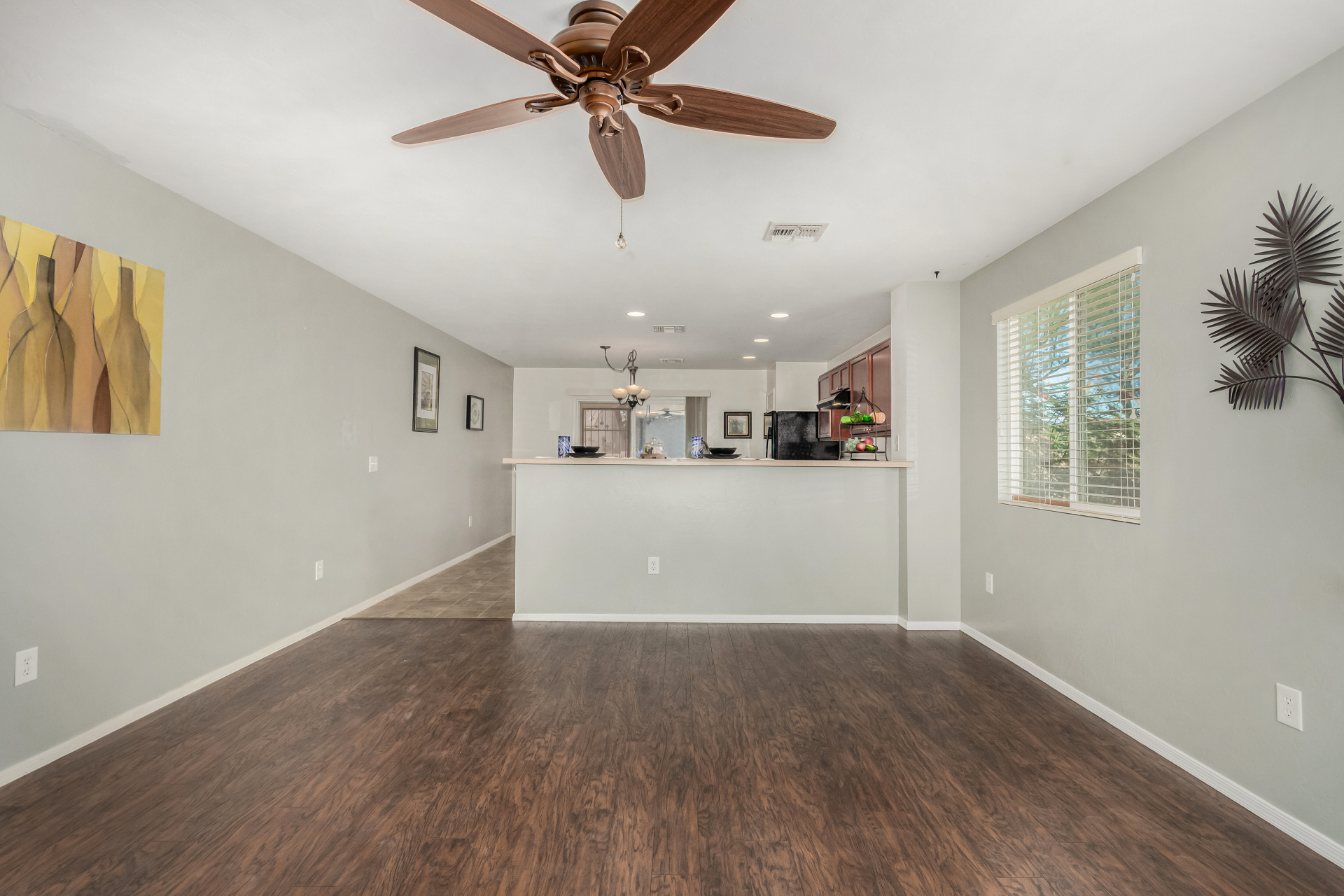 Nestled in a quiet cul-de-sac, with a charming curb appeal, this adorable 3-bedroom home blends style and comfort. Discover the practical open layout with wood-look & tile flooring, plenty of natural light, and neutral tones throughout, making everyday living a breeze. Prepare your favorite dishes in the impeccable kitchen, equipped with recessed lighting, plentiful storage cabinetry, a spacious peninsula with a breakfast bar, and built-in essentials. The main bedroom promises a good night's sleep and boasts carpet flooring, a walk-in closet for easy organization, and a bathroom for privacy. The enclosed patio is perfect for entertaining. The backyard provides a nice space for relaxation and outdoor fun, complete with flagstone flooring and a soothing landscape. Truly a must-see!
