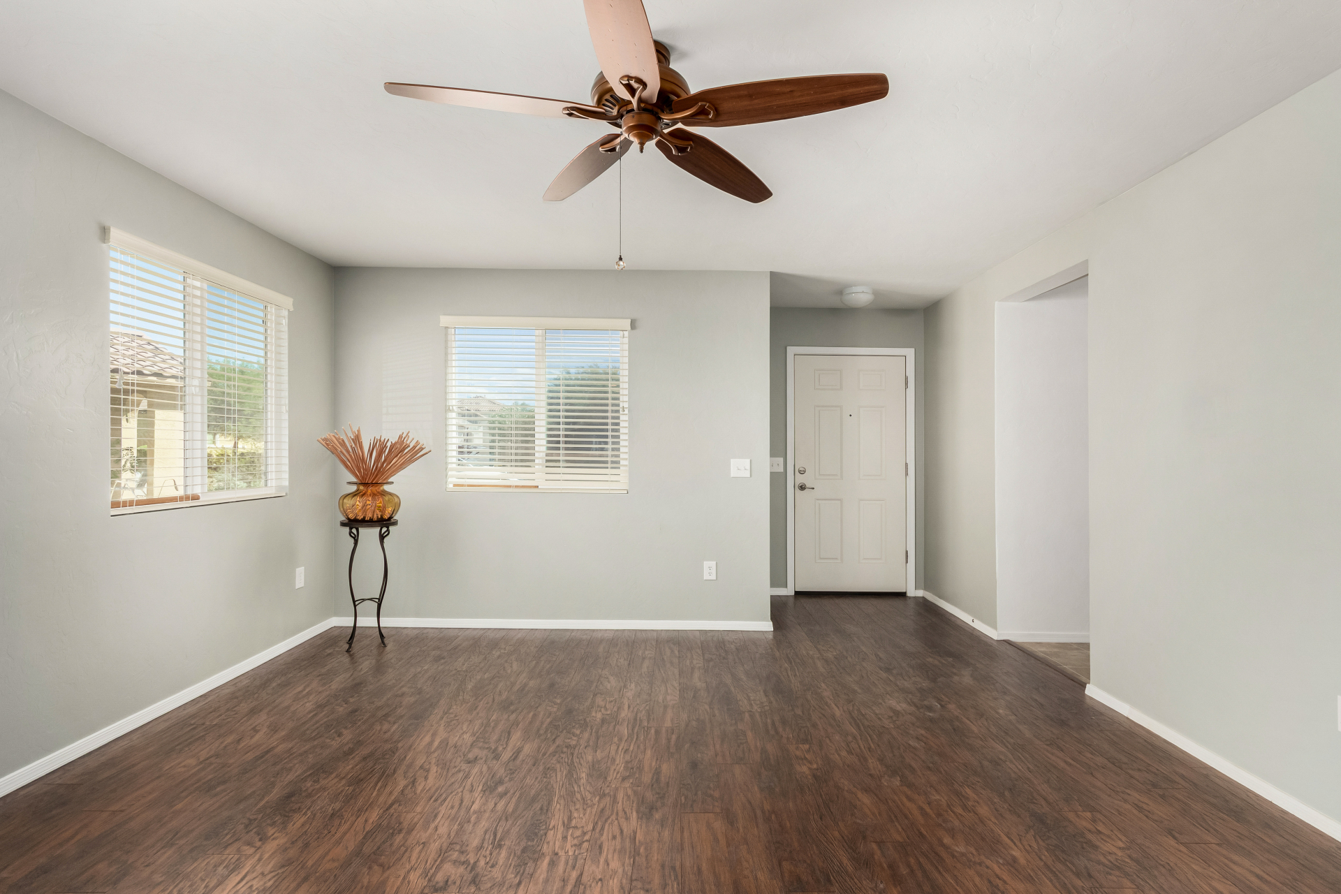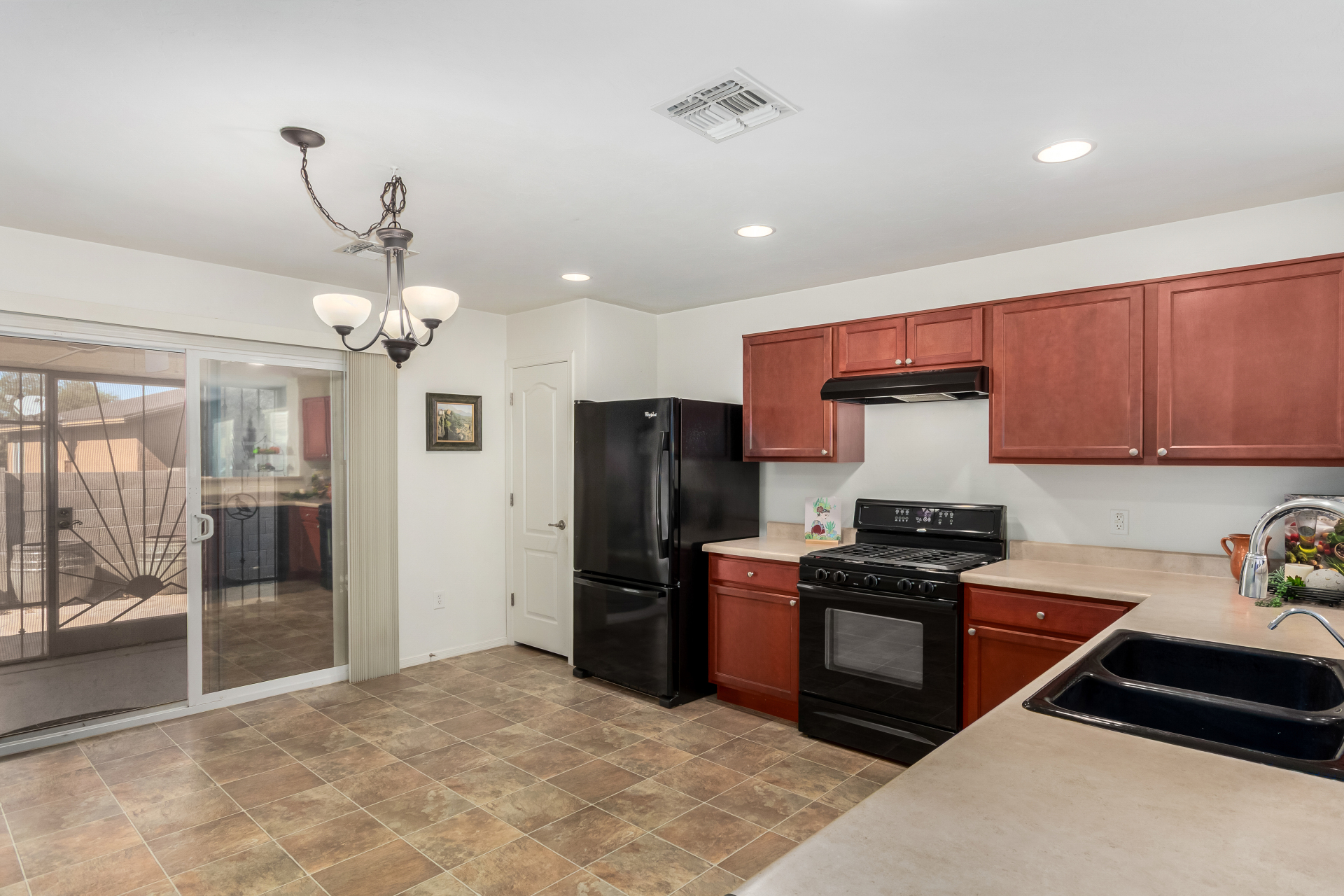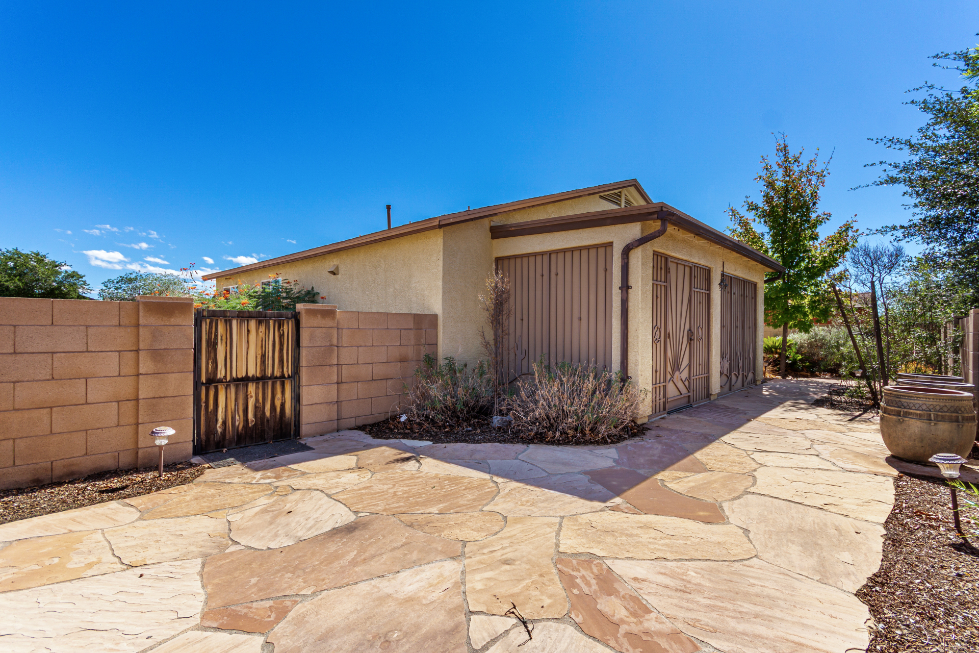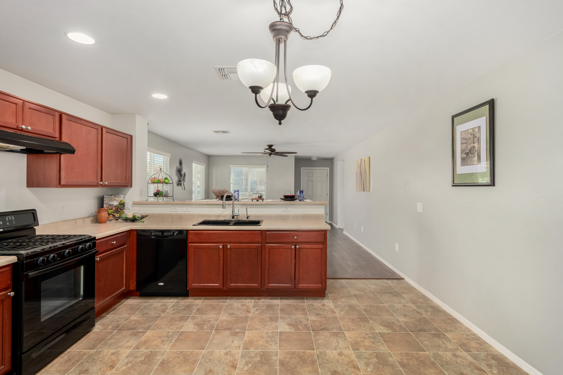 Nestled in a quiet cul-de-sac, with a charming curb appeal, this adorable 3-bedroom home blends style and comfort. Discover the practical open layout with wood-look & tile flooring, plenty of natural light, and neutral tones throughout, making everyday living a breeze. Prepare your favorite dishes in the impeccable kitchen, equipped with recessed lighting, plentiful storage cabinetry, a spacious peninsula with a breakfast bar, and built-in essentials. The main bedroom promises a good night's sleep and boasts carpet flooring, a walk-in closet for easy organization, and a bathroom for privacy. The enclosed patio is perfect for entertaining. The backyard provides a nice space for relaxation and outdoor fun, complete with flagstone flooring and a soothing landscape. Truly a must-see!