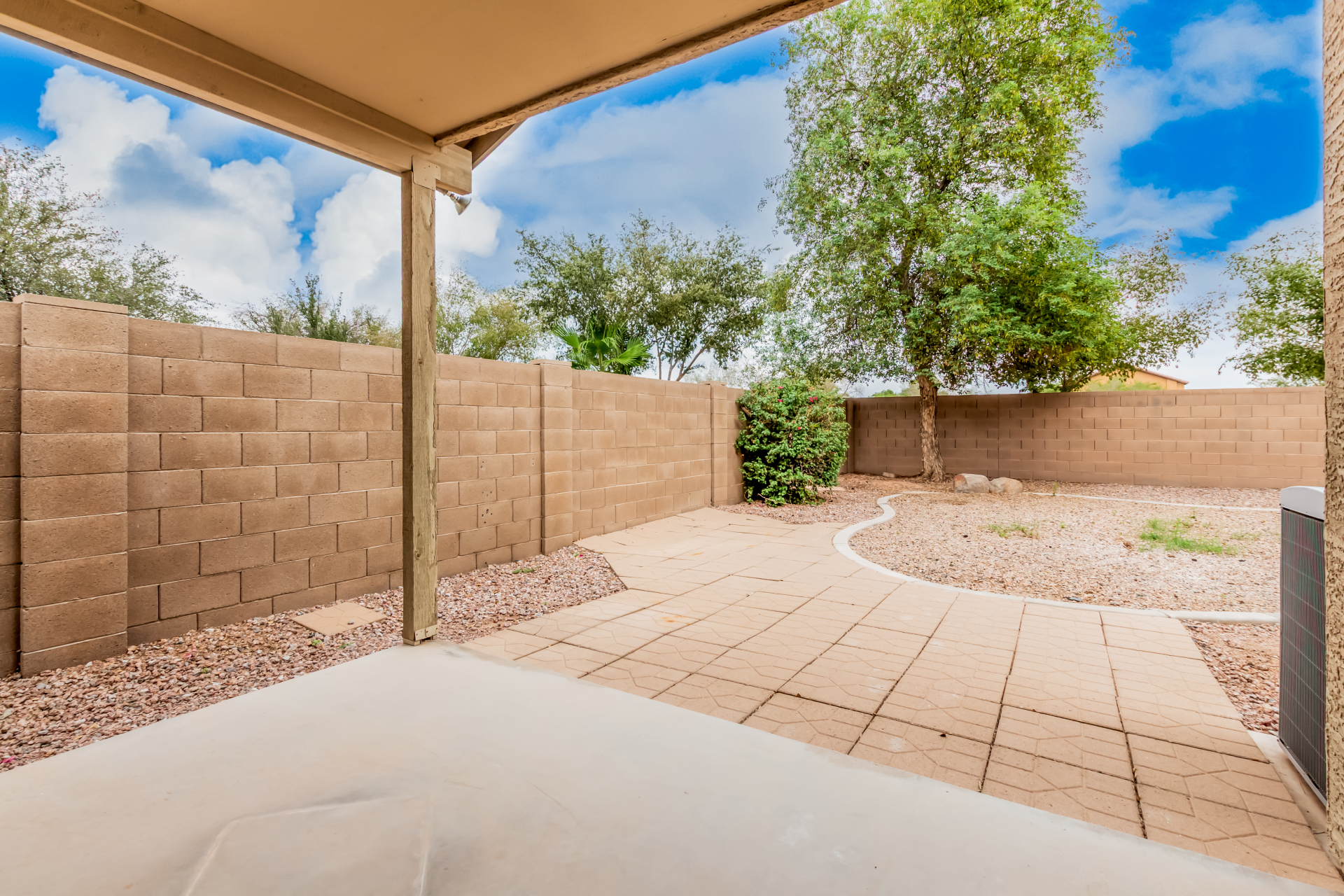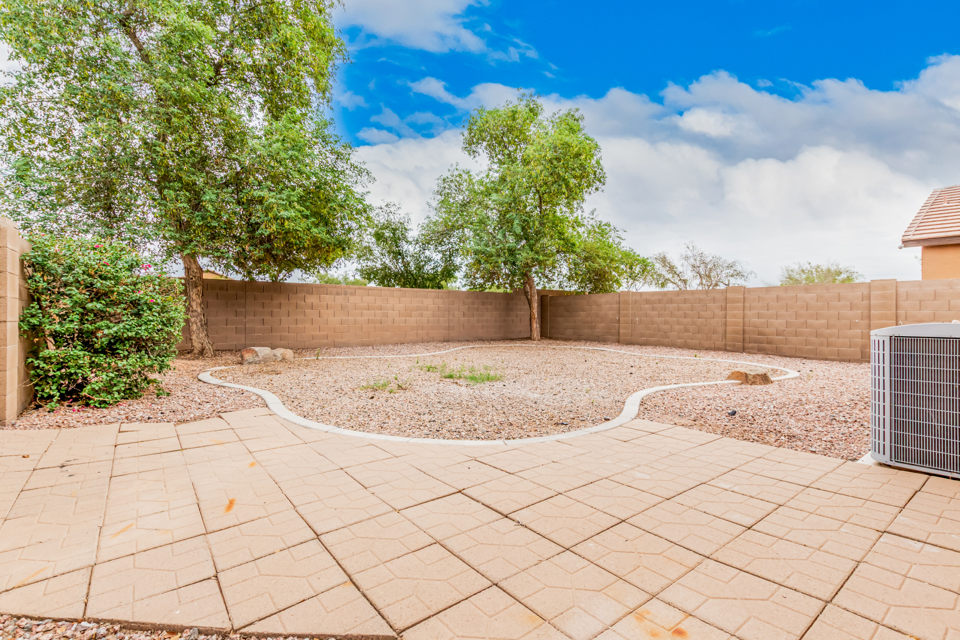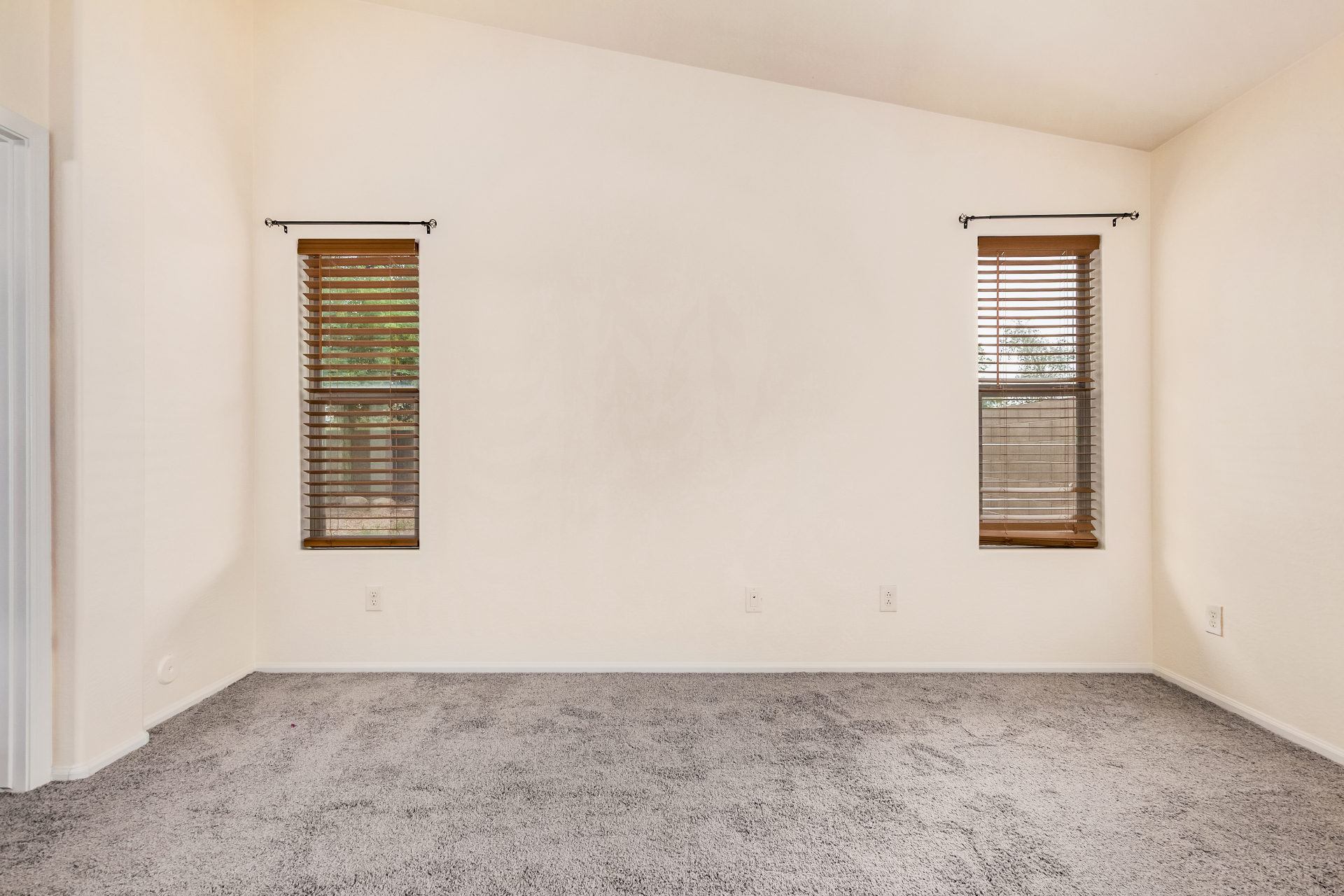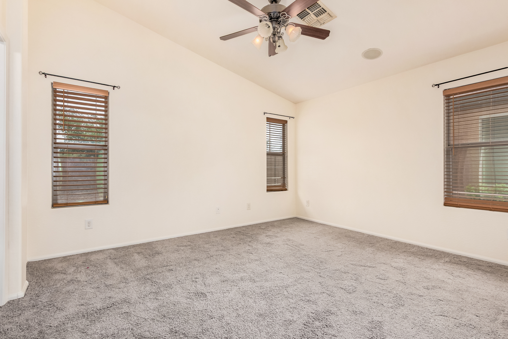 Welcome to Homestead North, where this charming single-level home awaits you! Providing 3 beds, 2 baths, 2-car garage, & a low-care landscape. inviting interior showcases vaulted ceilings, neutral palette, tons of natural light, tile & wood-look floors in common areas, and soft carpet in bedrooms. Featuring a formal living & dining room and a separate family room, this gem offers versatile spaces for gatherings. With surround sound, this gem is ready to elevate your entertainment experience. The kitchen has white matching appliances, track lighting, a pantry, ample wood cabinetry, and a breakfast nook. Enter the main bedroom to find a walk-in closet and an ensuite with dual sinks. The spacious backyard boasts shade trees and a covered patio for relaxing or enjoying BBQ.