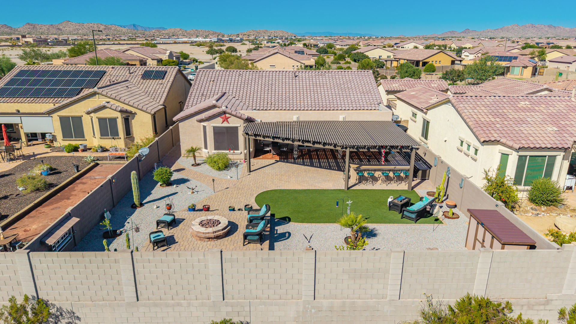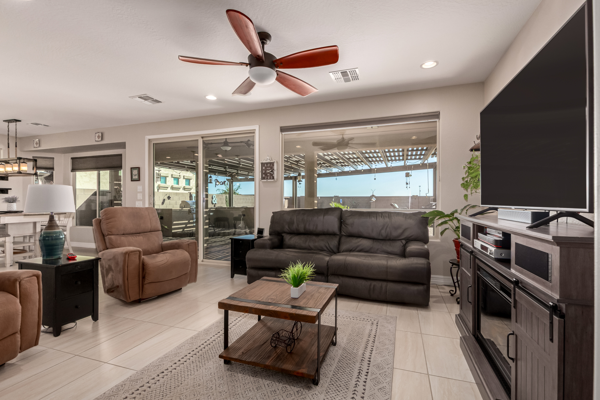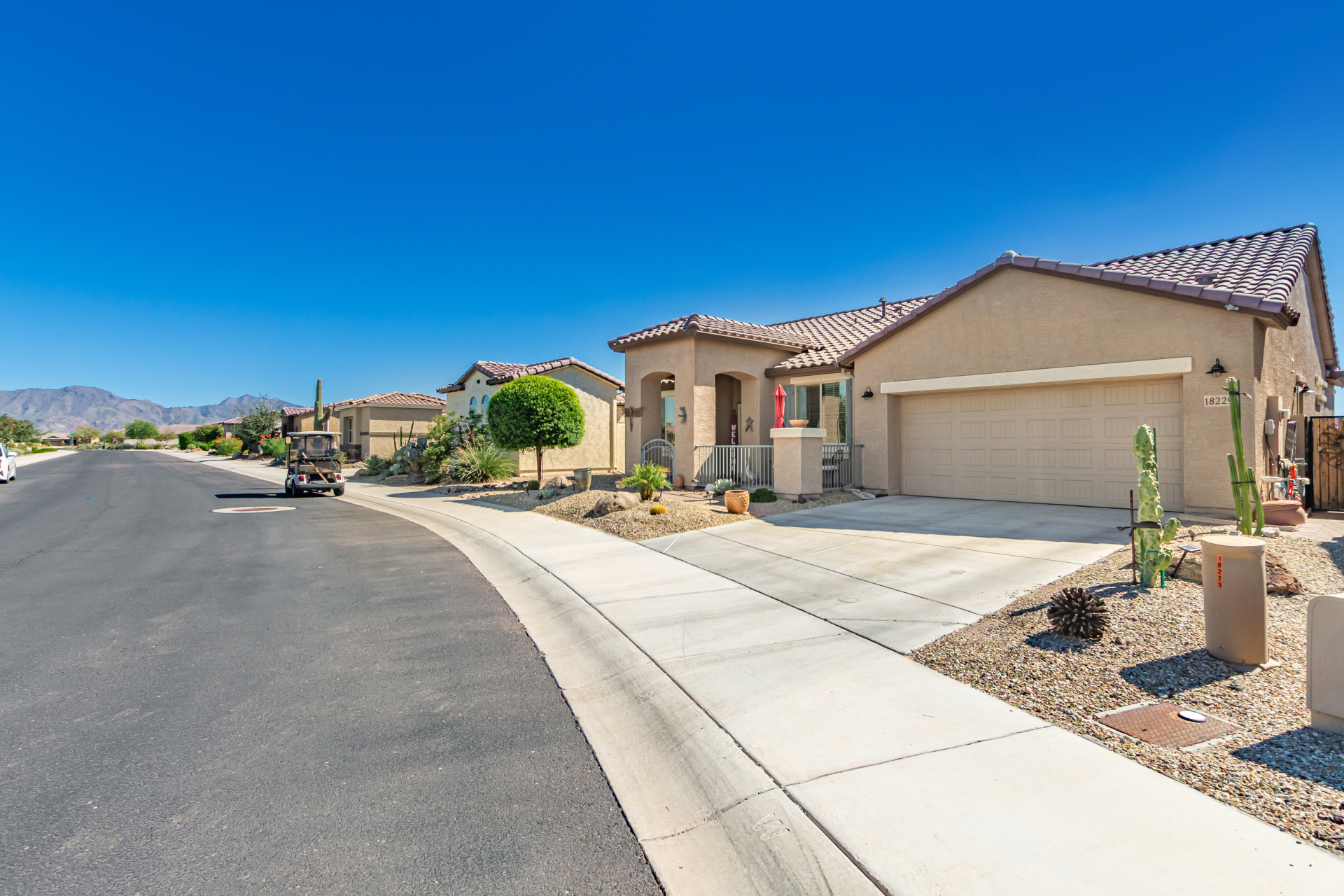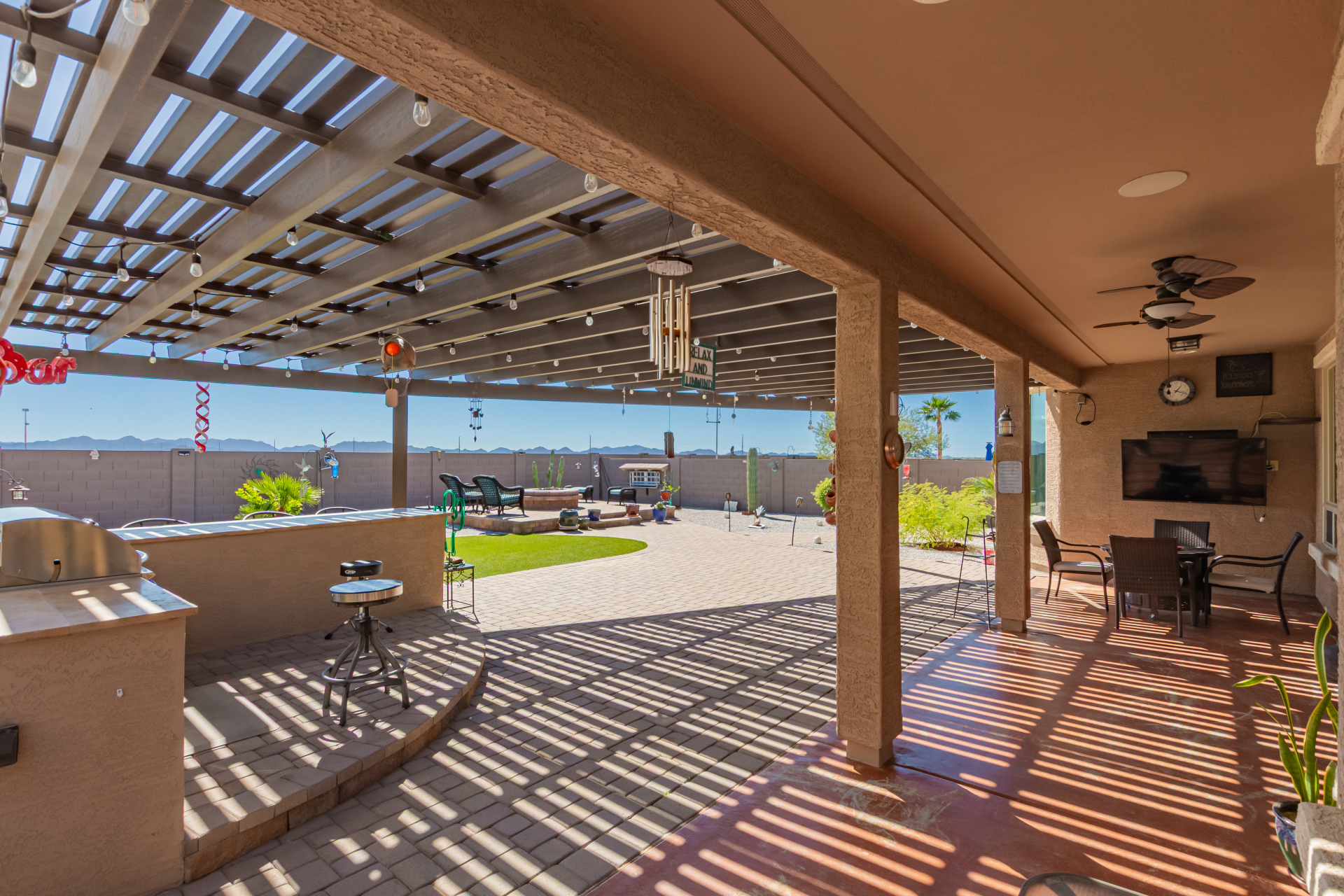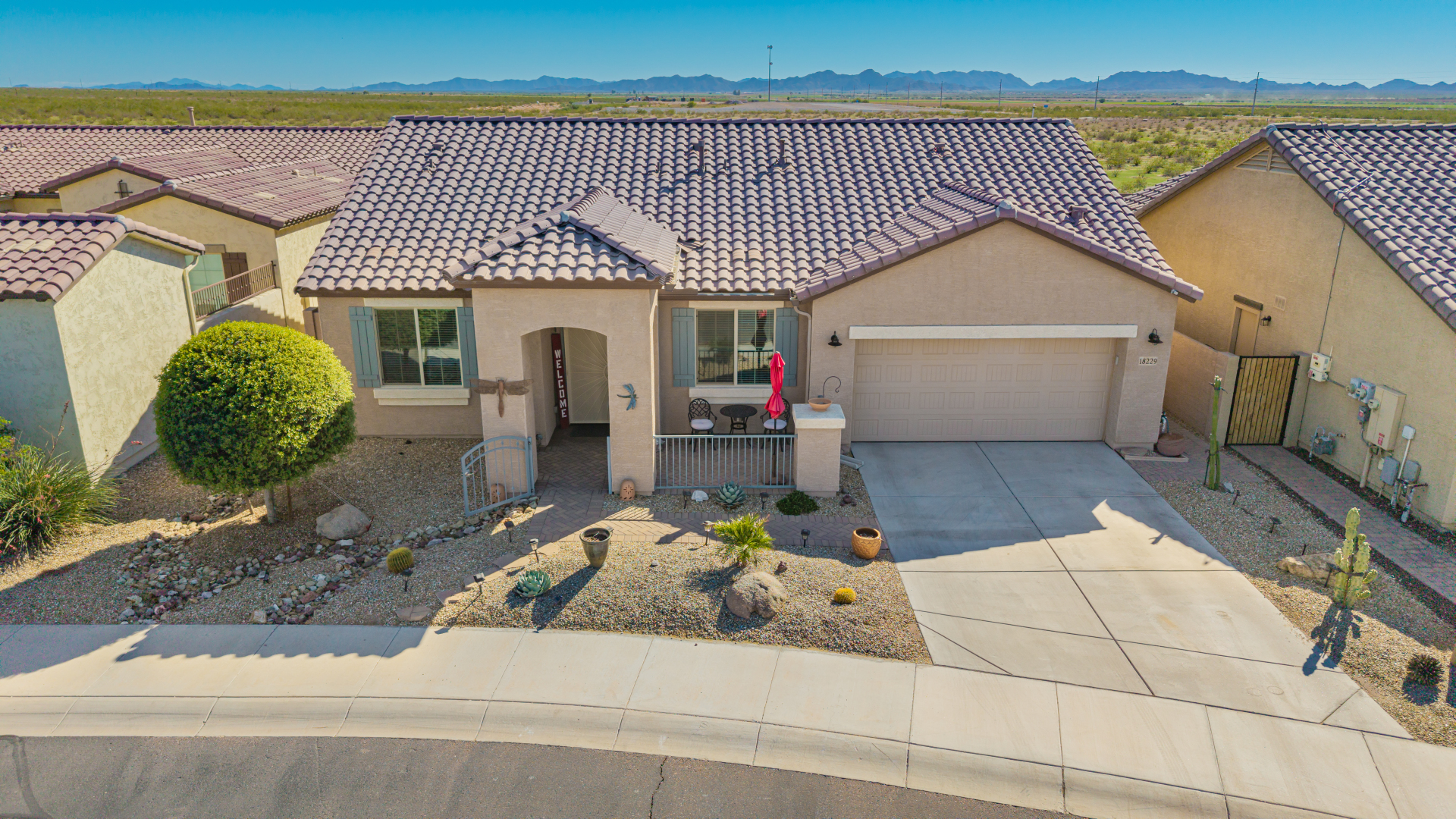 This adorable single-story home awaits you in the desirable adult community of CantaMia! A cozy front porch and a 2-car garage lead you to take a look inside. The interior showcases open and inviting living spaces with tile flooring, large windows for abundant natural light, sliding doors overlooking the patio, and neutral tones. The impeccable kitchen awaits your culinary adventures, complete with ample cabinetry, granite countertops, tile backsplash, stainless steel appliances, and an island with a breakfast bar perfect for entertaining. The main suite promises a good night's sleep and hosts a bathroom with double sinks and a walk-in closet for easy organization. Enjoy outdoor living in the backyard, including an attached pergola, well-laid pavers, a built-in BBQ, a grassy area.