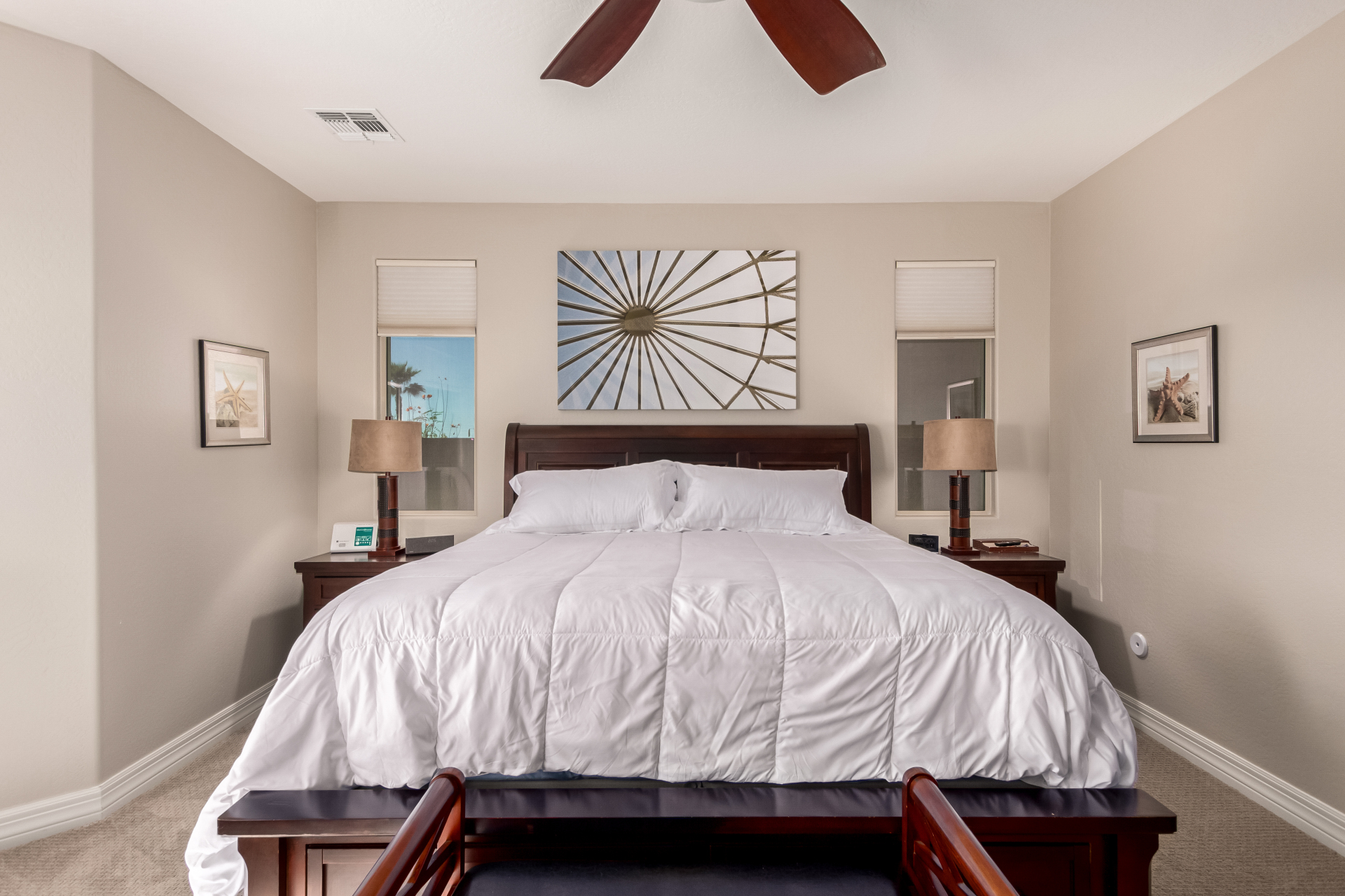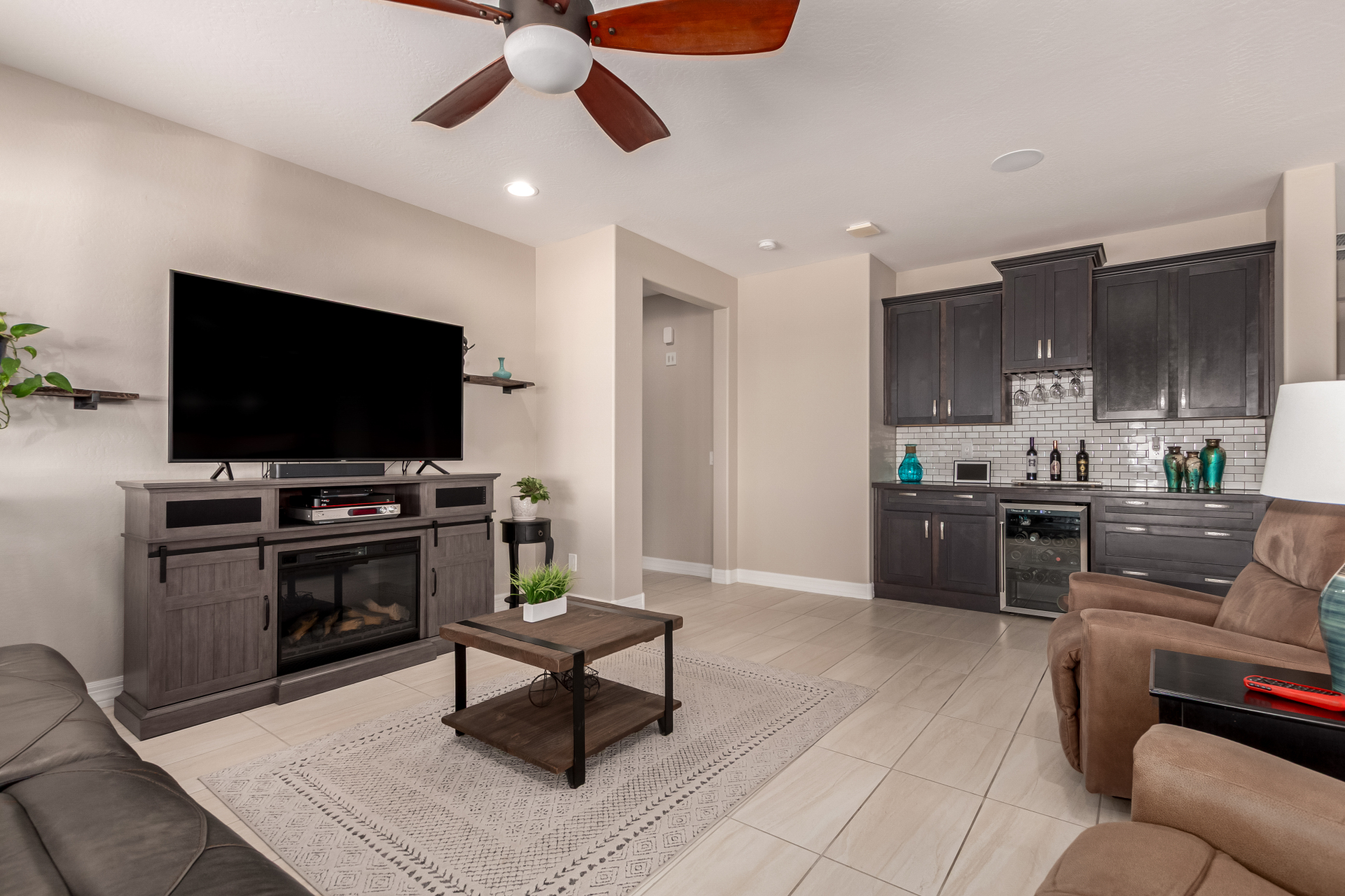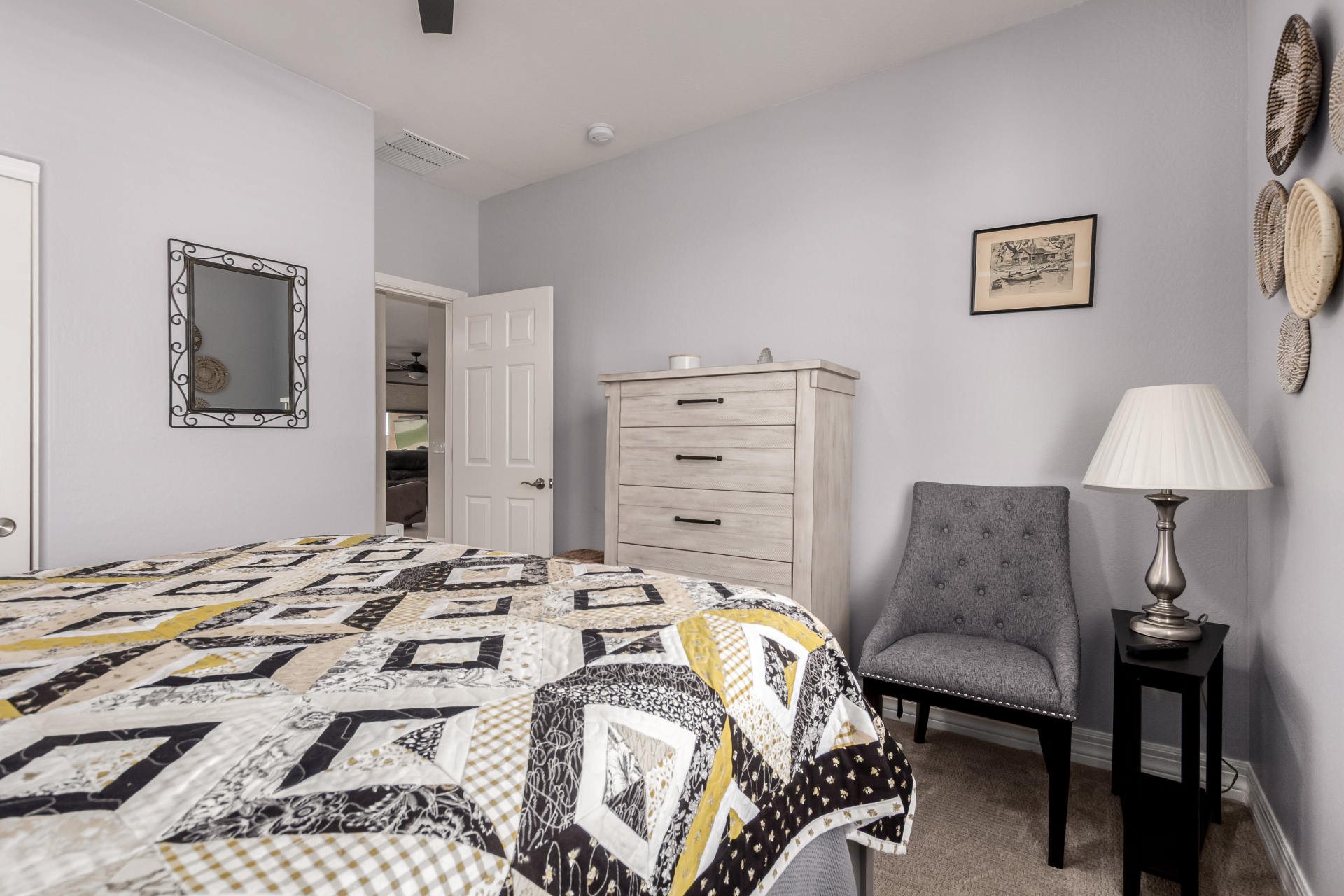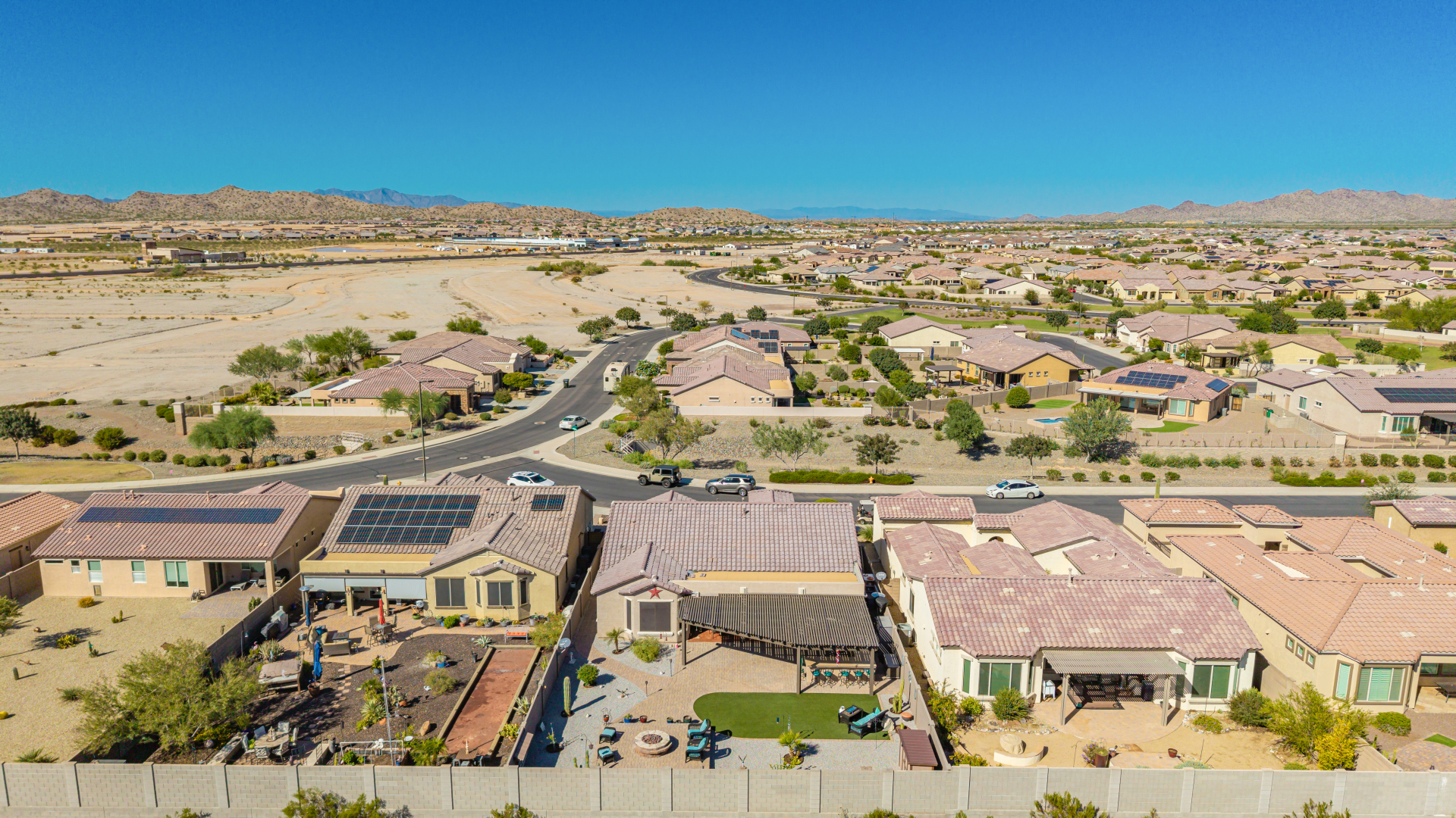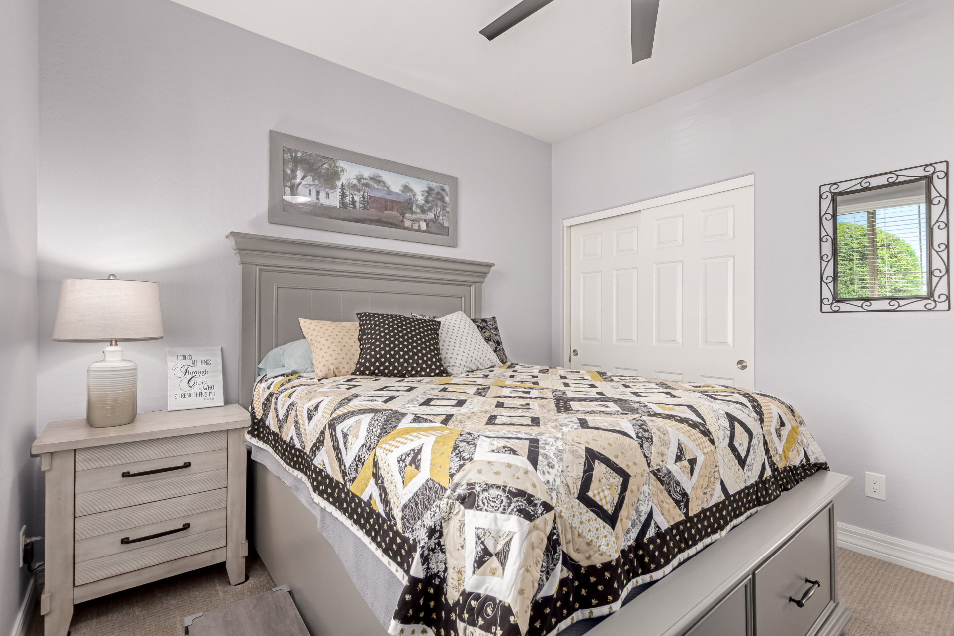 This adorable single-story home awaits you in the desirable adult community of CantaMia! A cozy front porch and a 2-car garage lead you to take a look inside. The interior showcases open and inviting living spaces with tile flooring, large windows for abundant natural light, sliding doors overlooking the patio, and neutral tones. The impeccable kitchen awaits your culinary adventures, complete with ample cabinetry, granite countertops, tile backsplash, stainless steel appliances, and an island with a breakfast bar perfect for entertaining. The main suite promises a good night's sleep and hosts a bathroom with double sinks and a walk-in closet for easy organization. Enjoy outdoor living in the backyard, including an attached pergola, well-laid pavers, a built-in BBQ, a grassy area.