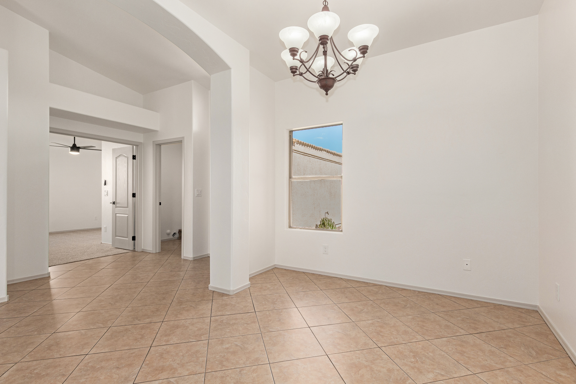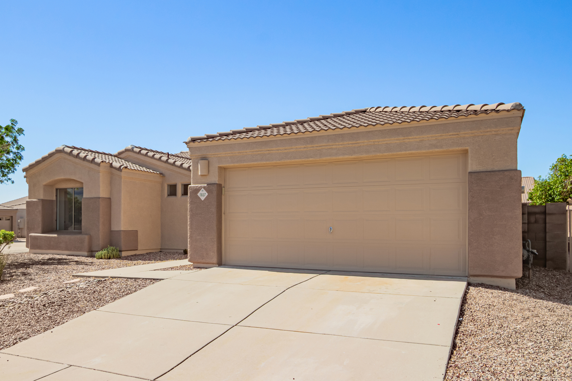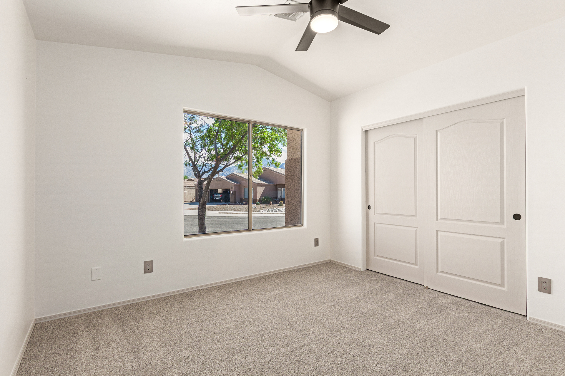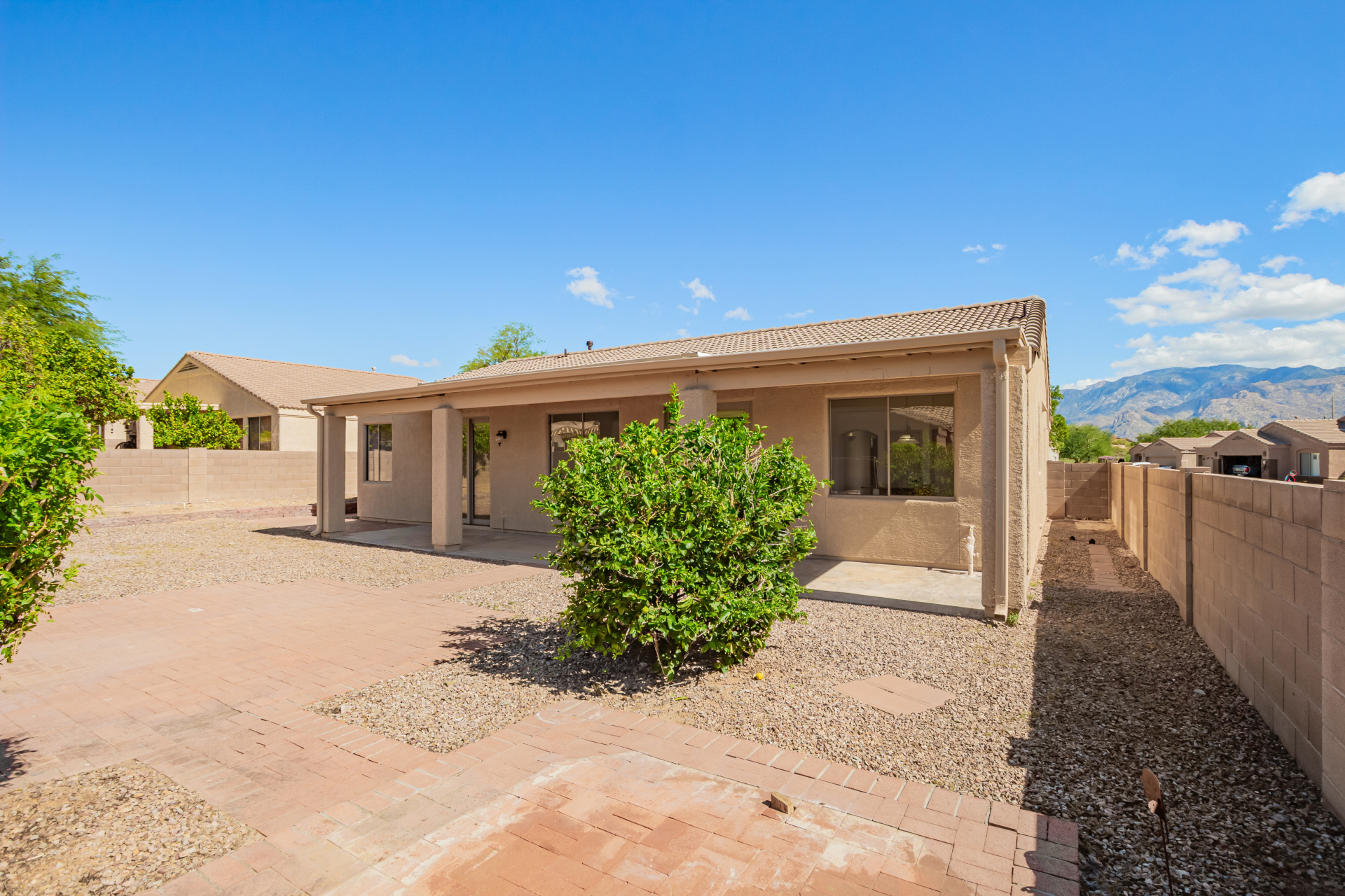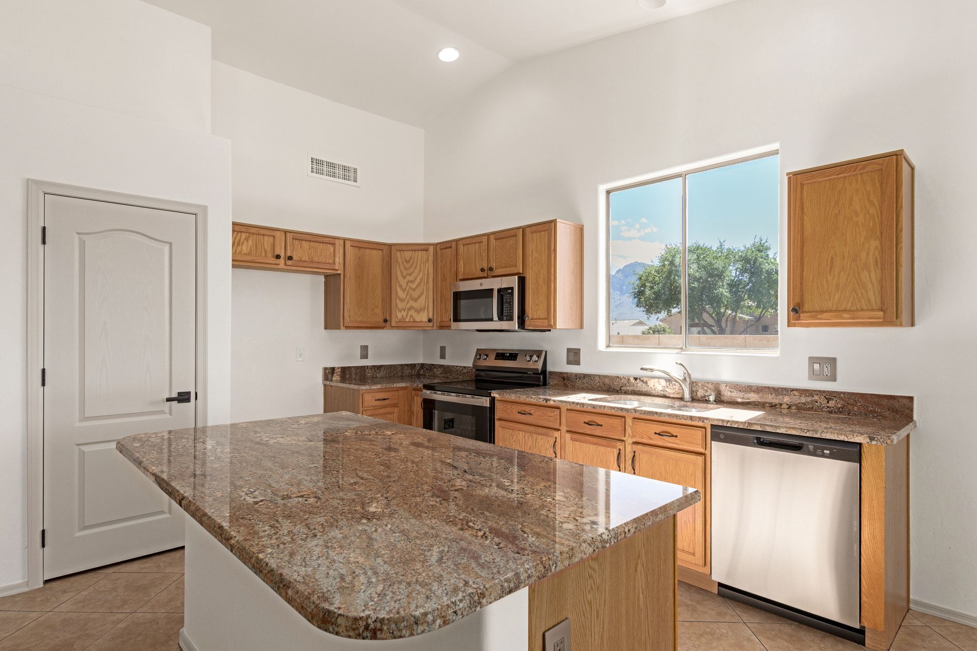 Gorgeous single-story home with spectacular Pusch Ridge Mountain Views! Sitting on a desirable corner lot, this gem features 4 bedrooms, 2 bathrooms & a 2-car garage w/ new epoxy flooring. Inside, discover a generous living areas w/tile flooring, soaring vaulted ceilings, archways, & neutral tones. The impeccable kitchen awaits your culinary adventures, equipped w/ cabinetry, countertops, built-in pantry, SS appliances, an island w/breakfast bar, & breakfast nook. The airy main bedroom boasts carpet for added comfort, backyard access, full ensuite w/ dual sinks, walk-in closet, garden tub, & walk-in shower. The backyard hosts a cozy covered patio ideal for unwinding after a long day, well-laid pavers, & low-maintenance landscape, great for entertaining & relaxing! A MUST see! Agent/Owner