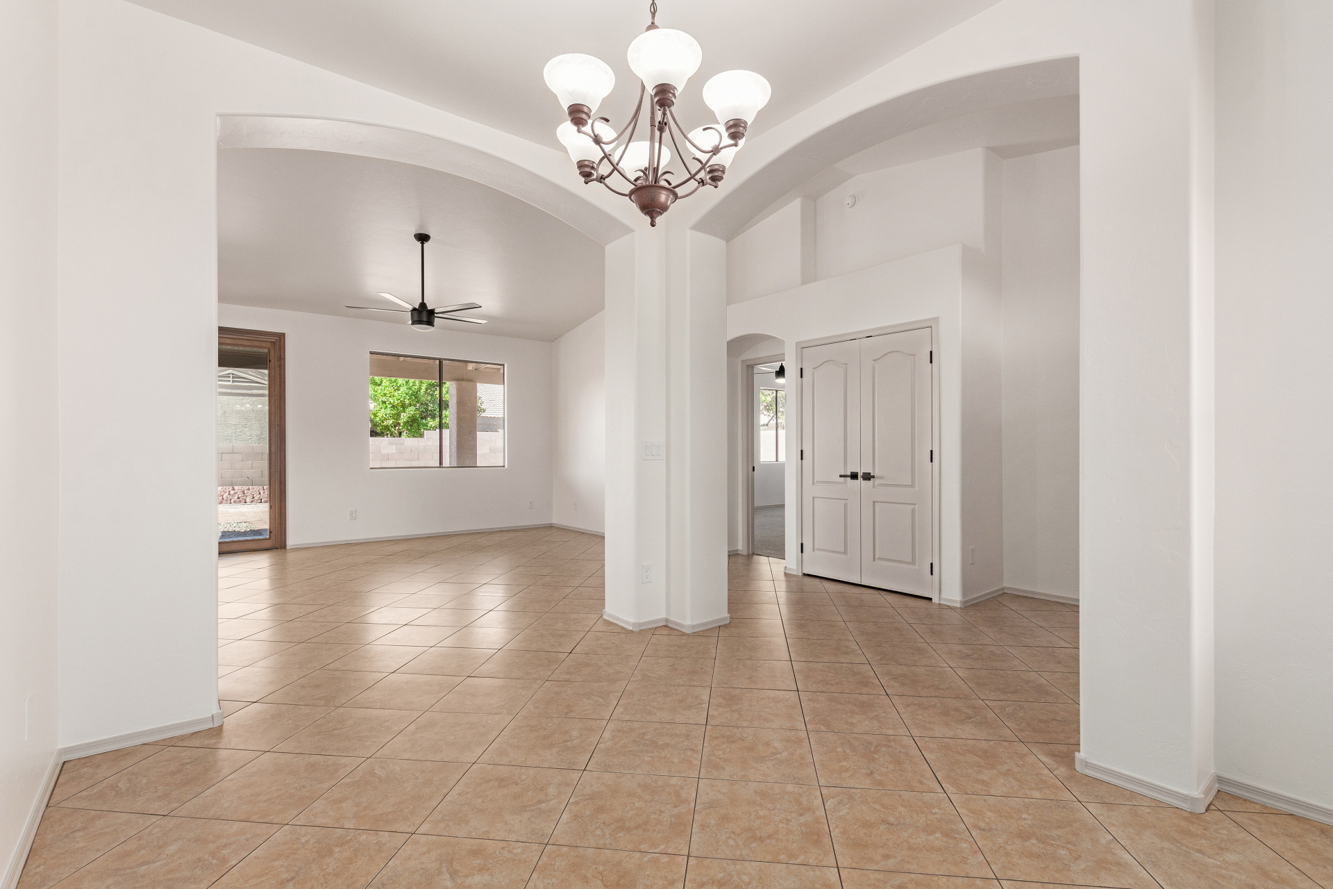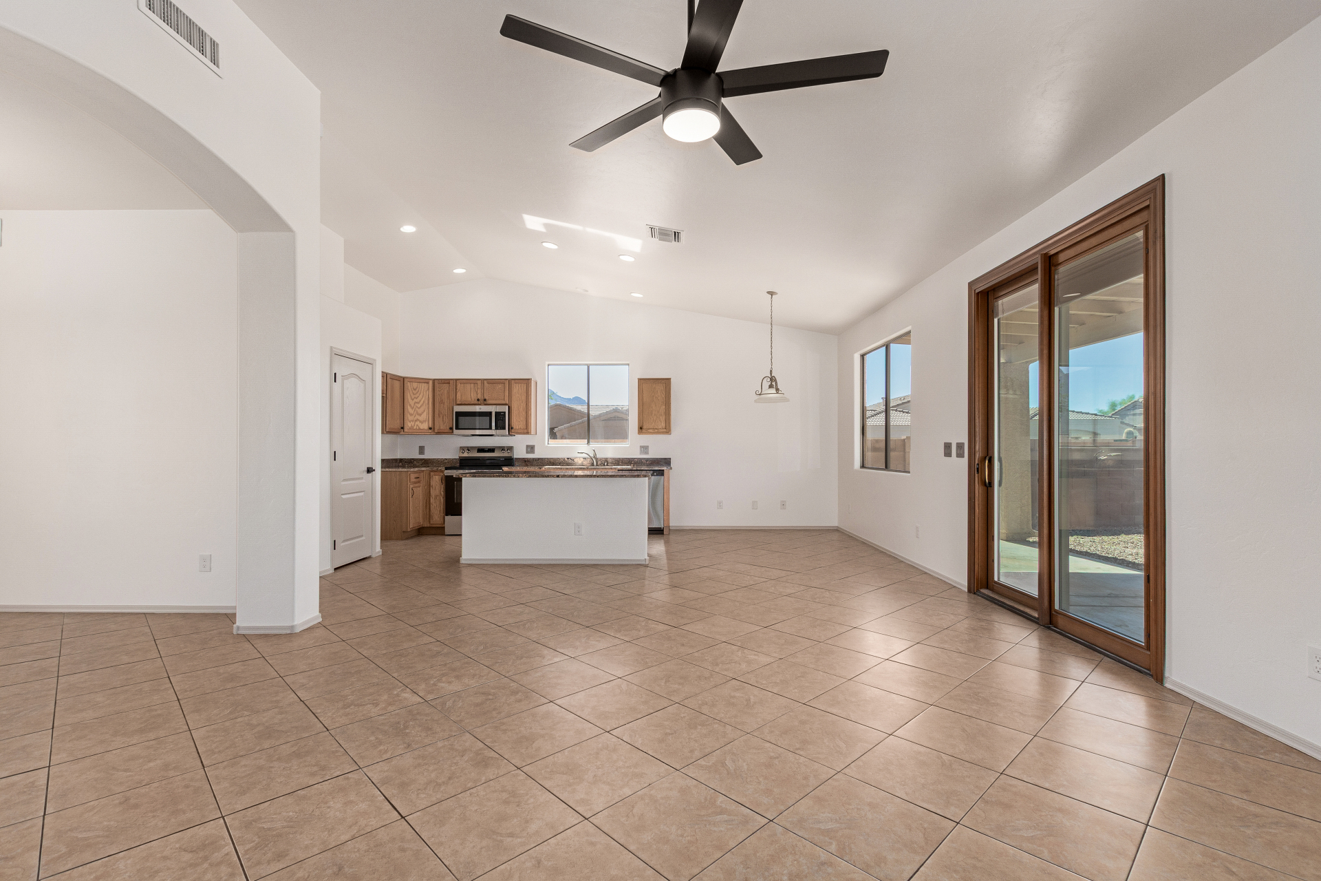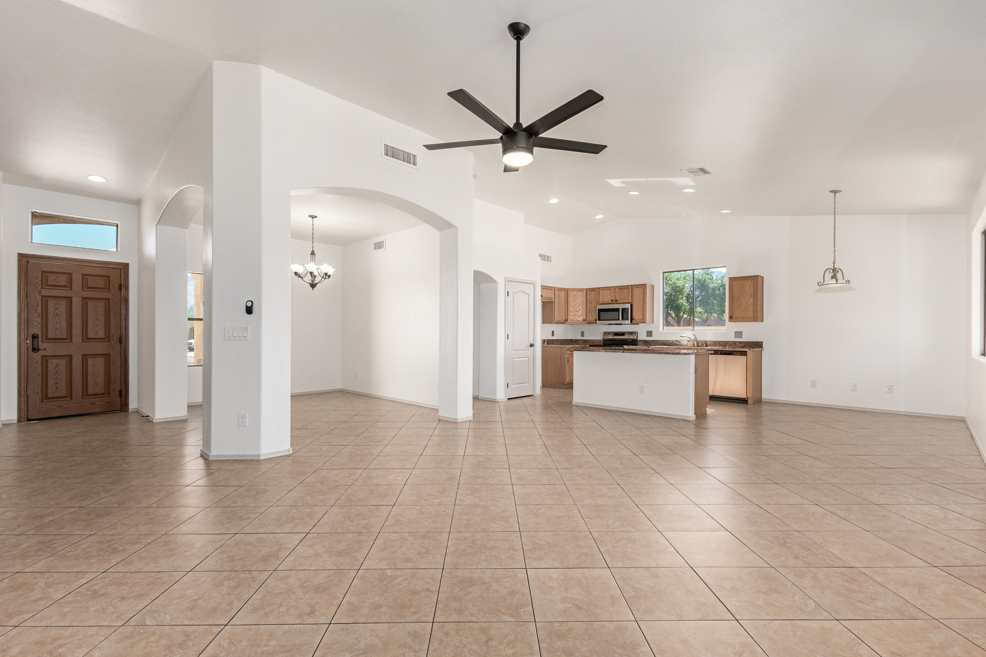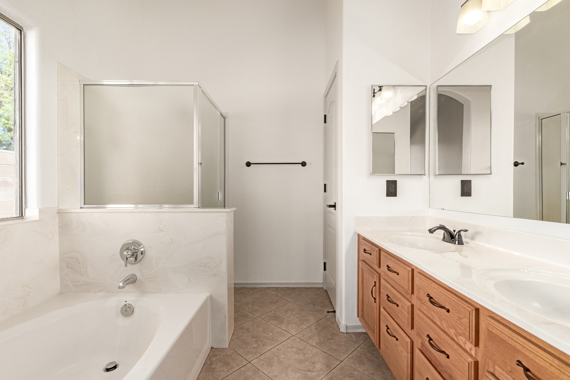 Gorgeous single-story home with spectacular Pusch Ridge Mountain Views! Sitting on a desirable corner lot, this gem features 4 bedrooms, 2 bathrooms & a 2-car garage w/ new epoxy flooring. Inside, discover a generous living areas w/tile flooring, soaring vaulted ceilings, archways, & neutral tones. The impeccable kitchen awaits your culinary adventures, equipped w/ cabinetry, countertops, built-in pantry, SS appliances, an island w/breakfast bar, & breakfast nook. The airy main bedroom boasts carpet for added comfort, backyard access, full ensuite w/ dual sinks, walk-in closet, garden tub, & walk-in shower. The backyard hosts a cozy covered patio ideal for unwinding after a long day, well-laid pavers, & low-maintenance landscape, great for entertaining & relaxing! A MUST see! Agent/Owner