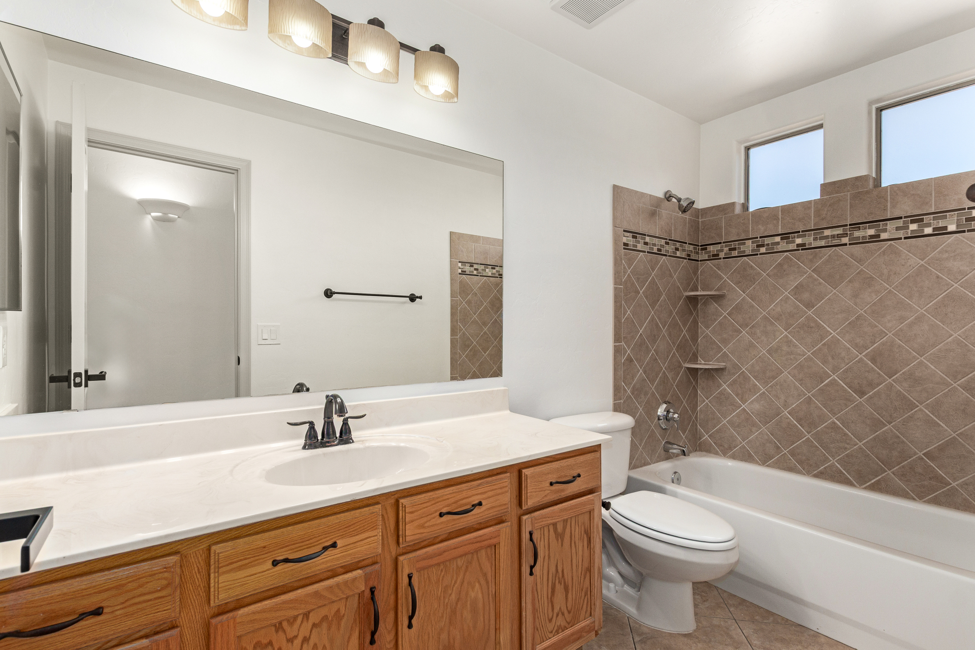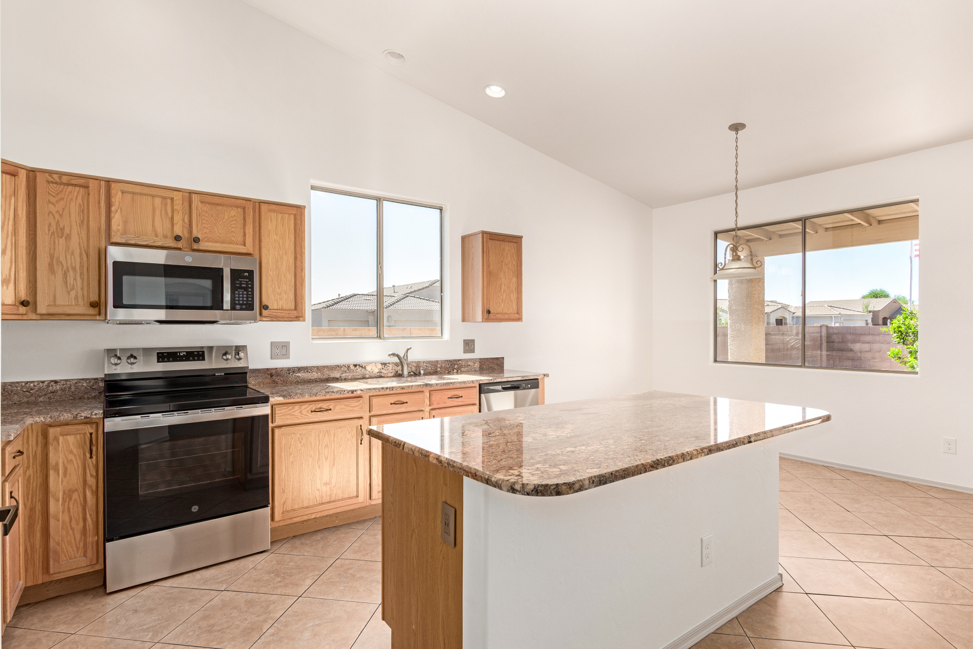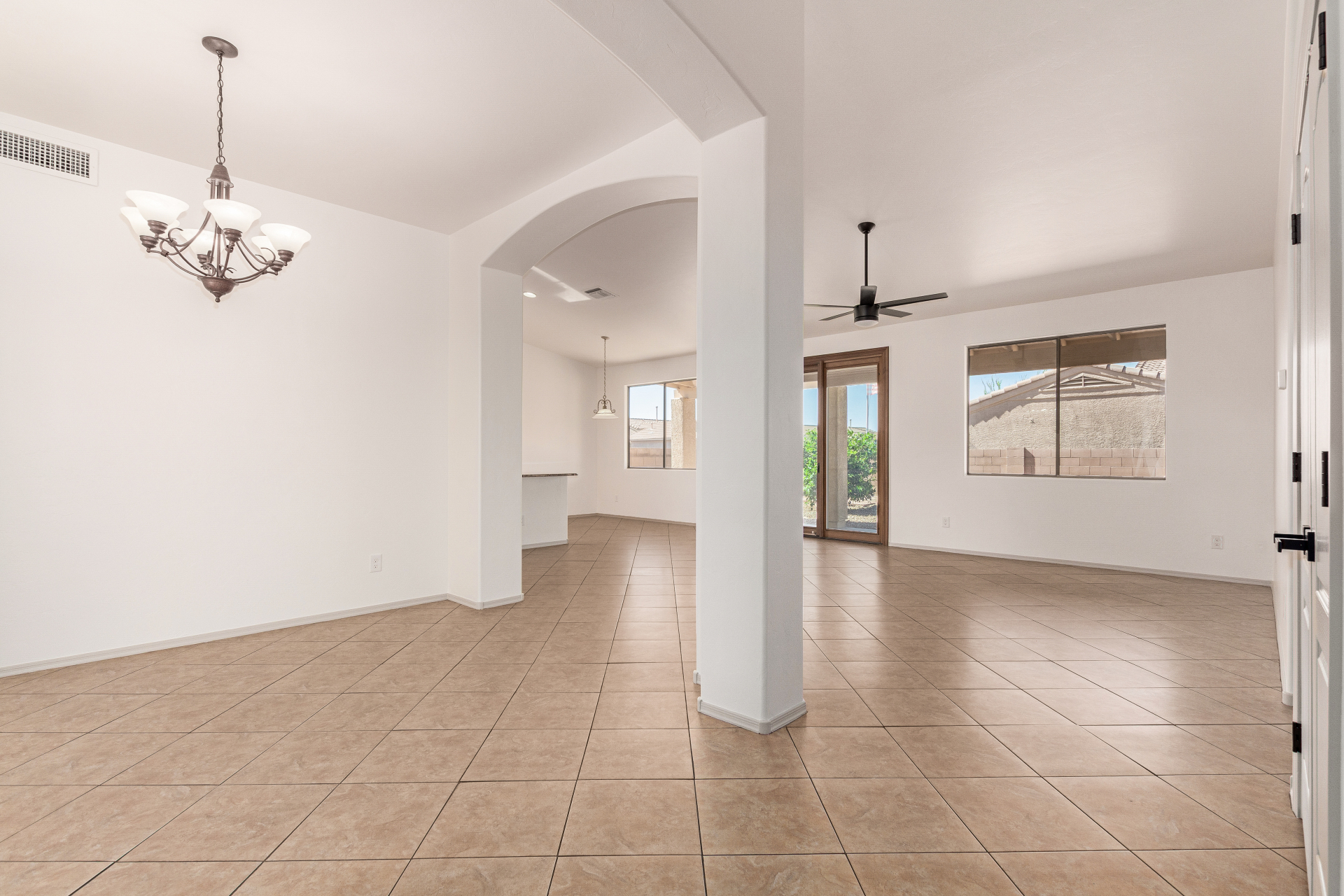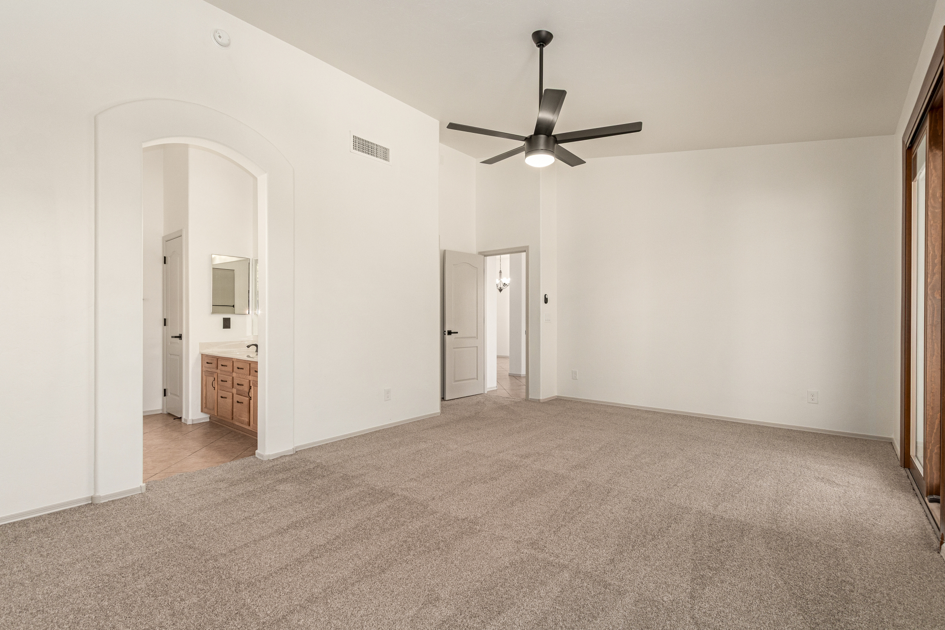 Gorgeous single-story home with spectacular Pusch Ridge Mountain Views! Sitting on a desirable corner lot, this gem features 4 bedrooms, 2 bathrooms & a 2-car garage w/ new epoxy flooring. Inside, discover a generous living areas w/tile flooring, soaring vaulted ceilings, archways, & neutral tones. The impeccable kitchen awaits your culinary adventures, equipped w/ cabinetry, countertops, built-in pantry, SS appliances, an island w/breakfast bar, & breakfast nook. The airy main bedroom boasts carpet for added comfort, backyard access, full ensuite w/ dual sinks, walk-in closet, garden tub, & walk-in shower. The backyard hosts a cozy covered patio ideal for unwinding after a long day, well-laid pavers, & low-maintenance landscape, great for entertaining & relaxing! A MUST see! Agent/Owner