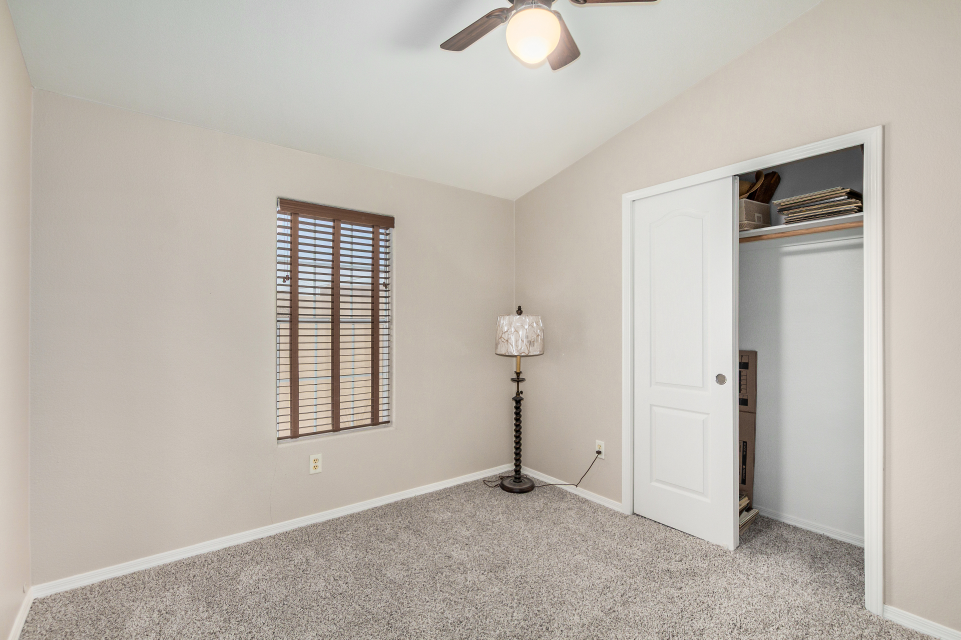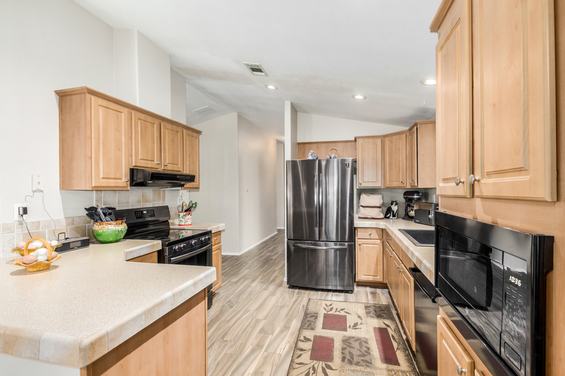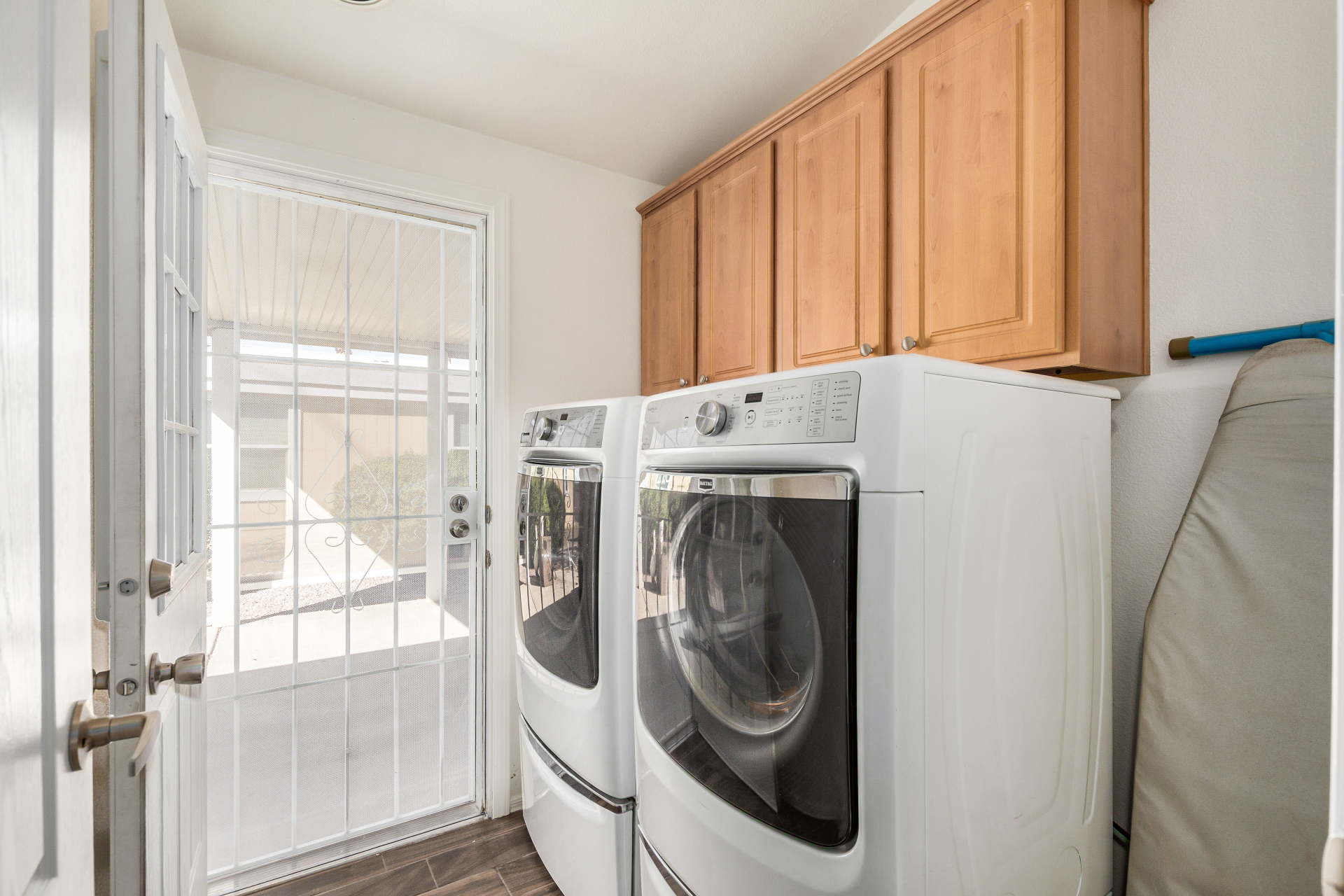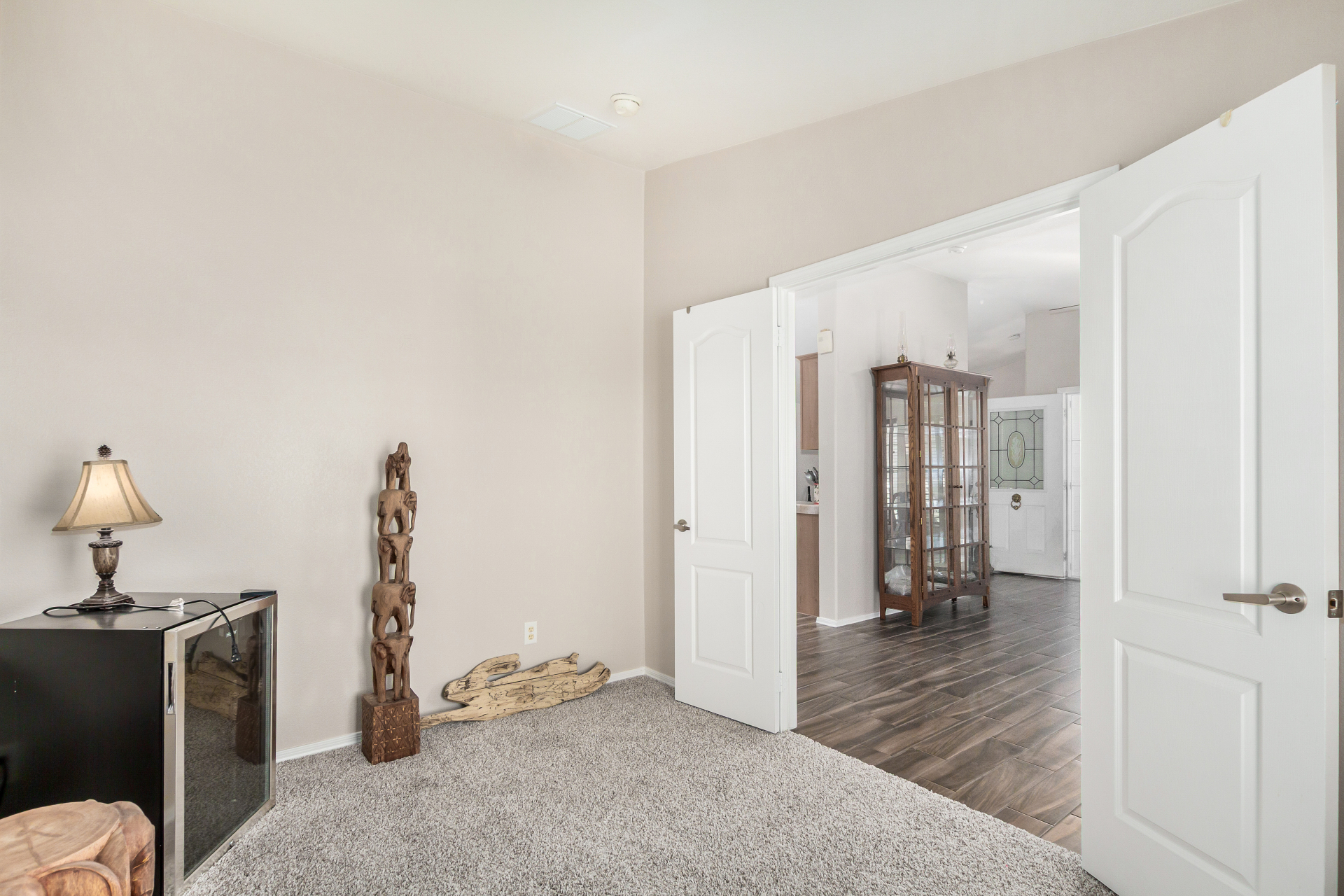 Gorgeous and meticulously cared for 2 bed, 2 bath + DEN with doors, all NEW interior paint, NEW carpet in all the bedrooms, LVP & tile flooring, separate breakfast room, faux wood blinds throughout, kitchen recessed lighting, NEWER privacy fencing with only 1 neighbor, rain gutters & mature trees. Sunshades throughout including the carport. Storage shed. Separate RV storage available. 1 year Old Republic Warranty provided. Kitchen table, hutch, silverware and glassware to remain with home. Water & trash included in lot rent. Community pool, clubhouse and laundry.