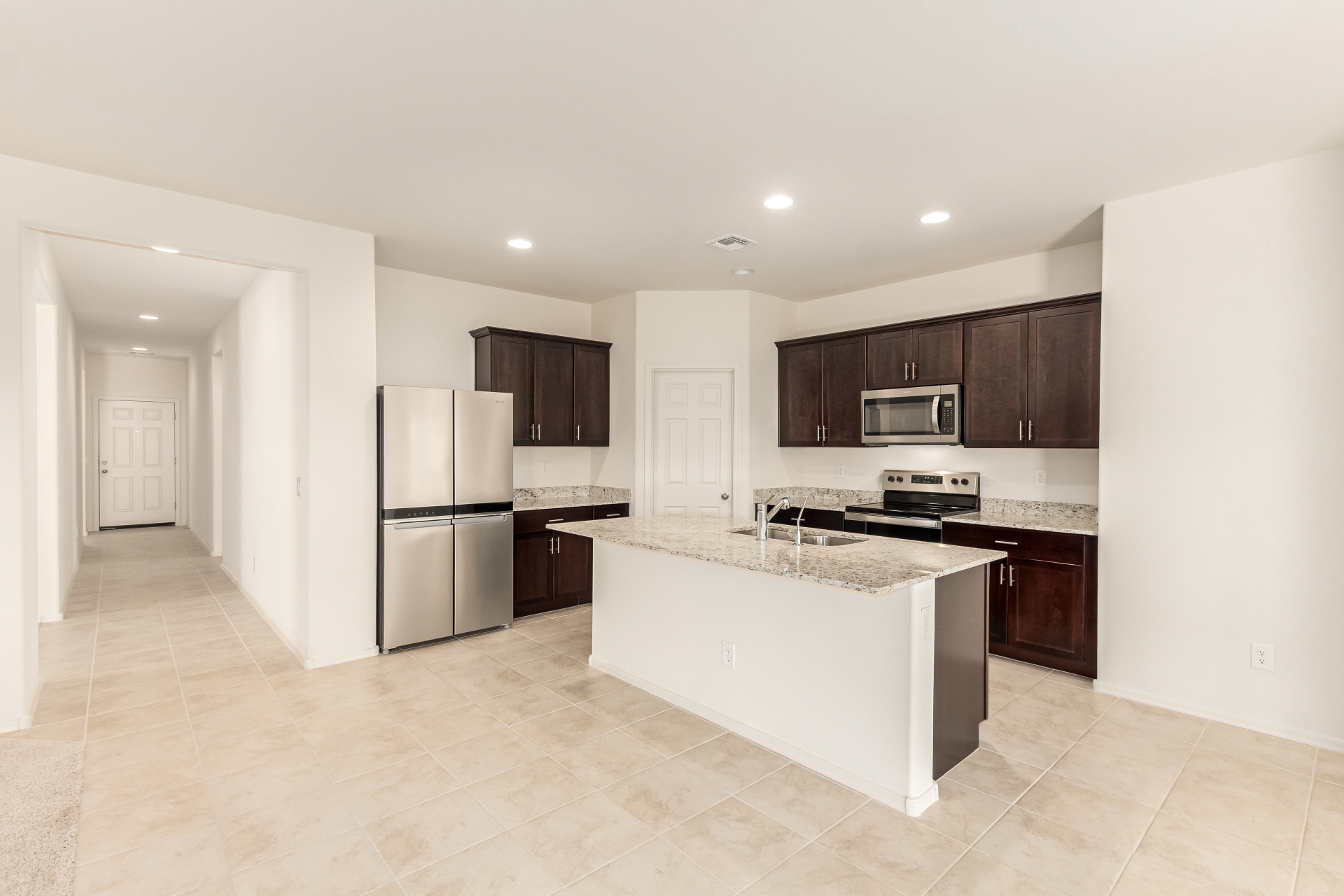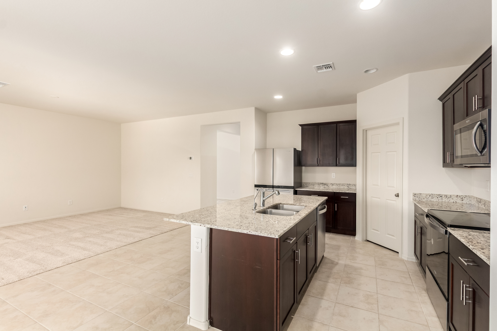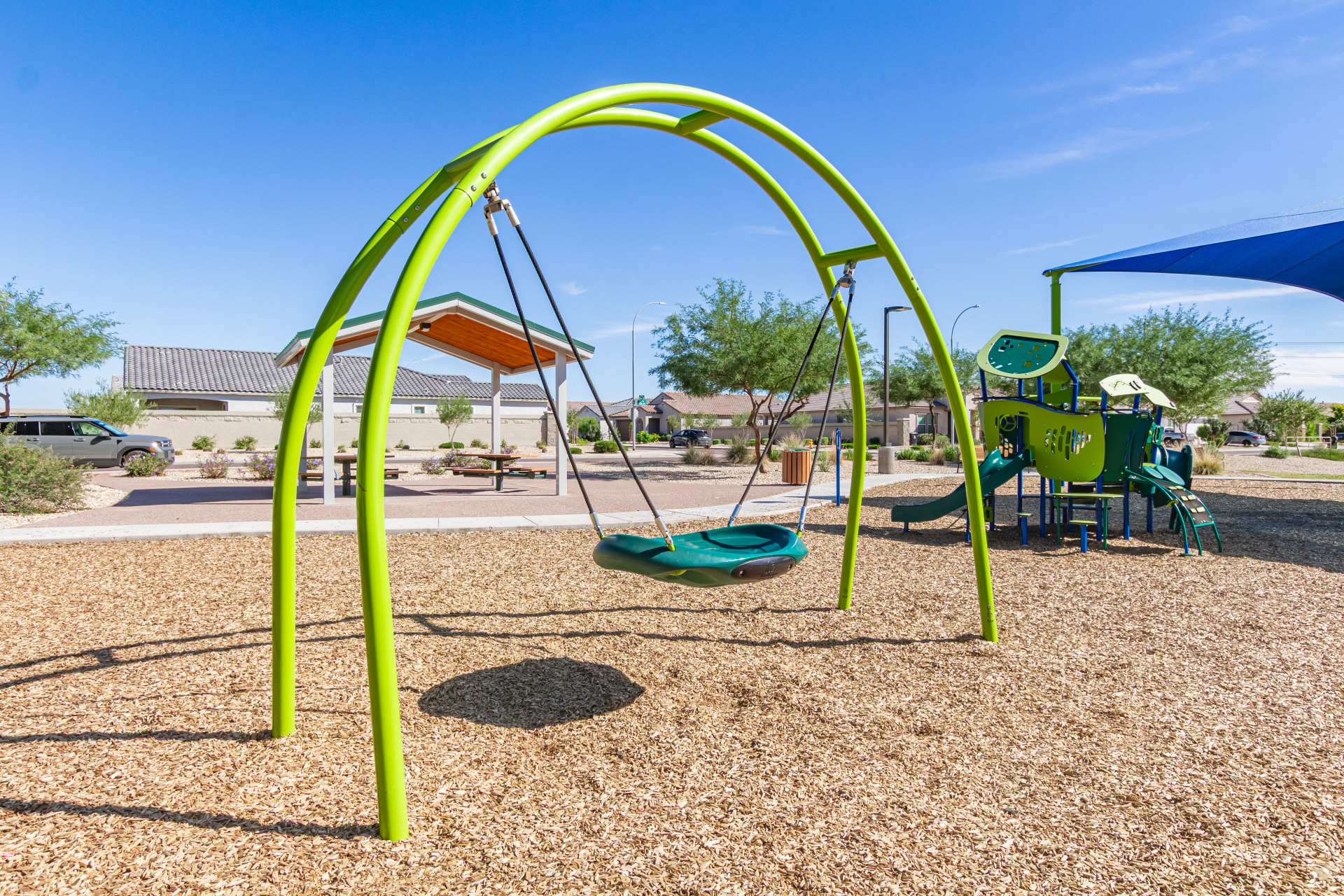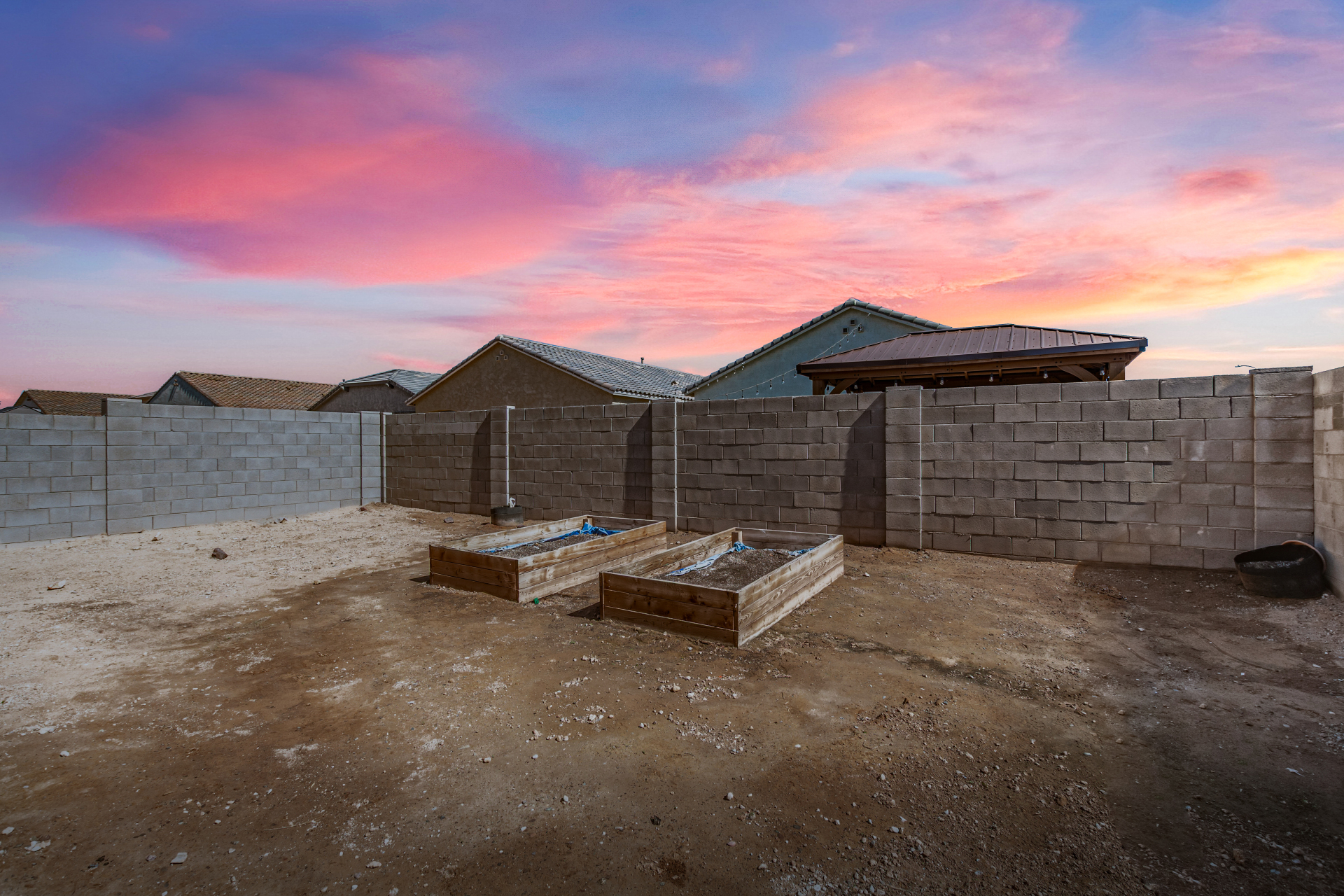 Gorgeous 2 Yr old home-barely lived in! Priced 10's of $1000's below new builds offered in the area! Why buy new? Home is on a quiet street,corner lot w/ lush parks/playgrounds/walking paths blocks away! Spacious MODERN home offers oversized neutral tile in main living areas/halls, granite counters, stainless applncs, tall espresso cabinets., tankless H2O heater. Wide-open BIG Greatroom w/large Dining, vast Kitchen w/4-stool island seating, giant Walk In Pantry, Family Rm, & Office. Generous Master Bdrm w/Bath offers oversized vanity & shower + huge Walk In Closet. Super-split floorplan w/Primary Suite in east wing, 2 Guest Bdrms in west wing & 3rd Guest Bdrm in the north wing. Covered back patio, raised garden beds & 2 car garage. Easy Living! Some builder warranties may still convey to Buyer. Beautiful newer community offering mountain views! Newer shopping, restaurants & Loop 202 within less than 6 miles away!