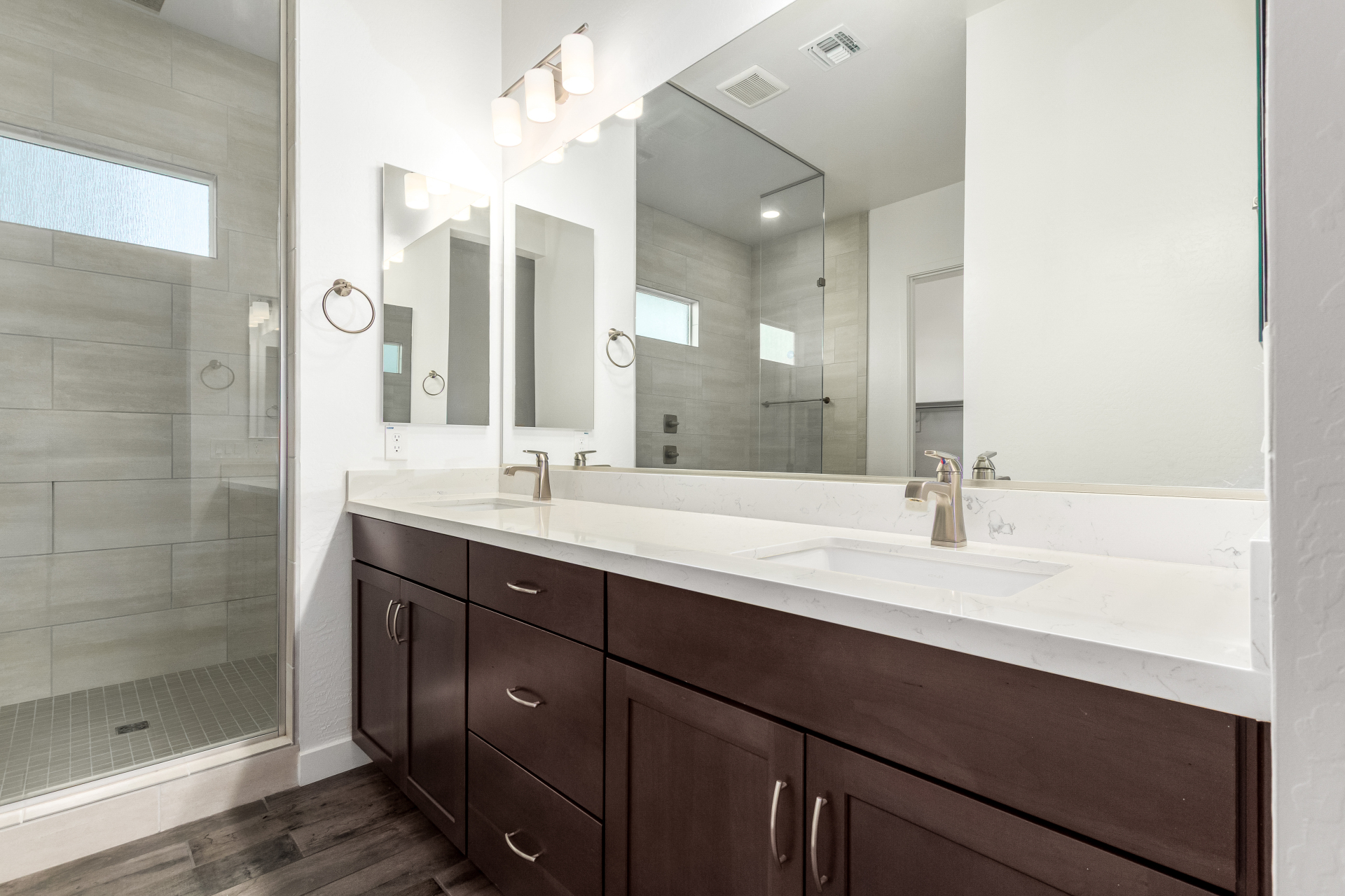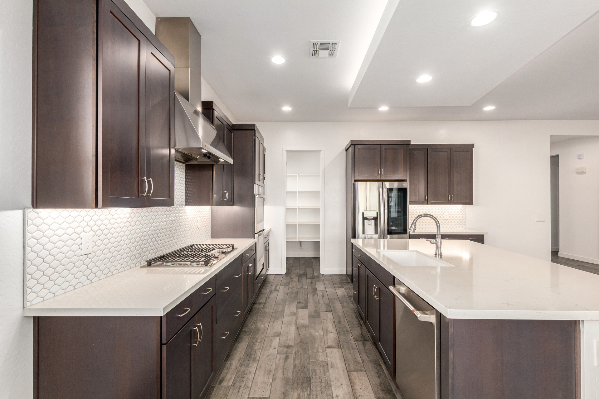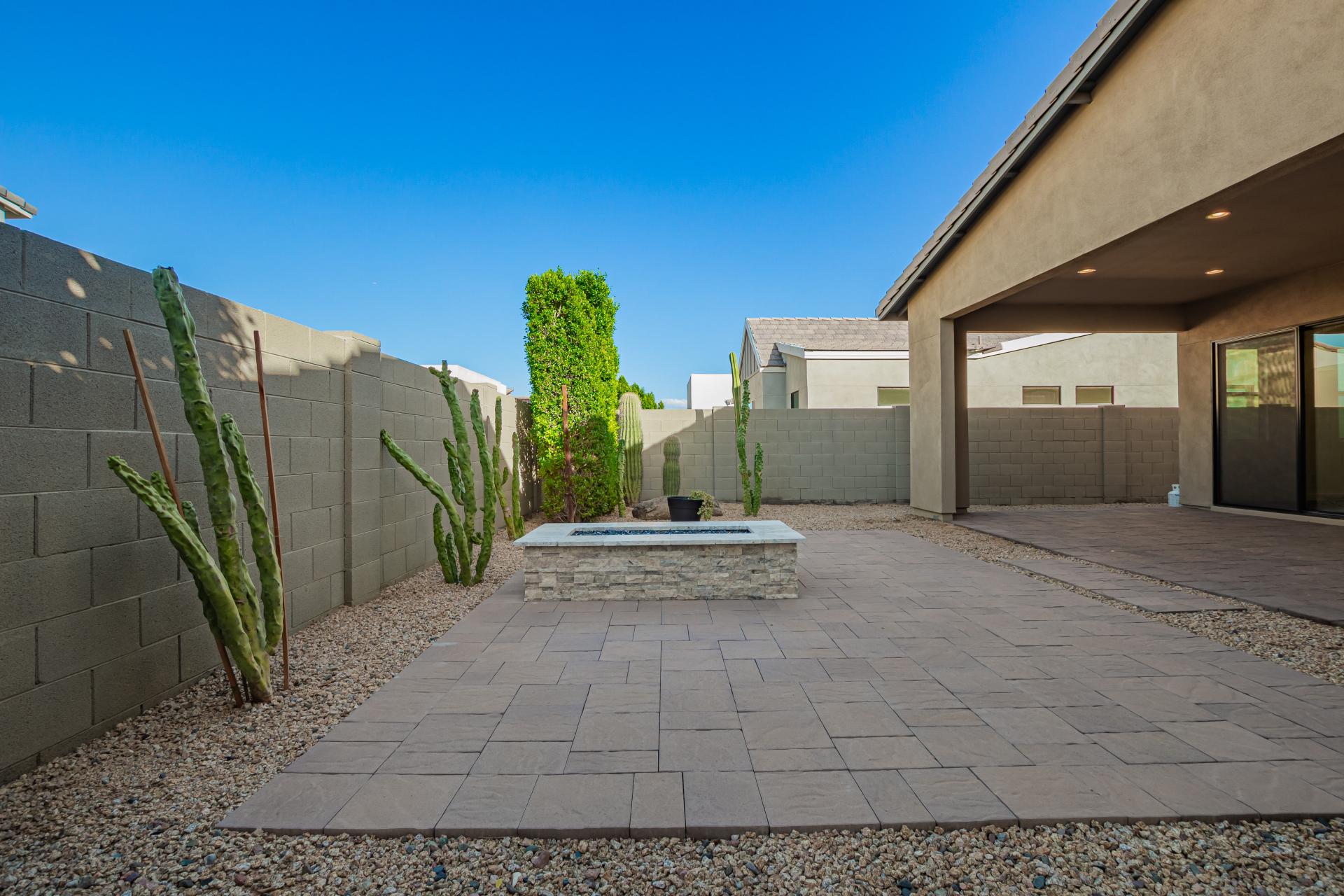 Experience the style and convenience of this gorgeous single-level home! The stunning contemporary facade, 3-car garage, and beautifully manicured landscape make this gem sure to impress! Inside, you'll be delighted with the bright and open layout, featuring wood-look flooring, a surround sound system perfect for entertaining, and neutral tones throughout. The gourmet kitchen boasts espresso cabinets, tile backsplash, quartz countertops, stainless steel appliances, a walk-in pantry & an island for those casual conversations over quick bites. The serene main suite hosts a walk-in closet and a full ensuite with dual sinks. You'll love the versatile den and bonus room, perfect for a craft space or an office. The backyard is complete with a covered patio where you can unwind with your favorite drink, well-laid pavers, and a fire pit, to gather around and share stories with your loved ones. What's not to love? Make it yours!