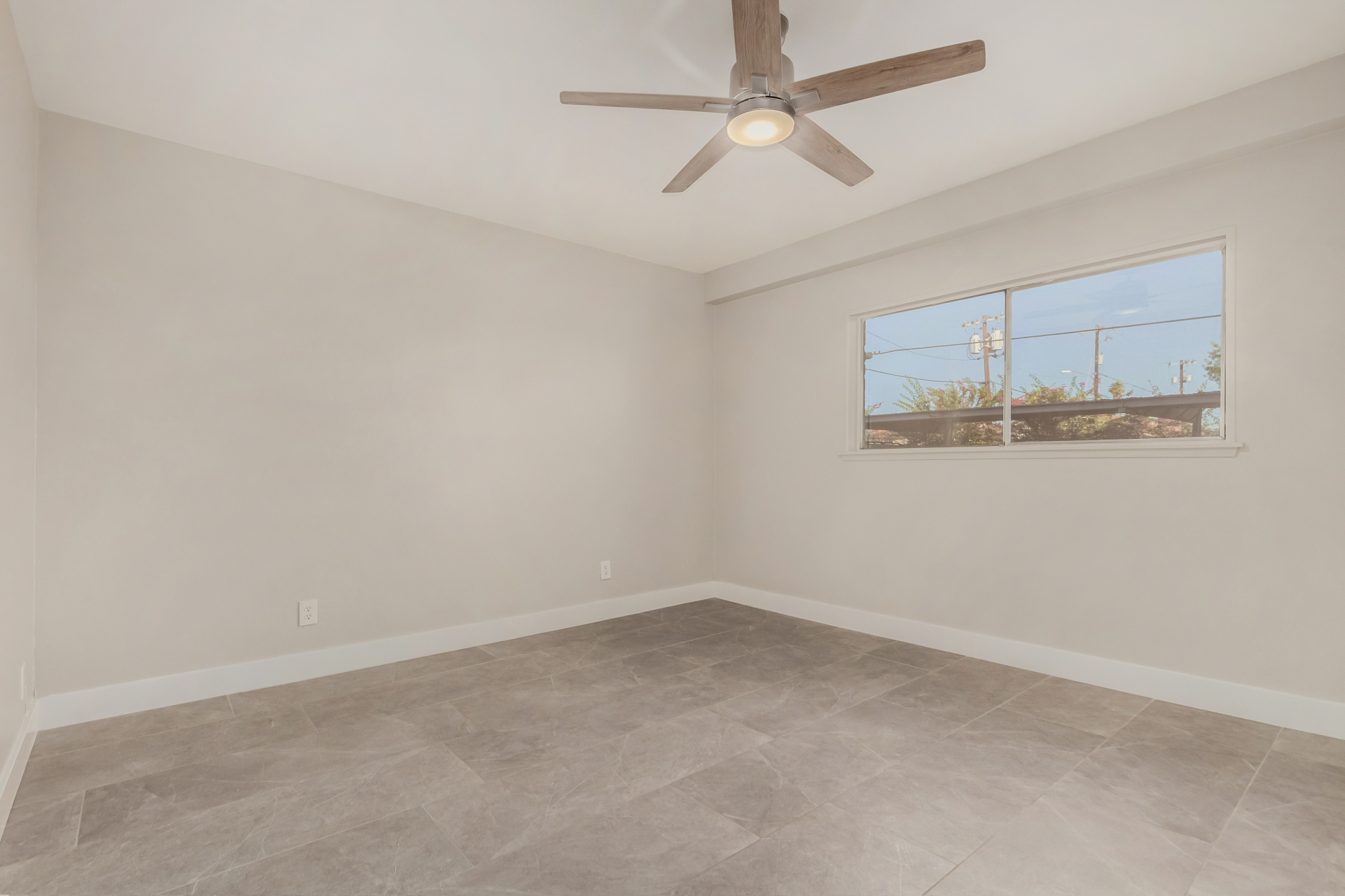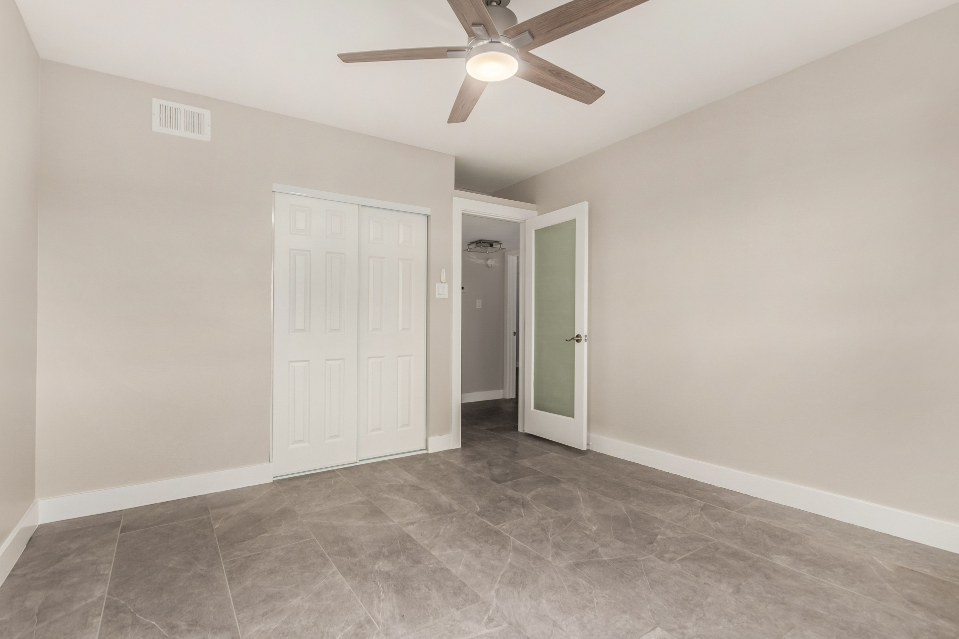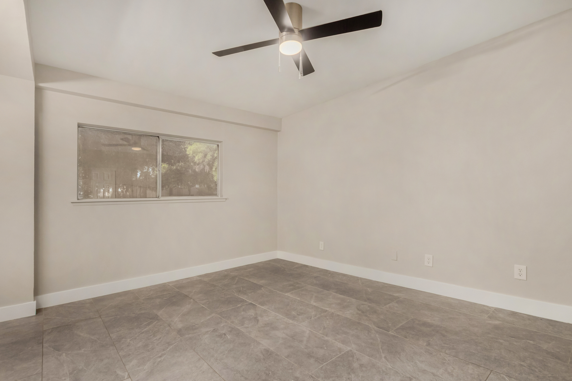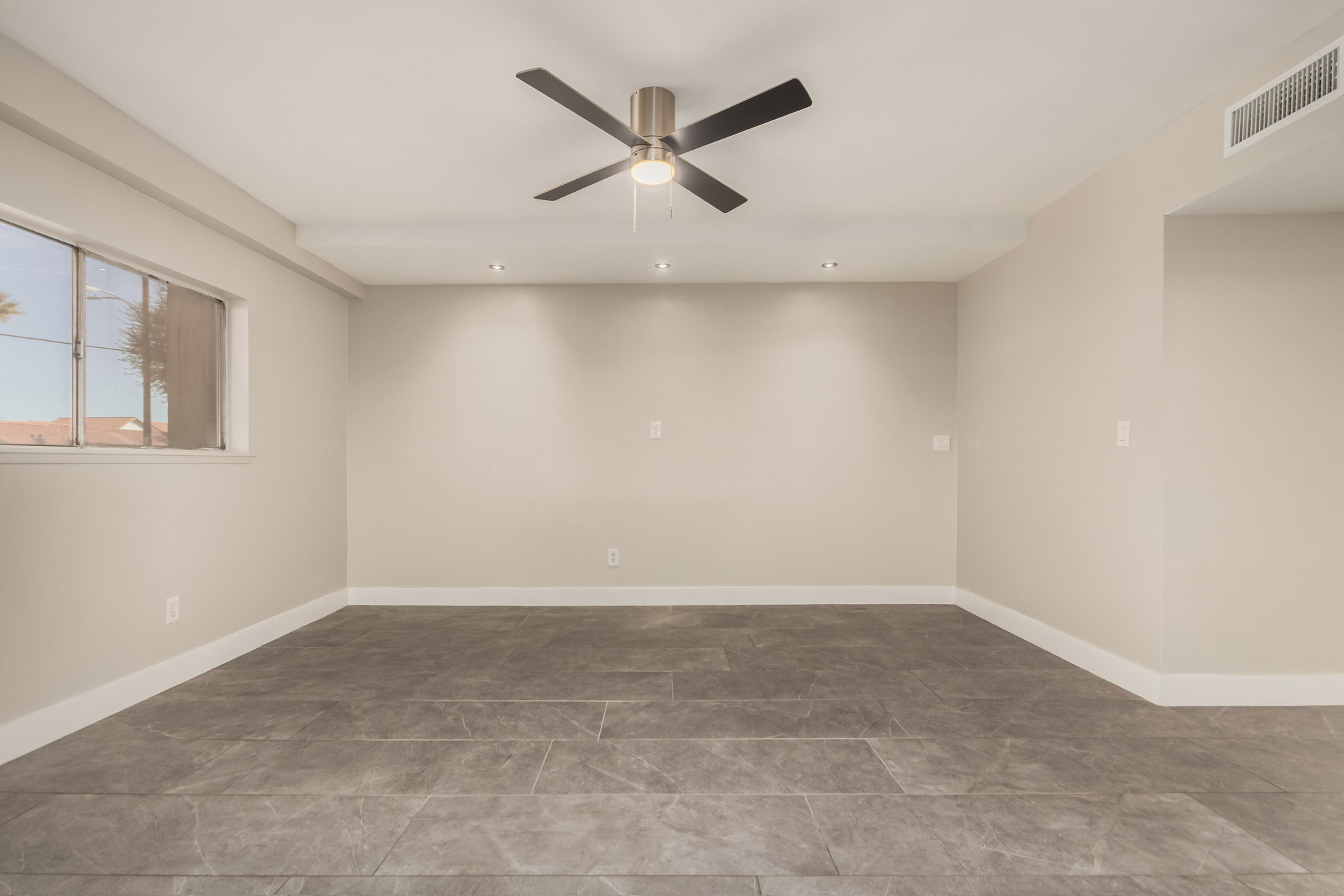 Gorgeous! Sleek 3 BR 2 Bathrooms located in Windsor Place. The front door opens to a spacious open floor plan. Tile flooring and two tone paint transcend throughout accented by stylish fans and fixtures. The kitchen is beautiful with white cabinets including extra storage under the breakfast bar, granite countertops, tile backsplash, stainless steel appliances and recessed lighting. The main bedroom is complete with a modern private bathroom that includes a smart use of space and beautiful decorative touches. The hall bathroom does not disappoint as the beautiful decorative design offers a pleasing aesthetic. A covered patio offers a great space to step outside. The community offers a refreshing pool. Close to dining entertainment and shopping. Come and see!