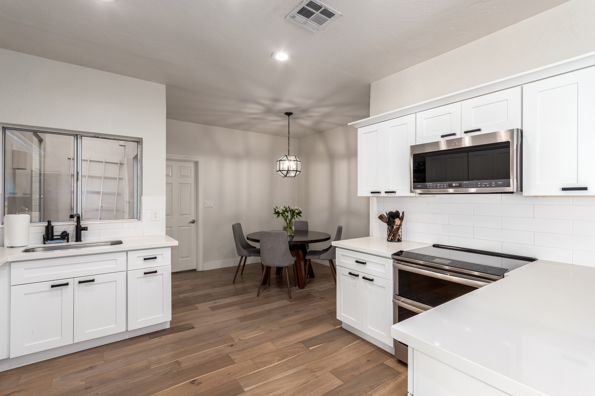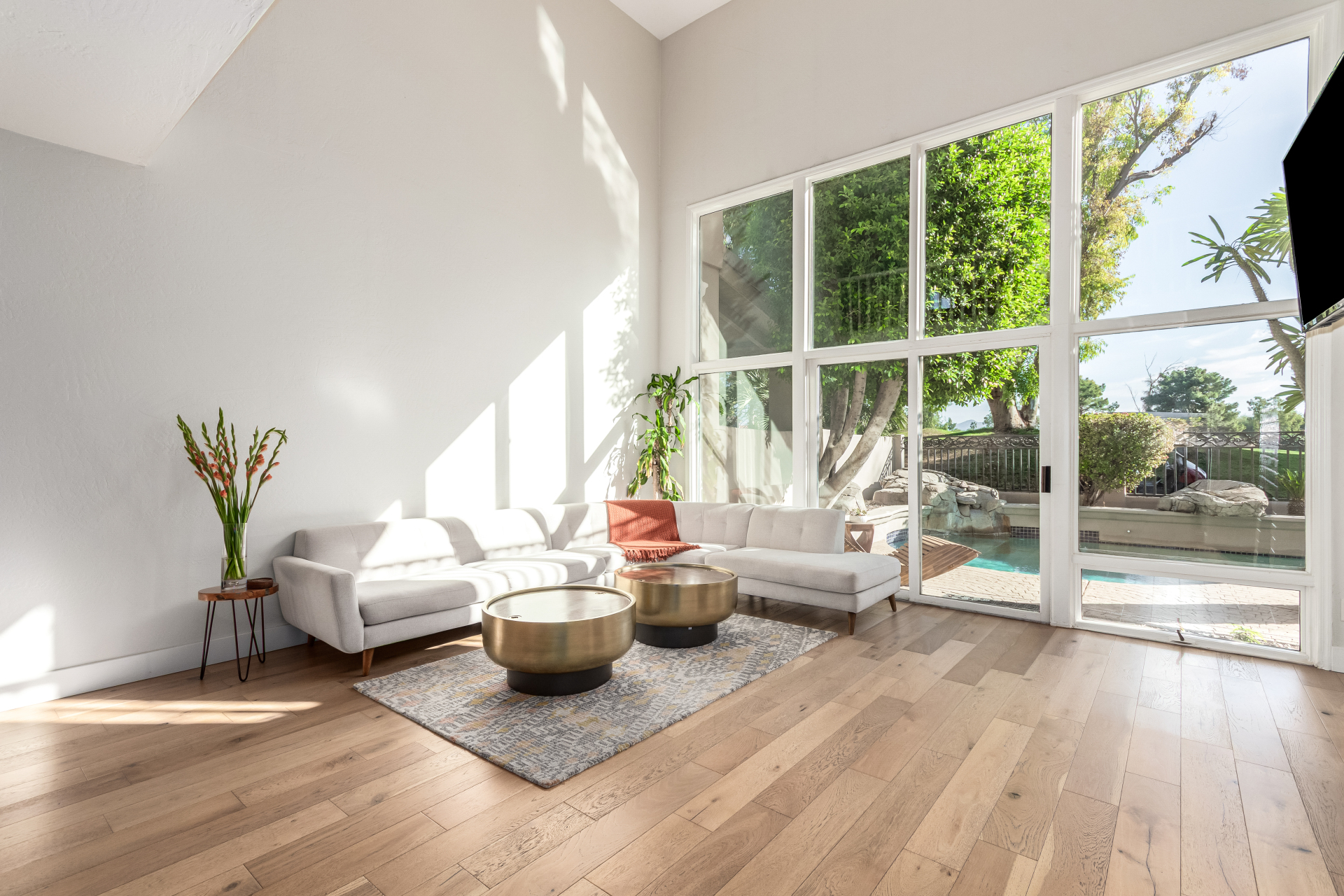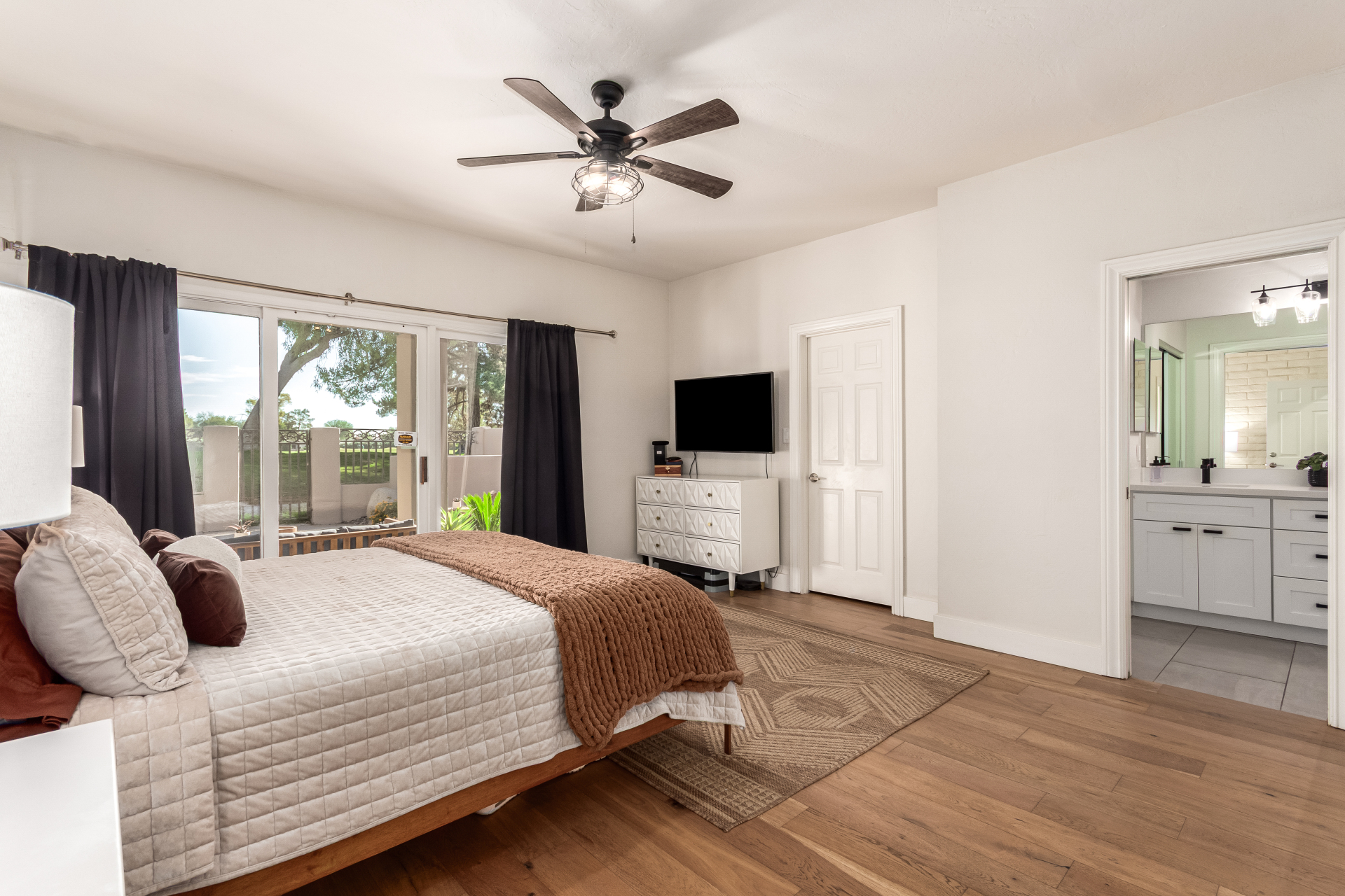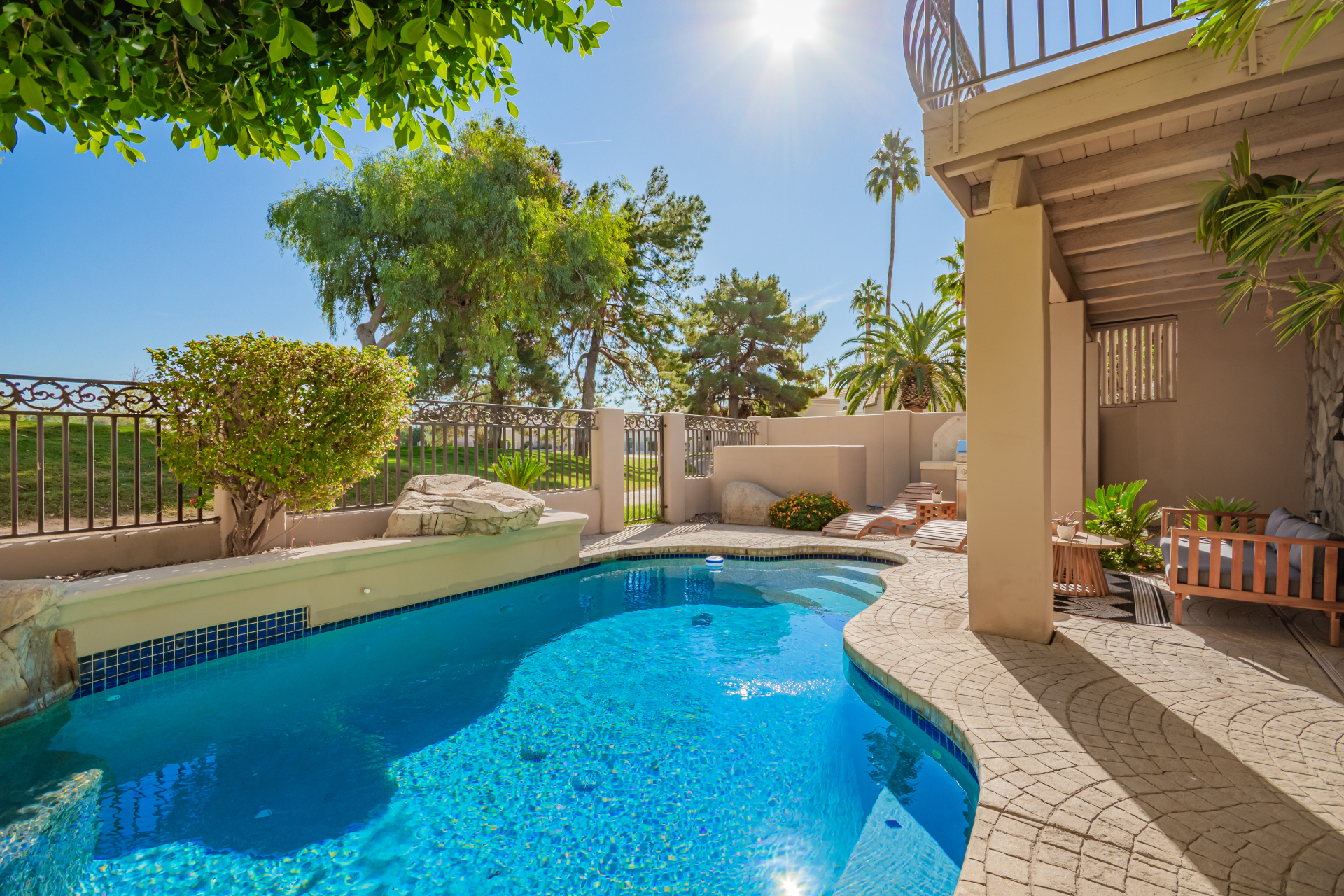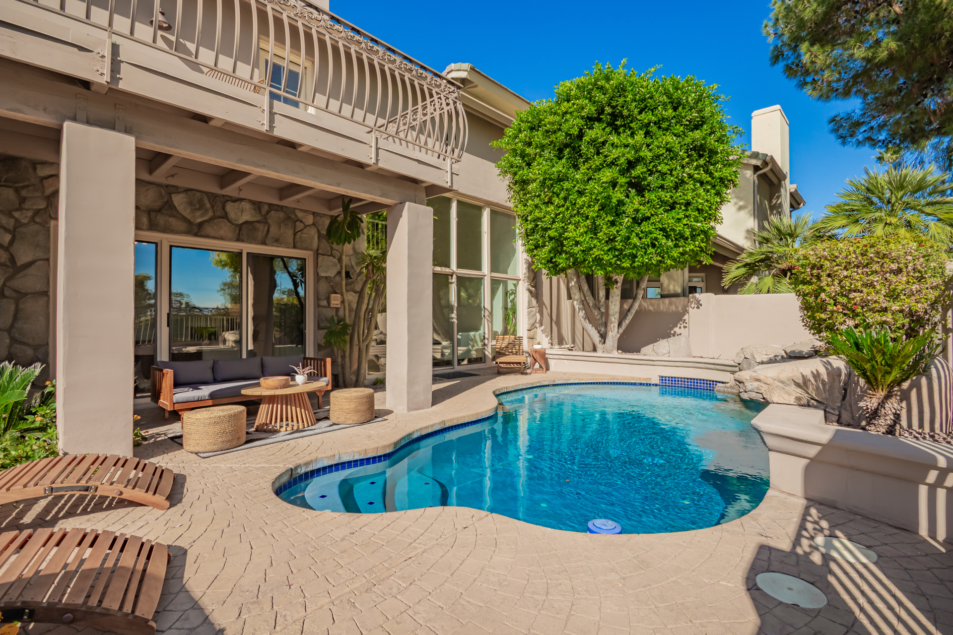 What a sanctuary! This beautiful townhome awaits you in the sought-after Scottsdale Country Club. Discover the abundance of light and warmth of the inviting interior, featuring engineered wood flooring, soaring vaulted ceilings to enhance the airy feel, a wet bar perfect for entertaining, a floor-to-ceiling brick fireplace for cozy winter evenings, and a soothing palette that will make you want to stay. The impeccable kitchen is ready for your culinary adventures, equipped with shaker-style cabinets adorned with crown molding, tile backsplash, quartz countertops, and stainless-steel essentials. The serene main suite boasts a closet, a spa-like bathroom with double sinks and a separate shower & tub, and a private exit. The cozy loft is perfect for a reading nook, a TV ar or an office.