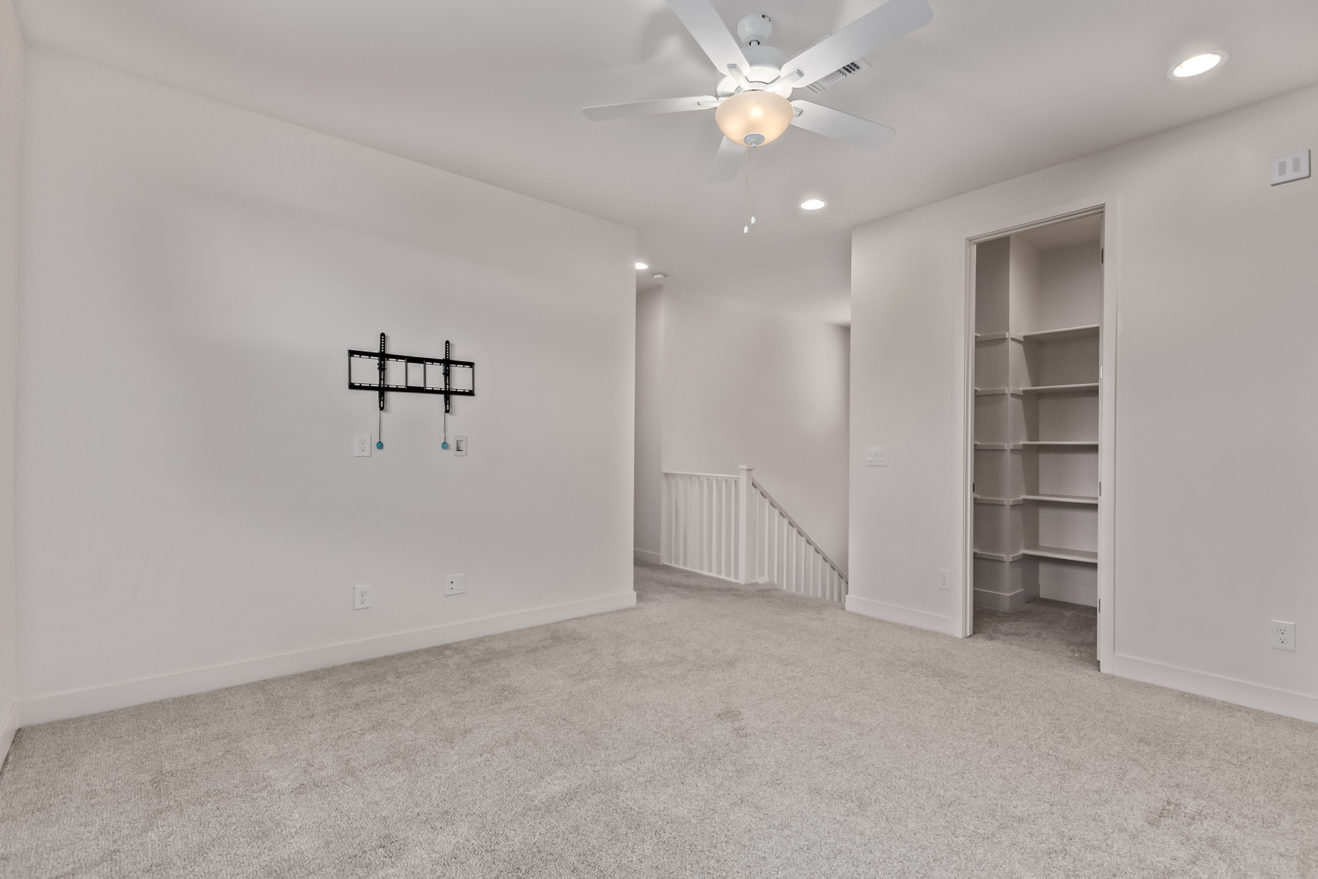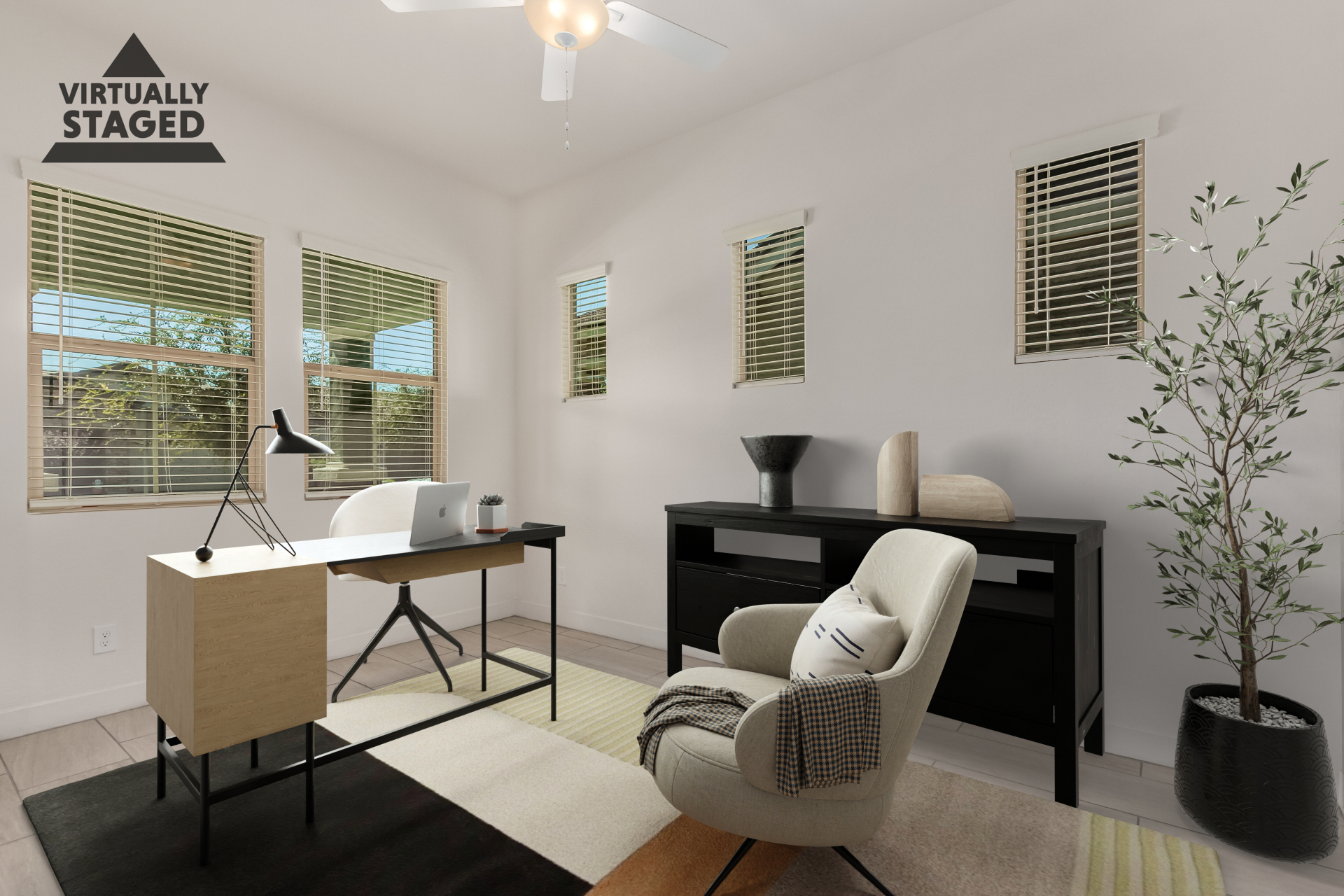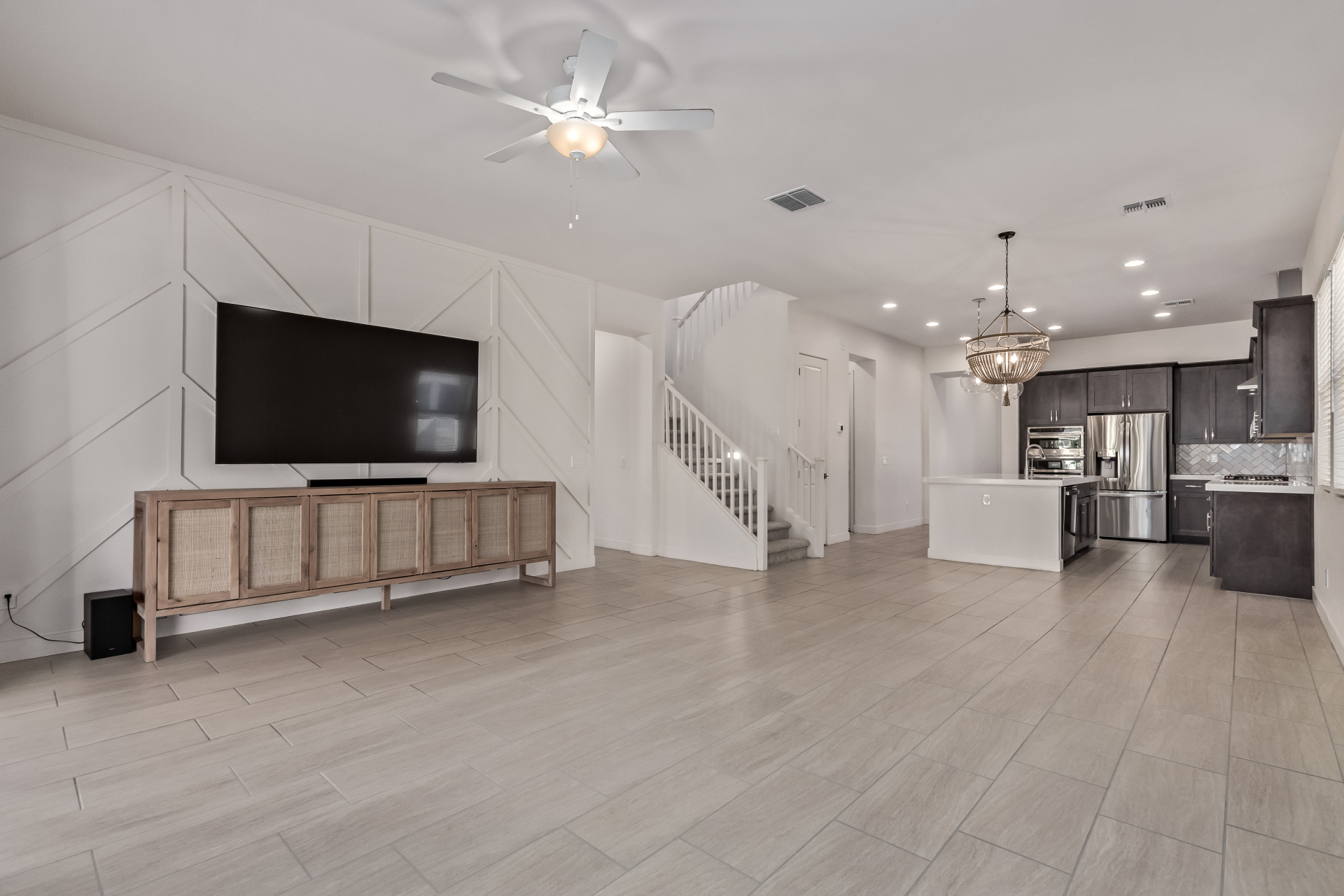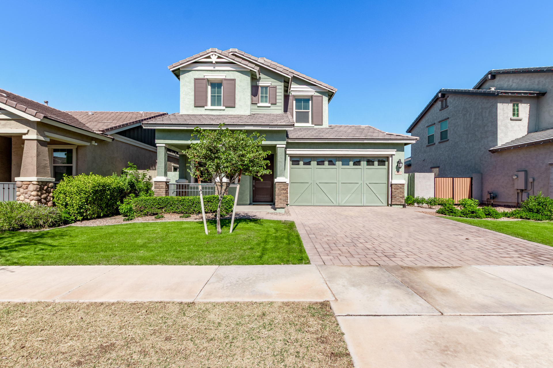 Beautiful residence ready to go! Boasting charming brick-accented façade, welcoming porch, & grassy front yard. The 3-car tandem garage provides plenty of parking space! Inside, you'll find a bright den & open living areas with neutral-tone tile floors, thick baseboards, & soothing paint. The cozy family room flows effortlessly into the modern kitchen, featuring SS appliances, crown moulding on the cabinets, stylish backsplash, granite counters, island w/breakfast bar, & walk-in pantry. Upstairs, the adorable loft offers a great spot for a reading nook or play area. The main suite has a private bathroom showcasing dual sinks, separate tub/shower, & walk-in closet. Serene backyard comprises an extended covered patio, lush grass, & storage shed. This home has it all—style, space, & comfort!