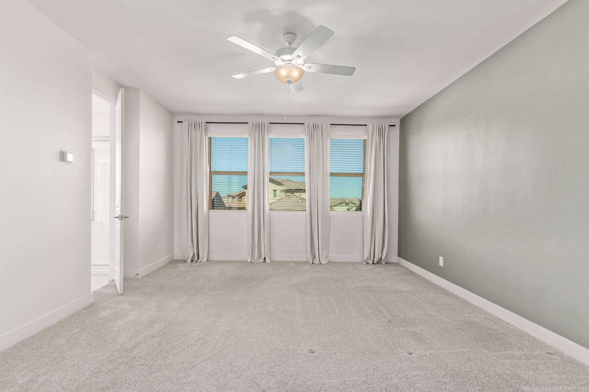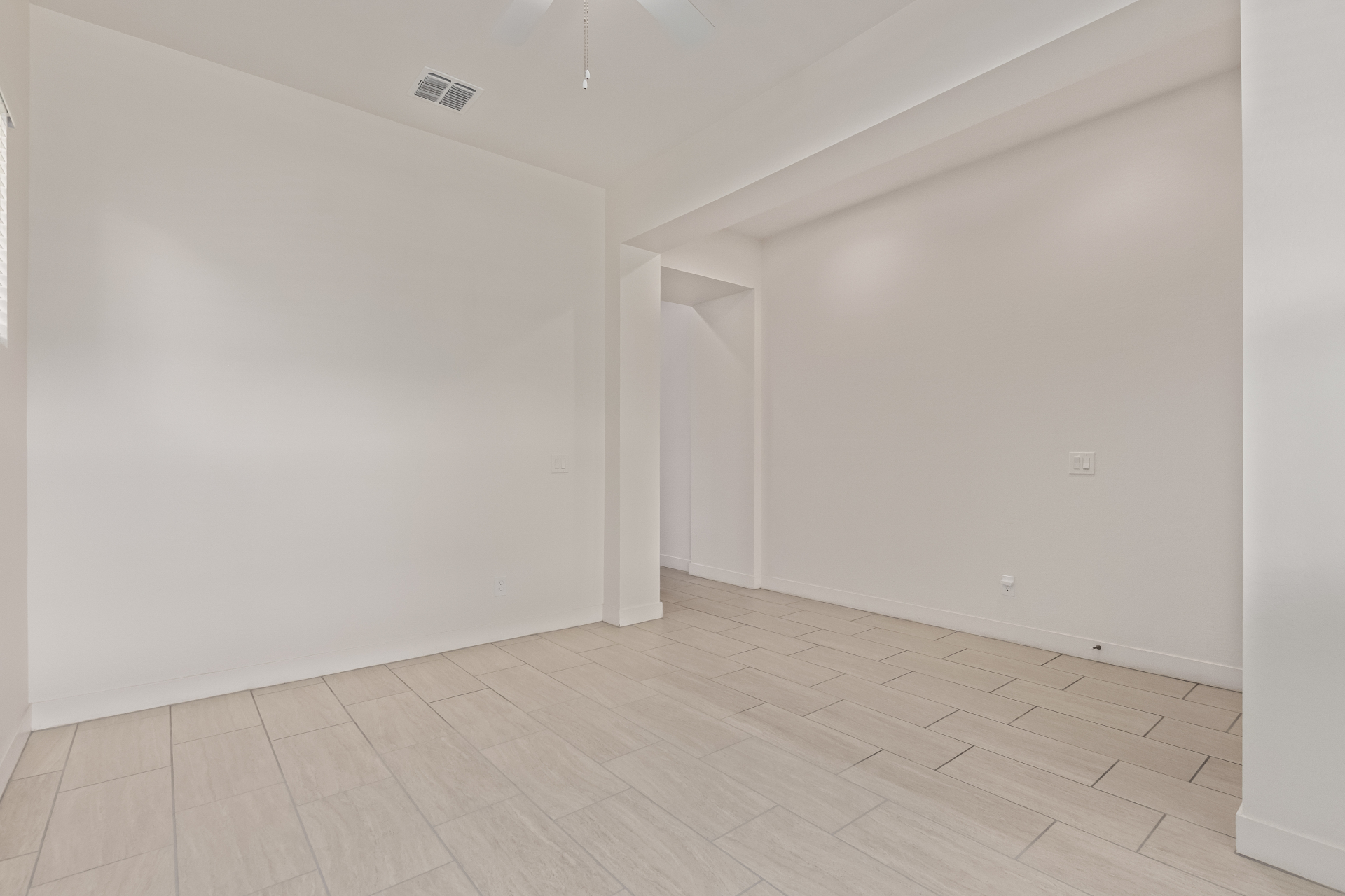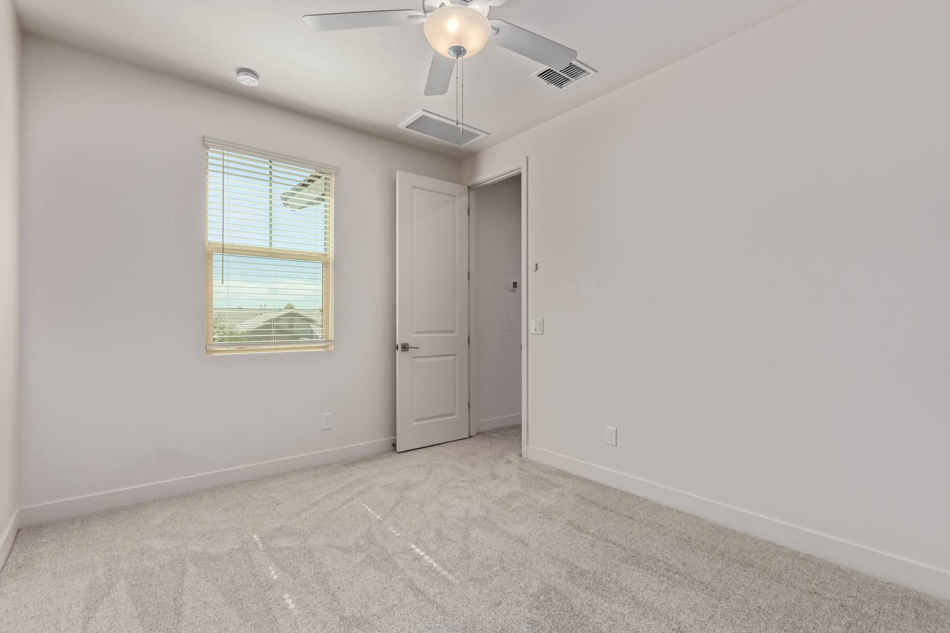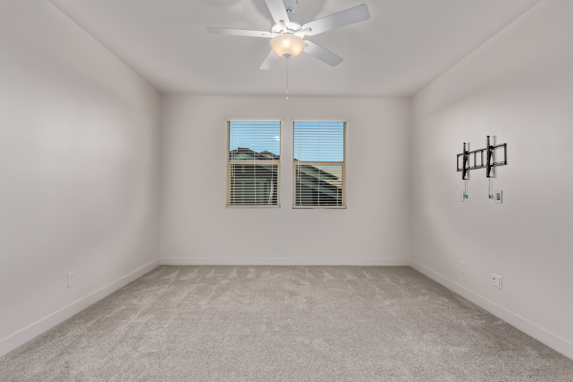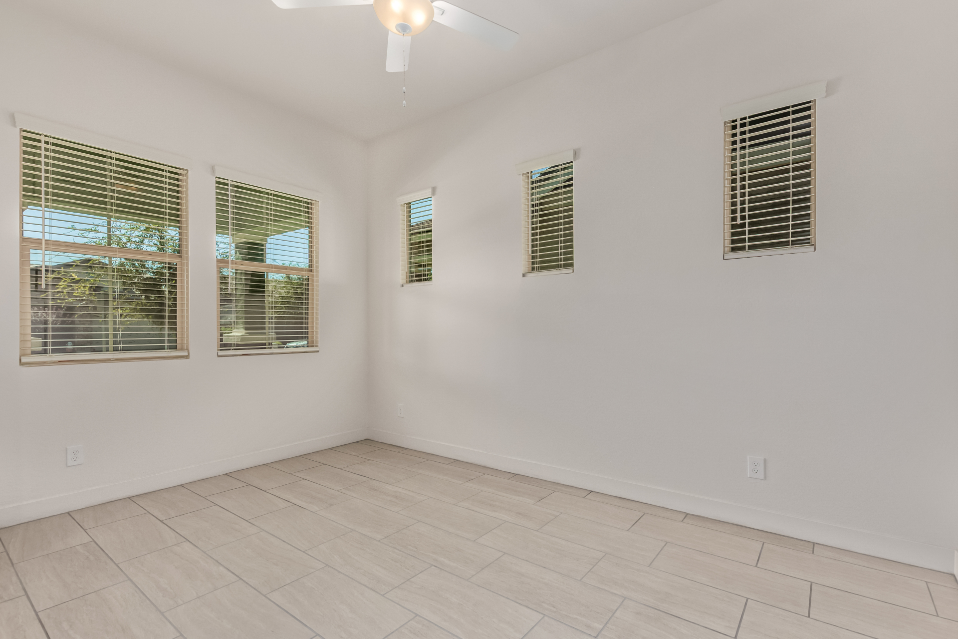 Beautiful residence ready to go! Boasting charming brick-accented façade, welcoming porch, & grassy front yard. The 3-car tandem garage provides plenty of parking space! Inside, you'll find a bright den & open living areas with neutral-tone tile floors, thick baseboards, & soothing paint. The cozy family room flows effortlessly into the modern kitchen, featuring SS appliances, crown moulding on the cabinets, stylish backsplash, granite counters, island w/breakfast bar, & walk-in pantry. Upstairs, the adorable loft offers a great spot for a reading nook or play area. The main suite has a private bathroom showcasing dual sinks, separate tub/shower, & walk-in closet. Serene backyard comprises an extended covered patio, lush grass, & storage shed. This home has it all—style, space, & comfort!