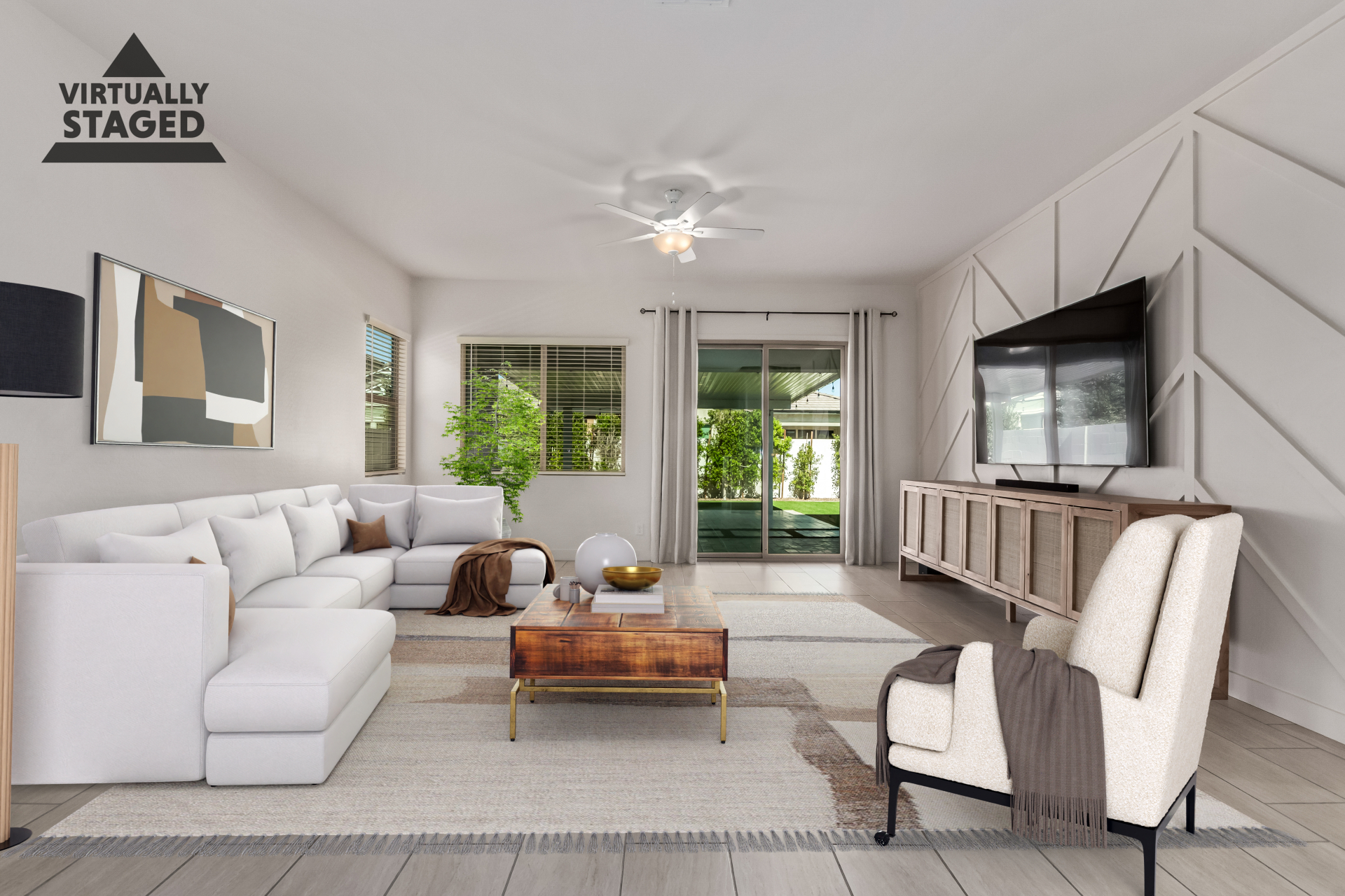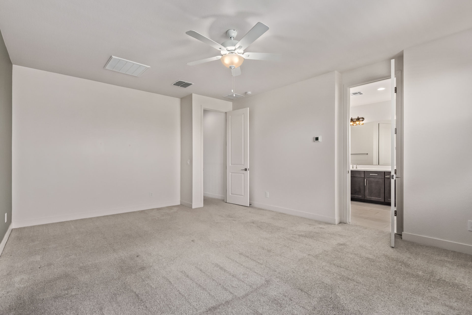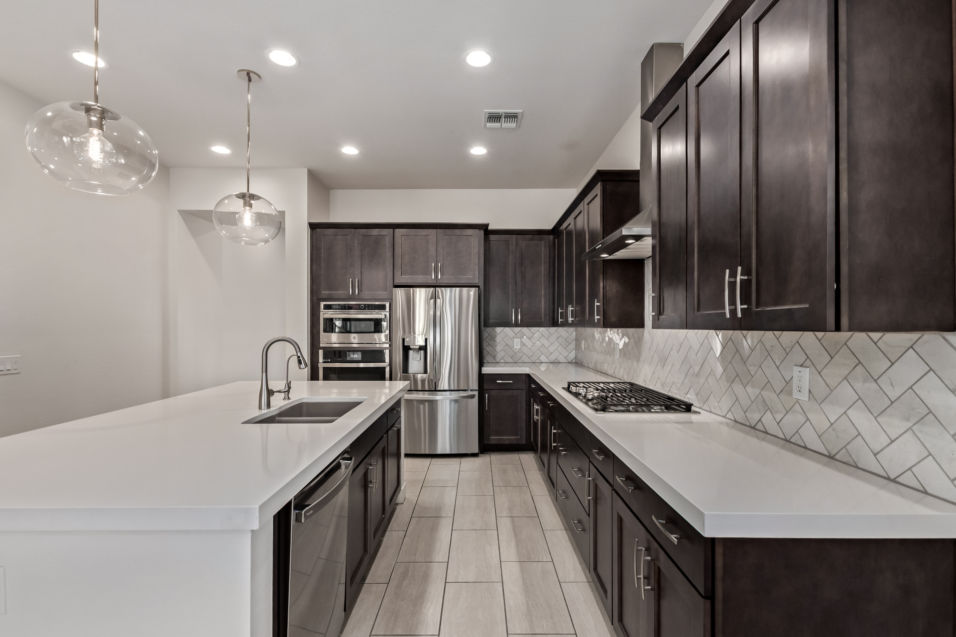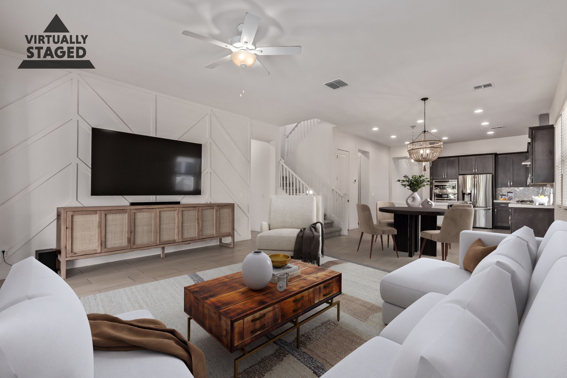 Beautiful residence ready to go! Boasting charming brick-accented façade, welcoming porch, & grassy front yard. The 3-car tandem garage provides plenty of parking space! Inside, you'll find a bright den & open living areas with neutral-tone tile floors, thick baseboards, & soothing paint. The cozy family room flows effortlessly into the modern kitchen, featuring SS appliances, crown moulding on the cabinets, stylish backsplash, granite counters, island w/breakfast bar, & walk-in pantry. Upstairs, the adorable loft offers a great spot for a reading nook or play area. The main suite has a private bathroom showcasing dual sinks, separate tub/shower, & walk-in closet. Serene backyard comprises an extended covered patio, lush grass, & storage shed. This home has it all—style, space, & comfort!