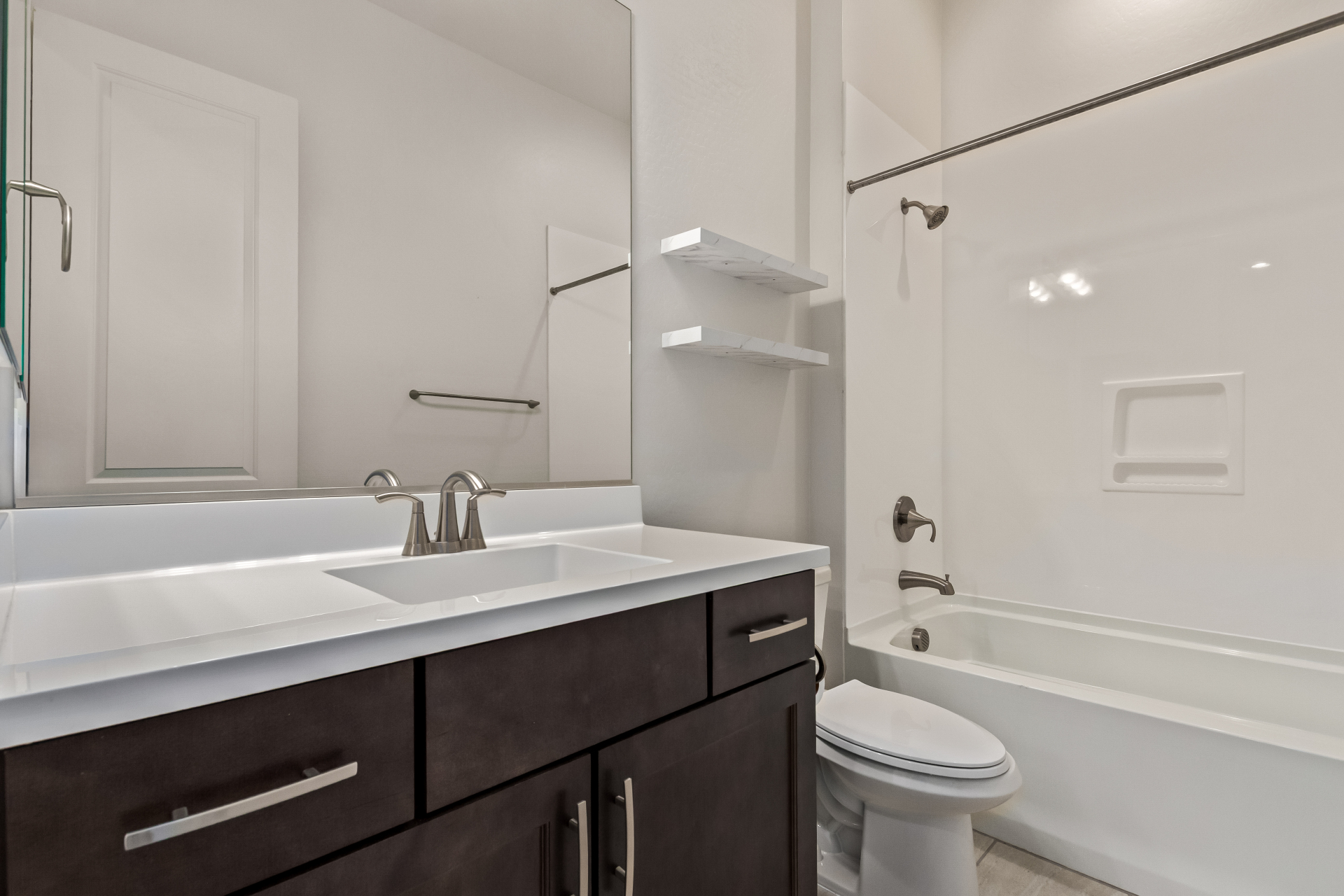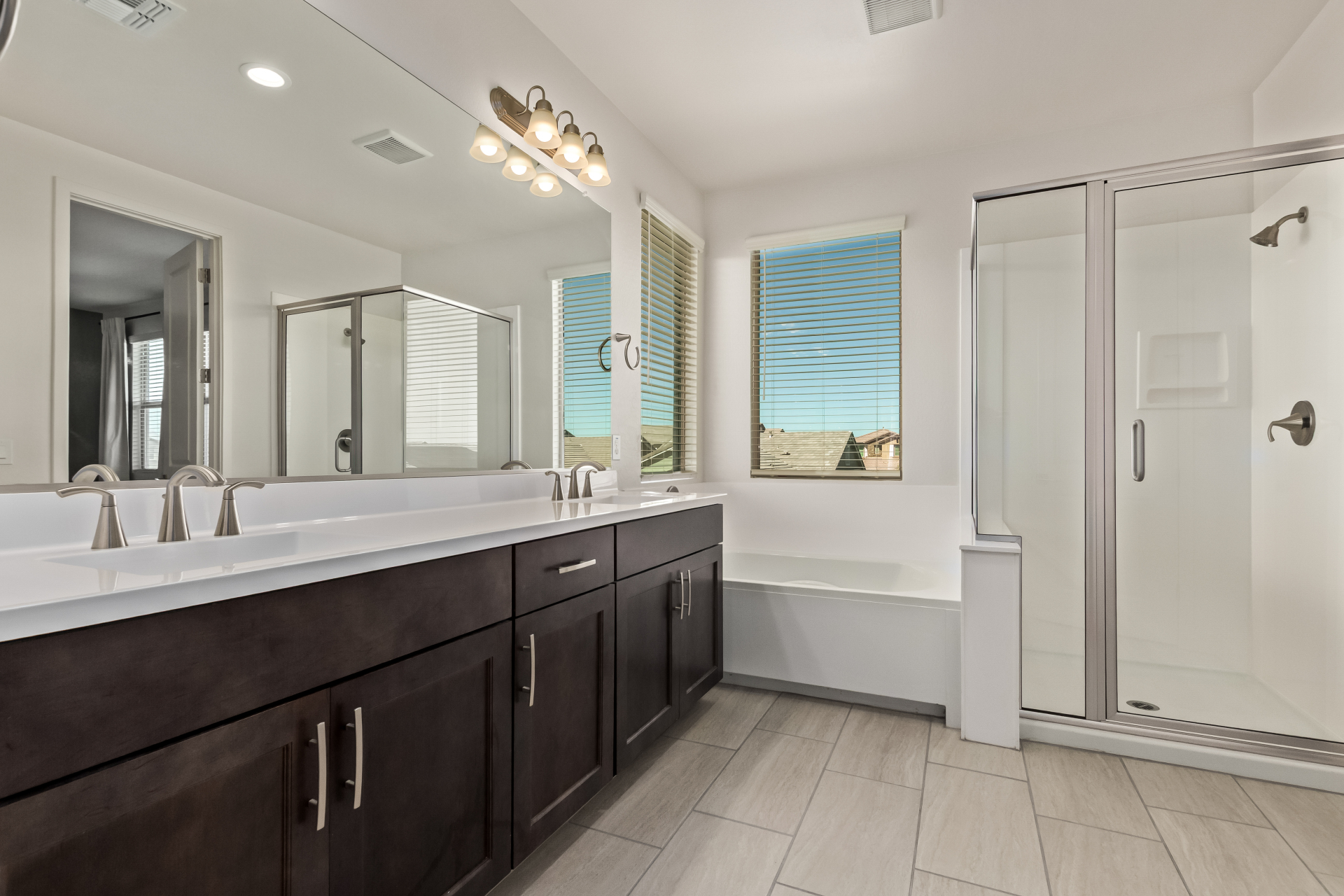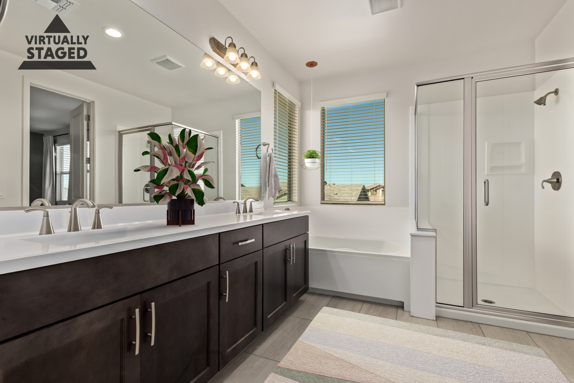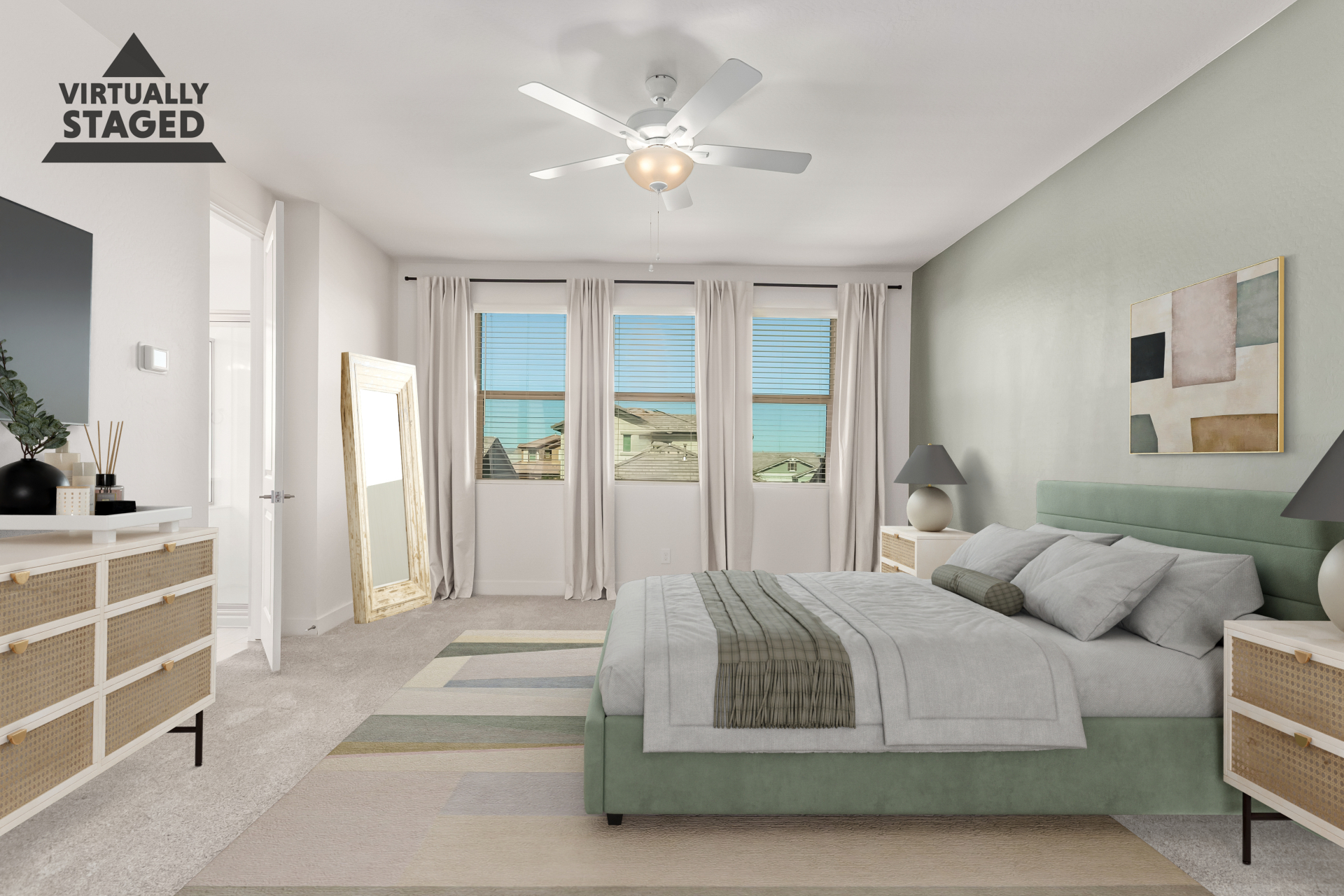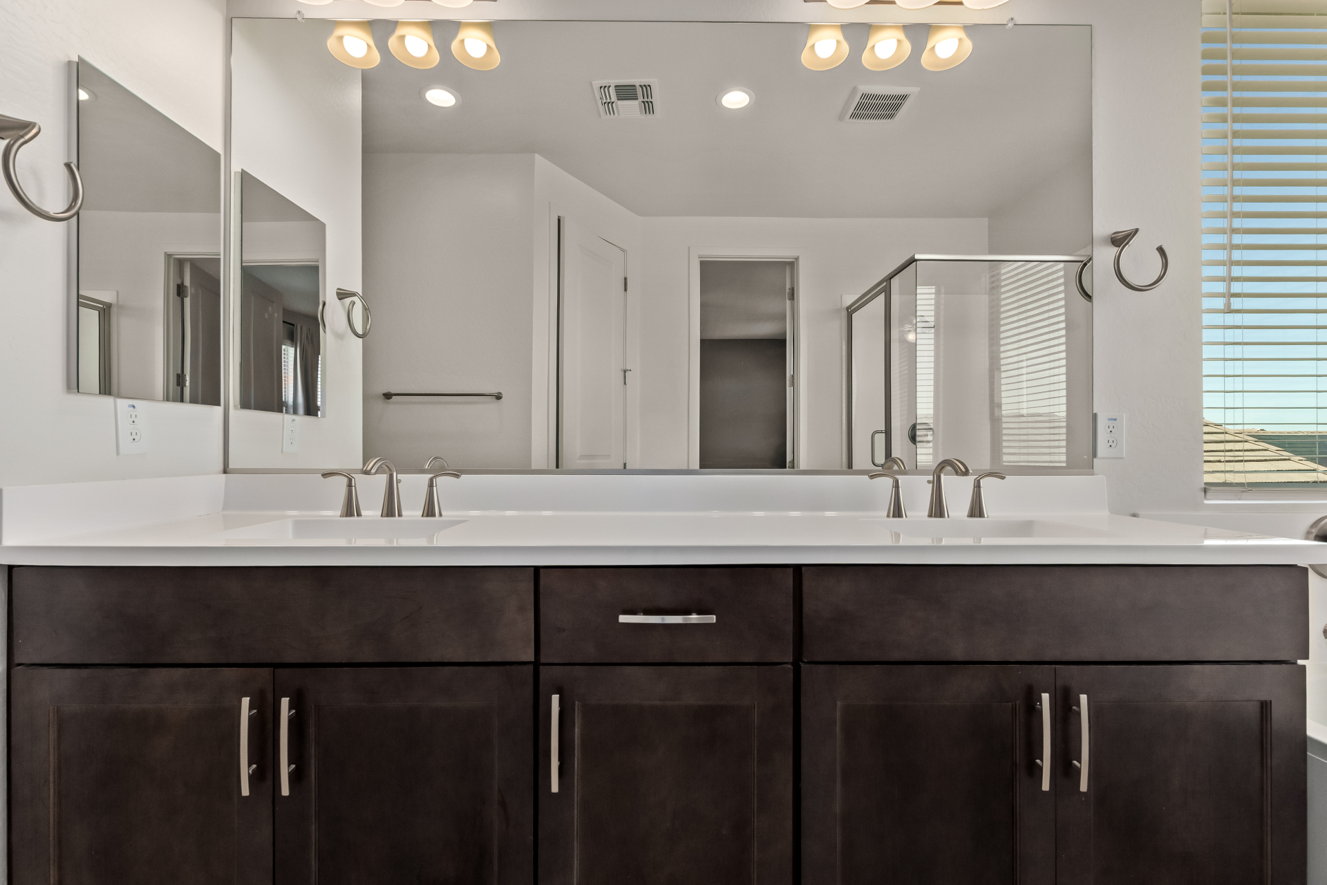Beautiful residence ready to go! Boasting charming brick-accented façade, welcoming porch, & grassy front yard. The 3-car tandem garage provides plenty of parking space! Inside, you'll find a bright den & open living areas with neutral-tone tile floors, thick baseboards, & soothing paint. The cozy family room flows effortlessly into the modern kitchen, featuring SS appliances, crown moulding on the cabinets, stylish backsplash, granite counters, island w/breakfast bar, & walk-in pantry. Upstairs, the adorable loft offers a great spot for a reading nook or play area. The main suite has a private bathroom showcasing dual sinks, separate tub/shower, & walk-in closet. Serene backyard comprises an extended covered patio, lush grass, & storage shed. This home has it all—style, space, & comfort!