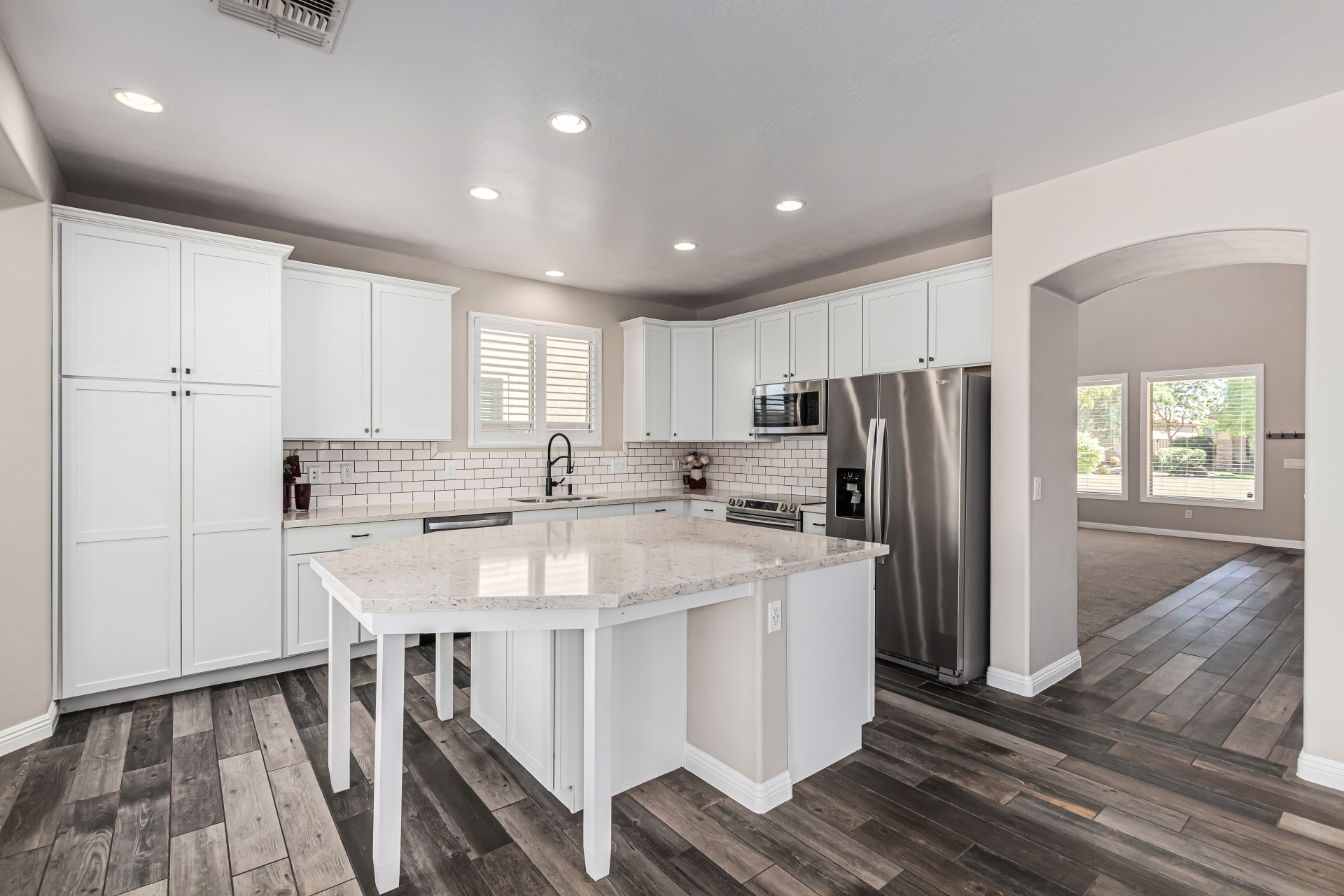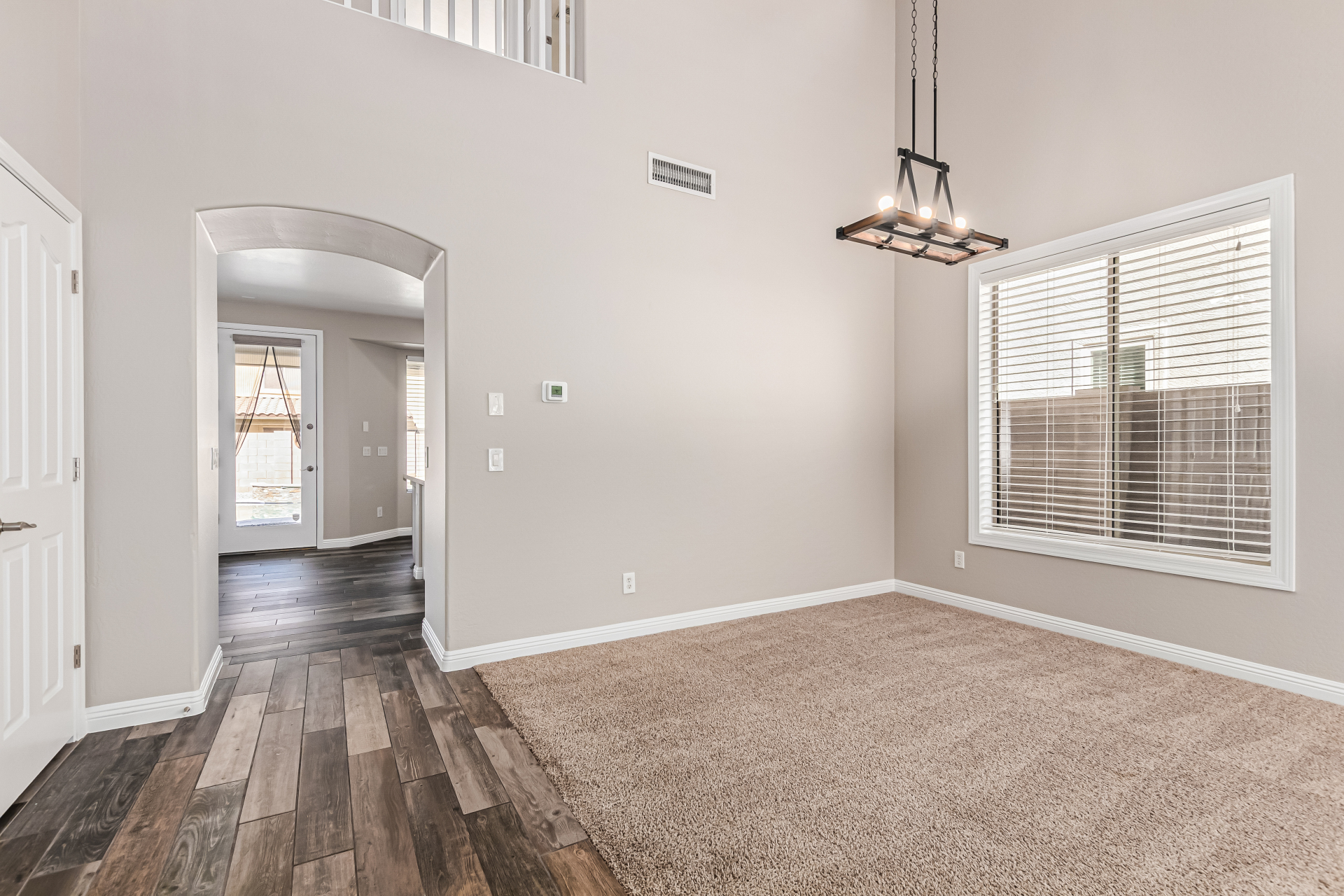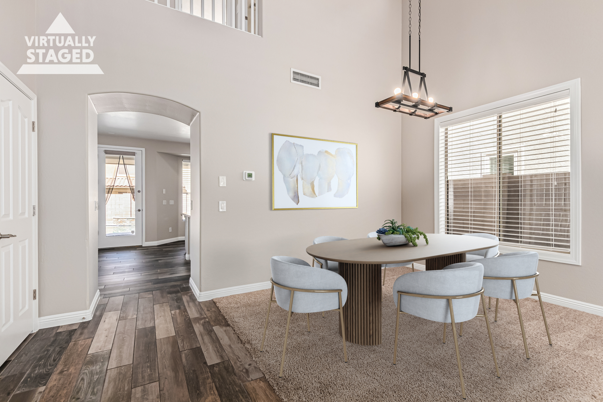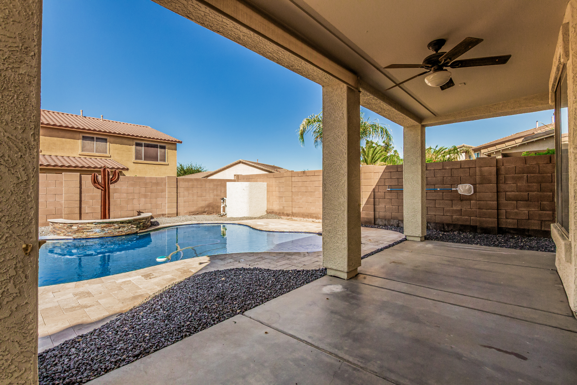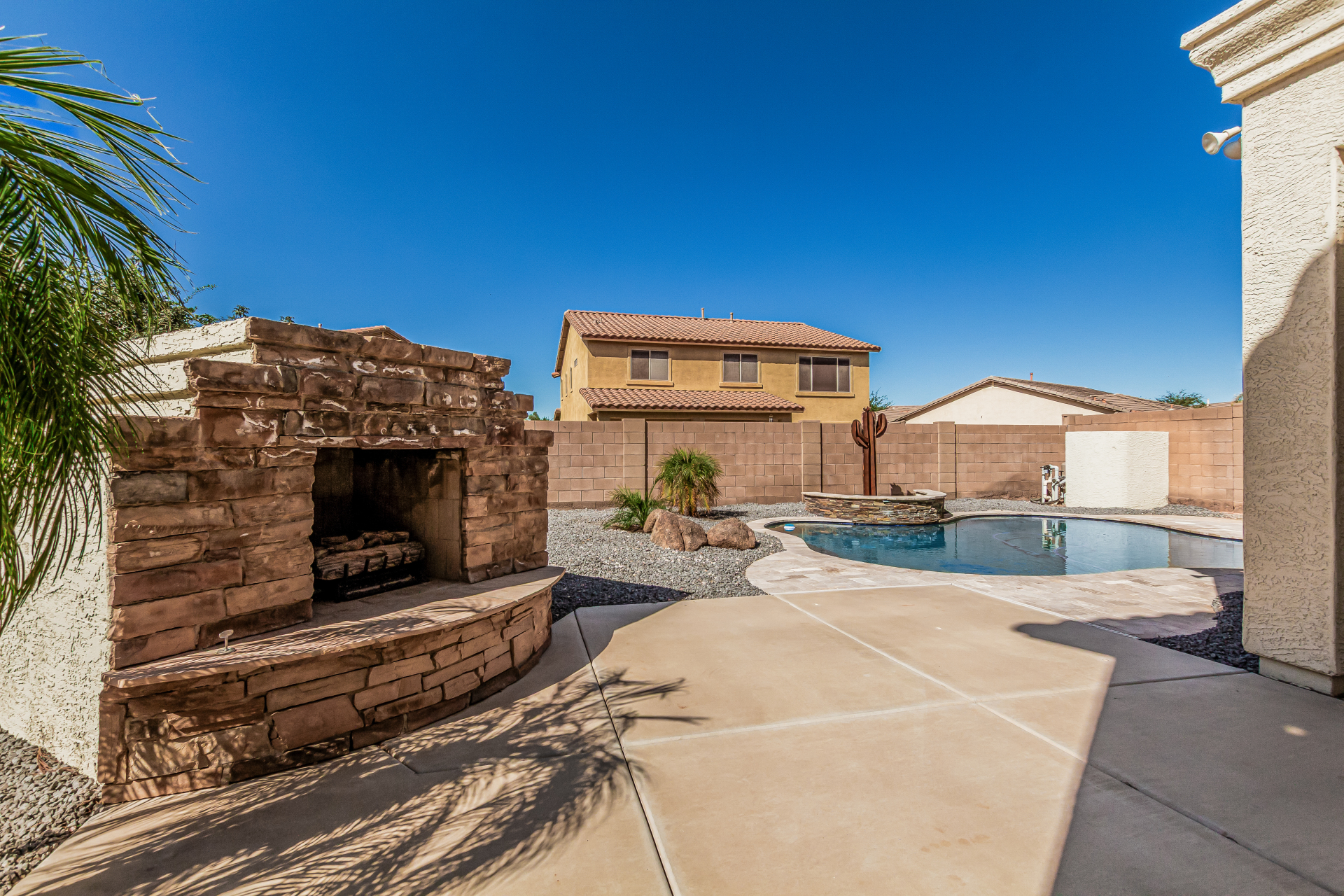 This stunning two-story pool home blends style and comfort just the way you need it! You'll first notice the beautifully manicured landscape, lovely front porch, and 3-car garage, inviting you to take a look inside. The interior shows generous living spaces with upgraded carpet, wood-look flooring, soaring ceilings, large windows, and arched passageways, providing abundant space for entertaining and relaxation. The pristine kitchen is a chef's delight, equipped with shaker cabinets, tile backsplash, granite countertops, SS appliances, and an island perfect for quick meals and casual conversations. The den and loft are ideal for a home office or a gaming area. You'll love the airy main retreat, complete with a walk-in closet for easy organization and a spa-like bathroom with double sinks and a separate shower & tub.