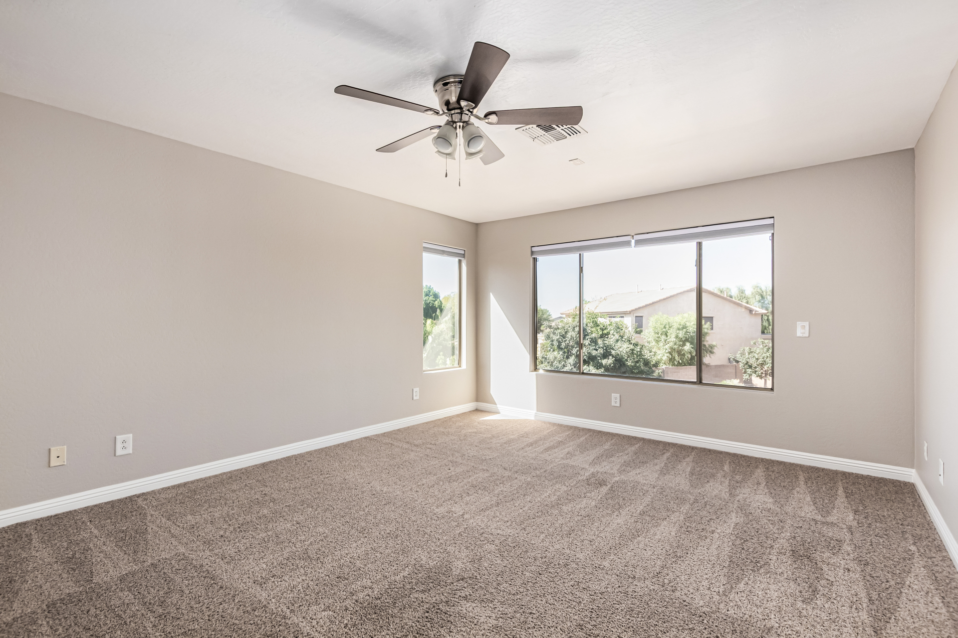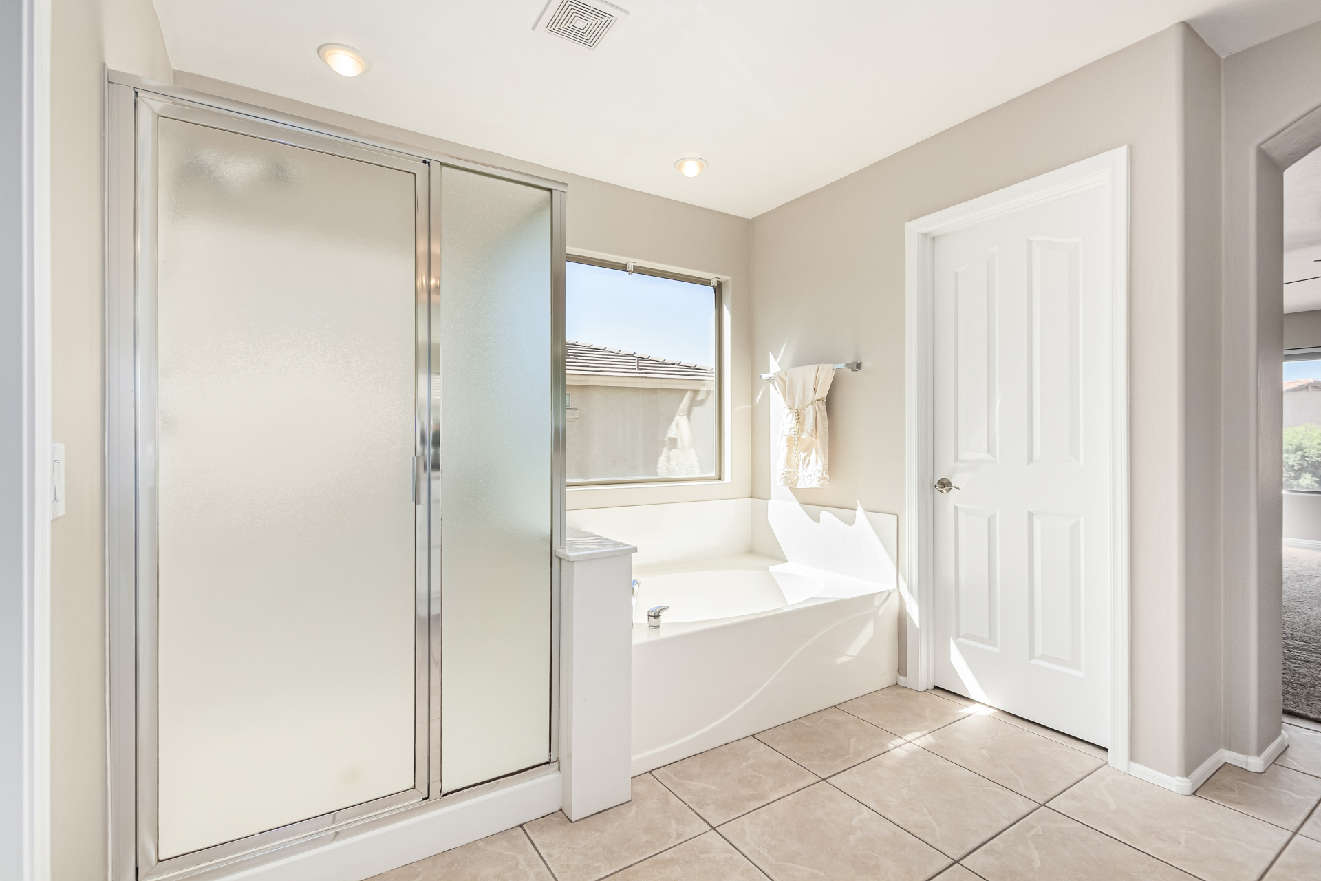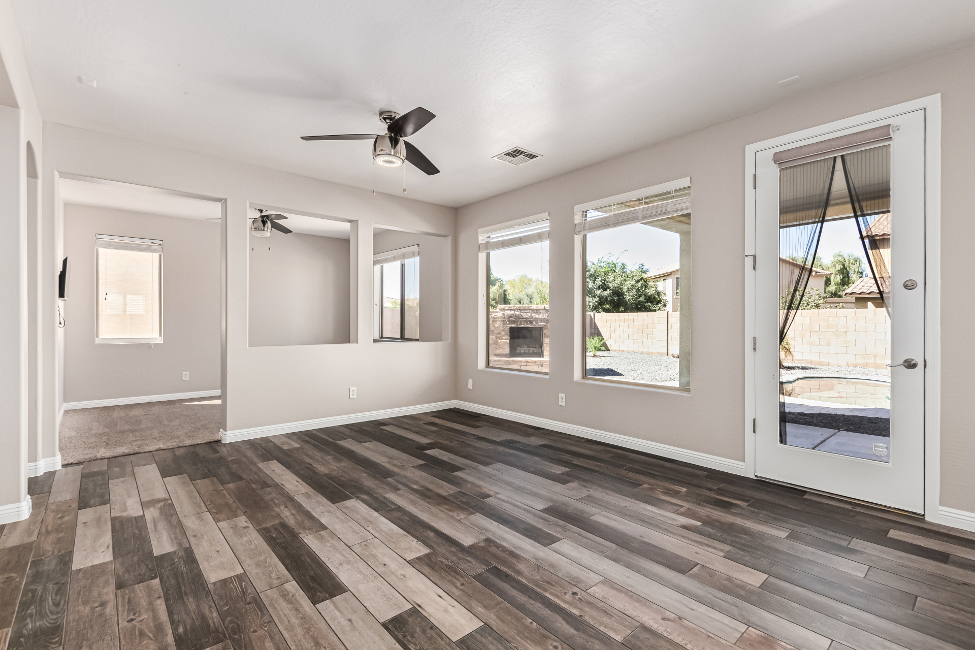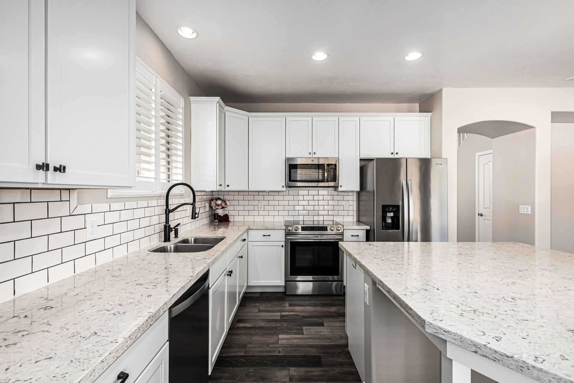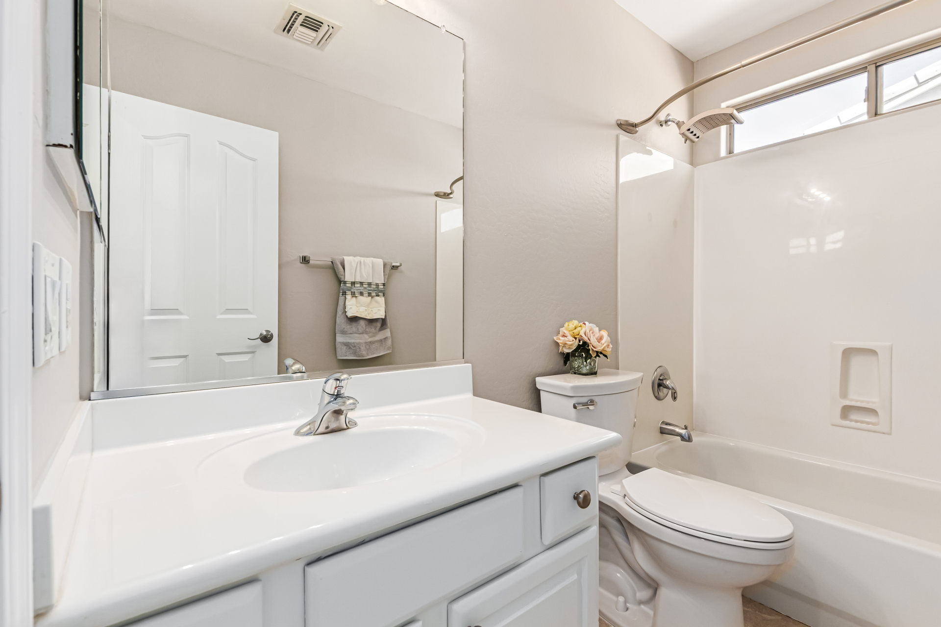 This stunning two-story pool home blends style and comfort just the way you need it! You'll first notice the beautifully manicured landscape, lovely front porch, and 3-car garage, inviting you to take a look inside. The interior shows generous living spaces with upgraded carpet, wood-look flooring, soaring ceilings, large windows, and arched passageways, providing abundant space for entertaining and relaxation. The pristine kitchen is a chef's delight, equipped with shaker cabinets, tile backsplash, granite countertops, SS appliances, and an island perfect for quick meals and casual conversations. The den and loft are ideal for a home office or a gaming area. You'll love the airy main retreat, complete with a walk-in closet for easy organization and a spa-like bathroom with double sinks and a separate shower & tub.