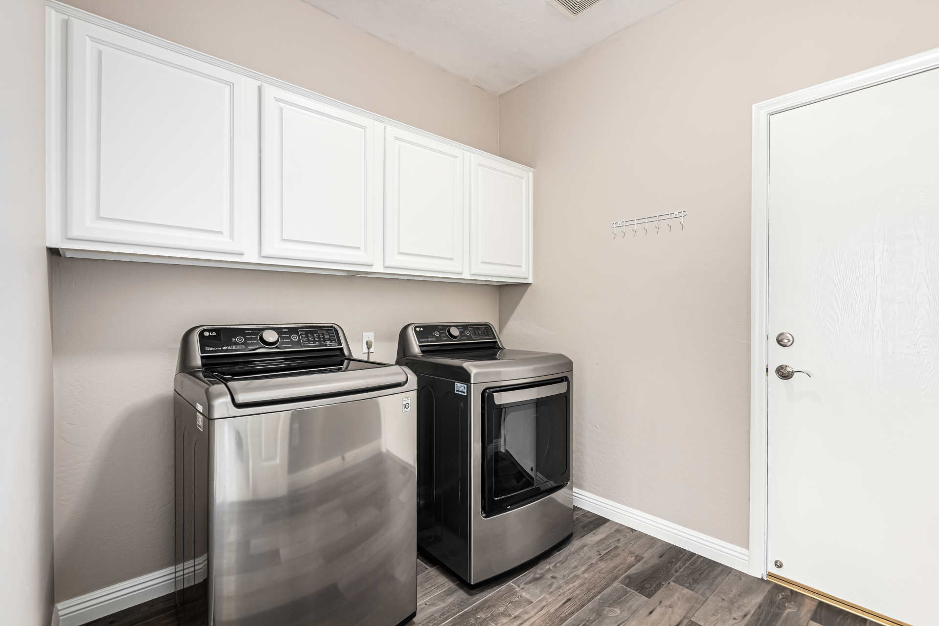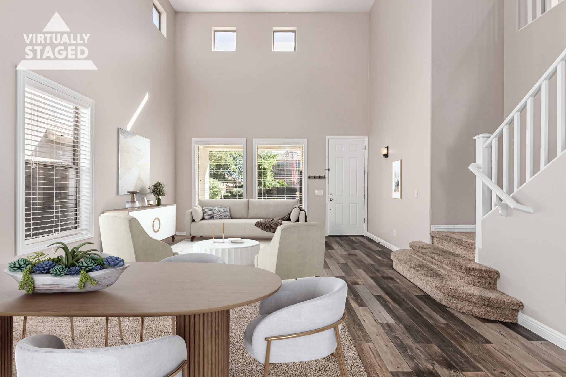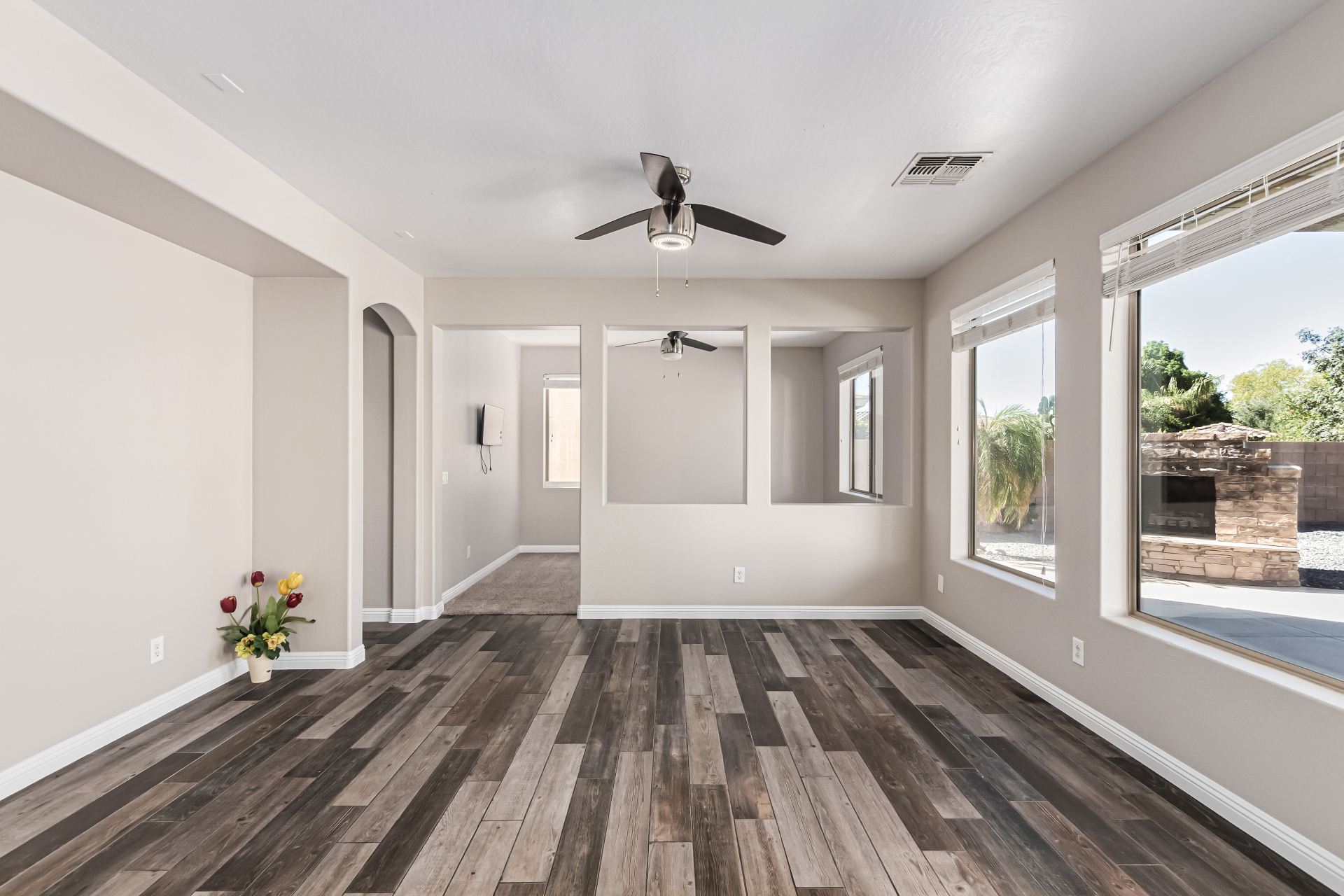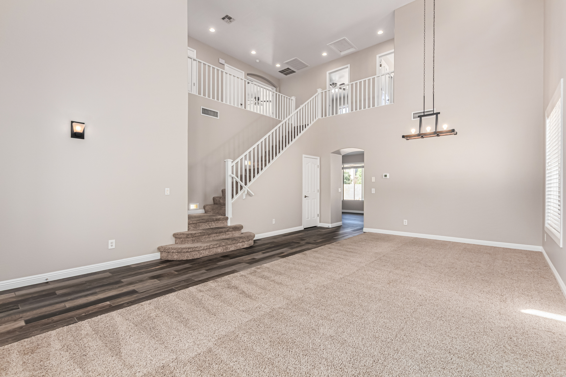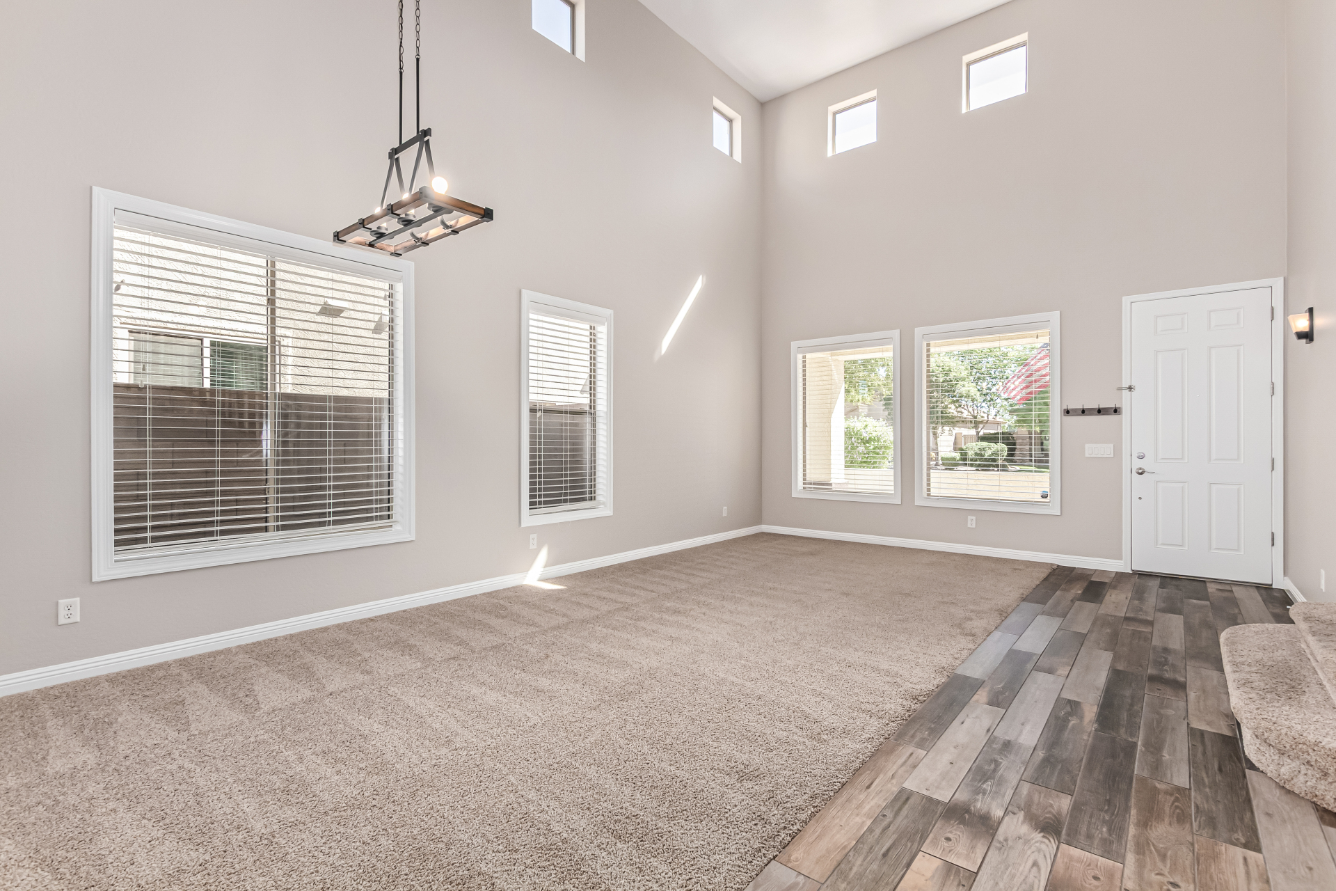 This stunning two-story pool home blends style and comfort just the way you need it! You'll first notice the beautifully manicured landscape, lovely front porch, and 3-car garage, inviting you to take a look inside. The interior shows generous living spaces with upgraded carpet, wood-look flooring, soaring ceilings, large windows, and arched passageways, providing abundant space for entertaining and relaxation. The pristine kitchen is a chef's delight, equipped with shaker cabinets, tile backsplash, granite countertops, SS appliances, and an island perfect for quick meals and casual conversations. The den and loft are ideal for a home office or a gaming area. You'll love the airy main retreat, complete with a walk-in closet for easy organization and a spa-like bathroom with double sinks and a separate shower & tub.