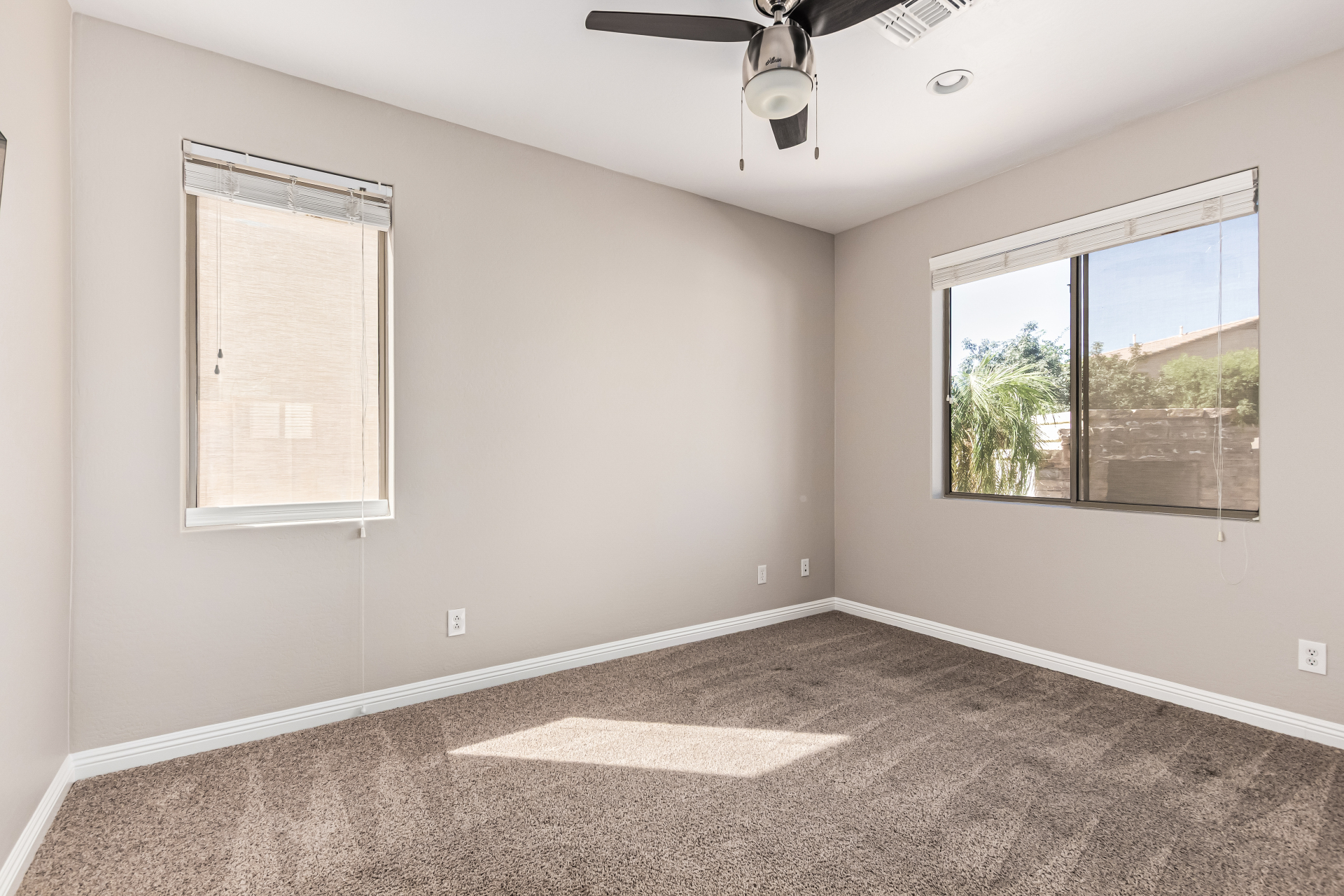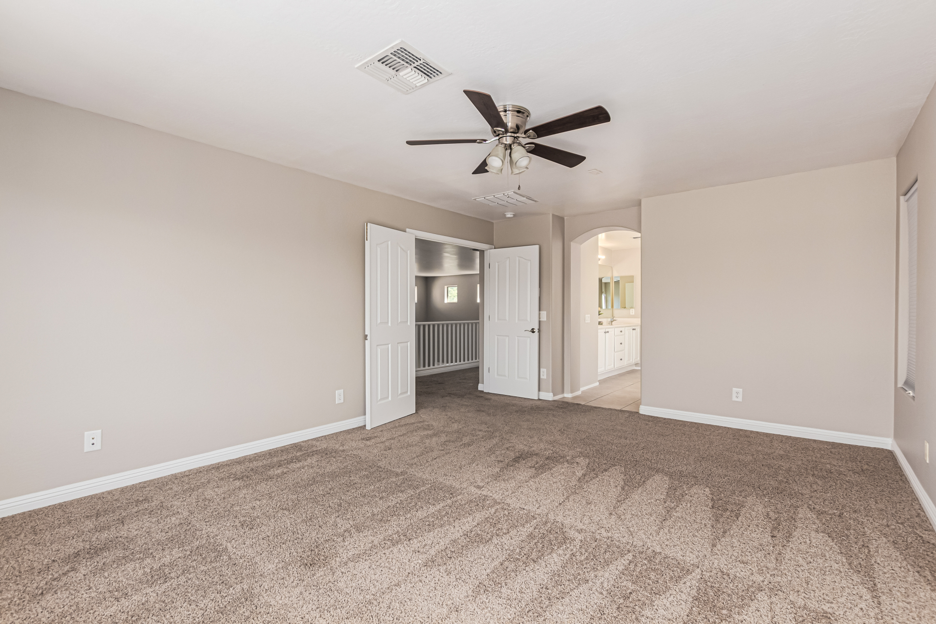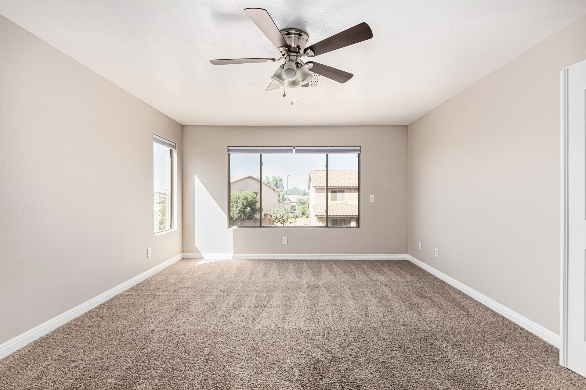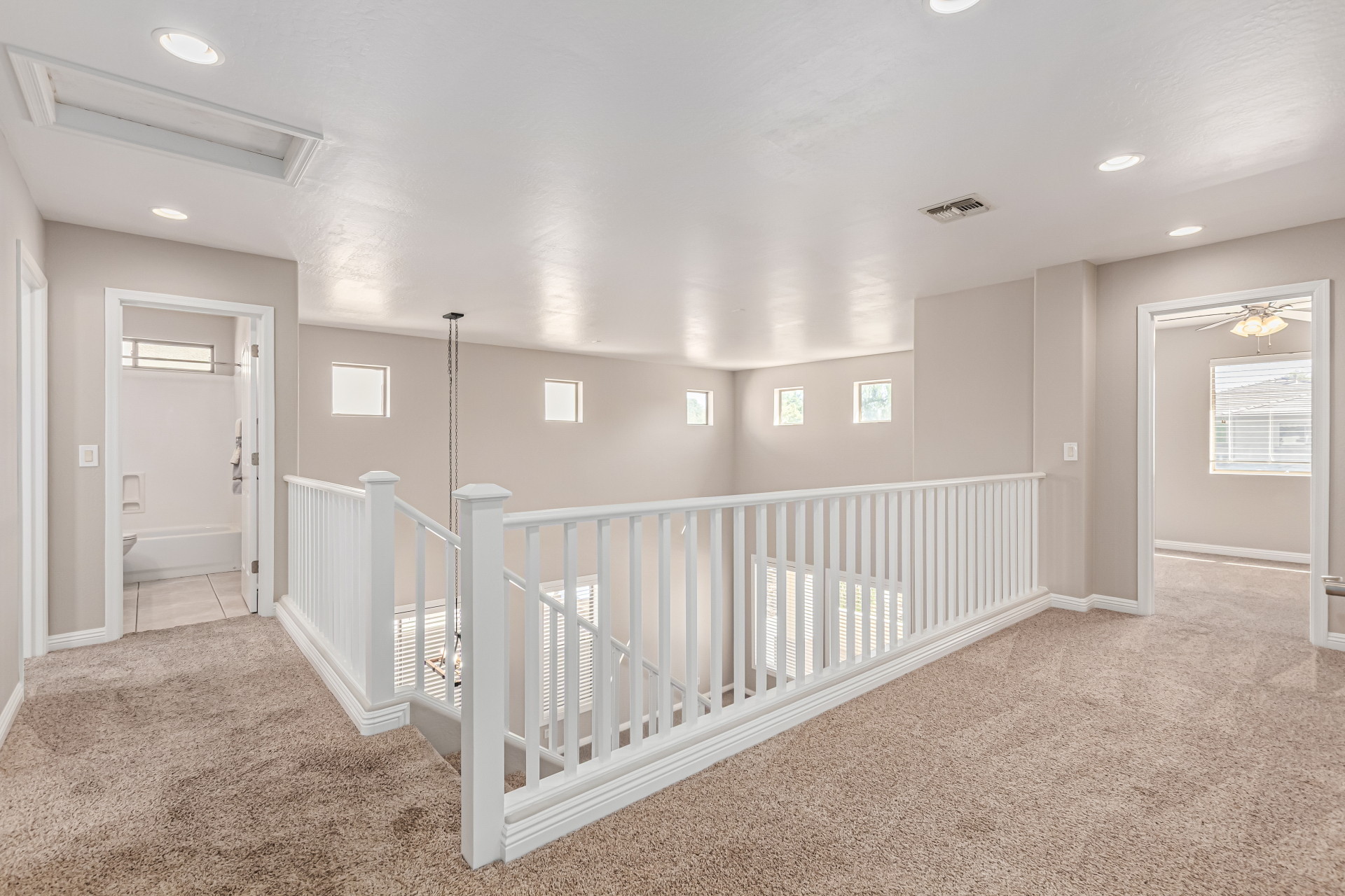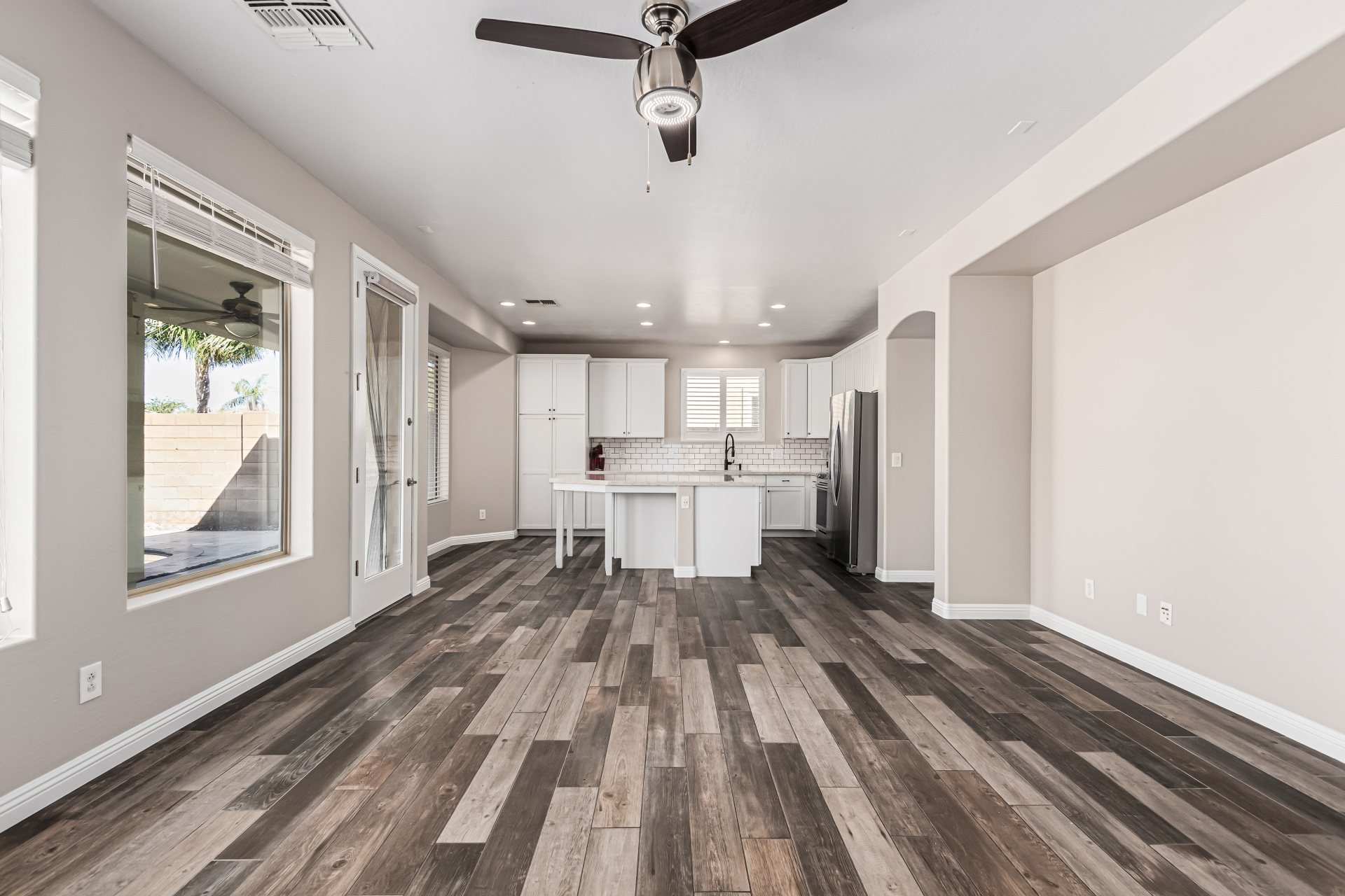 This stunning two-story pool home blends style and comfort just the way you need it! You'll first notice the beautifully manicured landscape, lovely front porch, and 3-car garage, inviting you to take a look inside. The interior shows generous living spaces with upgraded carpet, wood-look flooring, soaring ceilings, large windows, and arched passageways, providing abundant space for entertaining and relaxation. The pristine kitchen is a chef's delight, equipped with shaker cabinets, tile backsplash, granite countertops, SS appliances, and an island perfect for quick meals and casual conversations. The den and loft are ideal for a home office or a gaming area. You'll love the airy main retreat, complete with a walk-in closet for easy organization and a spa-like bathroom with double sinks and a separate shower & tub.