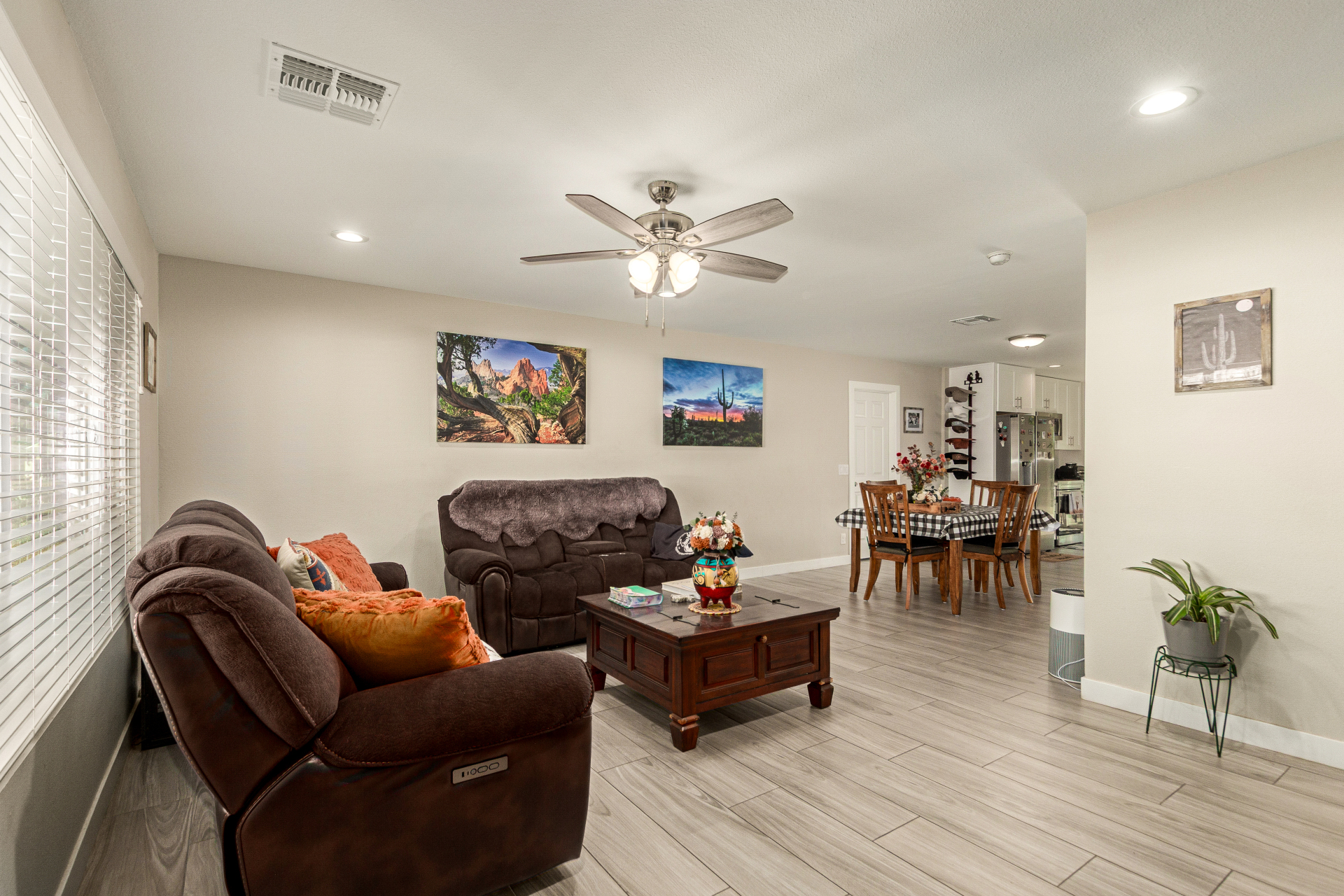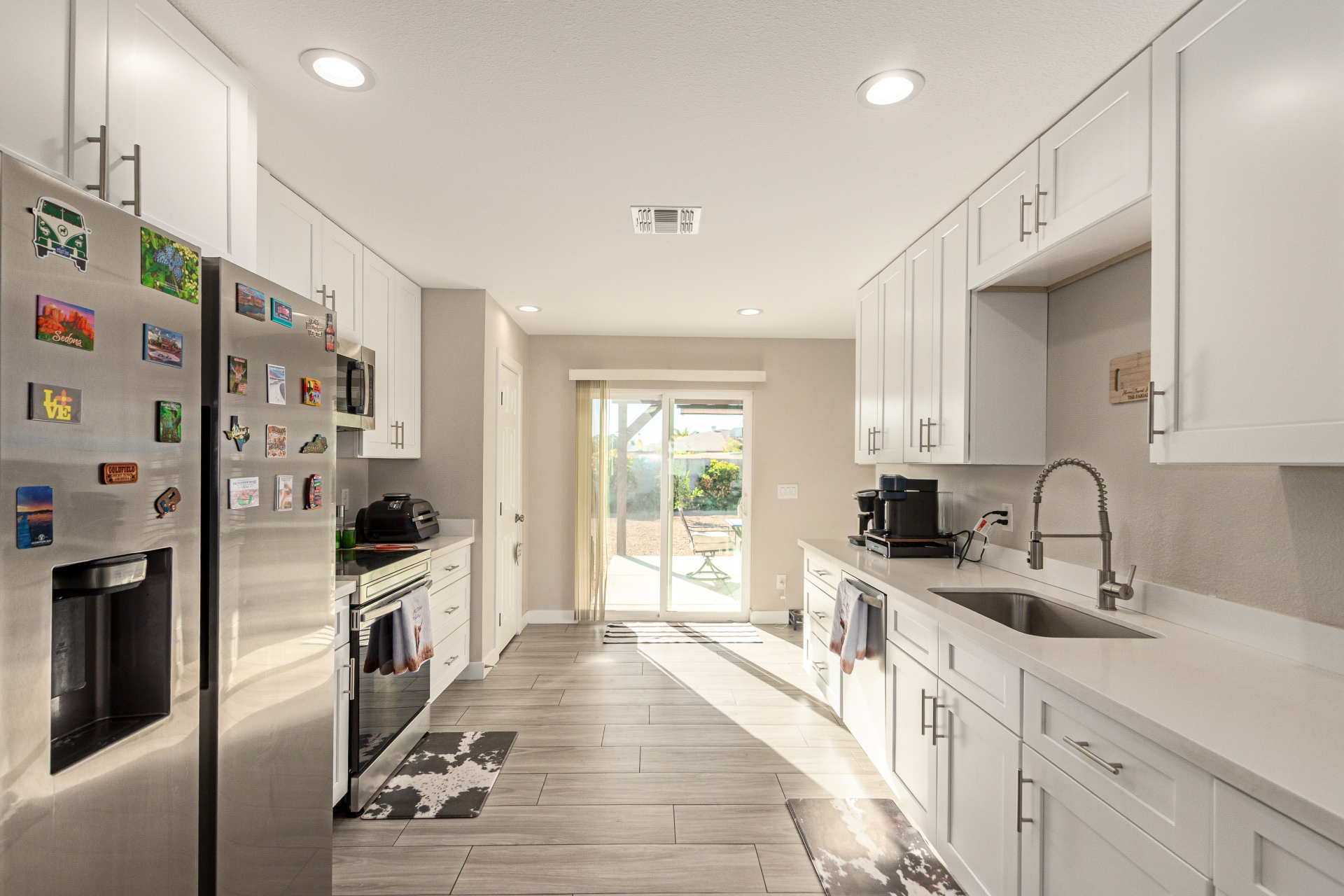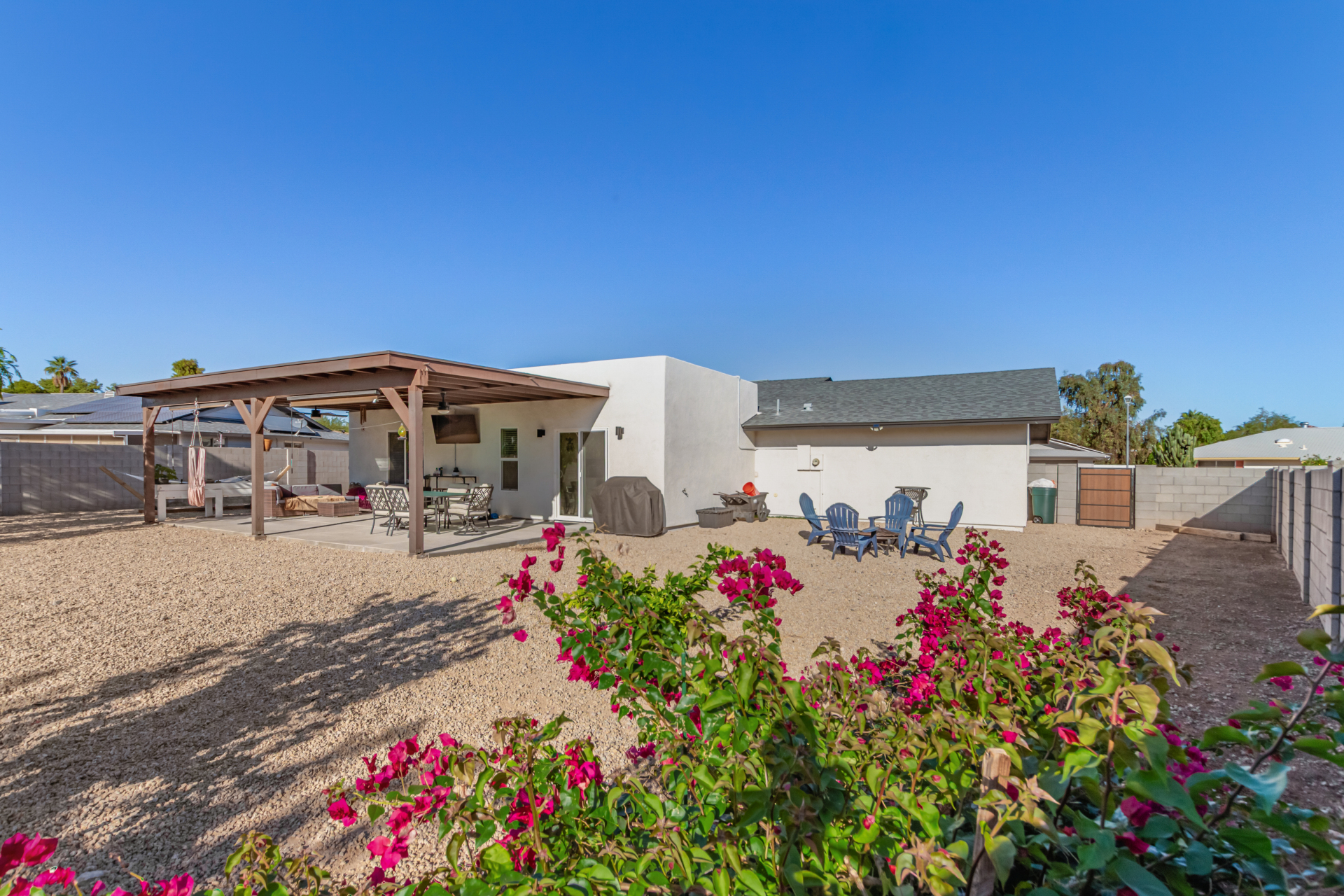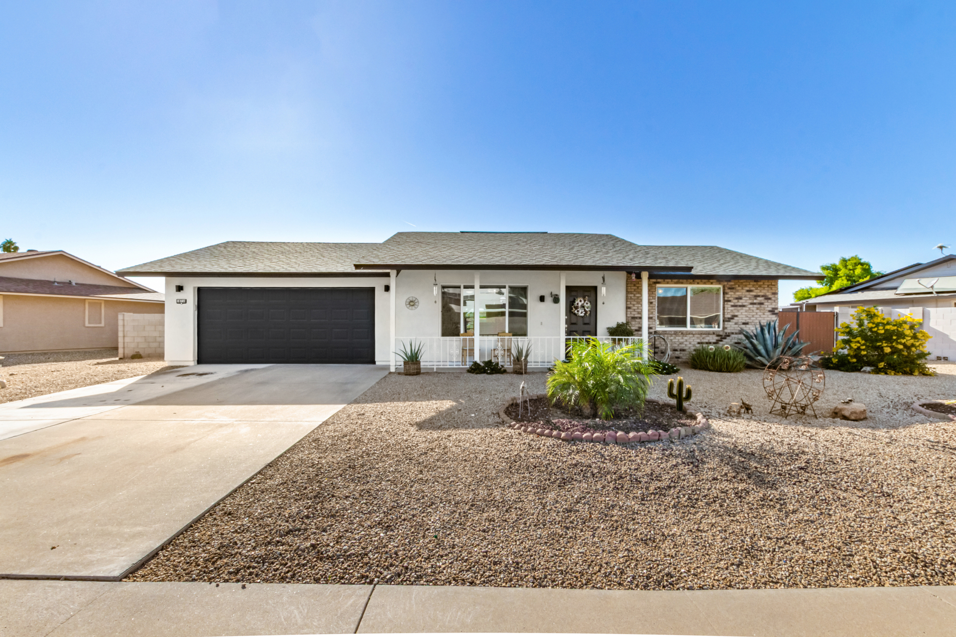 Welcome to your new home in the sought-after Sun City! The inviting front porch, a 2-car garage, and RV gates are just the beginning! Inside, you'll find tile flooring, tons of natural light, and neutral tones, all set in a practical layout that makes everyday living a breeze. The galley-style kitchen features shaker cabinets, granite countertops, and stainless steel appliances. Get a good night's sleep in the main suite, showcasing carpet for your comfort, a bathroom, and a walk-in closet. The backyard boasts a covered patio ideal for morning coffee and peaceful evenings, and plenty of space for outdoor fun, complemented by a soothing landscape. Don't forget to visit this vibrant adult community's pool, spa, and clubhouse for fun times! Come see it before it's too late!